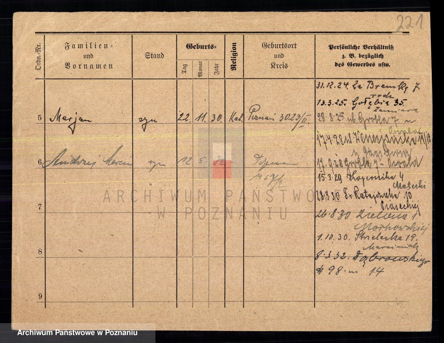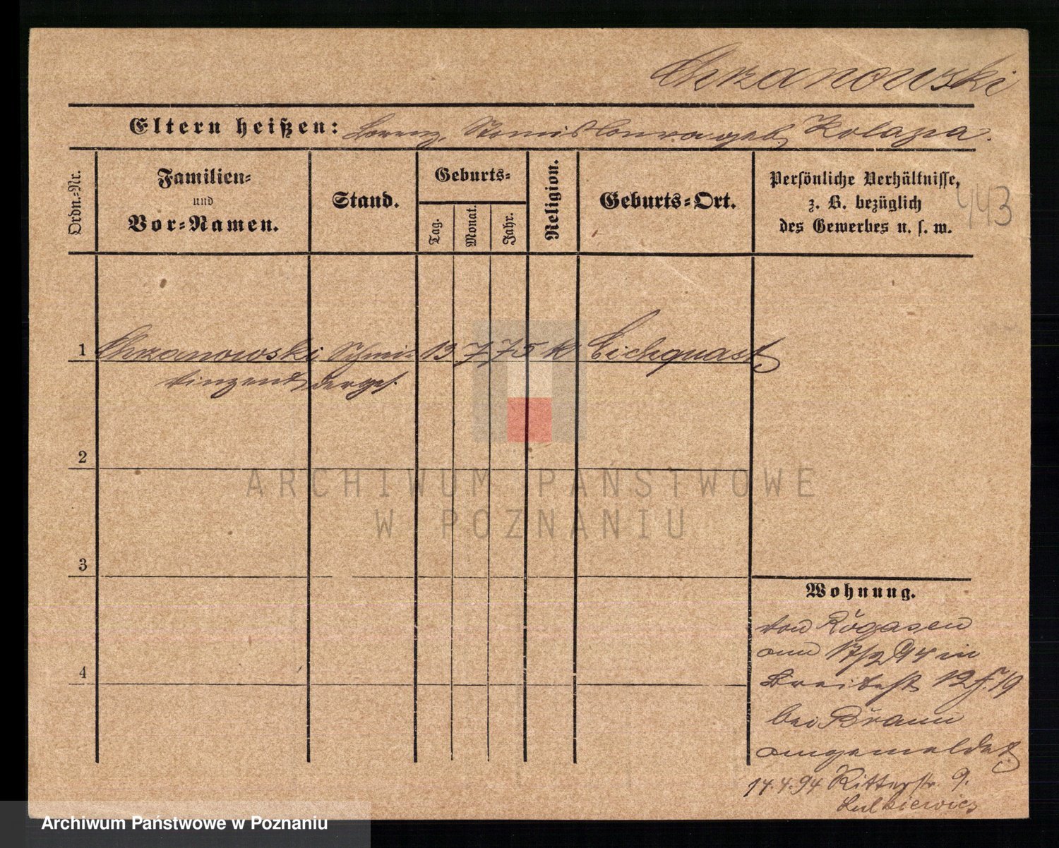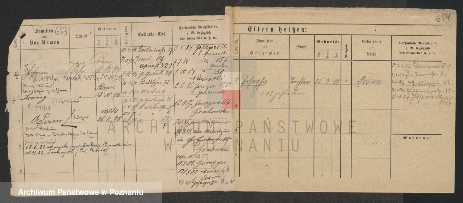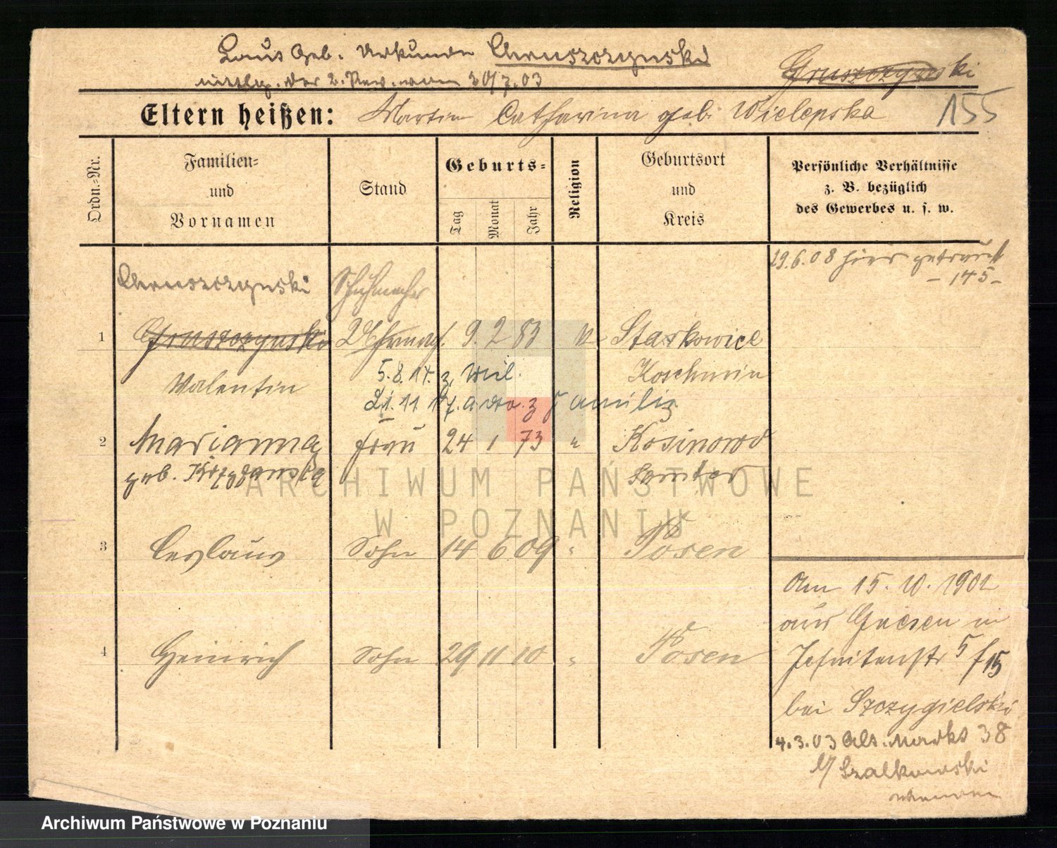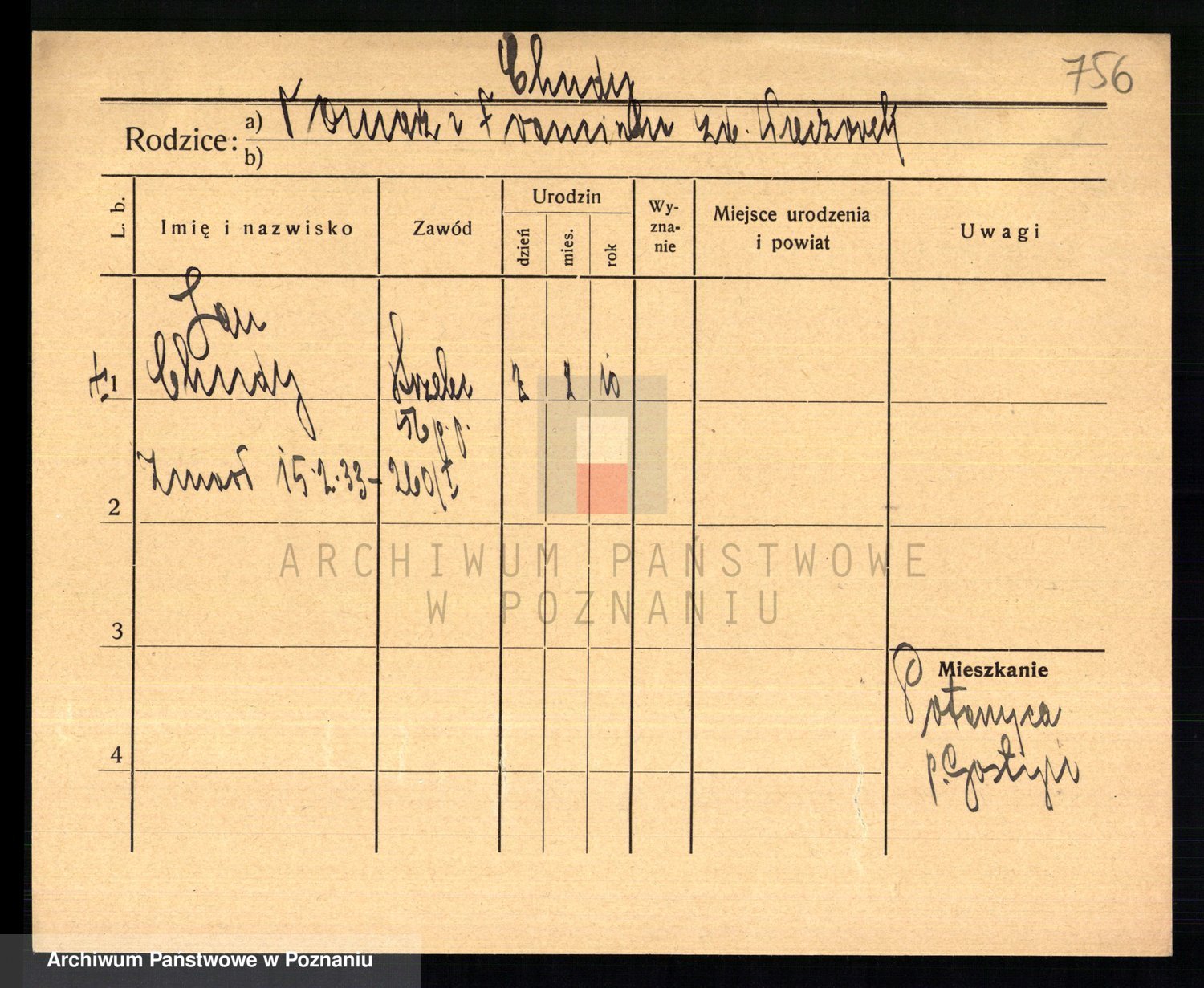 Podgląd karty osobowej dostępny jest po kliknięciu na nazwisko lub ikonkę karty. Można dokonywać powiększenia (ikony na górze) lub przechodzić między kolejnymi skanami (strzałki po bokach).