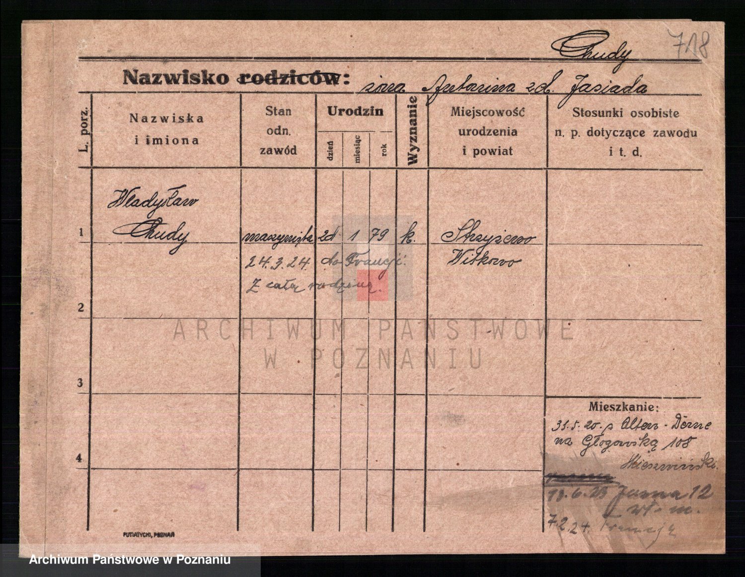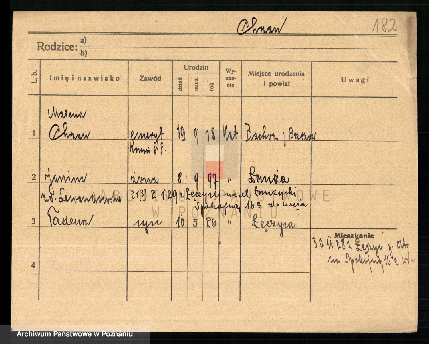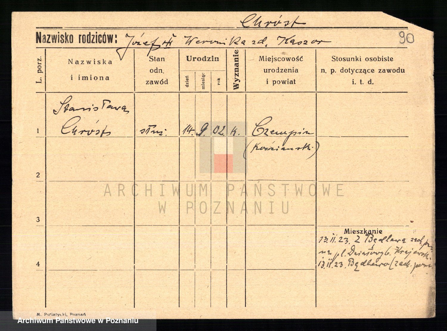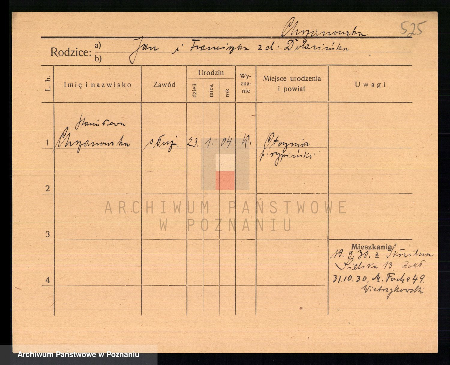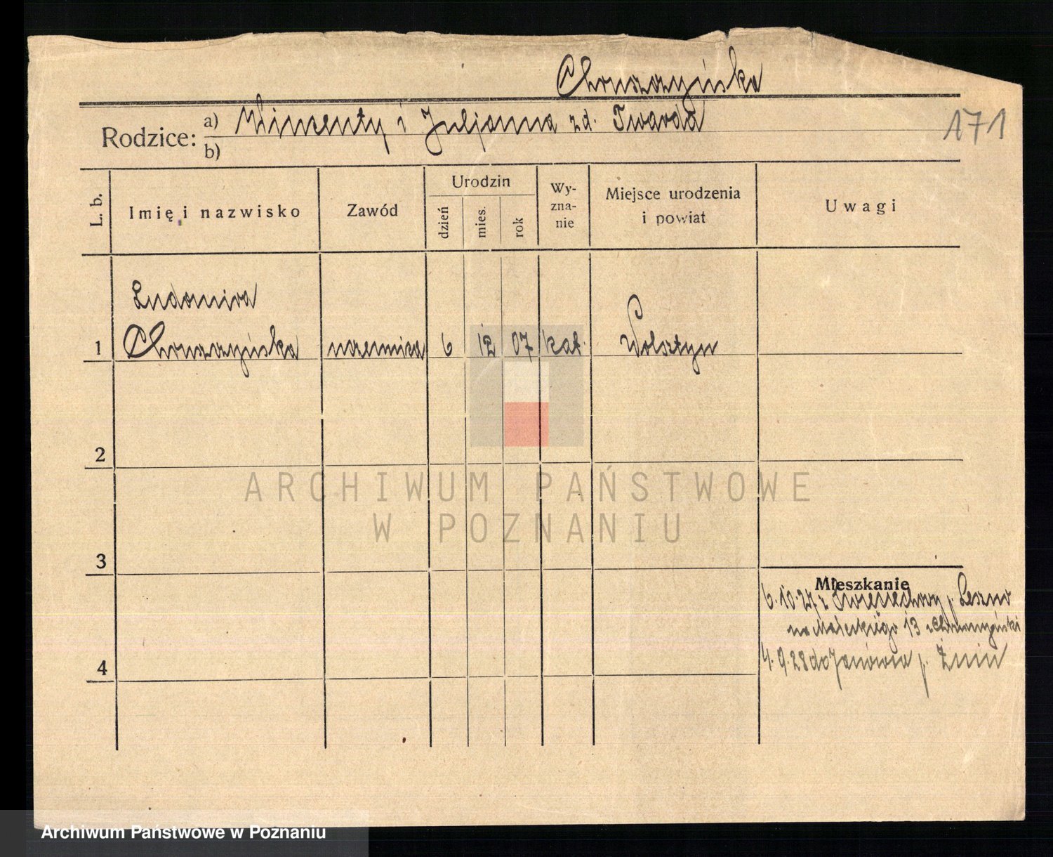 Podgląd karty osobowej dostępny jest po kliknięciu na nazwisko lub ikonkę karty. Można dokonywać powiększenia (ikony na górze) lub przechodzić między kolejnymi skanami (strzałki po bokach).
