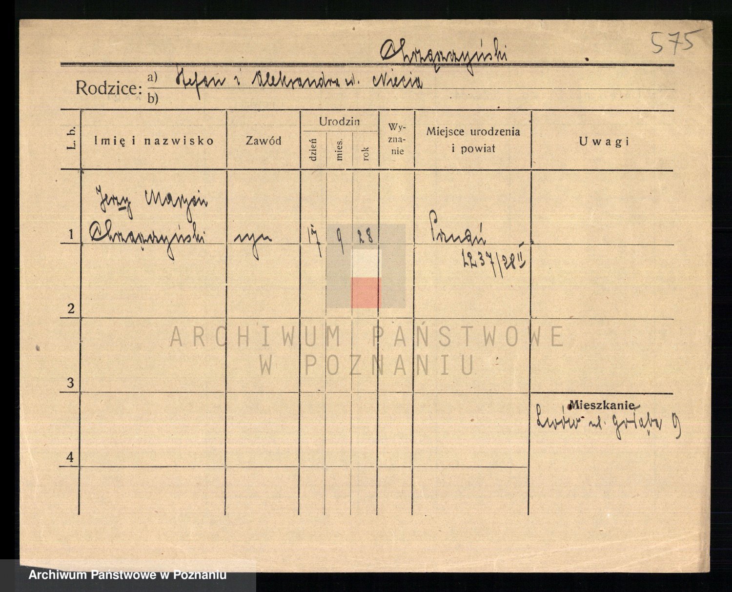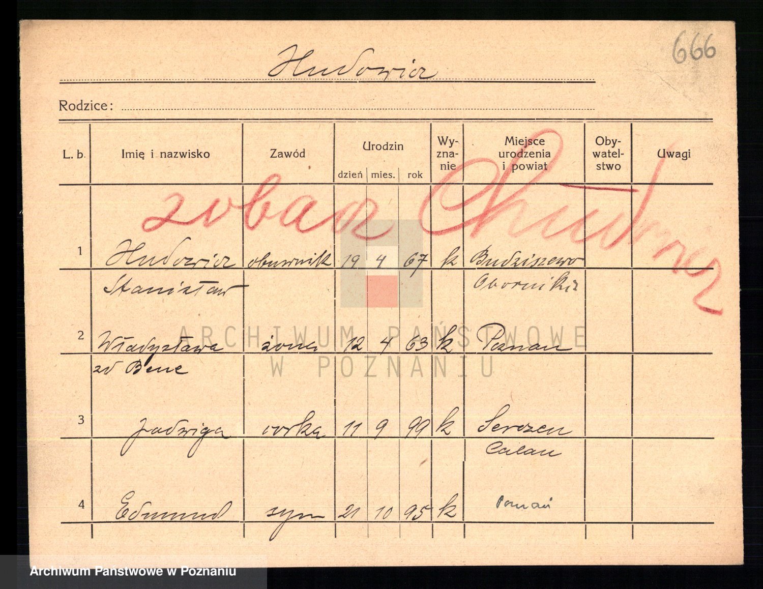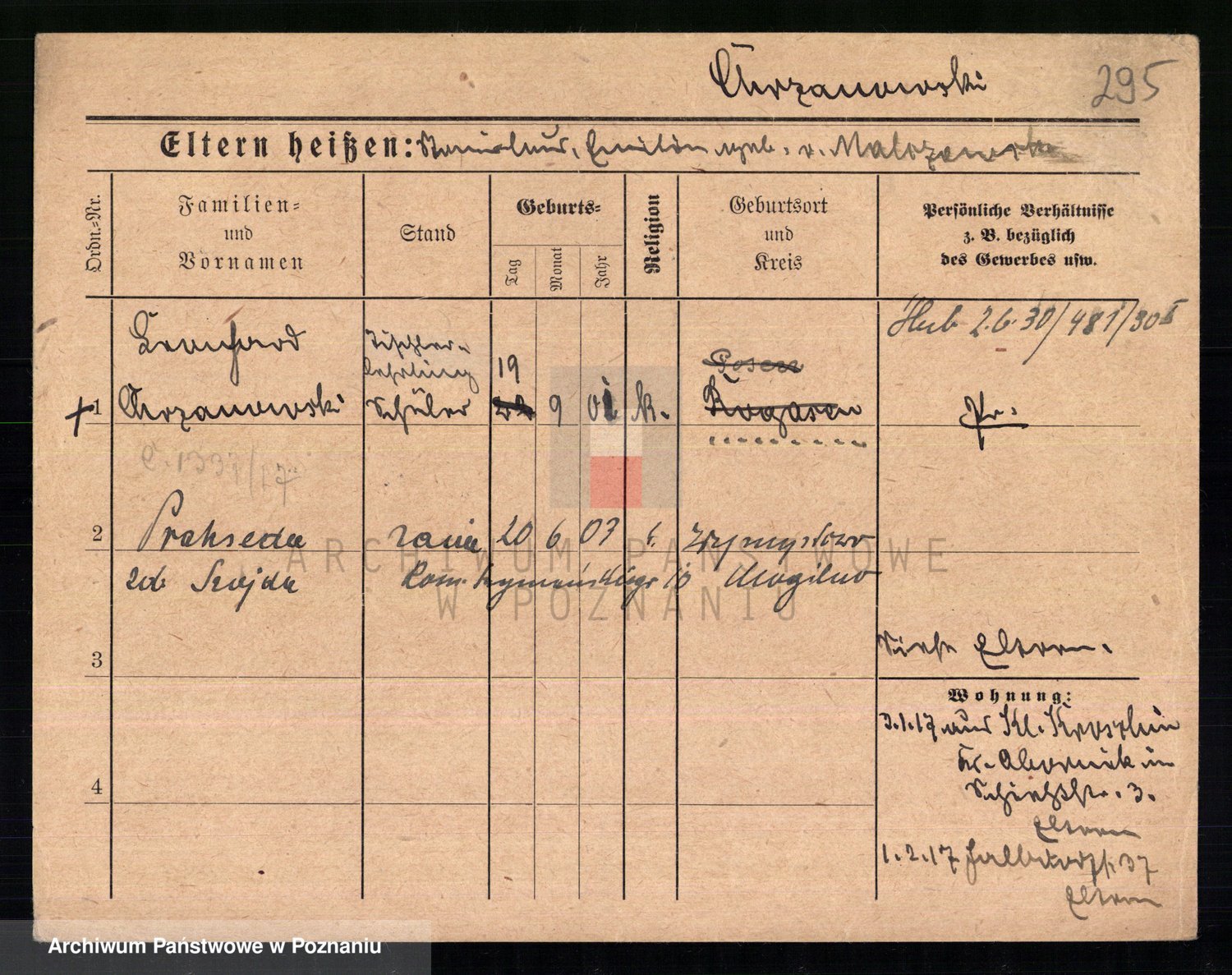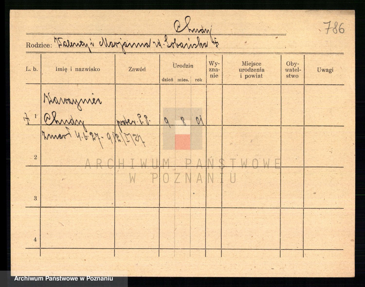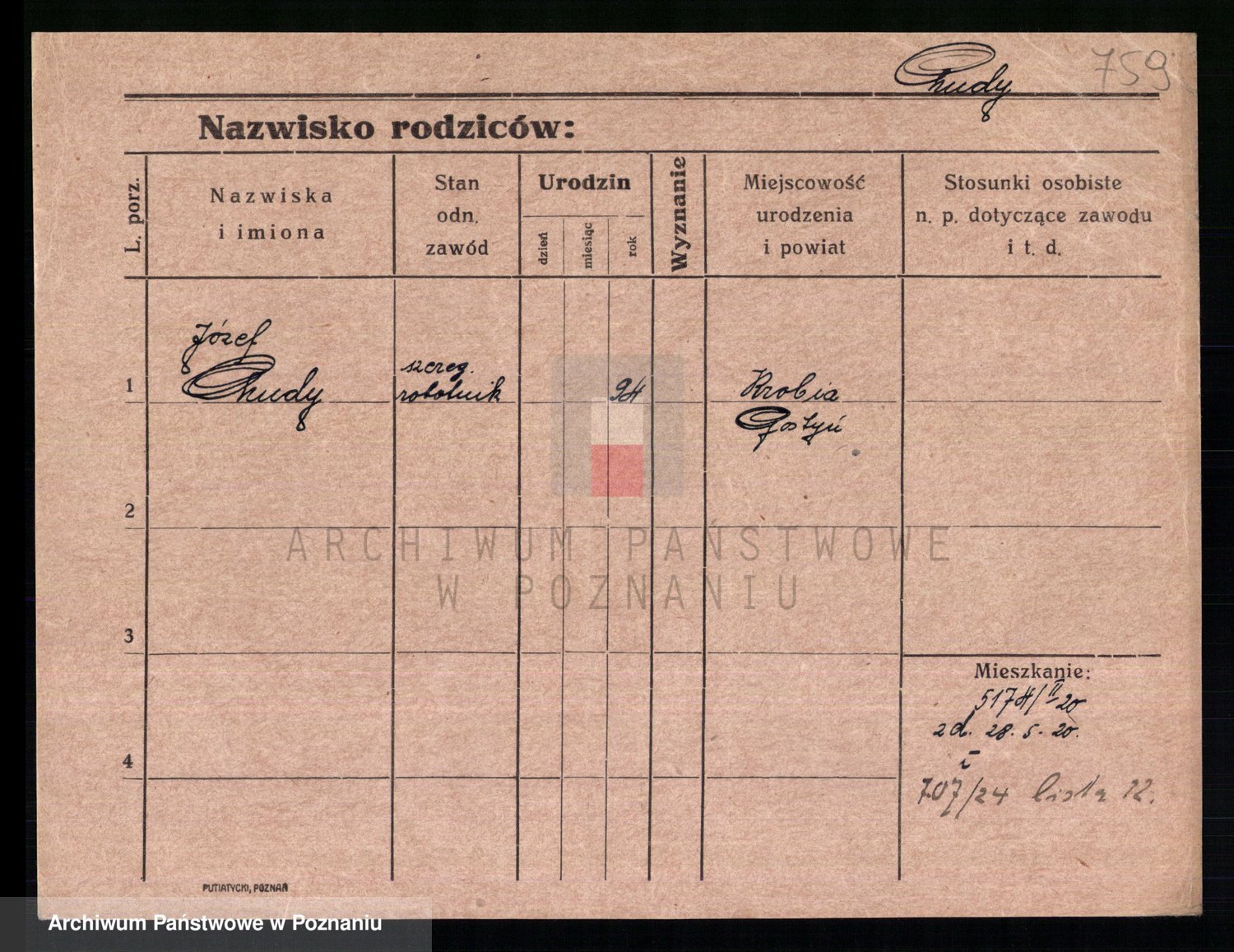 Podgląd karty osobowej dostępny jest po kliknięciu na nazwisko lub ikonkę karty. Można dokonywać powiększenia (ikony na górze) lub przechodzić między kolejnymi skanami (strzałki po bokach).