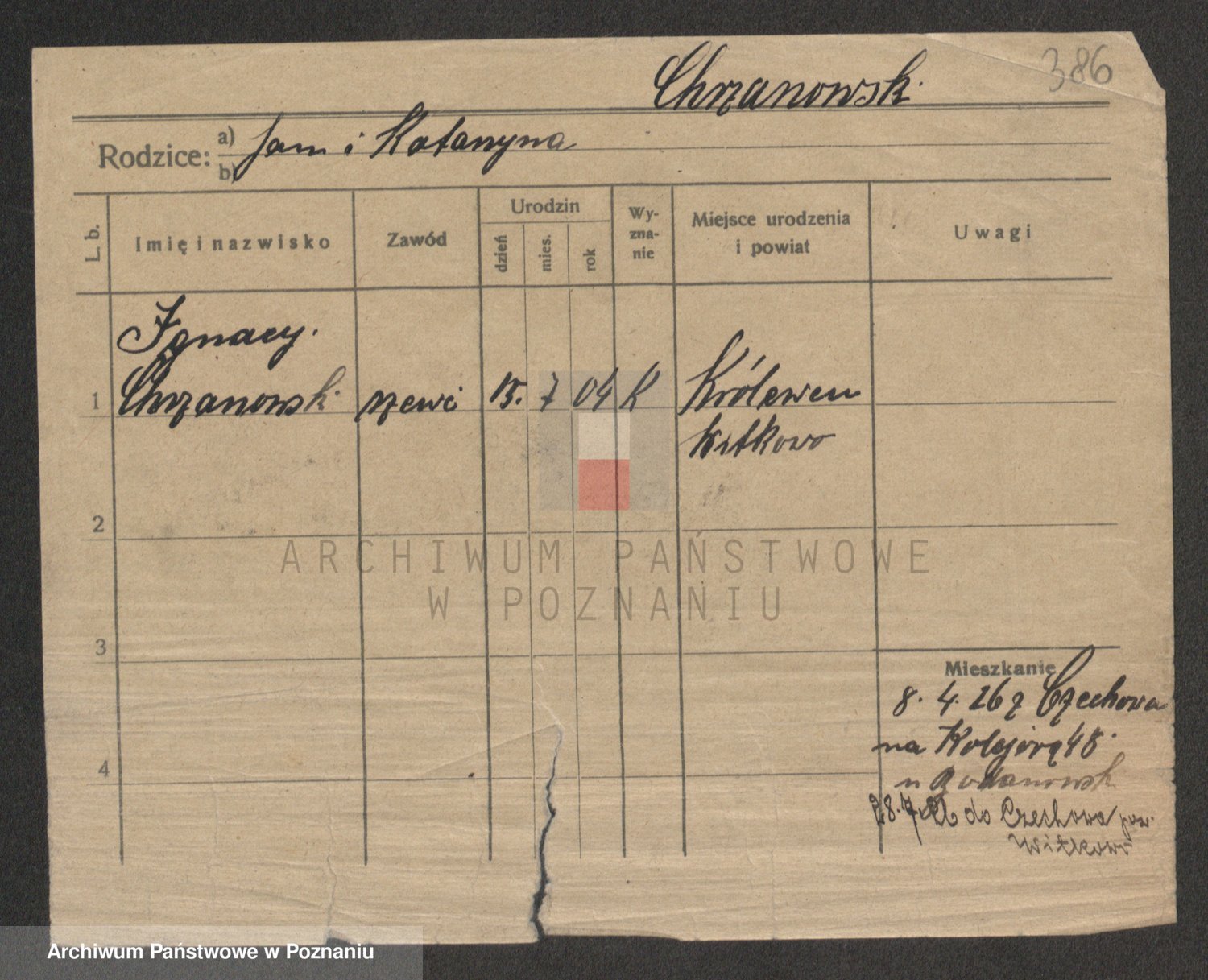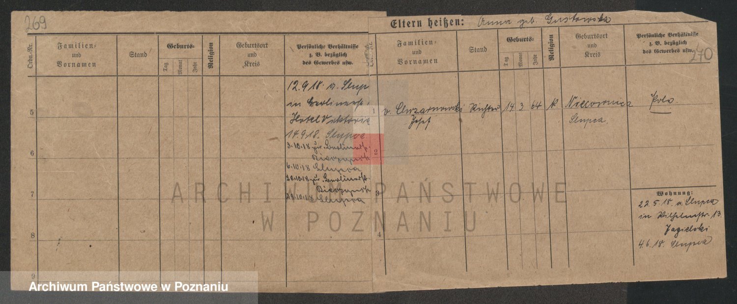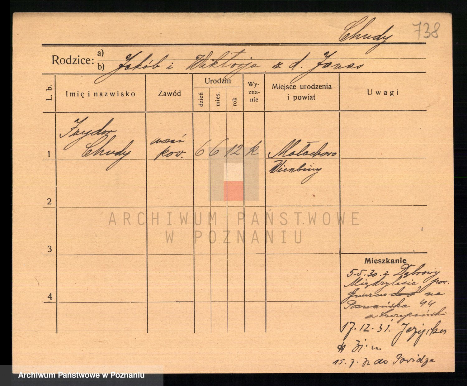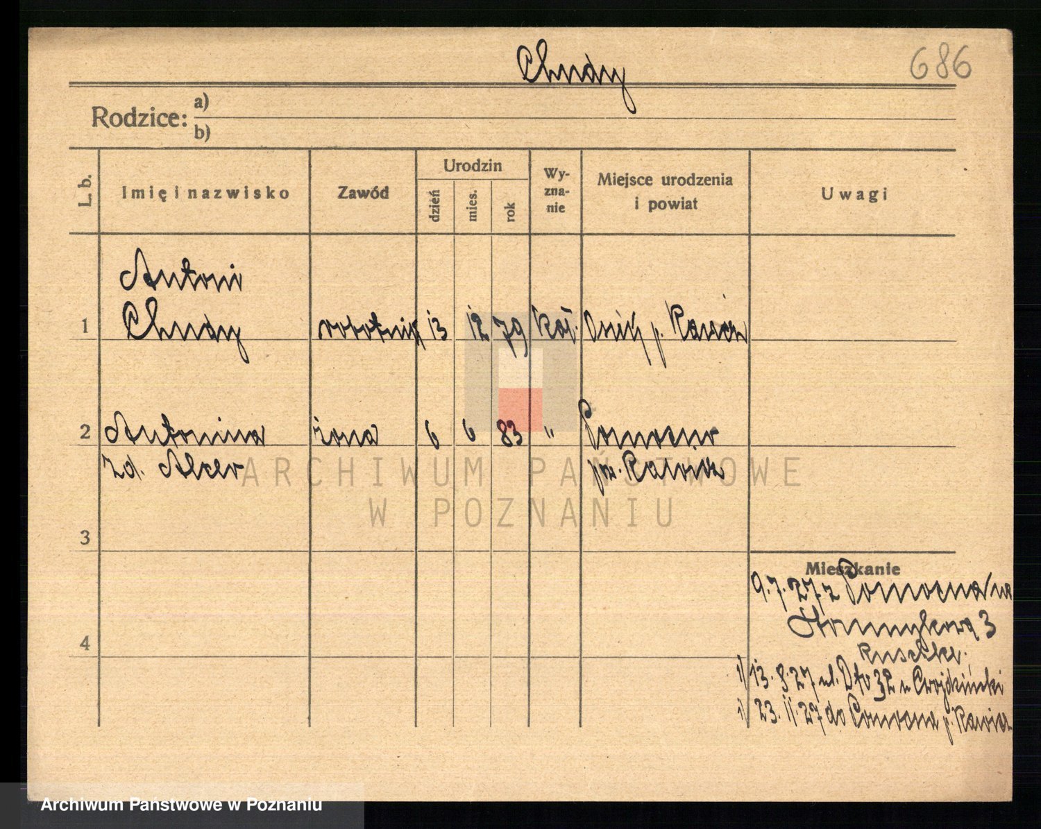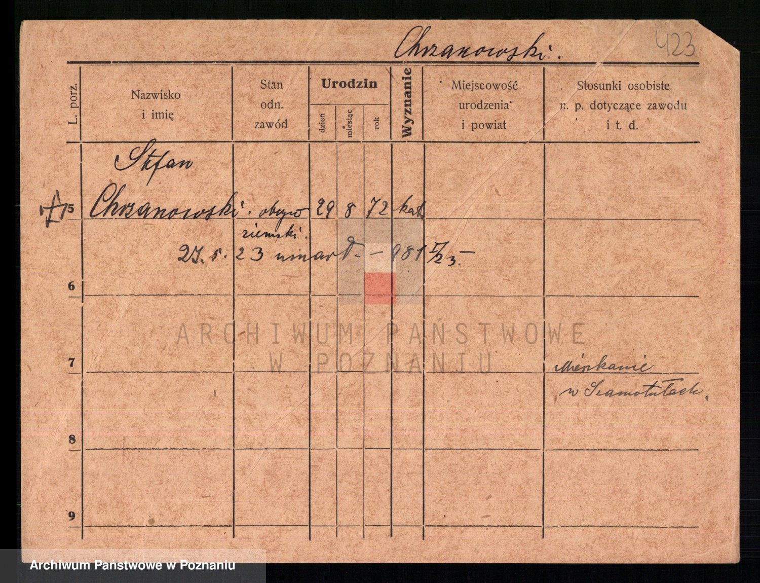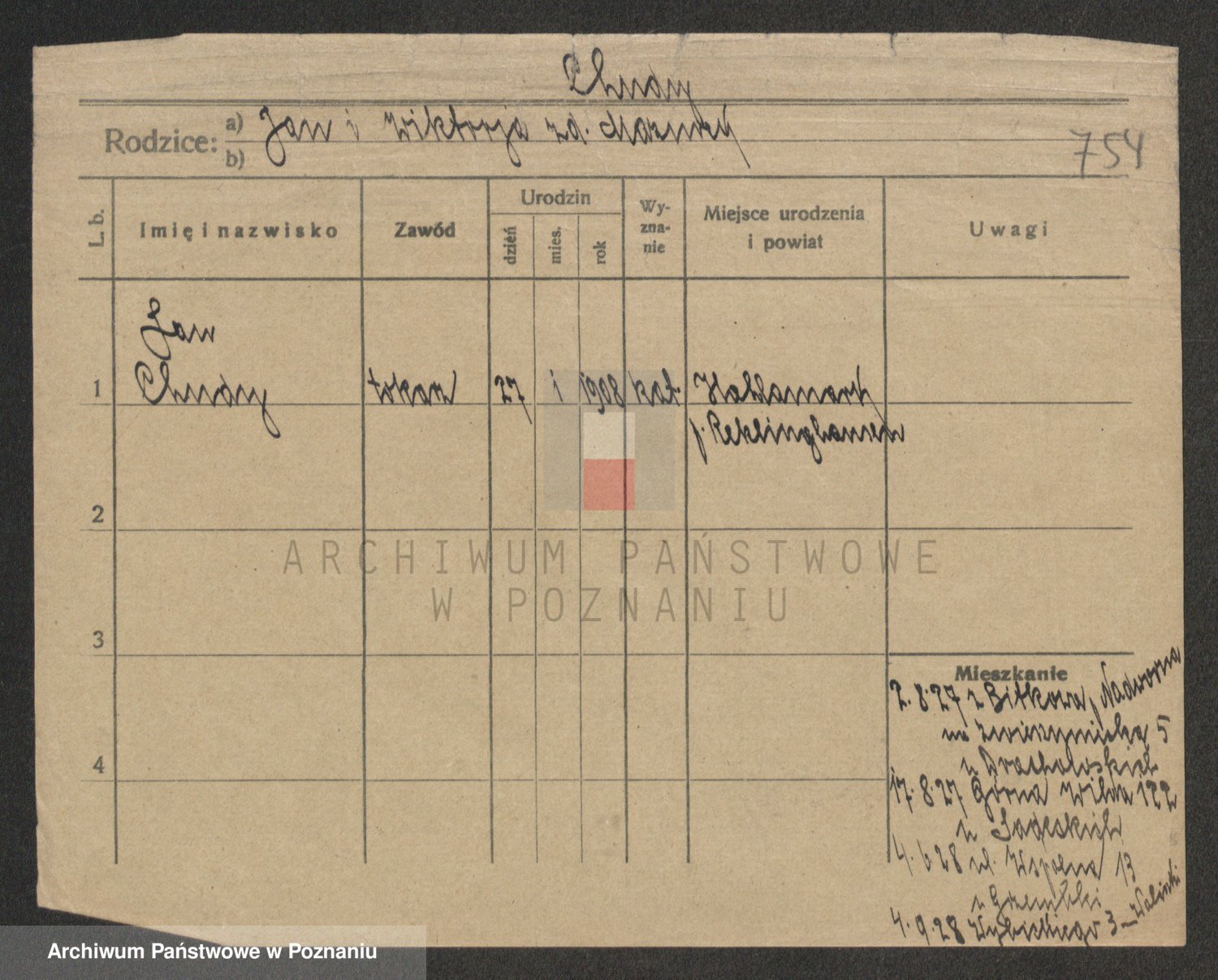 Podgląd karty osobowej dostępny jest po kliknięciu na nazwisko lub ikonkę karty. Można dokonywać powiększenia (ikony na górze) lub przechodzić między kolejnymi skanami (strzałki po bokach).