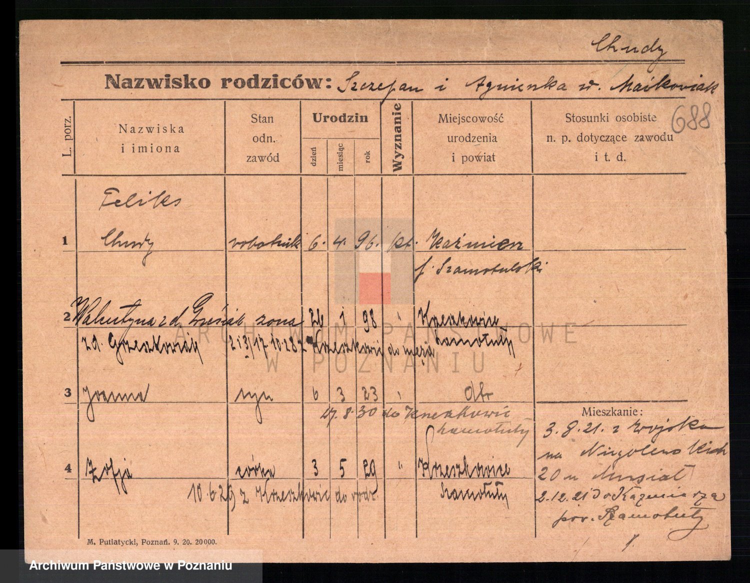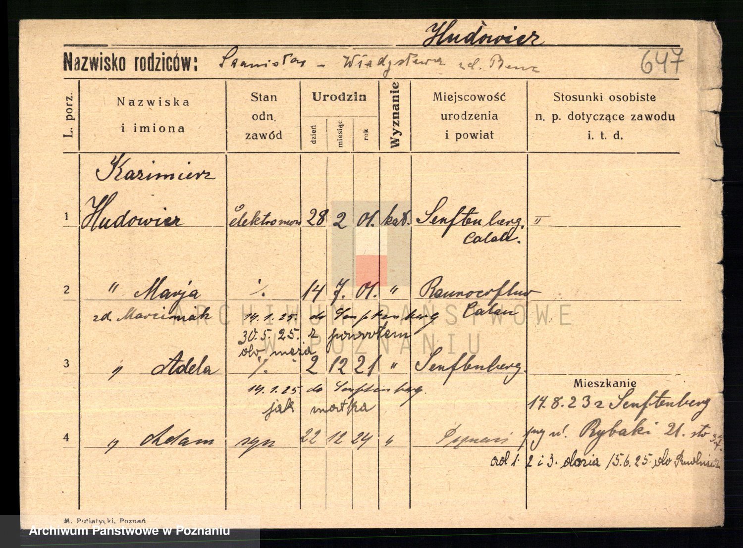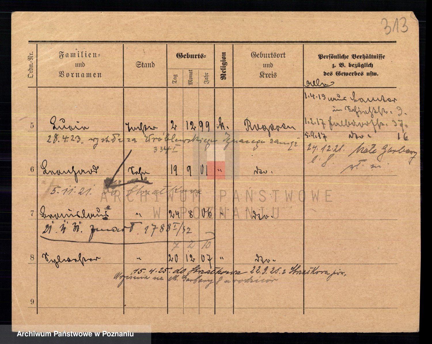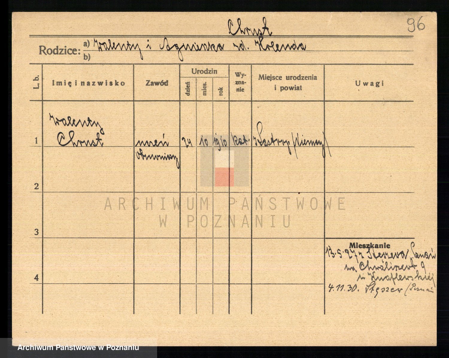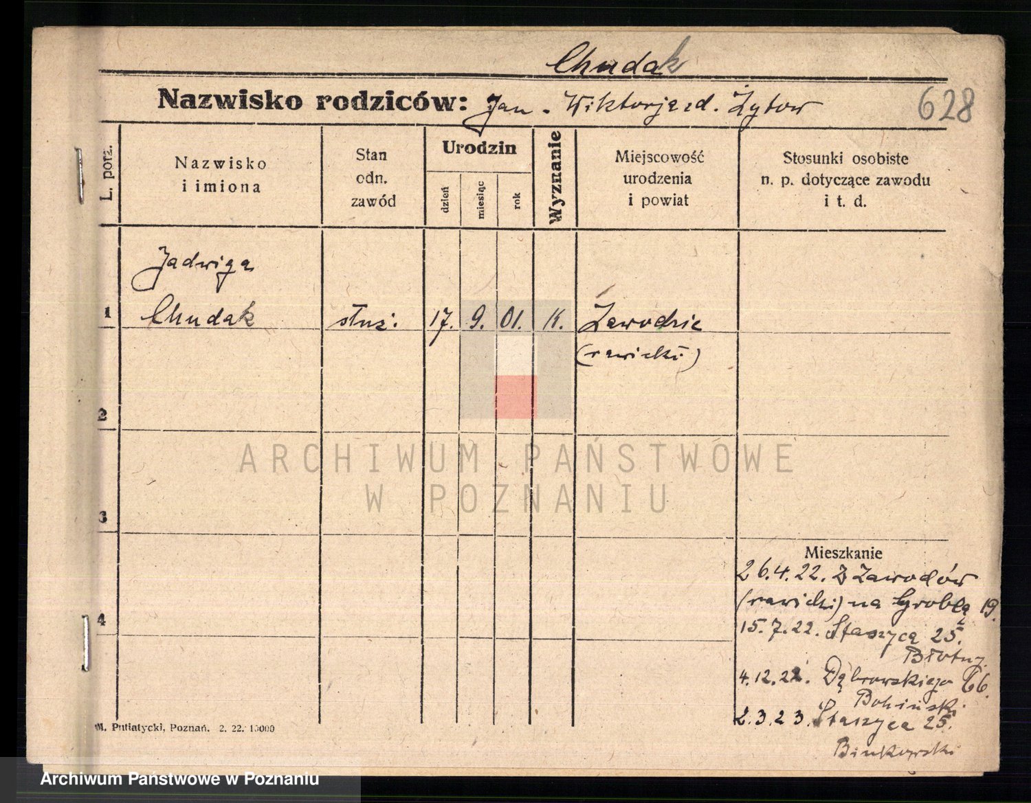 Podgląd karty osobowej dostępny jest po kliknięciu na nazwisko lub ikonkę karty. Można dokonywać powiększenia (ikony na górze) lub przechodzić między kolejnymi skanami (strzałki po bokach).