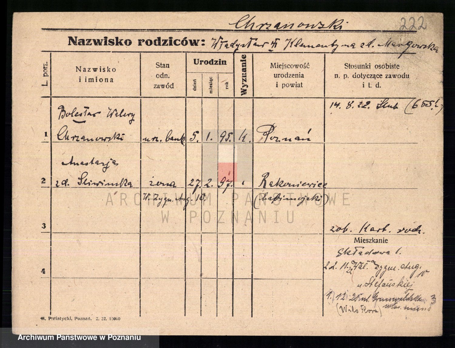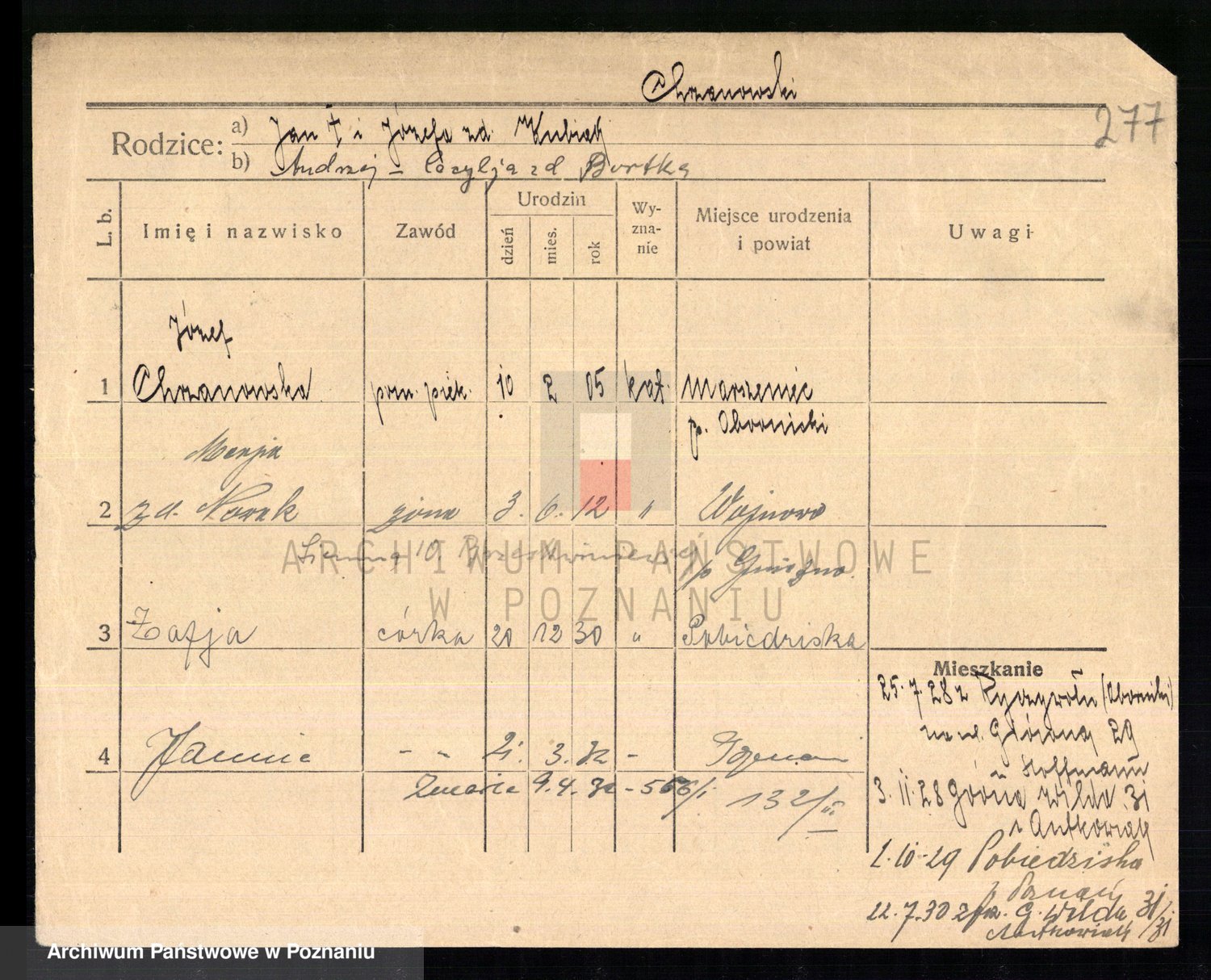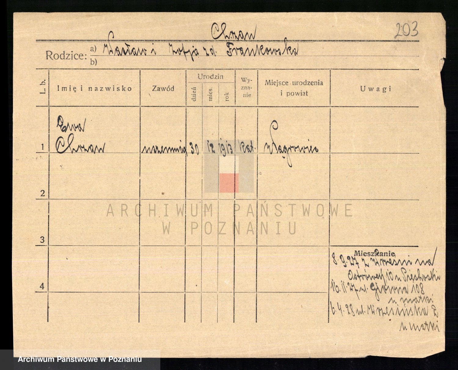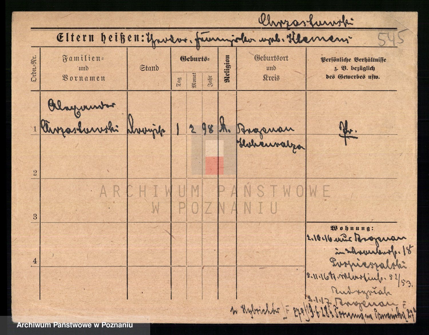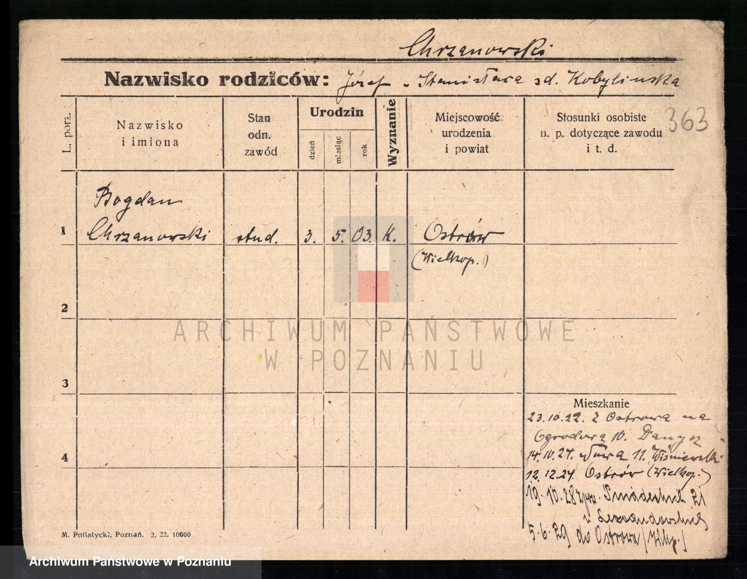 Podgląd karty osobowej dostępny jest po kliknięciu na nazwisko lub ikonkę karty. Można dokonywać powiększenia (ikony na górze) lub przechodzić między kolejnymi skanami (strzałki po bokach).