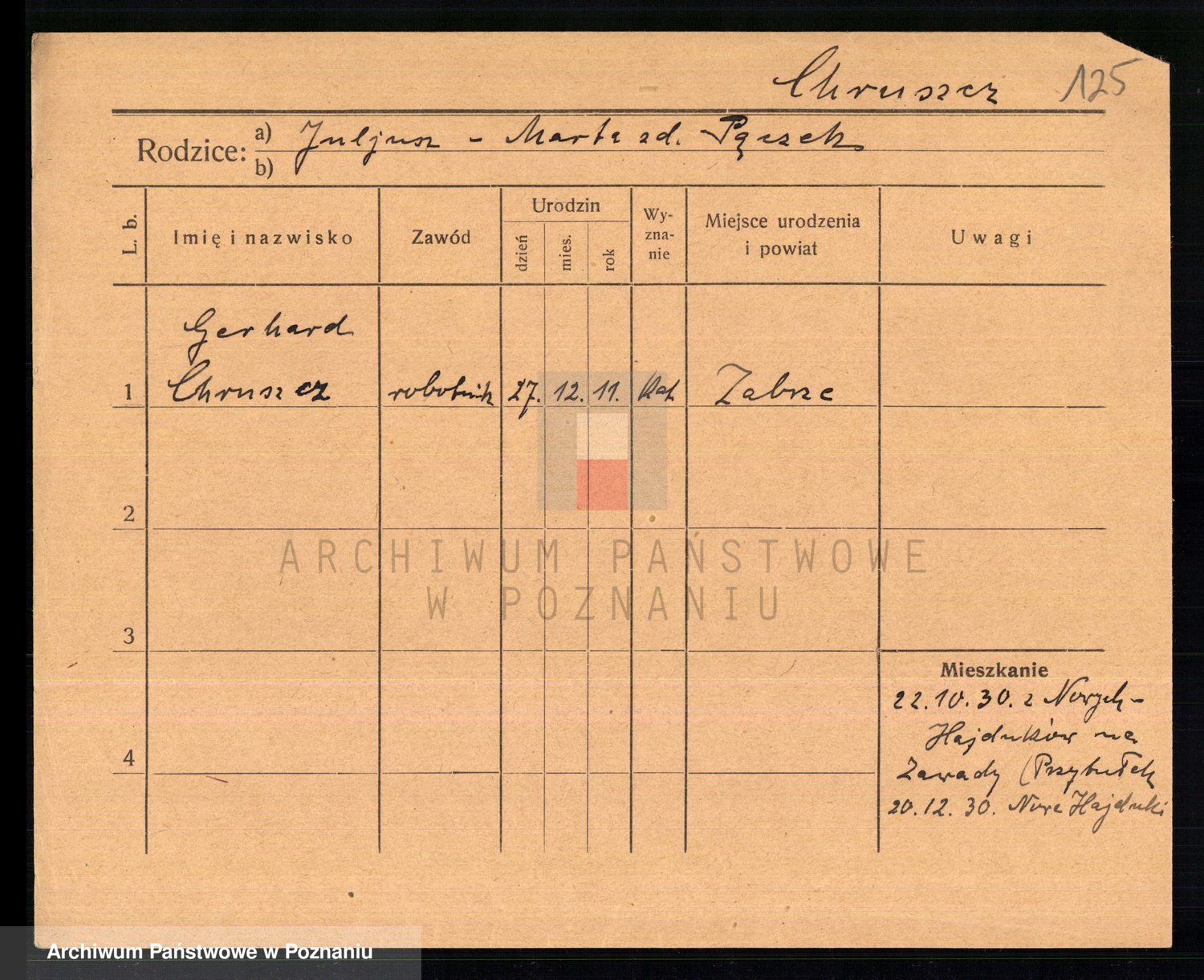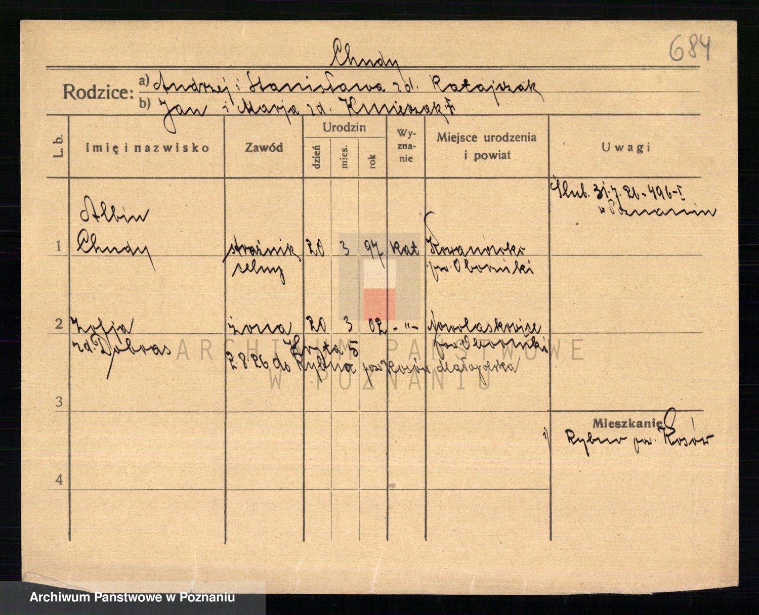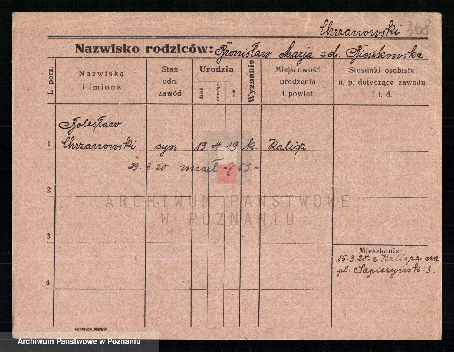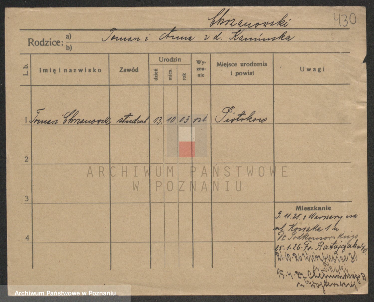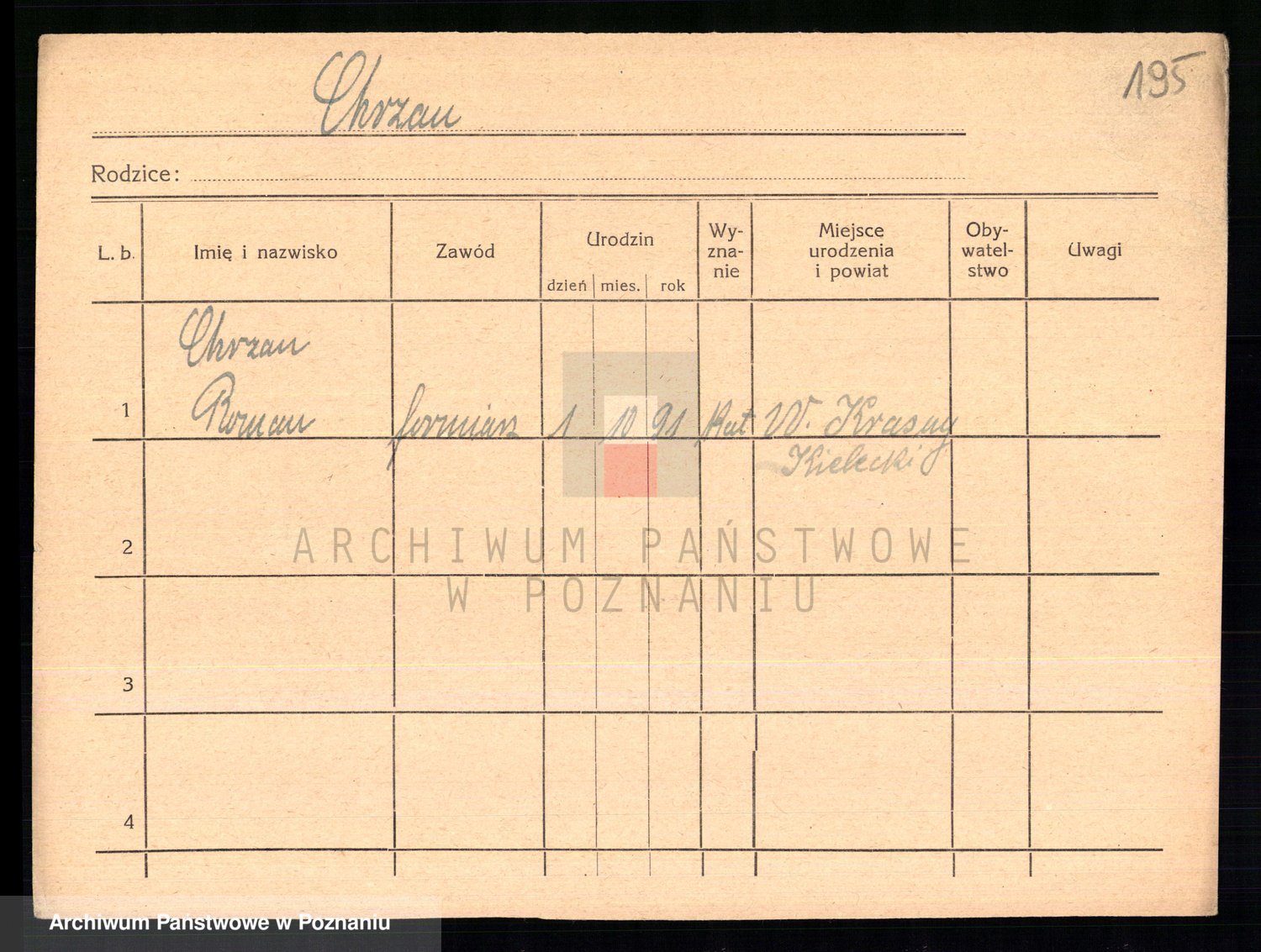 Podgląd karty osobowej dostępny jest po kliknięciu na nazwisko lub ikonkę karty. Można dokonywać powiększenia (ikony na górze) lub przechodzić między kolejnymi skanami (strzałki po bokach).