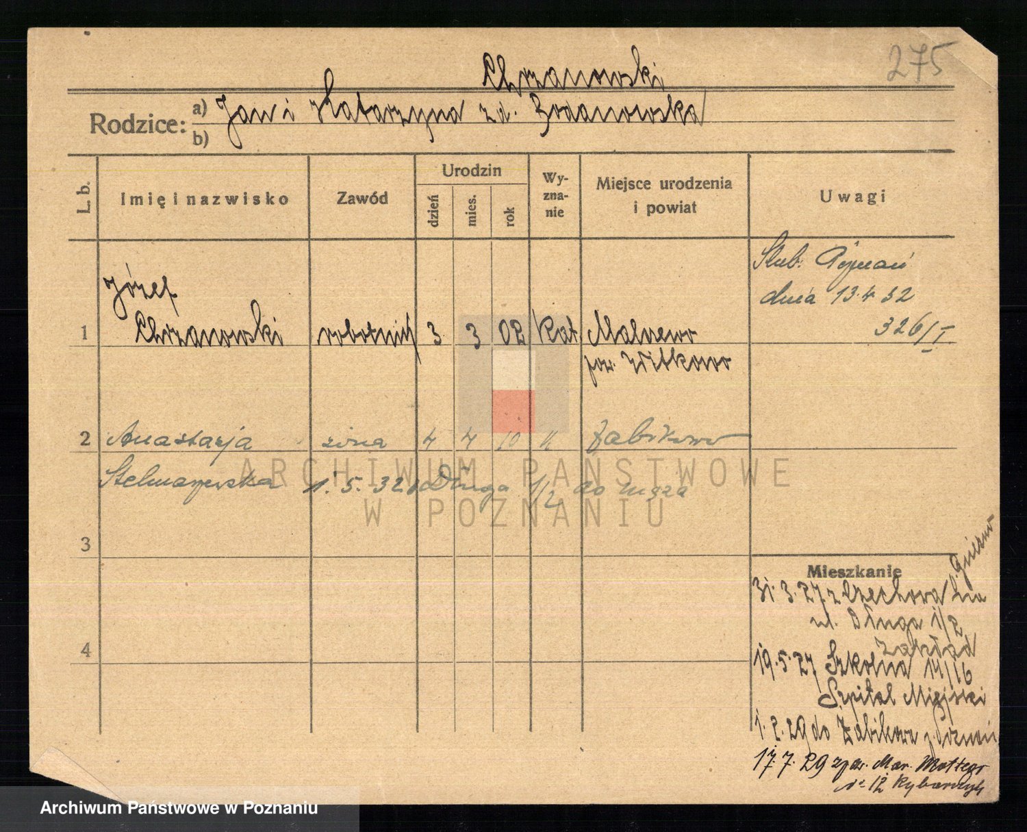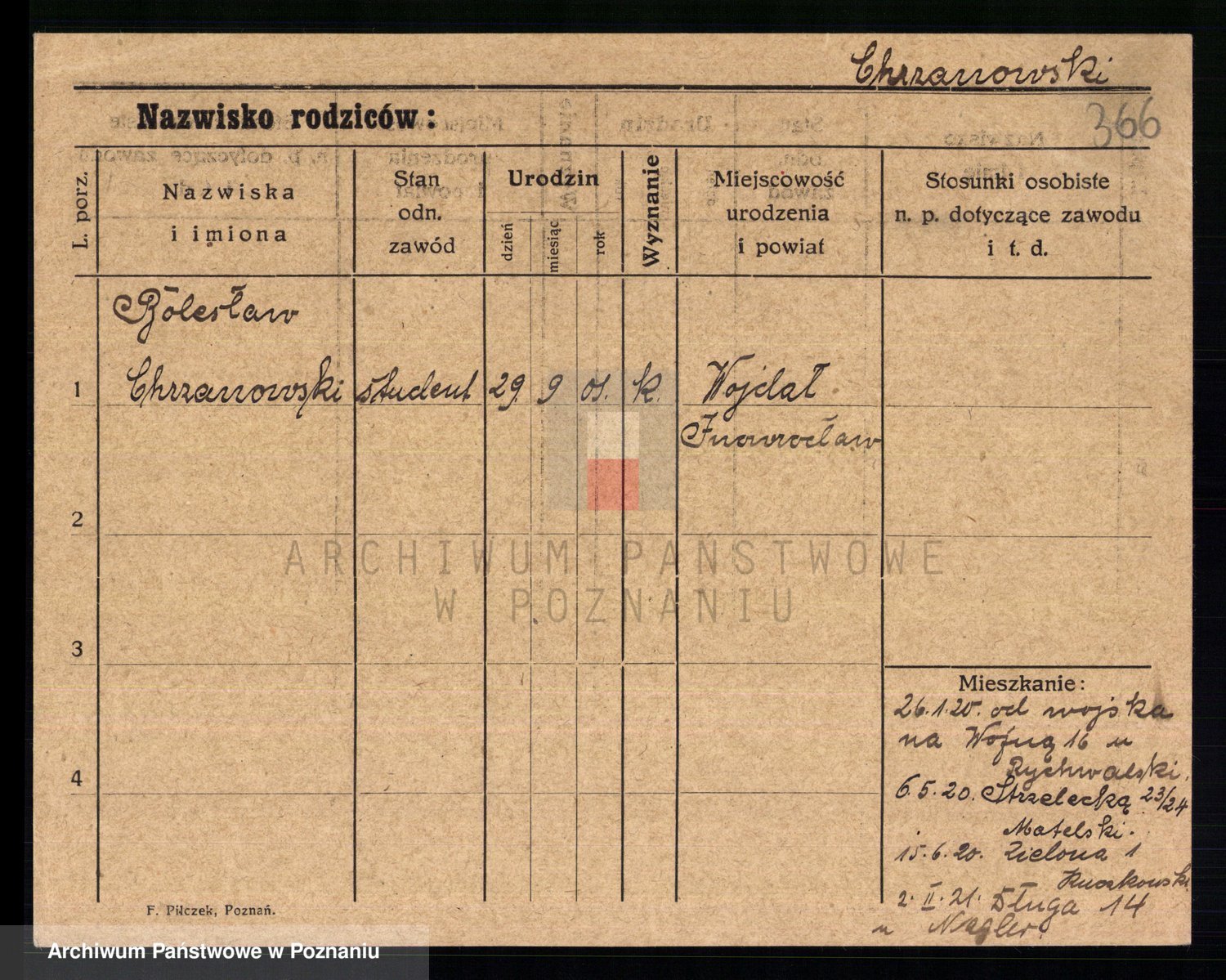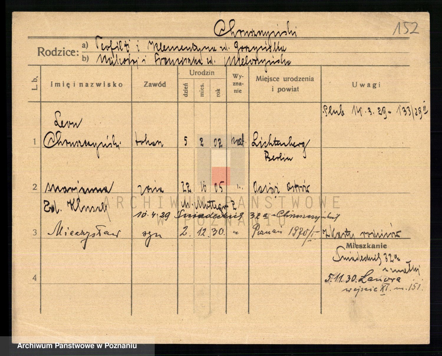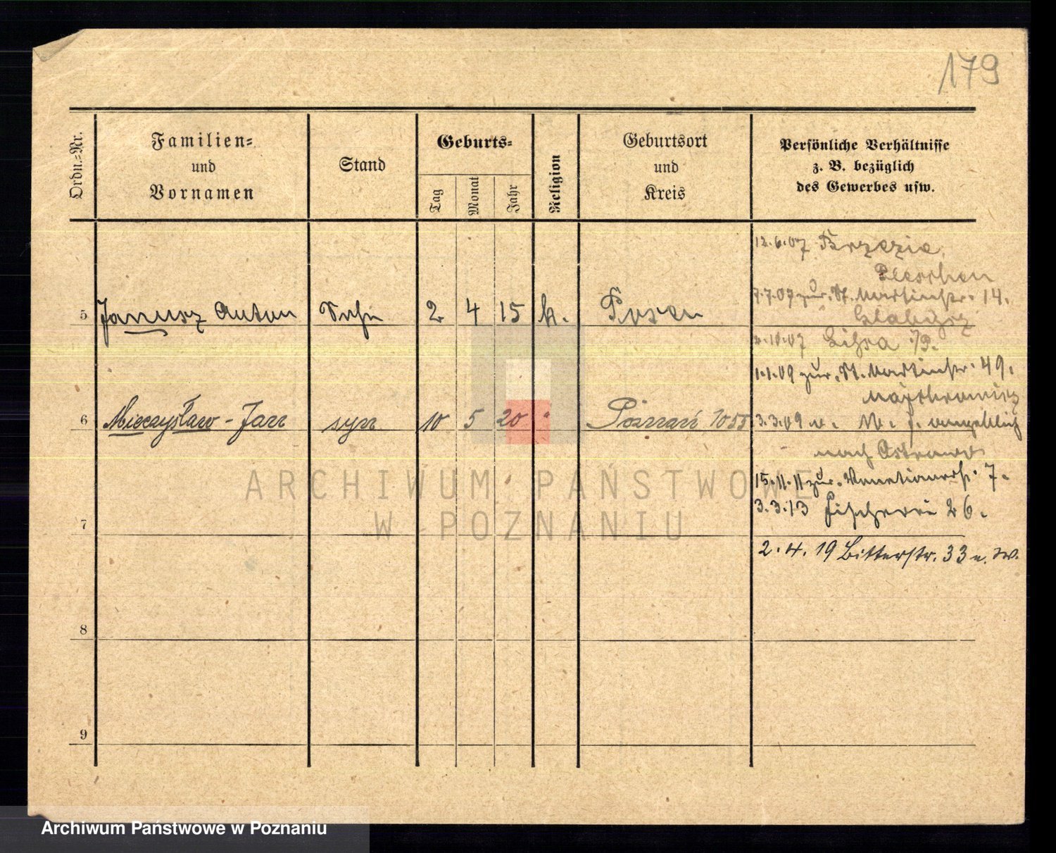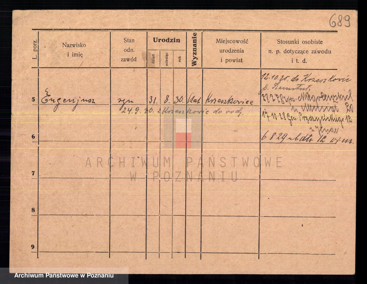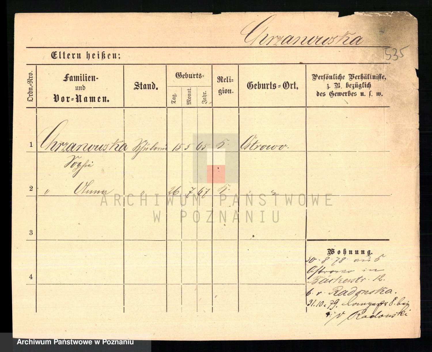 Podgląd karty osobowej dostępny jest po kliknięciu na nazwisko lub ikonkę karty. Można dokonywać powiększenia (ikony na górze) lub przechodzić między kolejnymi skanami (strzałki po bokach).