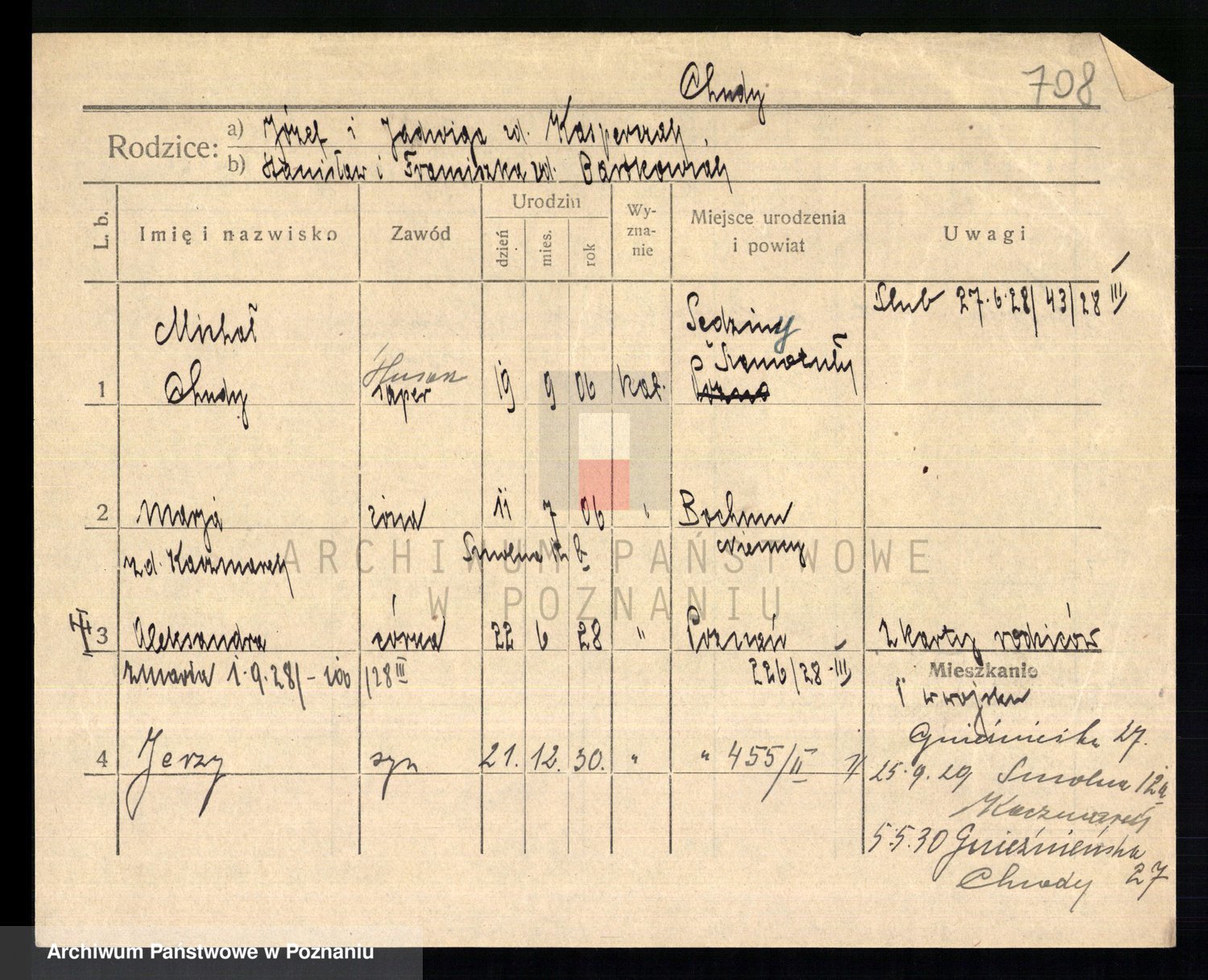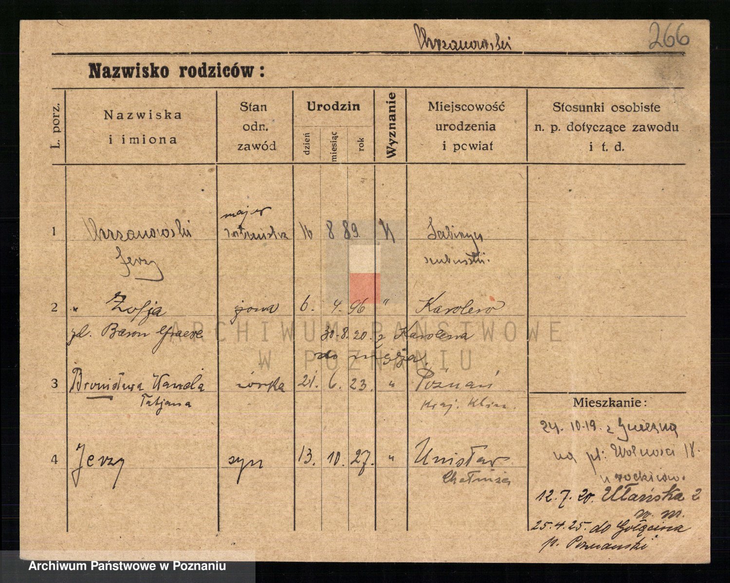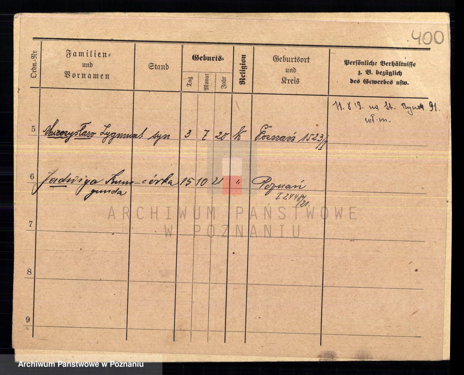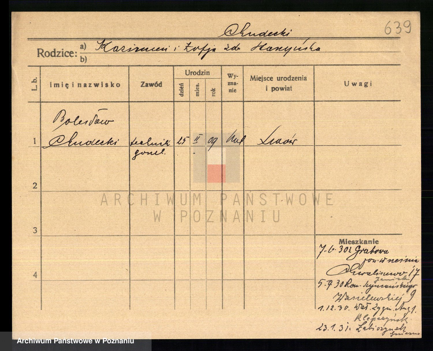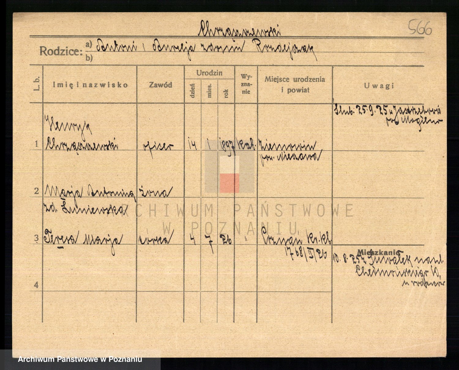 Podgląd karty osobowej dostępny jest po kliknięciu na nazwisko lub ikonkę karty. Można dokonywać powiększenia (ikony na górze) lub przechodzić między kolejnymi skanami (strzałki po bokach).