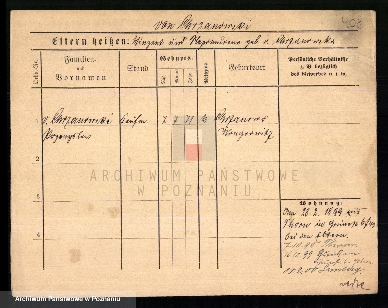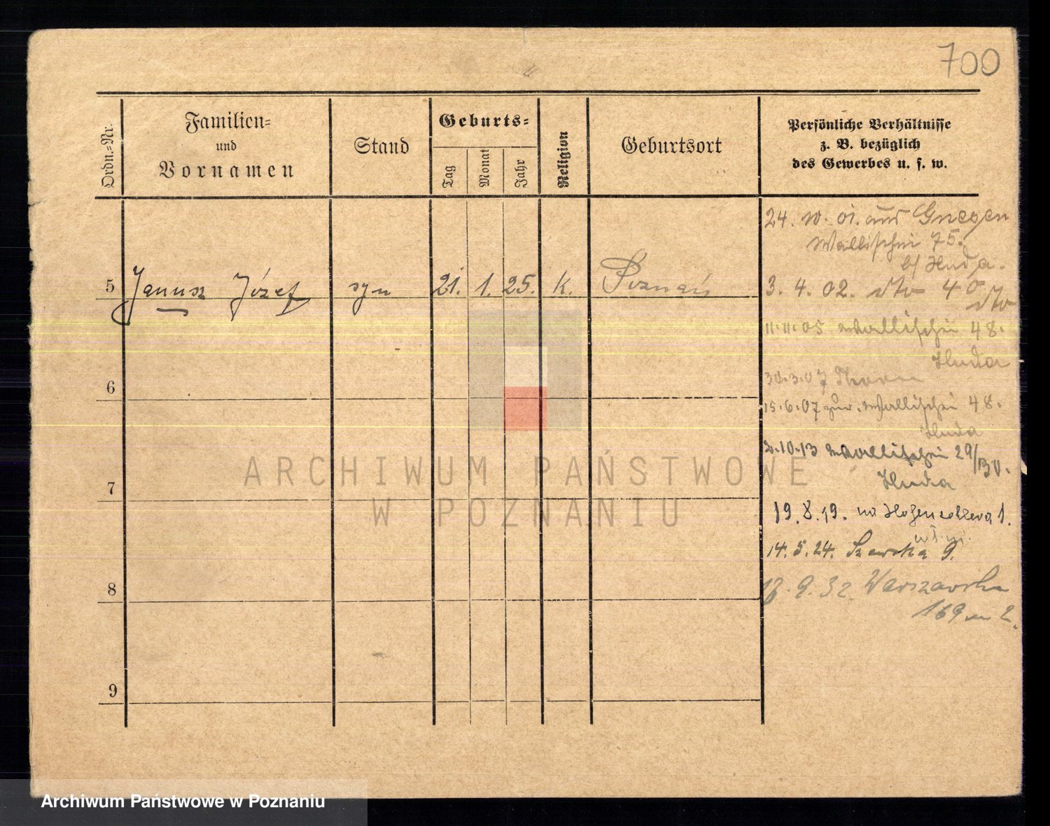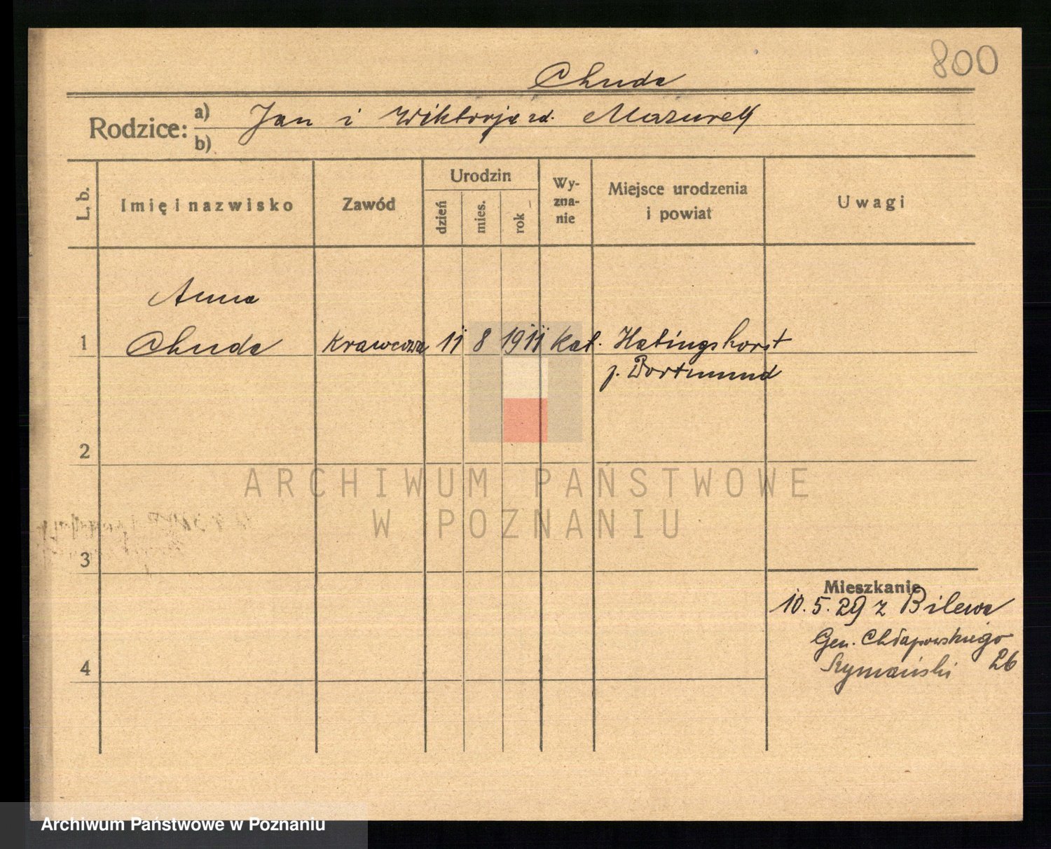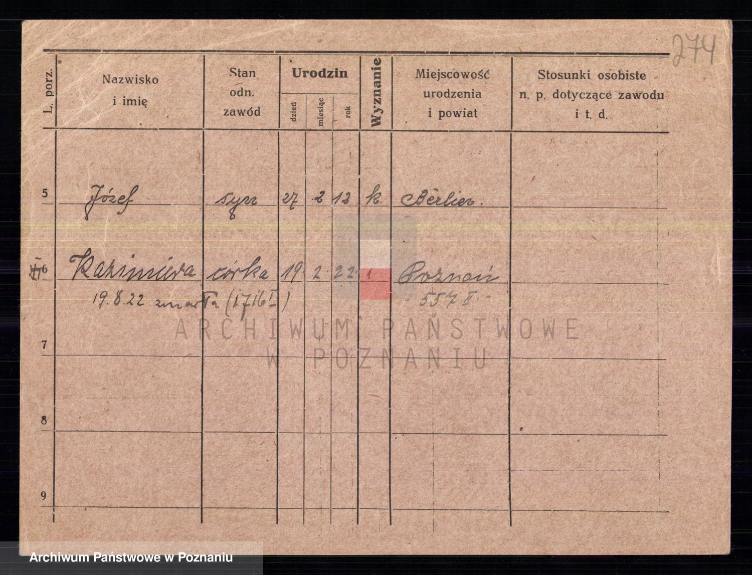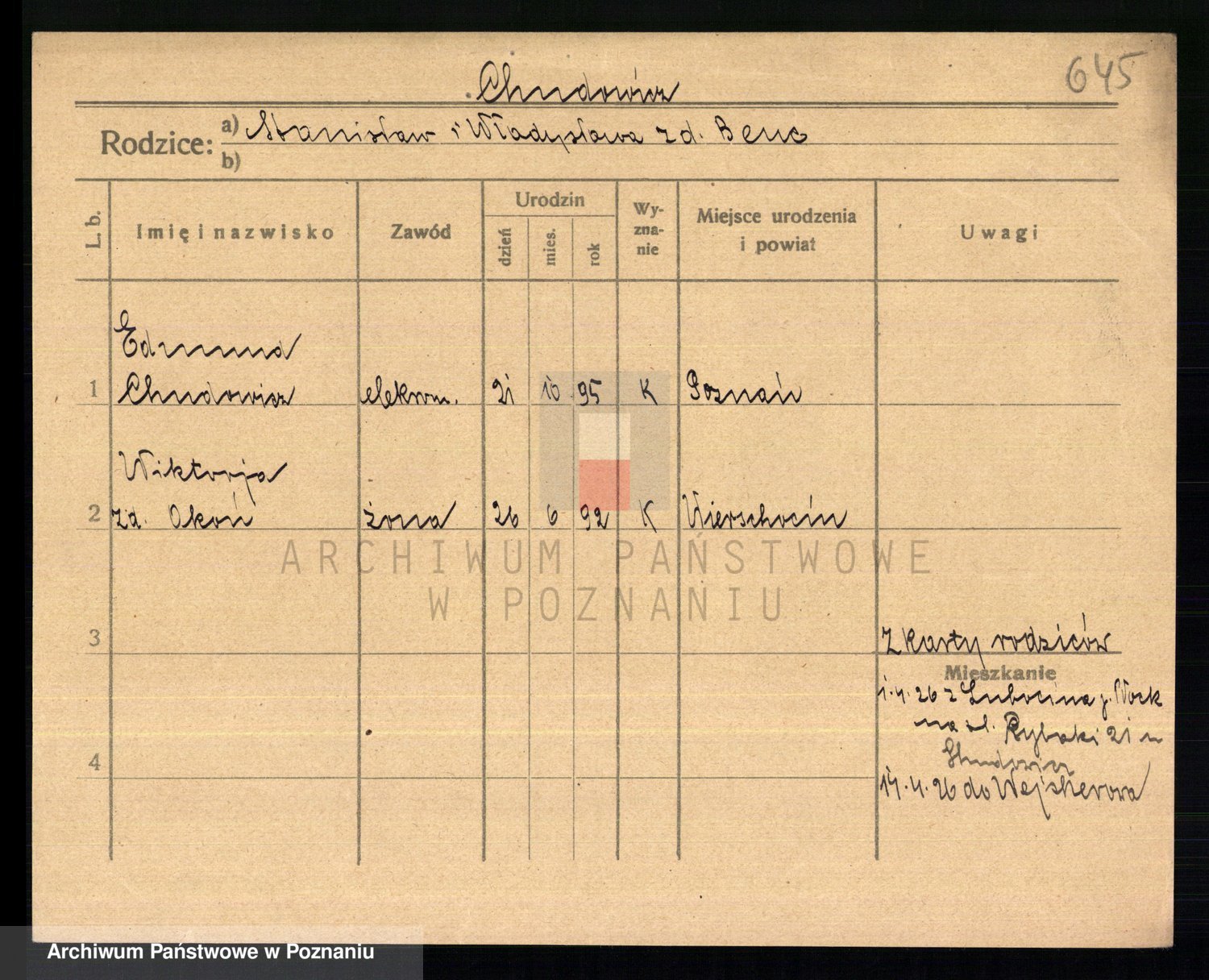 Podgląd karty osobowej dostępny jest po kliknięciu na nazwisko lub ikonkę karty. Można dokonywać powiększenia (ikony na górze) lub przechodzić między kolejnymi skanami (strzałki po bokach).