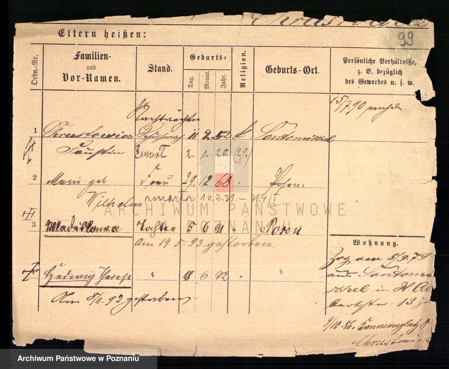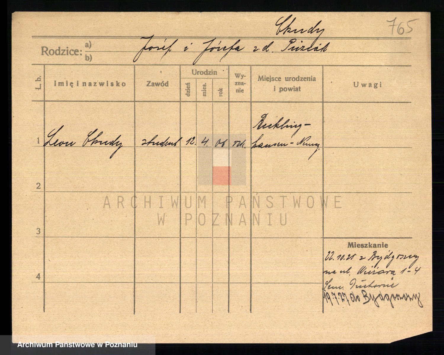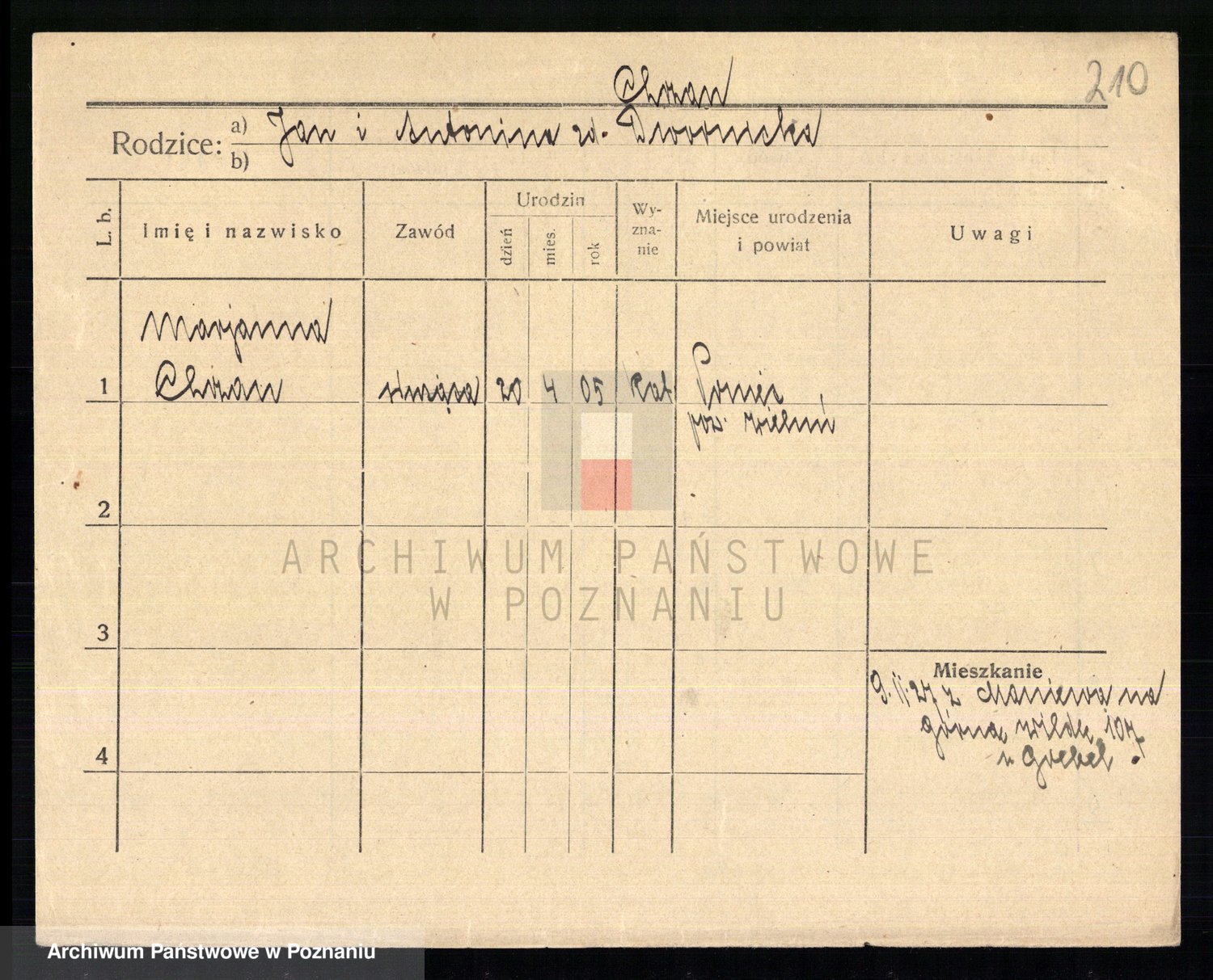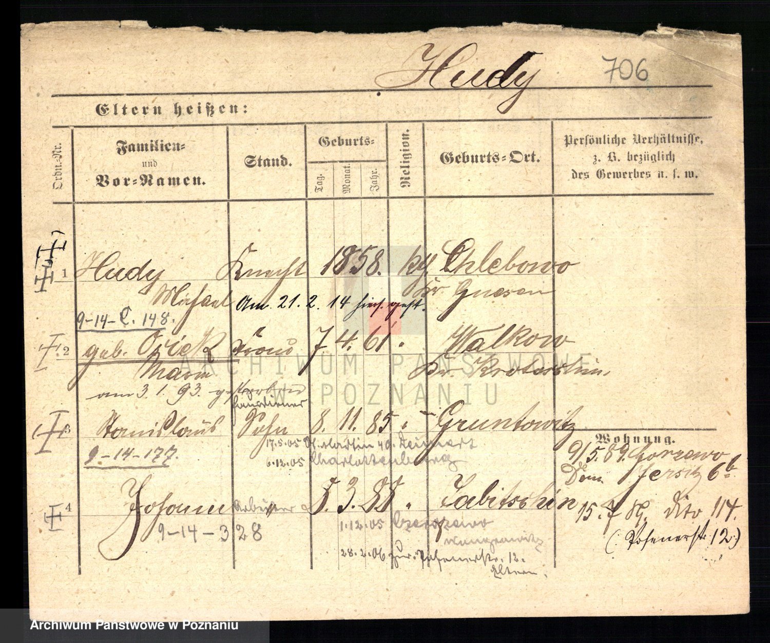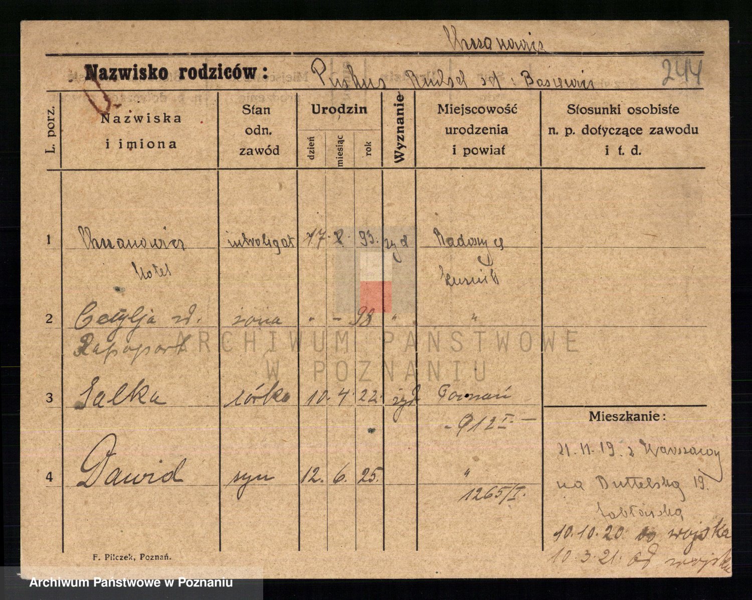 Podgląd karty osobowej dostępny jest po kliknięciu na nazwisko lub ikonkę karty. Można dokonywać powiększenia (ikony na górze) lub przechodzić między kolejnymi skanami (strzałki po bokach).