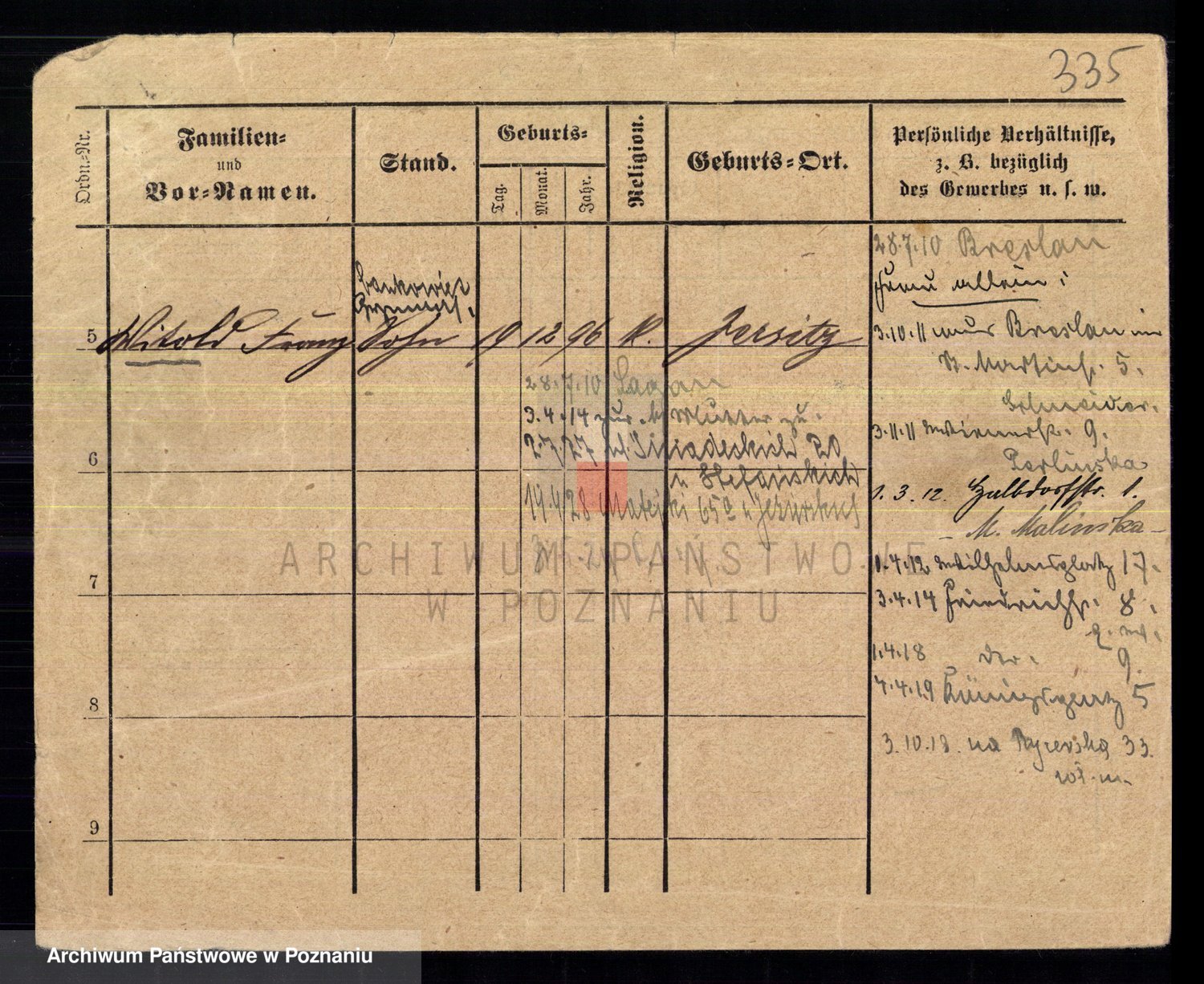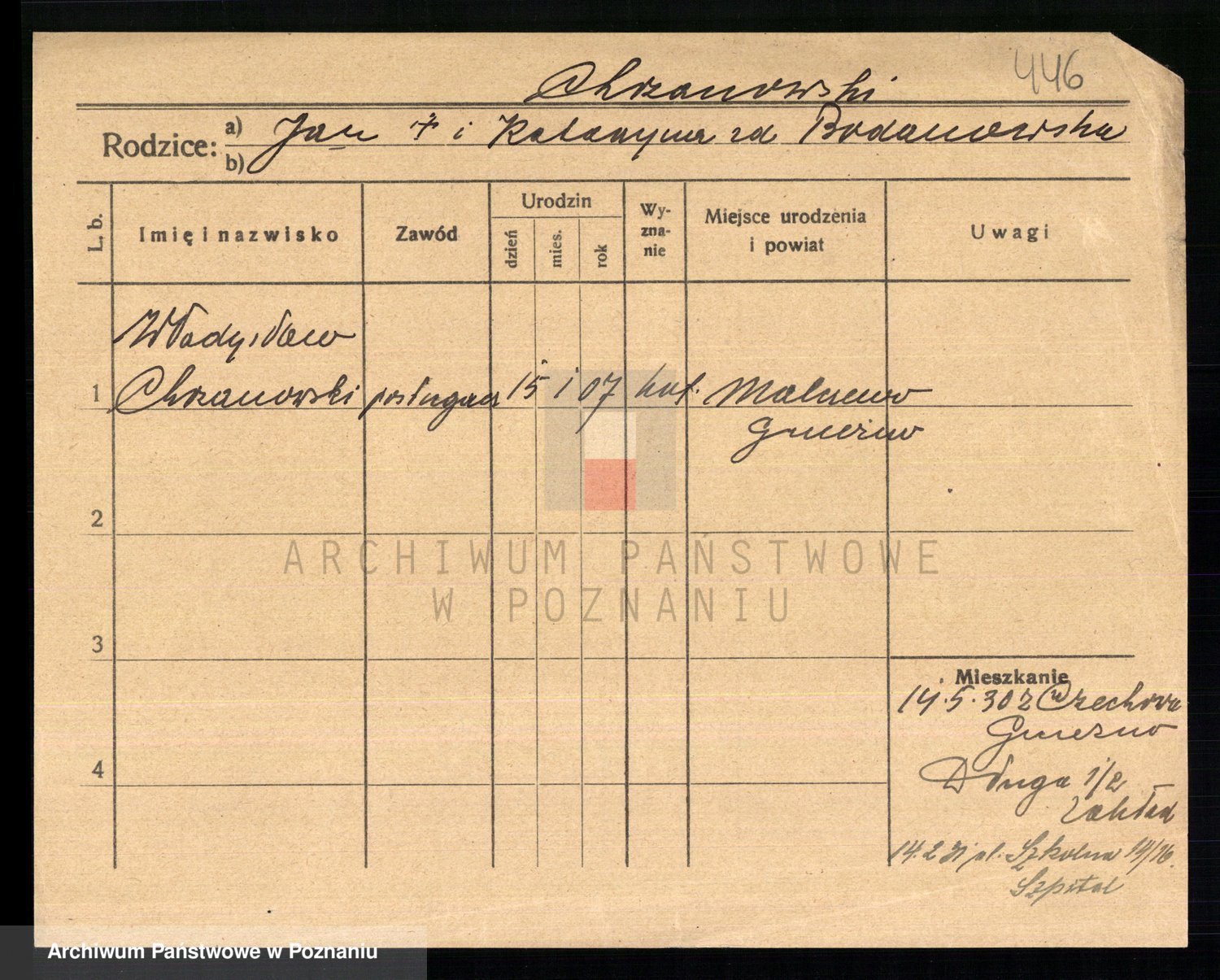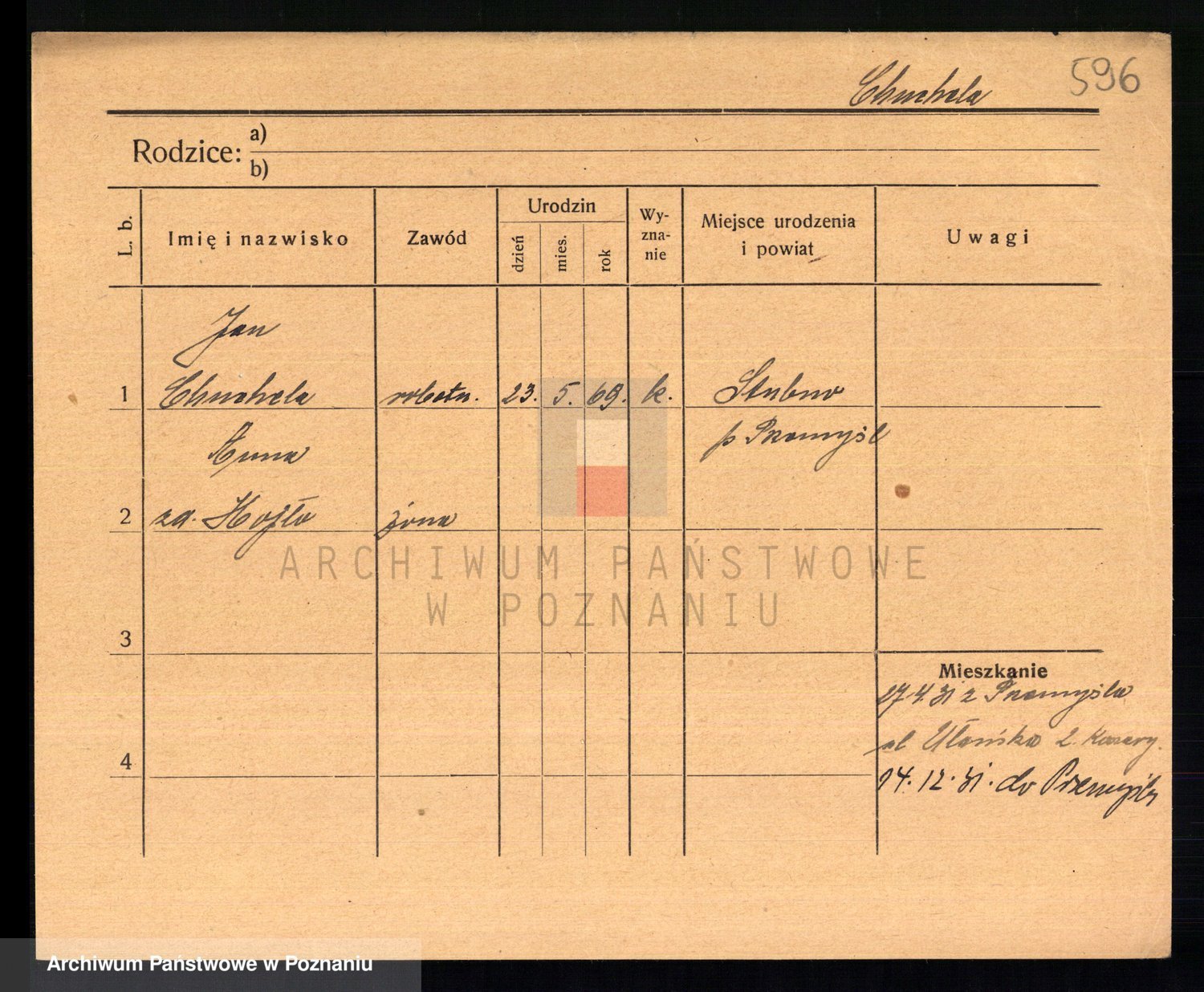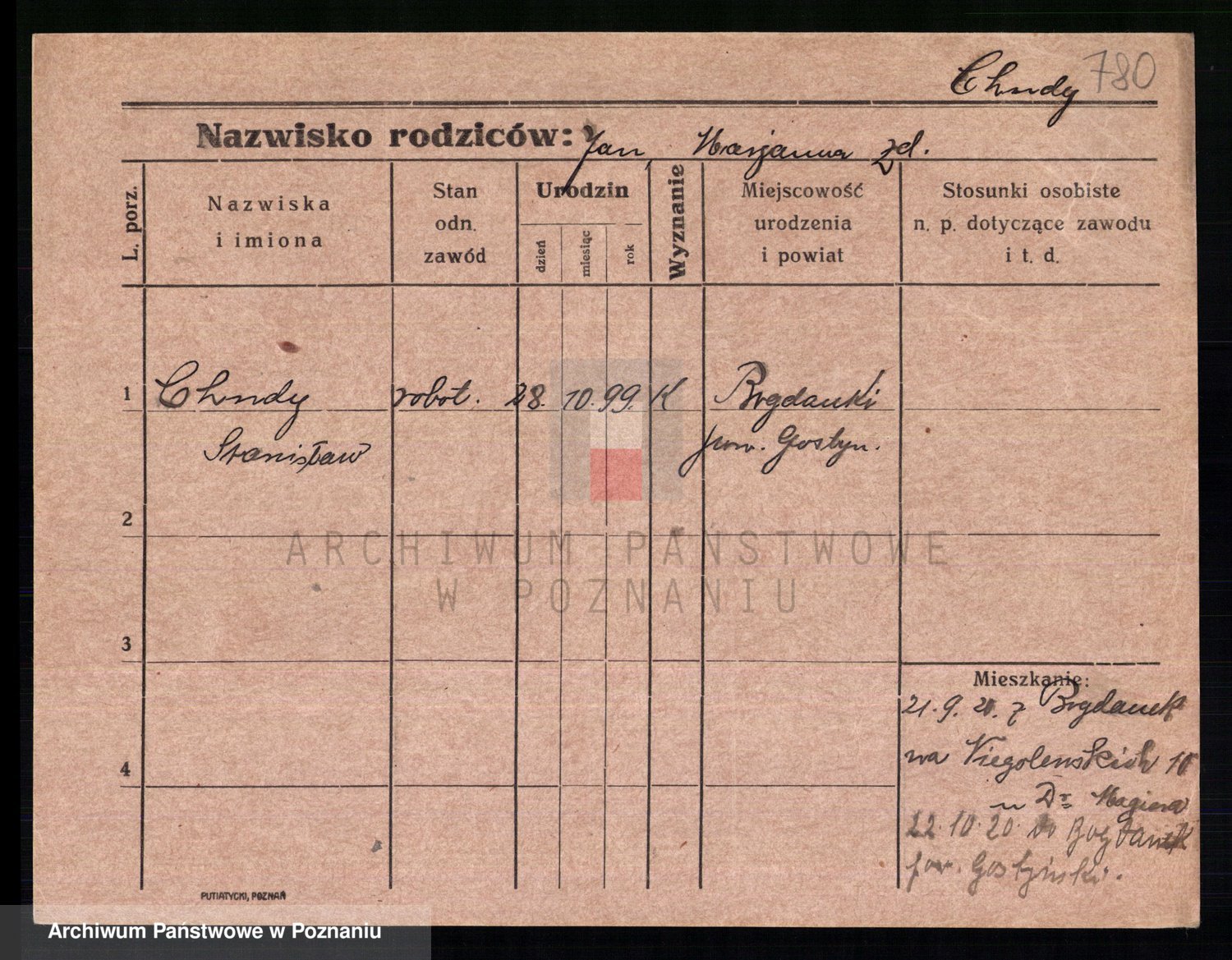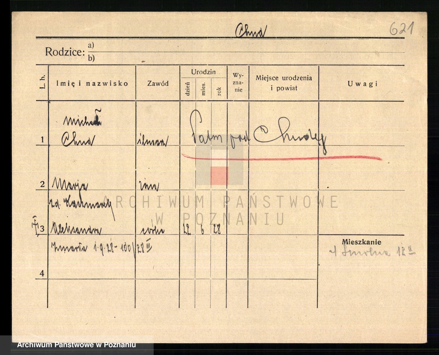 Podgląd karty osobowej dostępny jest po kliknięciu na nazwisko lub ikonkę karty. Można dokonywać powiększenia (ikony na górze) lub przechodzić między kolejnymi skanami (strzałki po bokach).