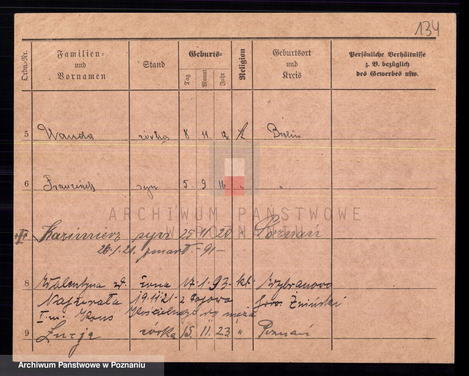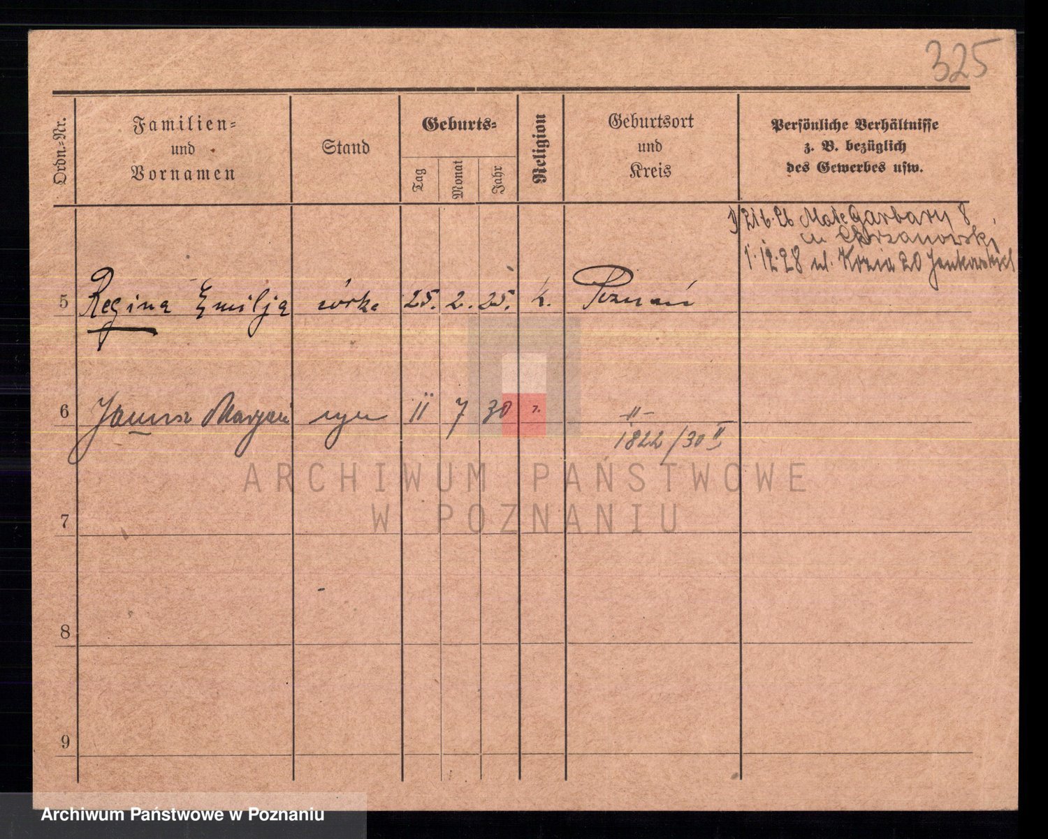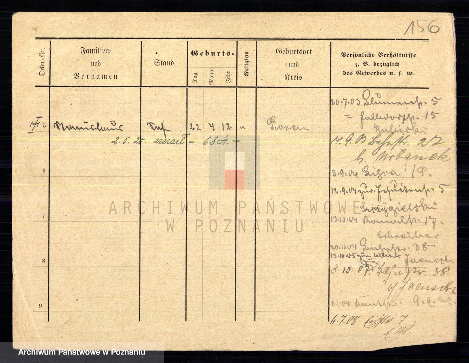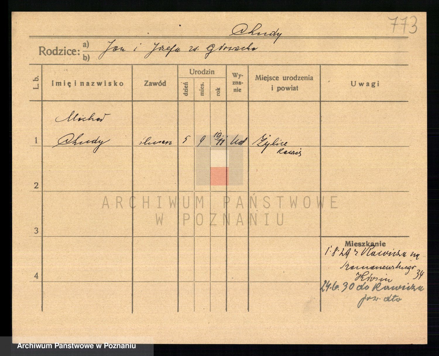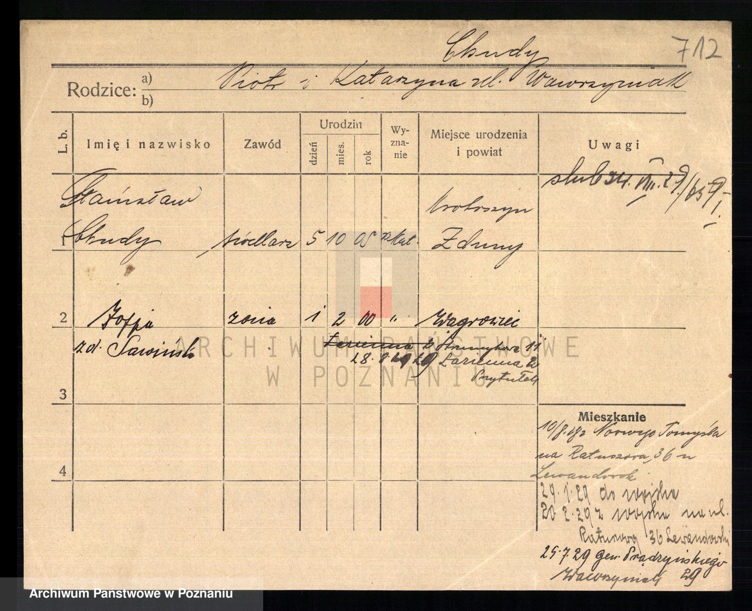 Podgląd karty osobowej dostępny jest po kliknięciu na nazwisko lub ikonkę karty. Można dokonywać powiększenia (ikony na górze) lub przechodzić między kolejnymi skanami (strzałki po bokach).