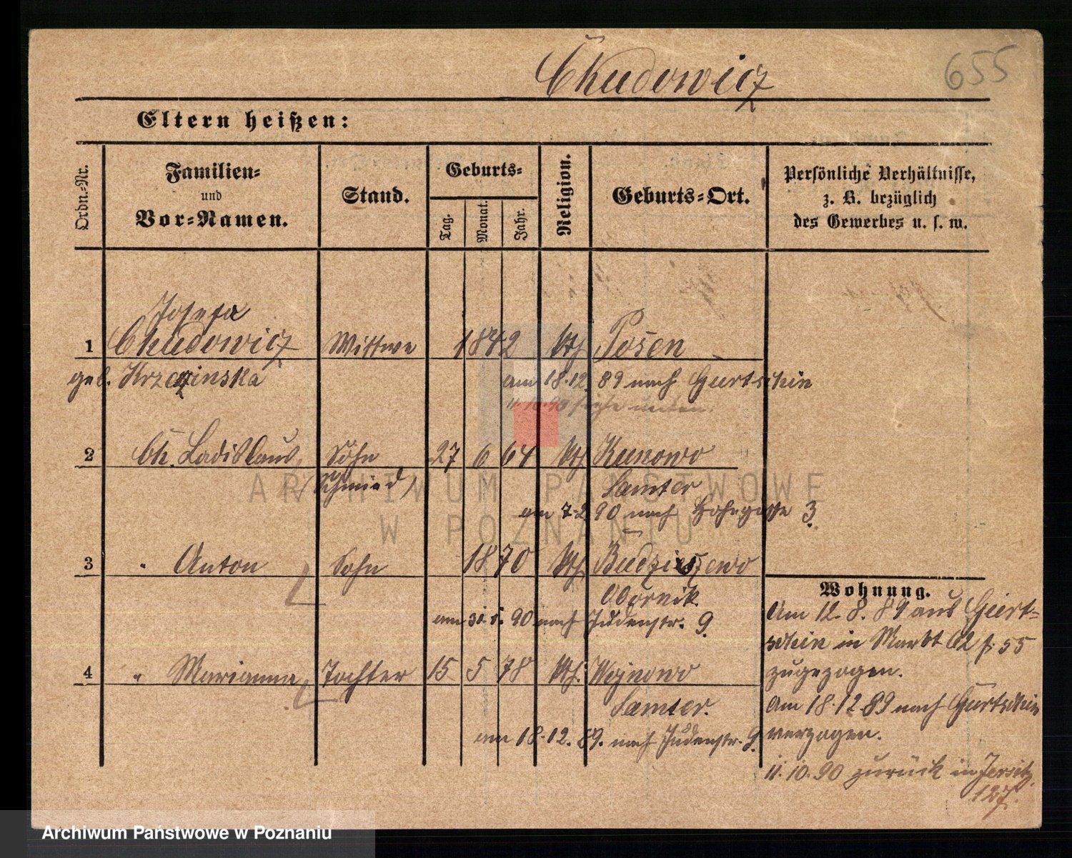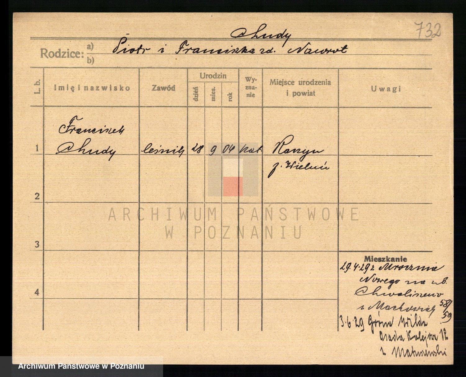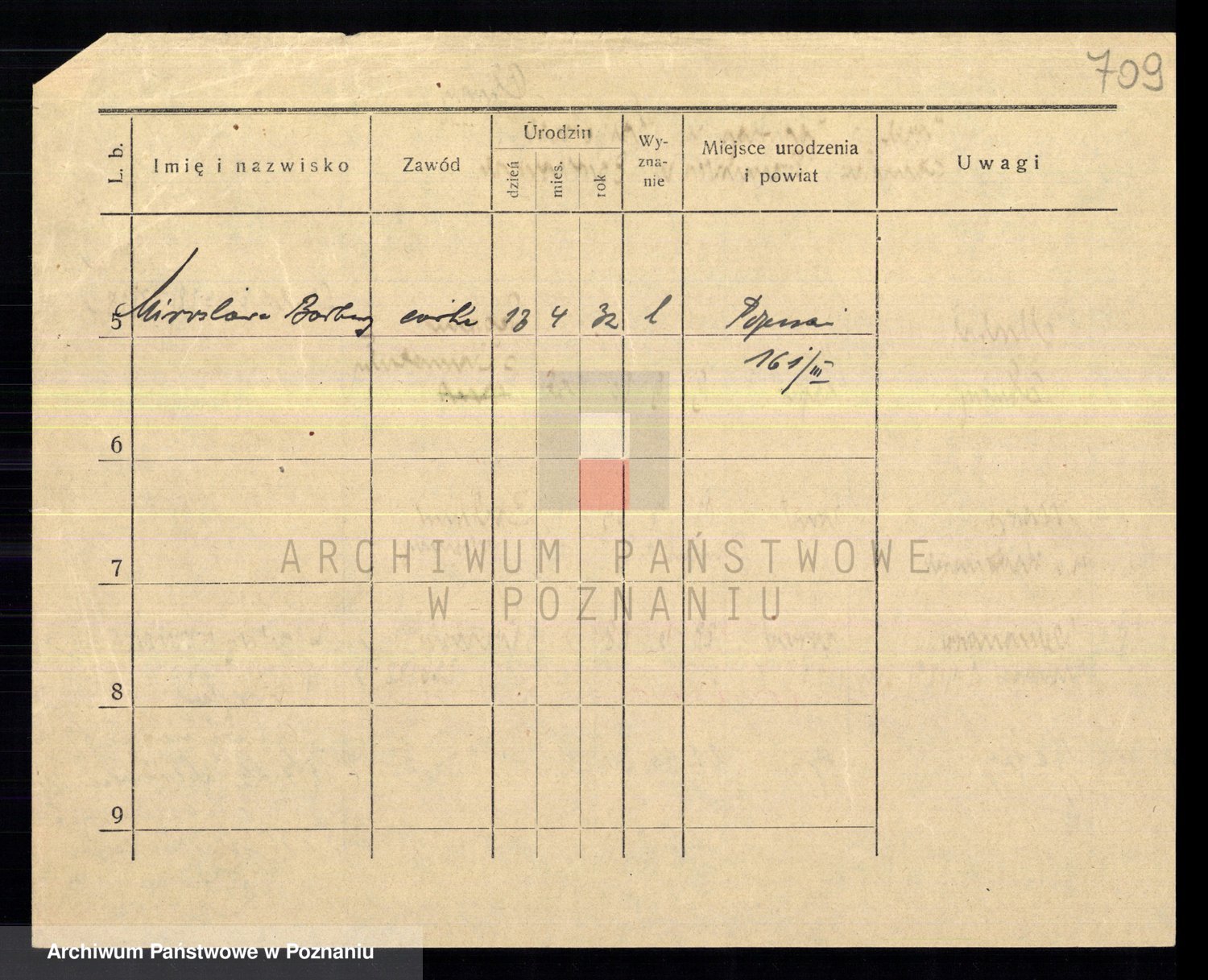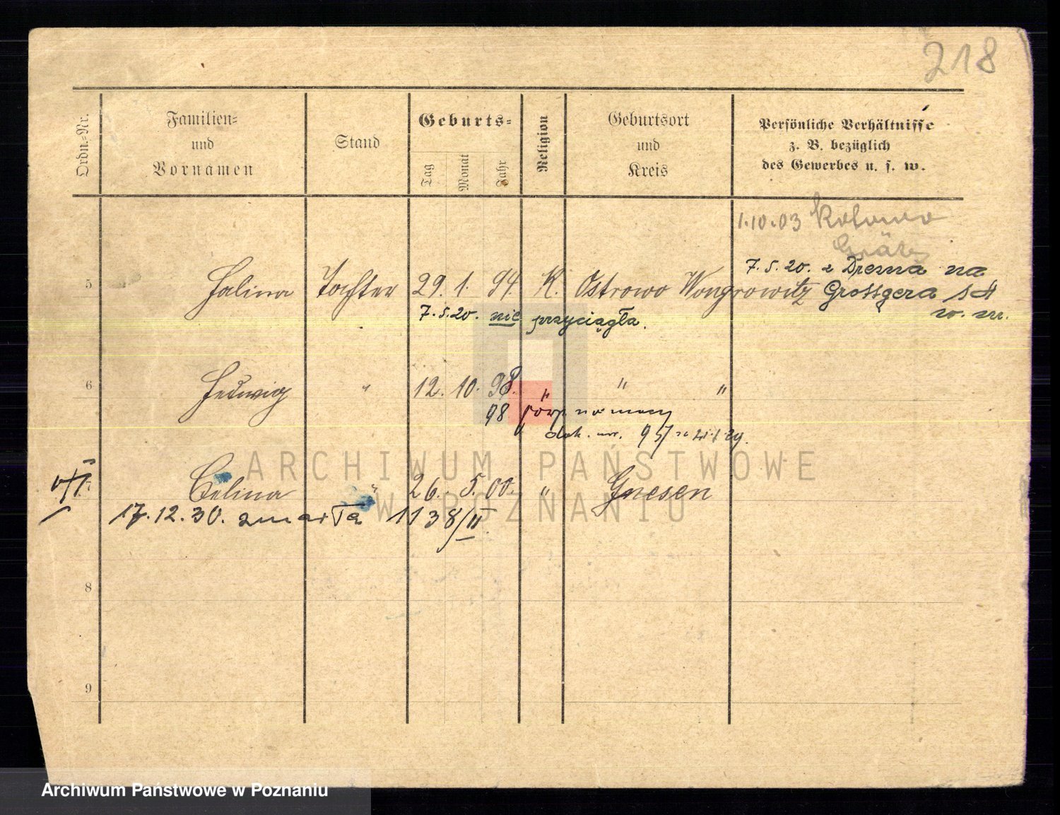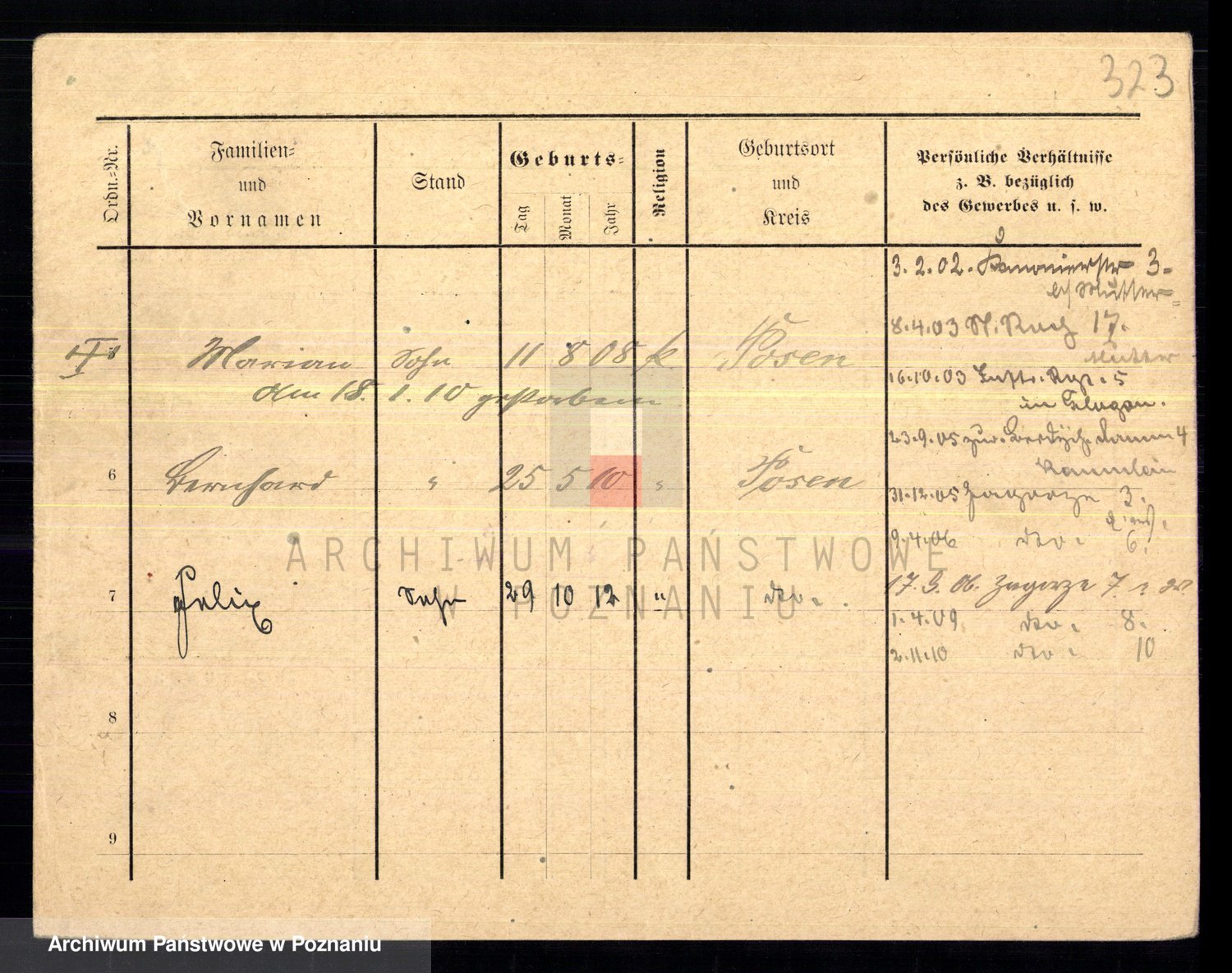 Podgląd karty osobowej dostępny jest po kliknięciu na nazwisko lub ikonkę karty. Można dokonywać powiększenia (ikony na górze) lub przechodzić między kolejnymi skanami (strzałki po bokach).