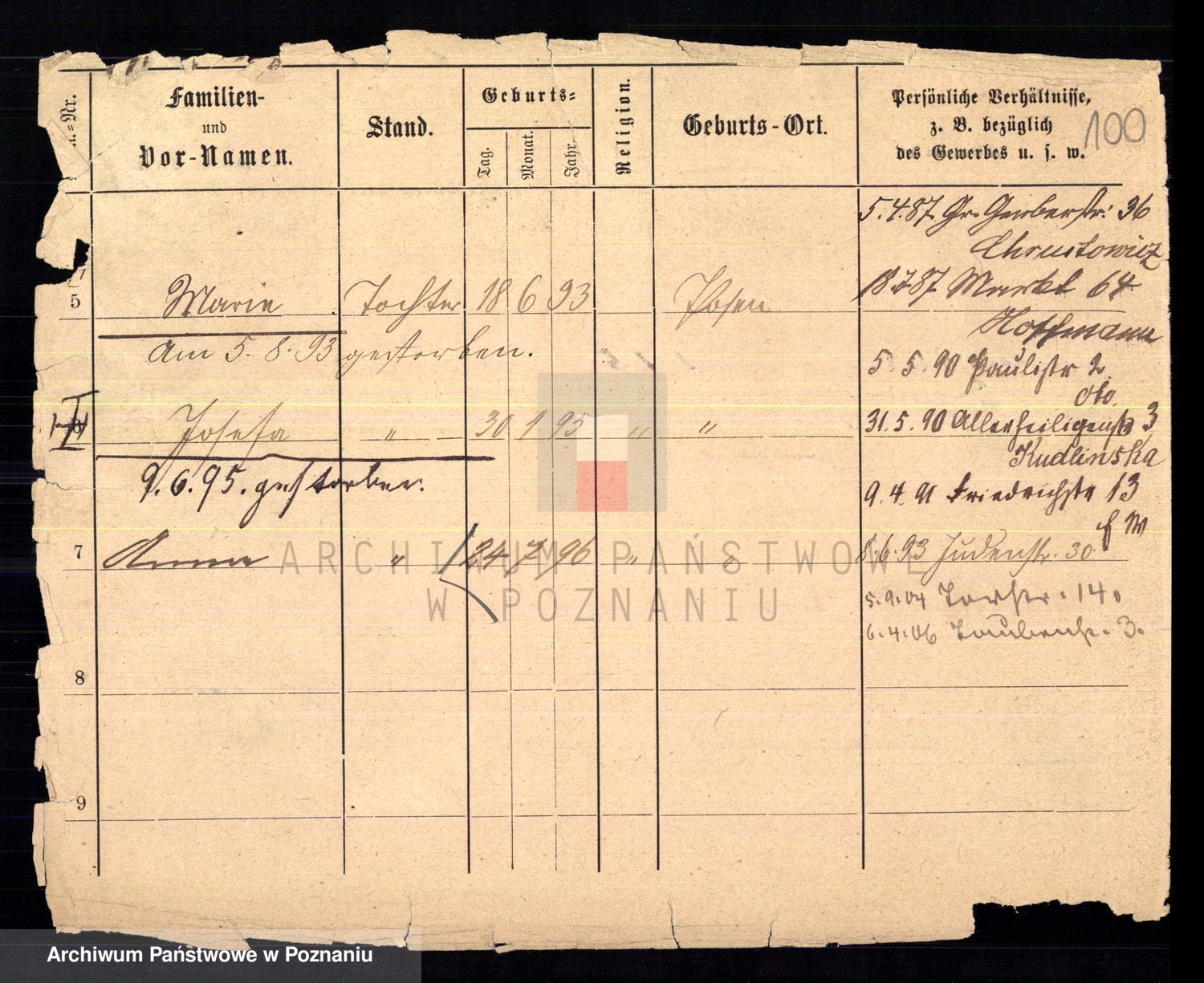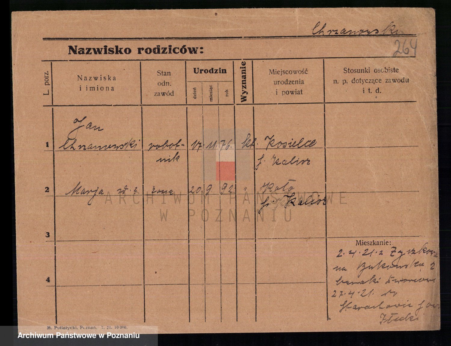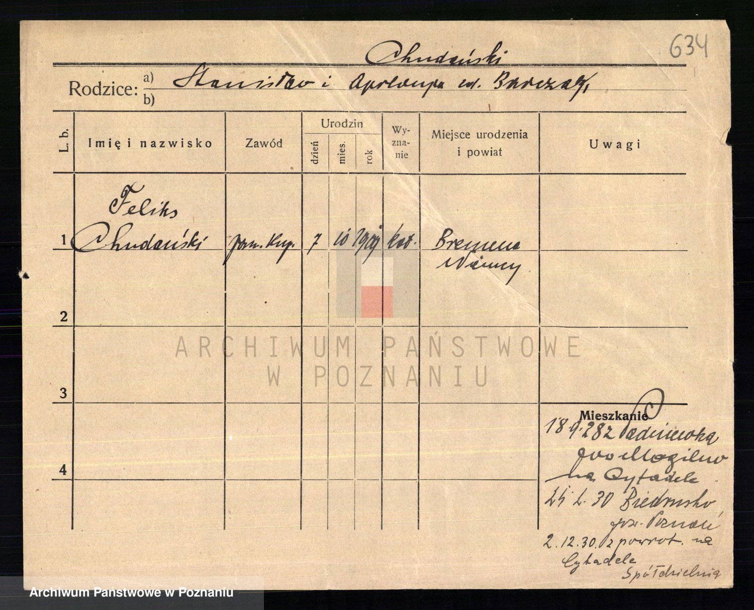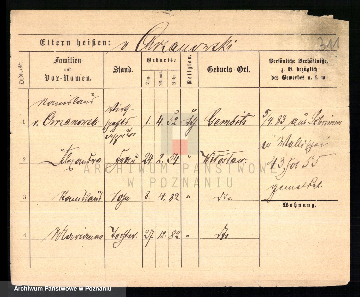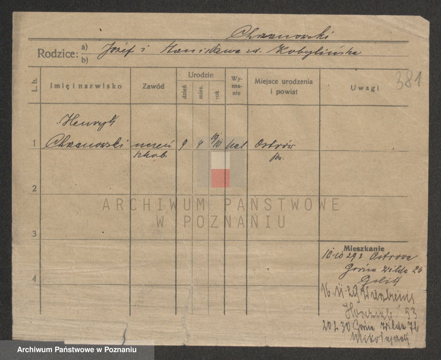 Podgląd karty osobowej dostępny jest po kliknięciu na nazwisko lub ikonkę karty. Można dokonywać powiększenia (ikony na górze) lub przechodzić między kolejnymi skanami (strzałki po bokach).