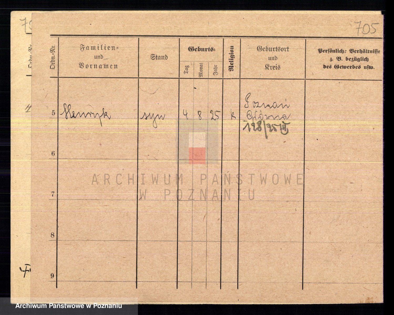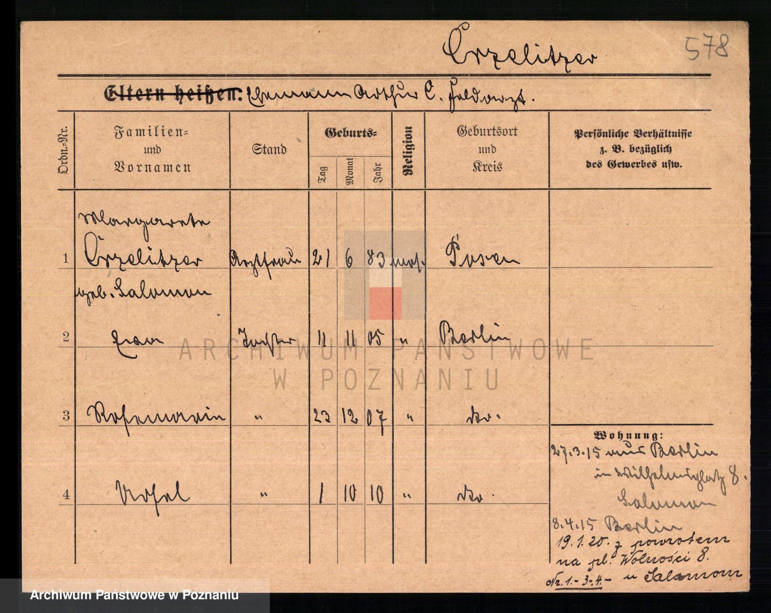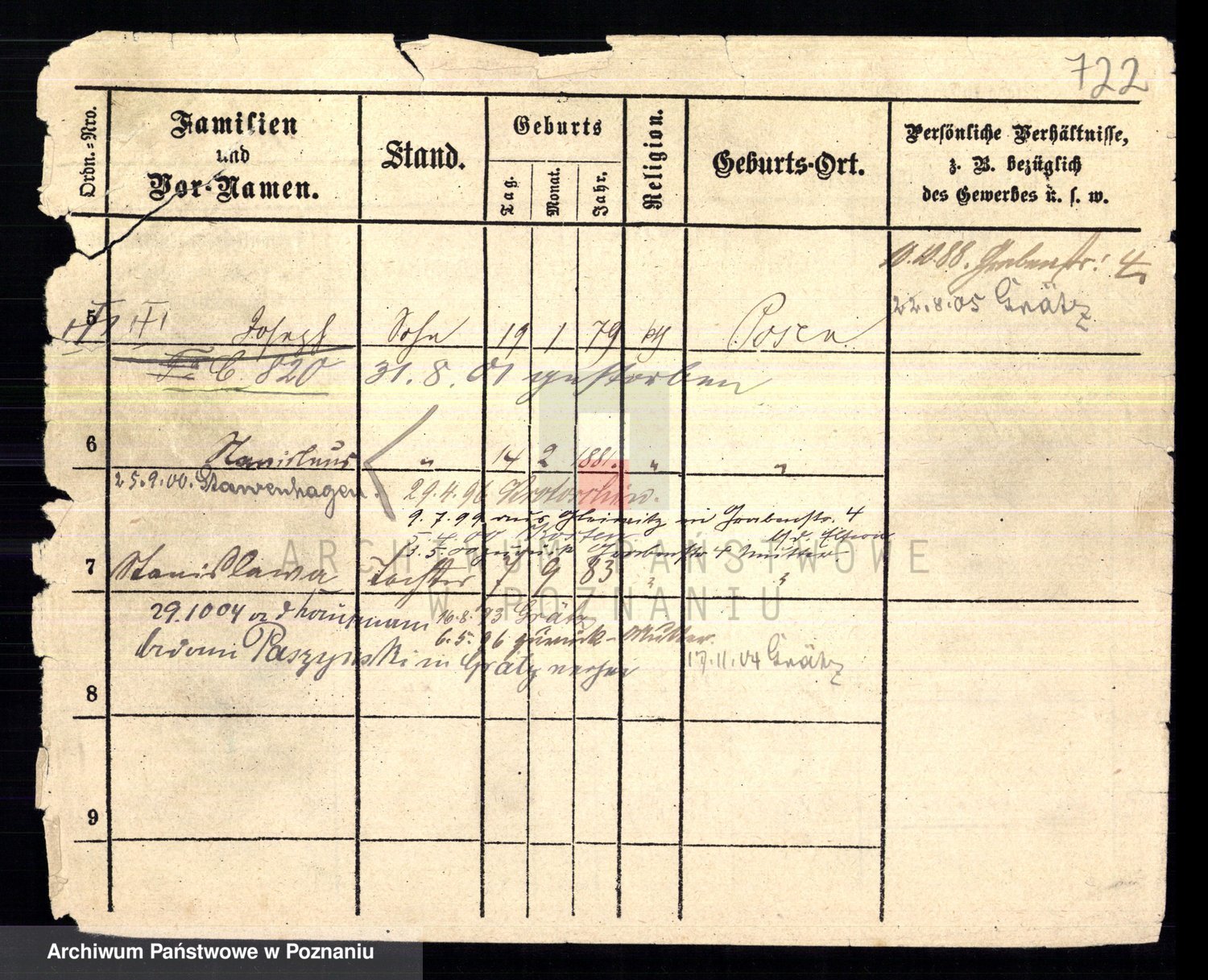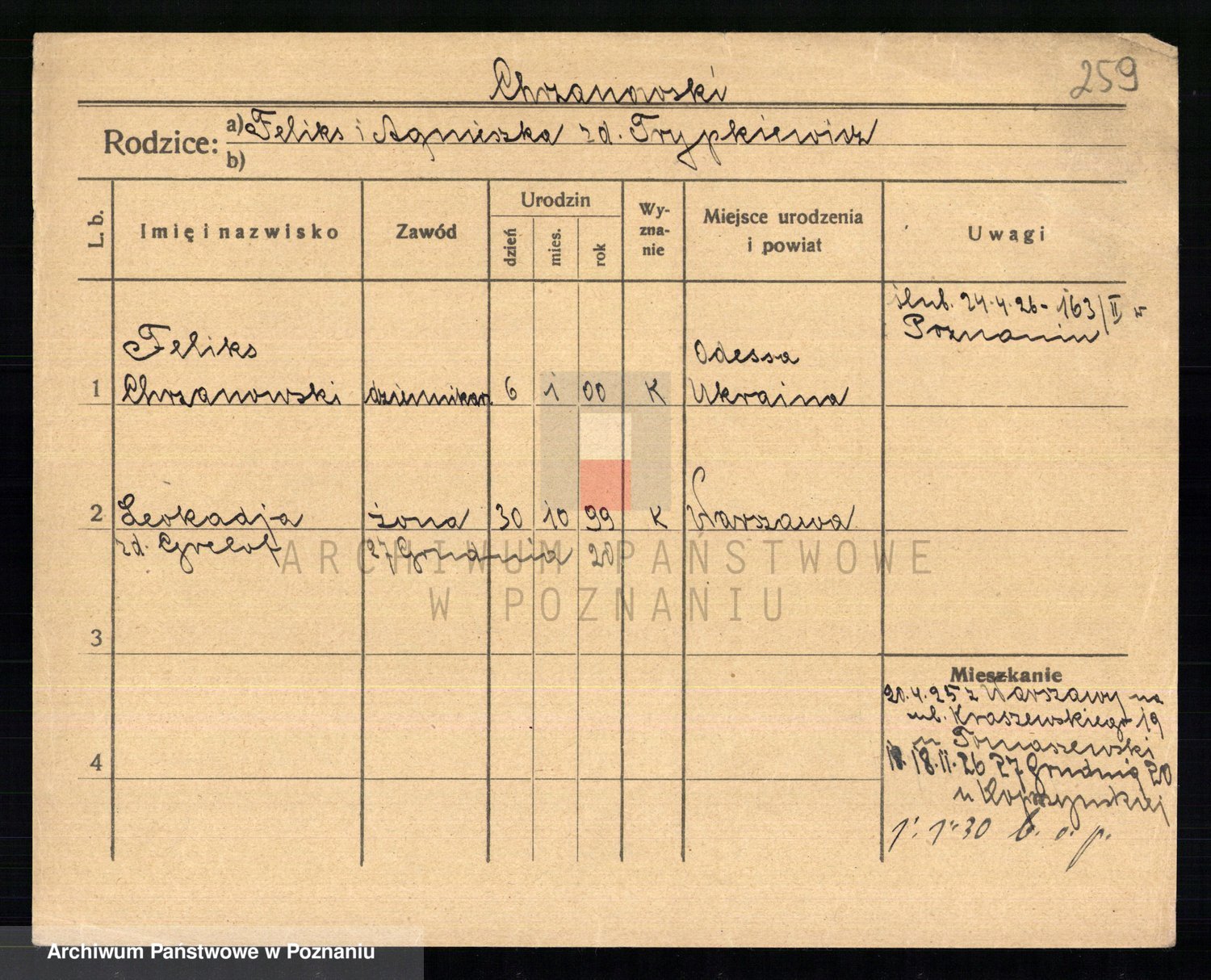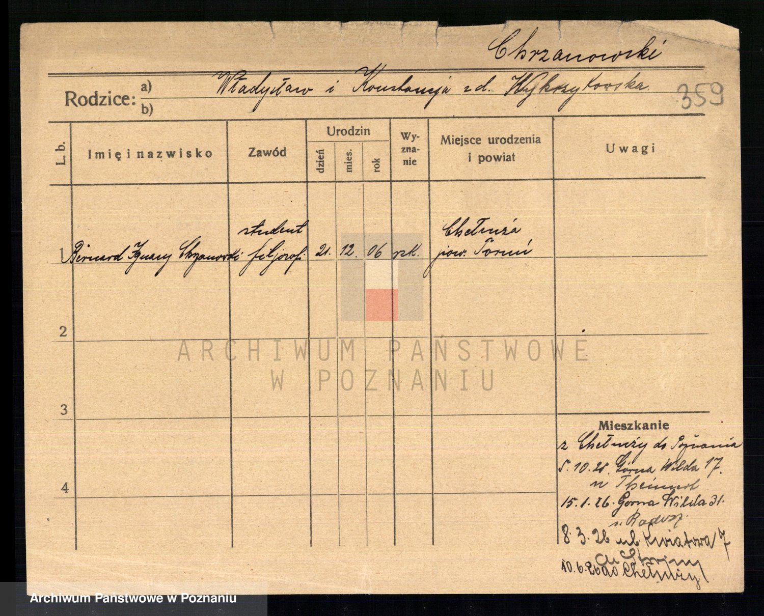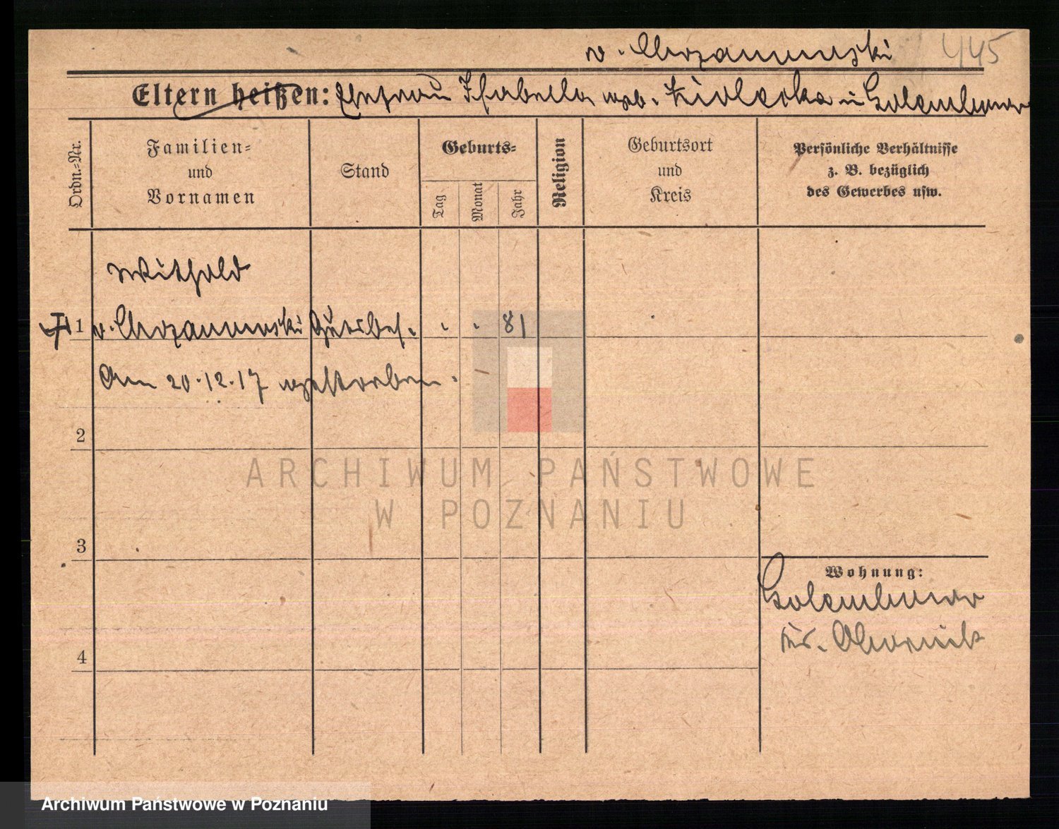 Podgląd karty osobowej dostępny jest po kliknięciu na nazwisko lub ikonkę karty. Można dokonywać powiększenia (ikony na górze) lub przechodzić między kolejnymi skanami (strzałki po bokach).