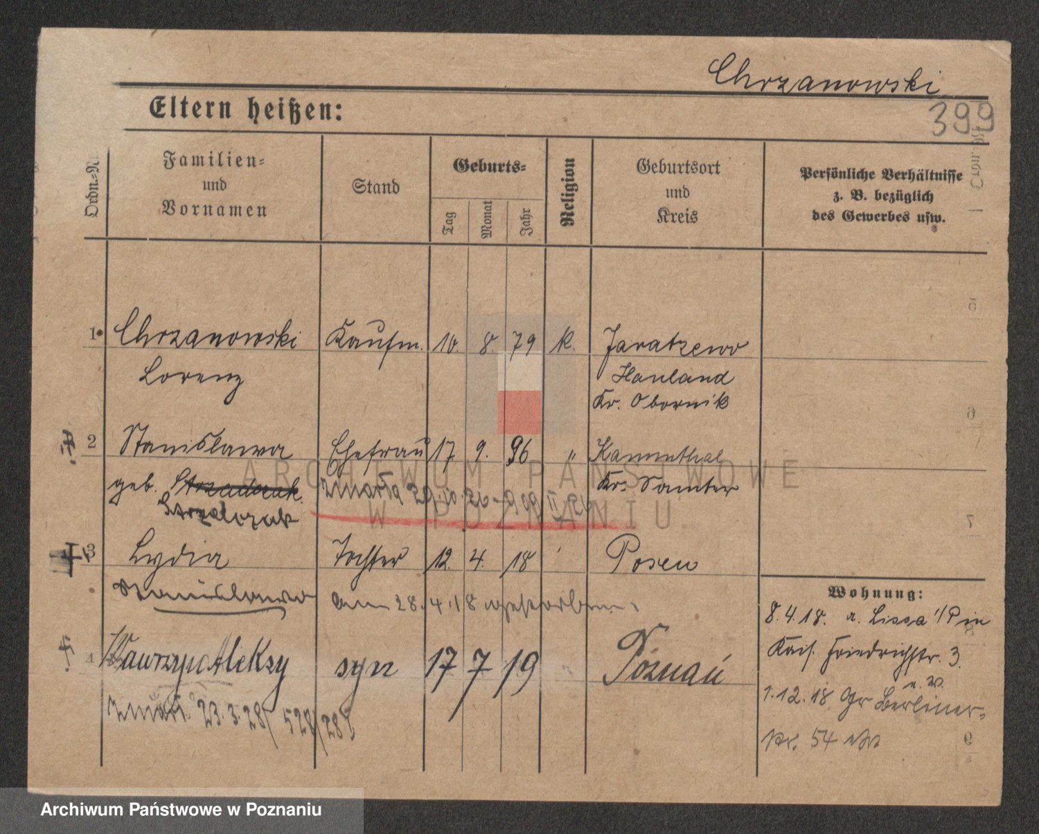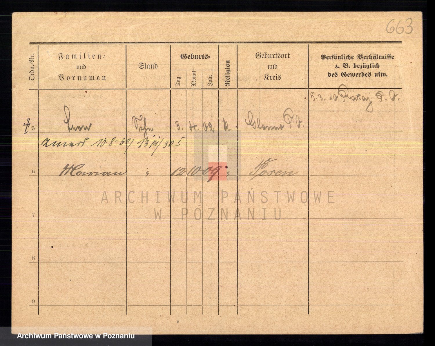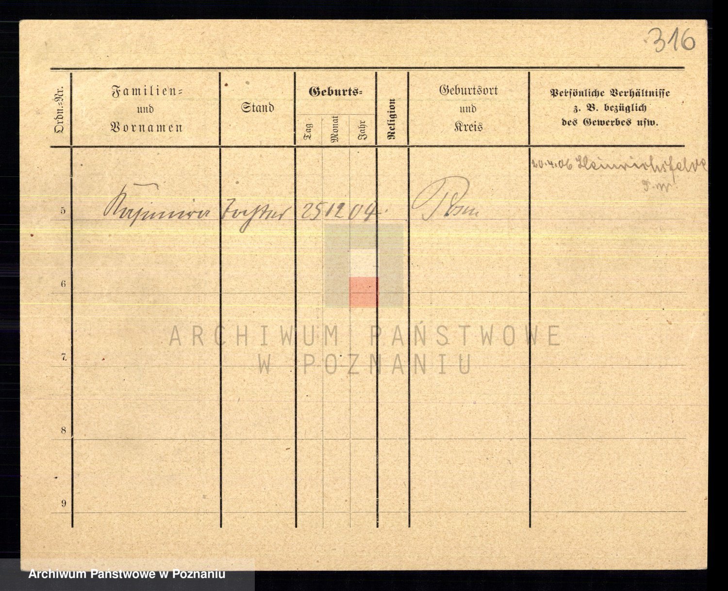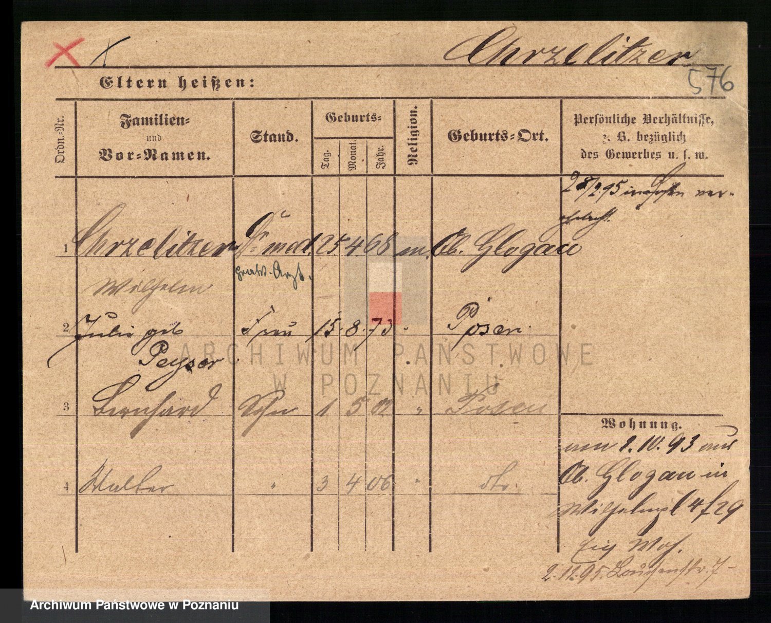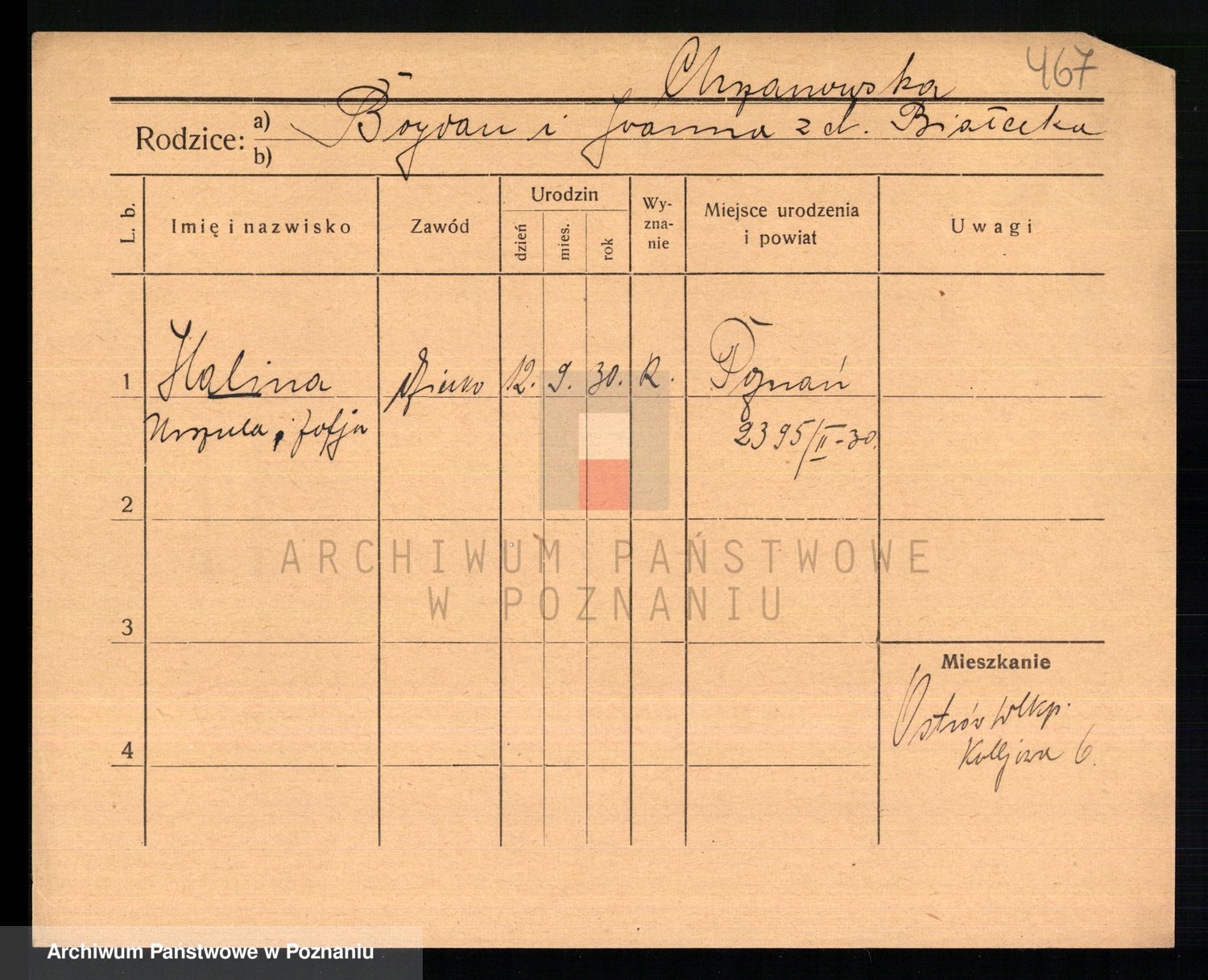 Podgląd karty osobowej dostępny jest po kliknięciu na nazwisko lub ikonkę karty. Można dokonywać powiększenia (ikony na górze) lub przechodzić między kolejnymi skanami (strzałki po bokach).