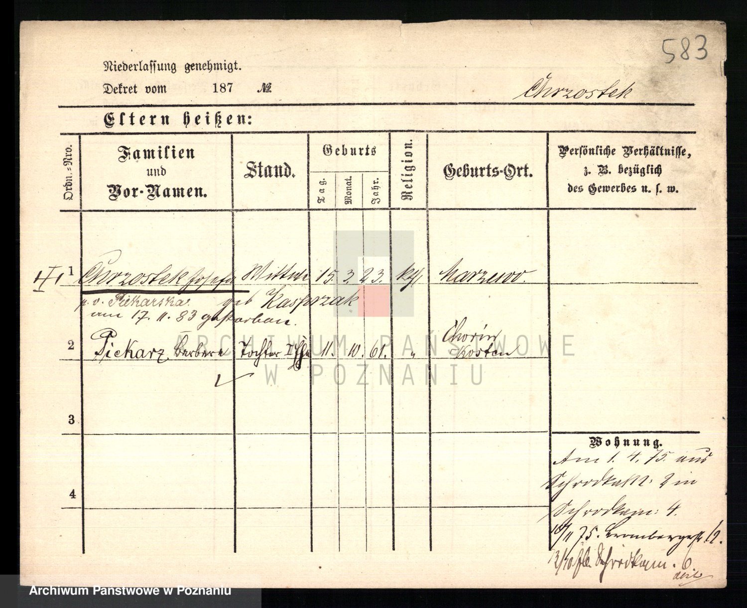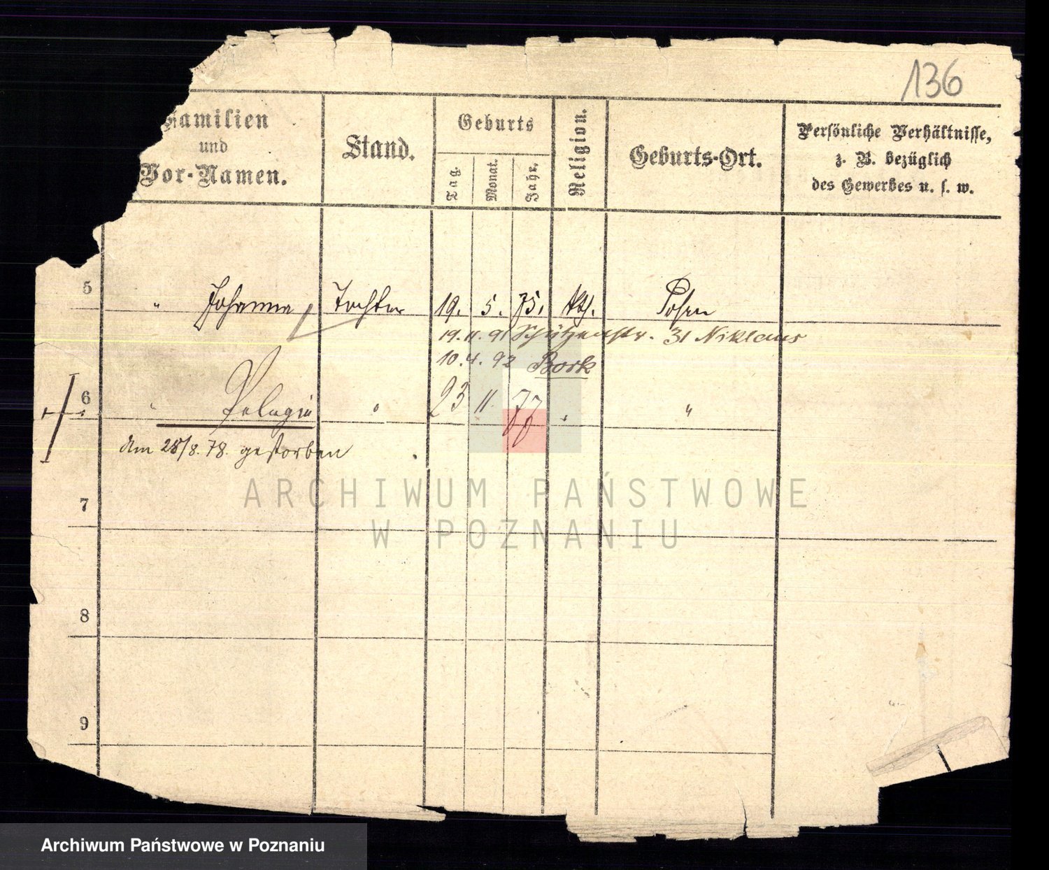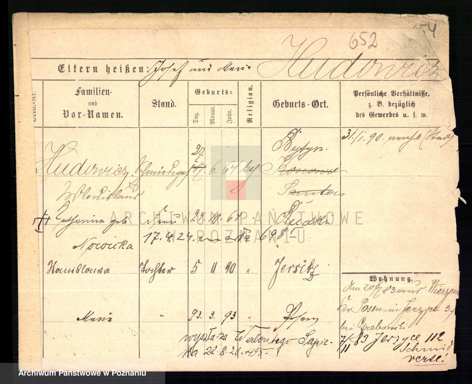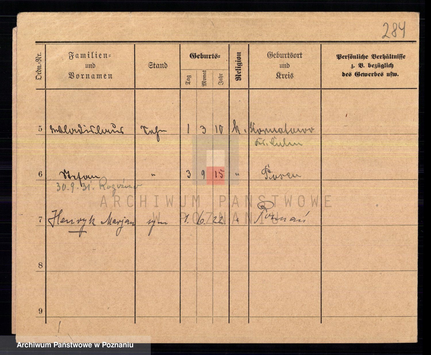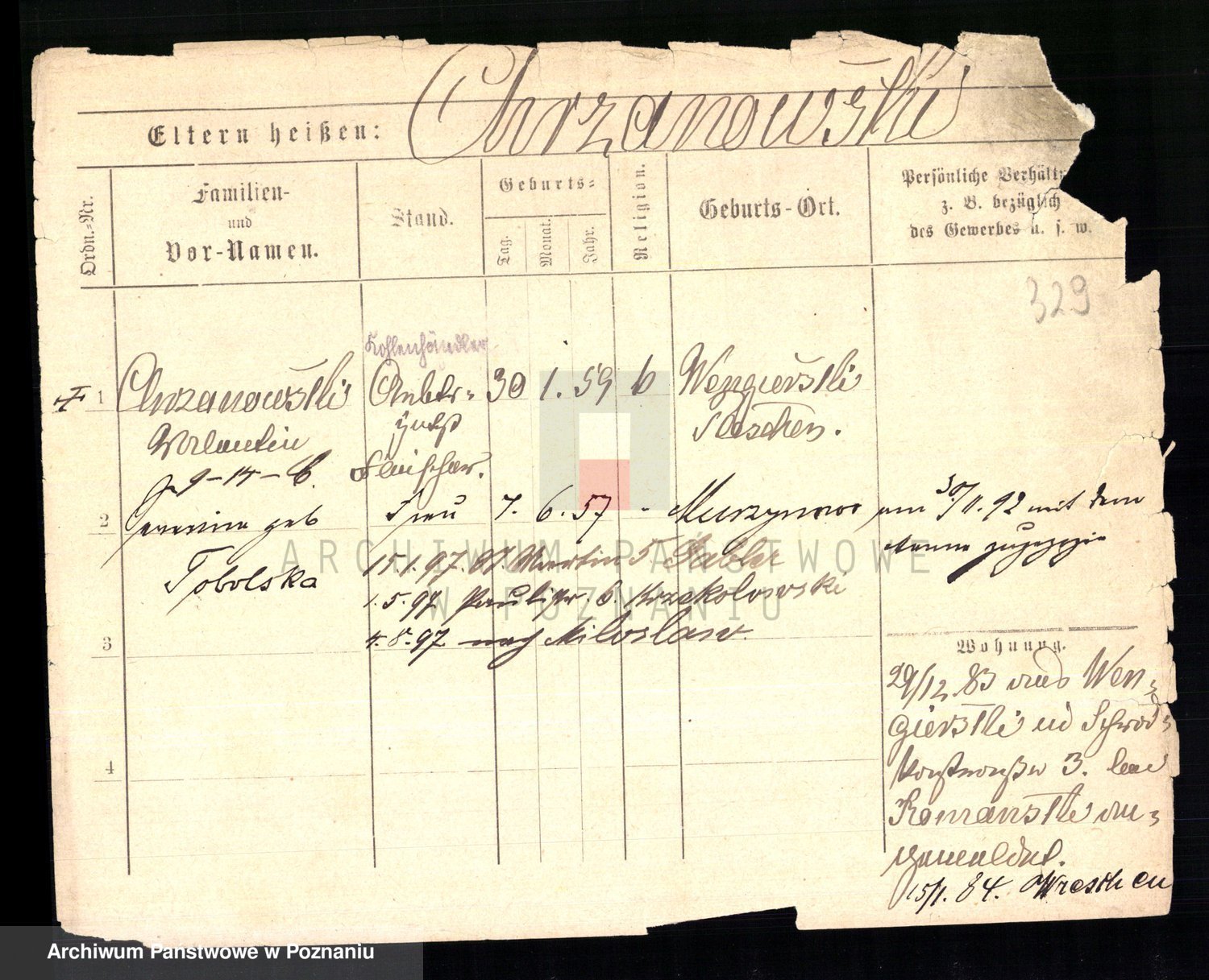 Podgląd karty osobowej dostępny jest po kliknięciu na nazwisko lub ikonkę karty. Można dokonywać powiększenia (ikony na górze) lub przechodzić między kolejnymi skanami (strzałki po bokach).