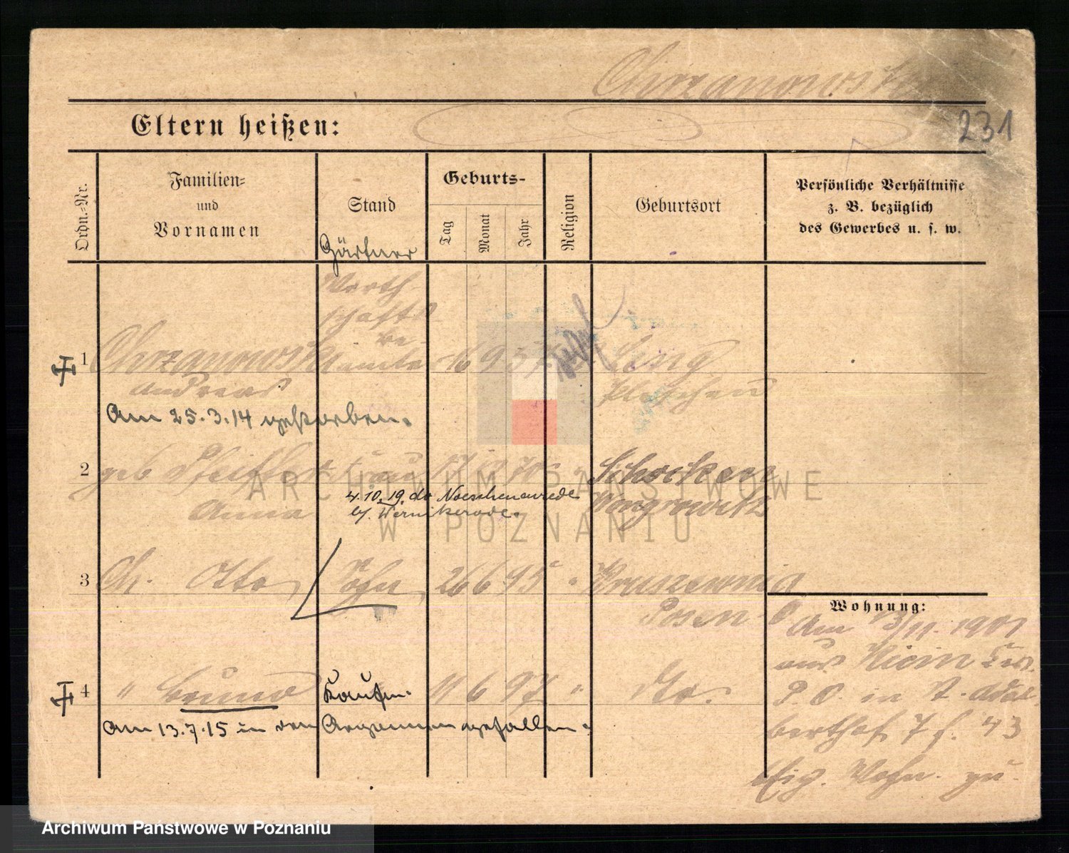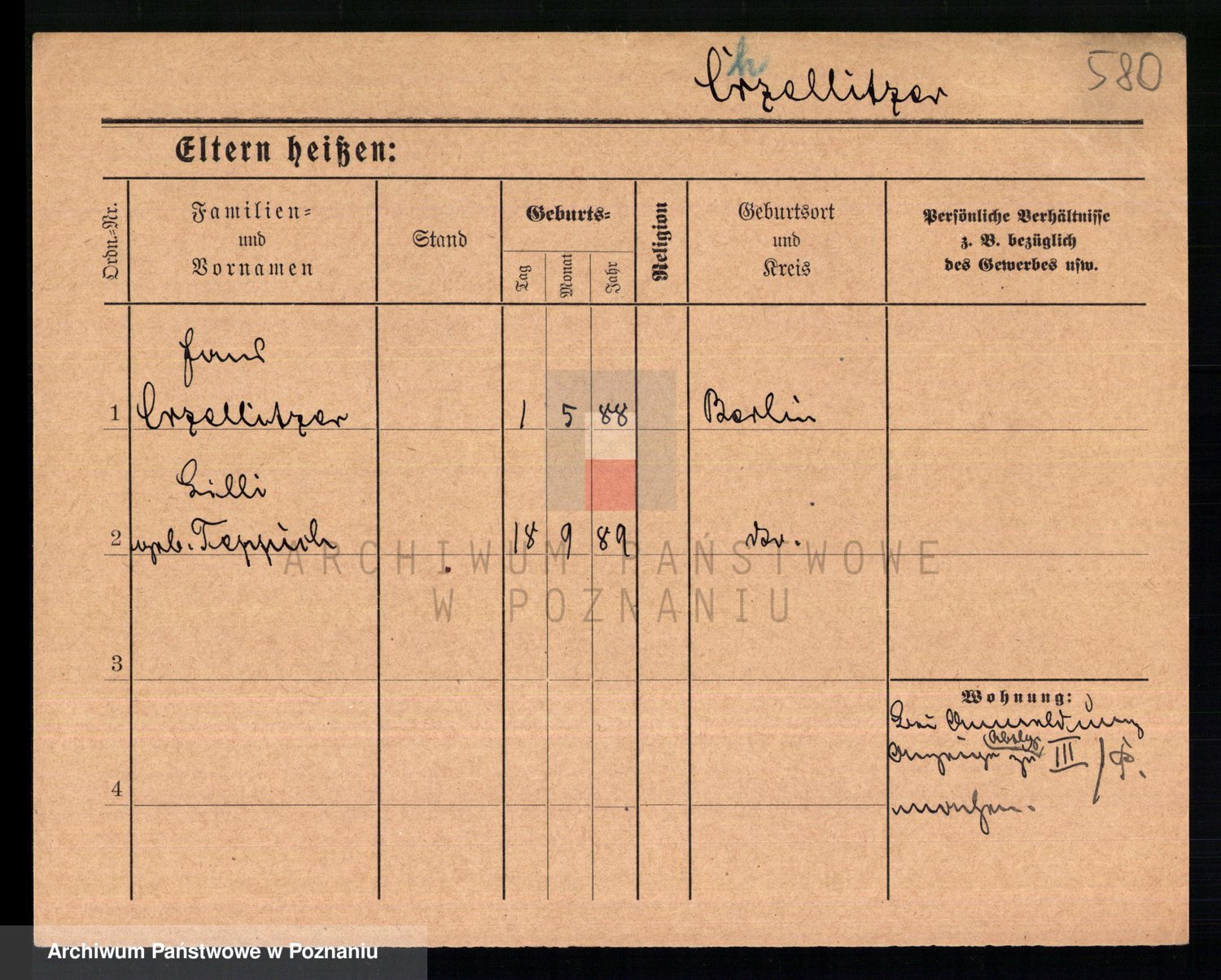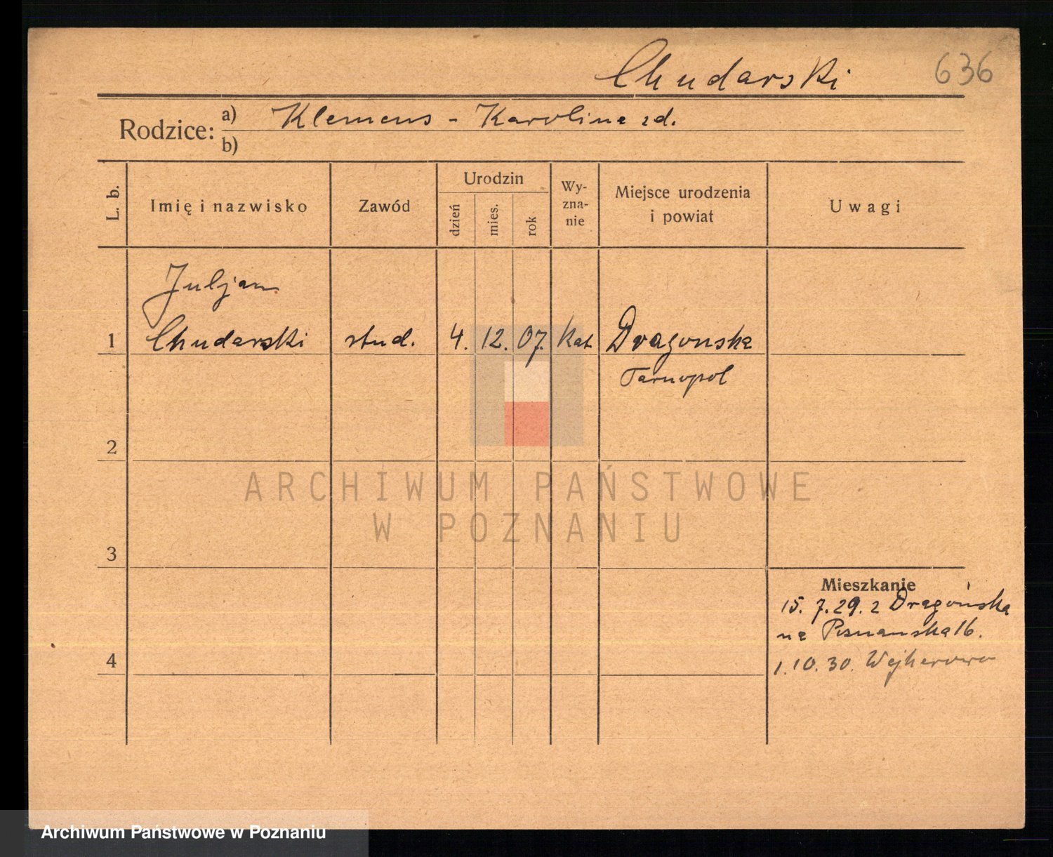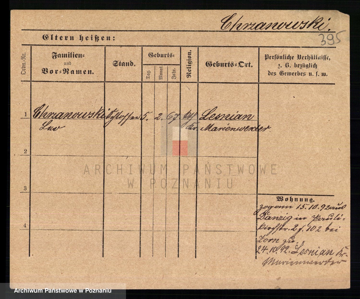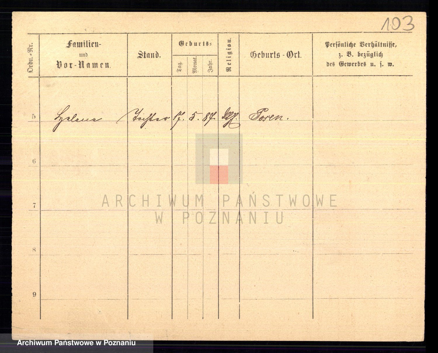 Podgląd karty osobowej dostępny jest po kliknięciu na nazwisko lub ikonkę karty. Można dokonywać powiększenia (ikony na górze) lub przechodzić między kolejnymi skanami (strzałki po bokach).