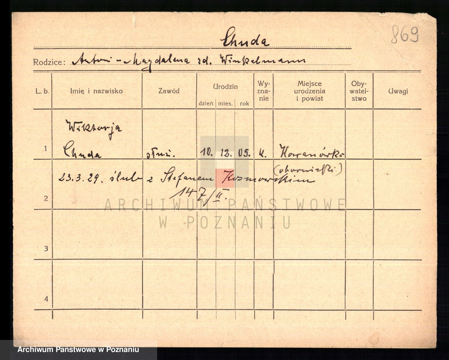 Chroscielewski z d. Kalinski, Marie