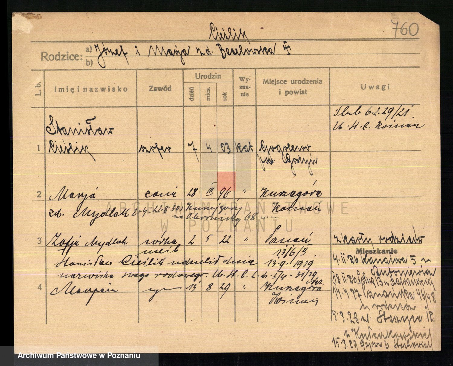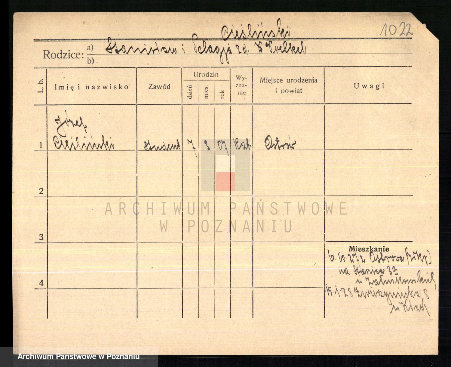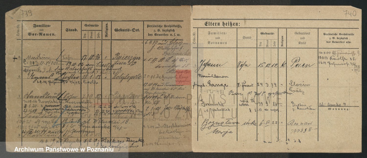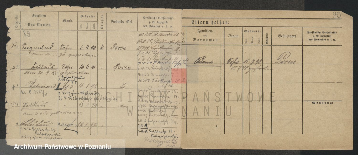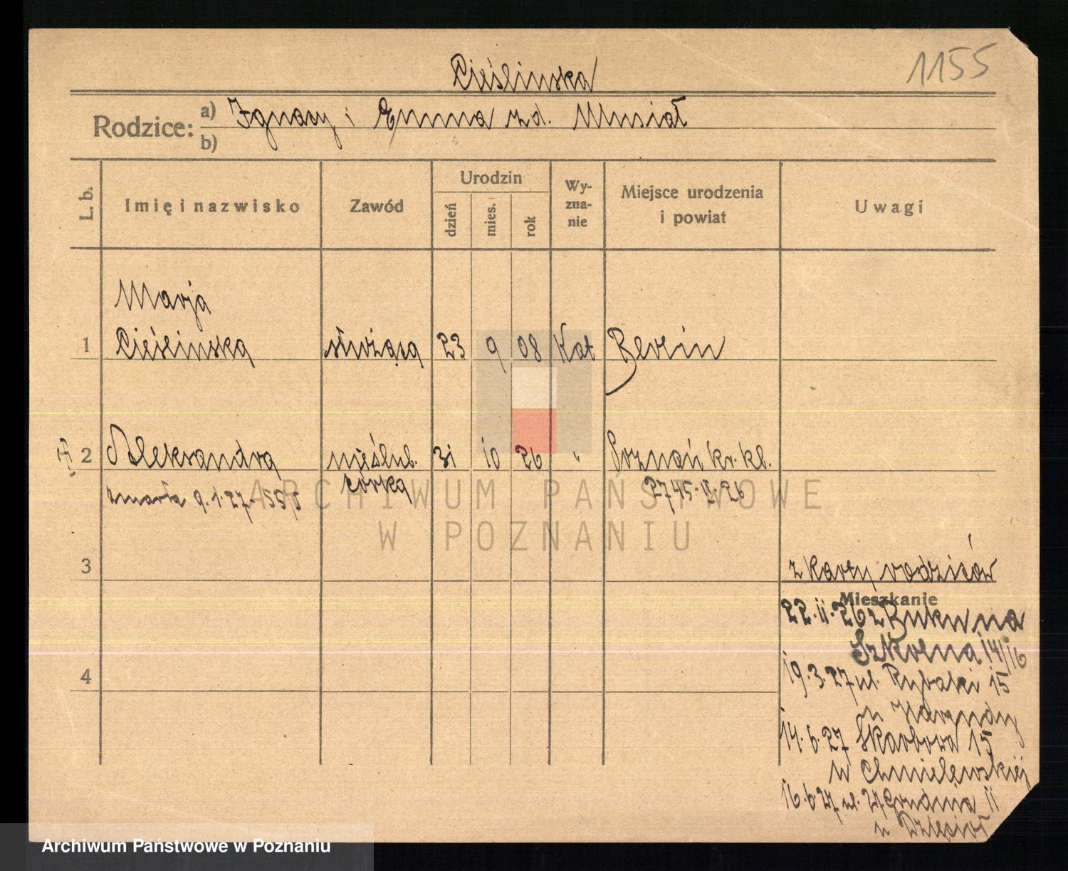 Podgląd karty osobowej dostępny jest po kliknięciu na nazwisko lub ikonkę karty. Można dokonywać powiększenia (ikony na górze) lub przechodzić między kolejnymi skanami (strzałki po bokach).