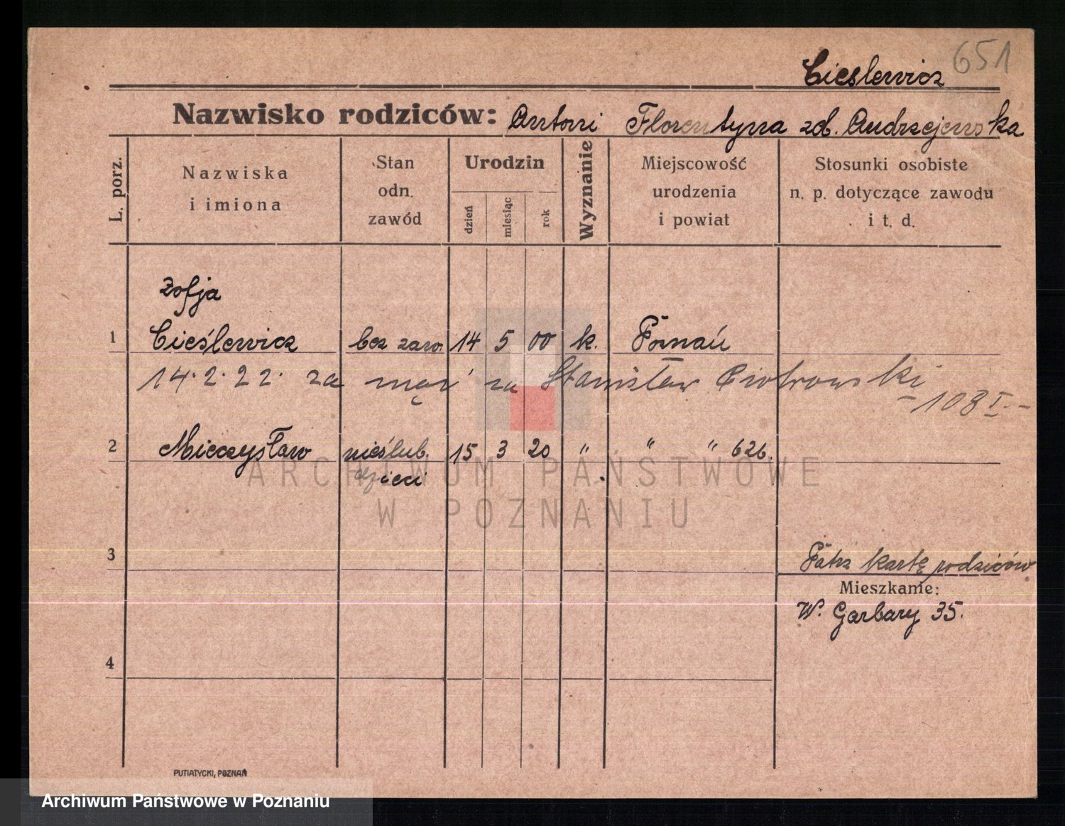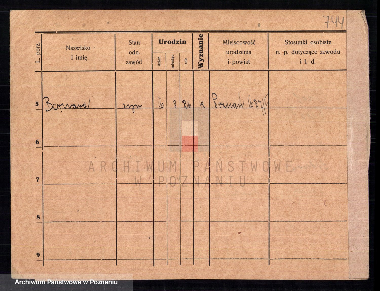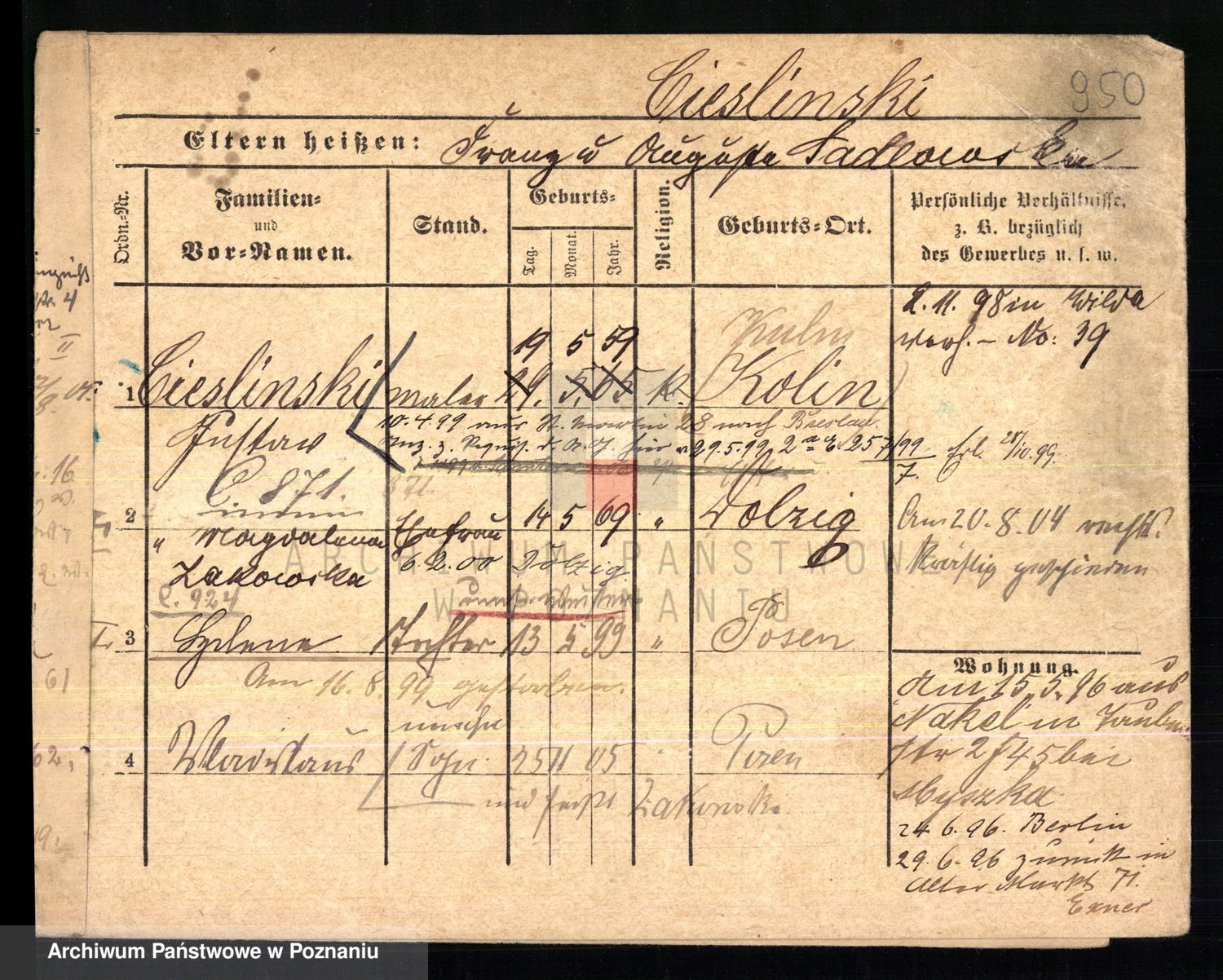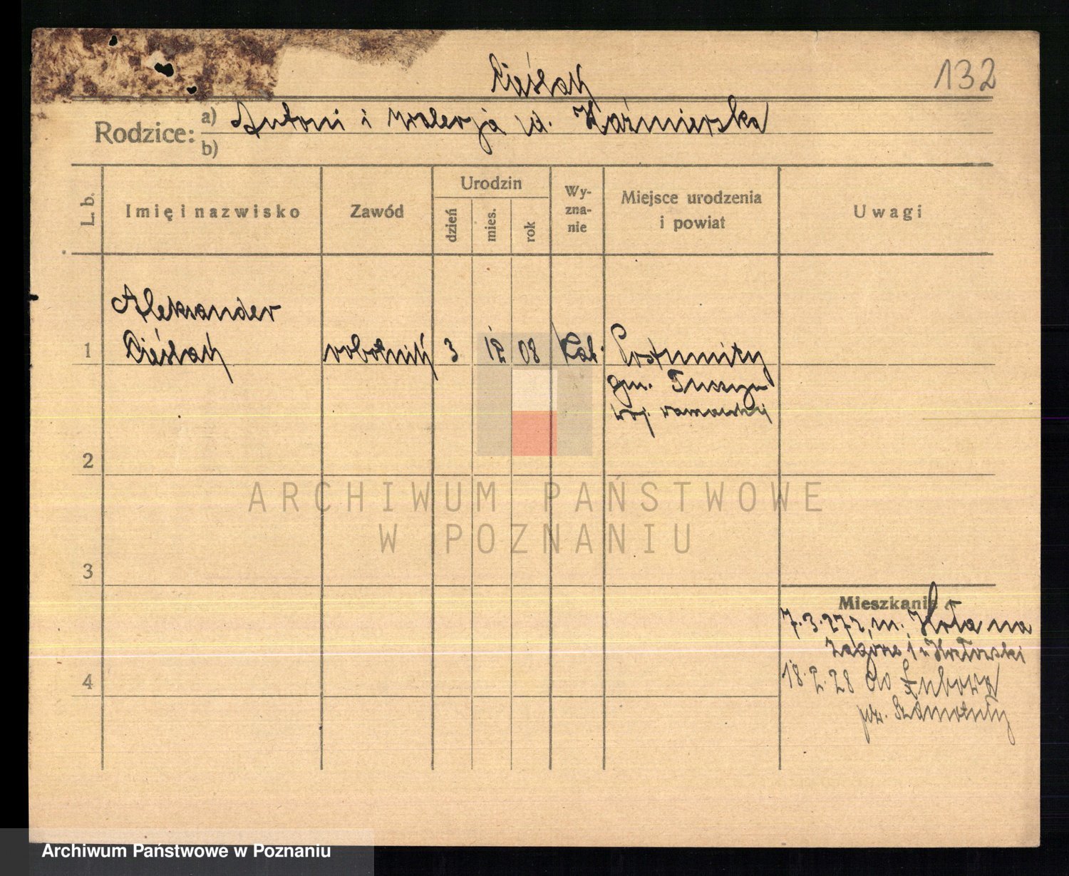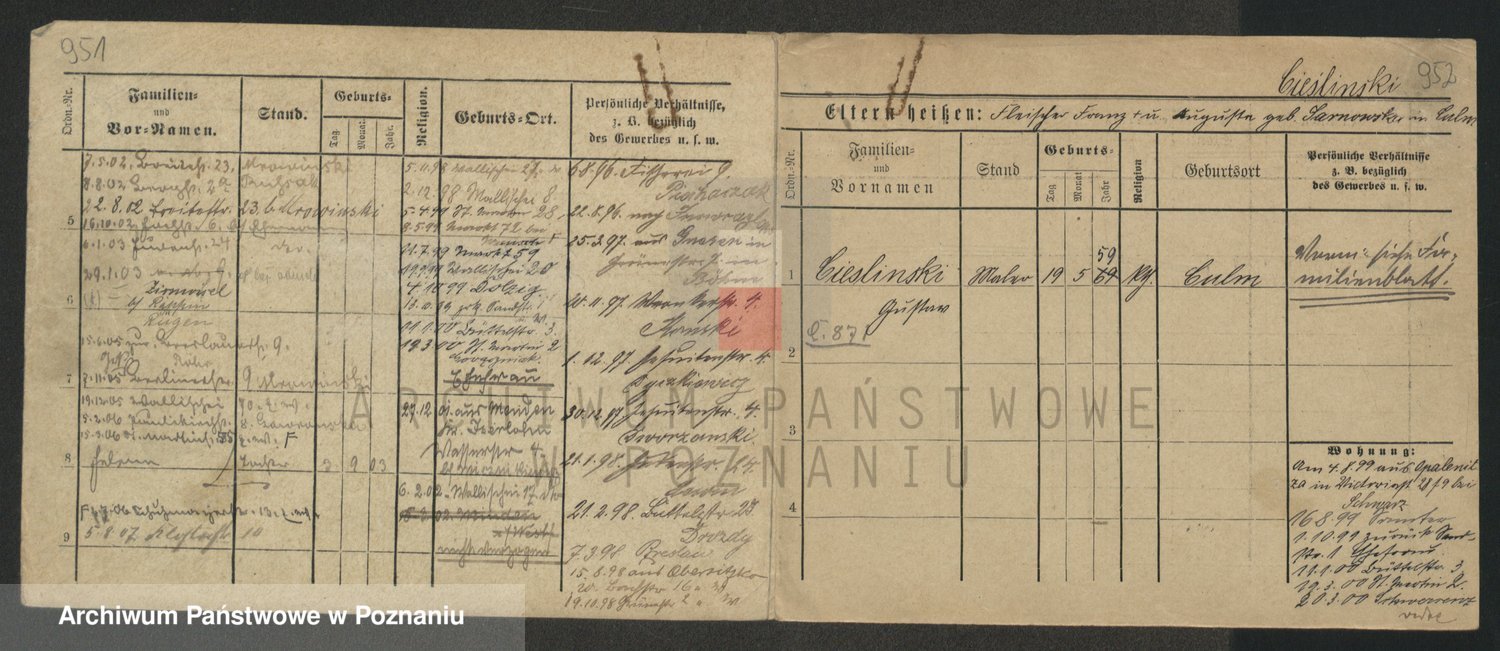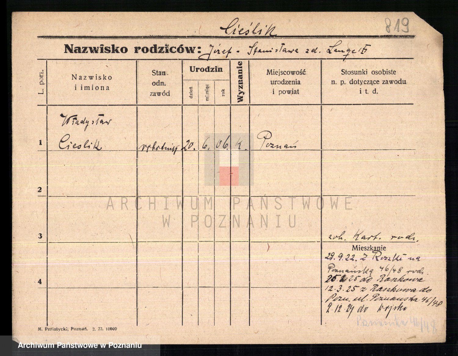 Podgląd karty osobowej dostępny jest po kliknięciu na nazwisko lub ikonkę karty. Można dokonywać powiększenia (ikony na górze) lub przechodzić między kolejnymi skanami (strzałki po bokach).