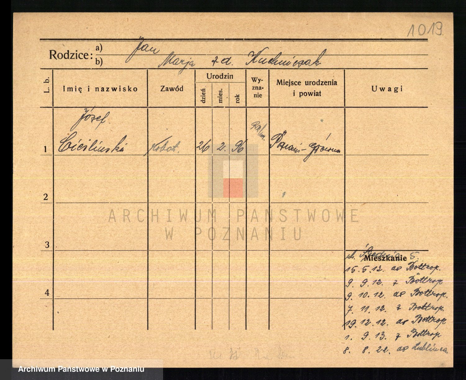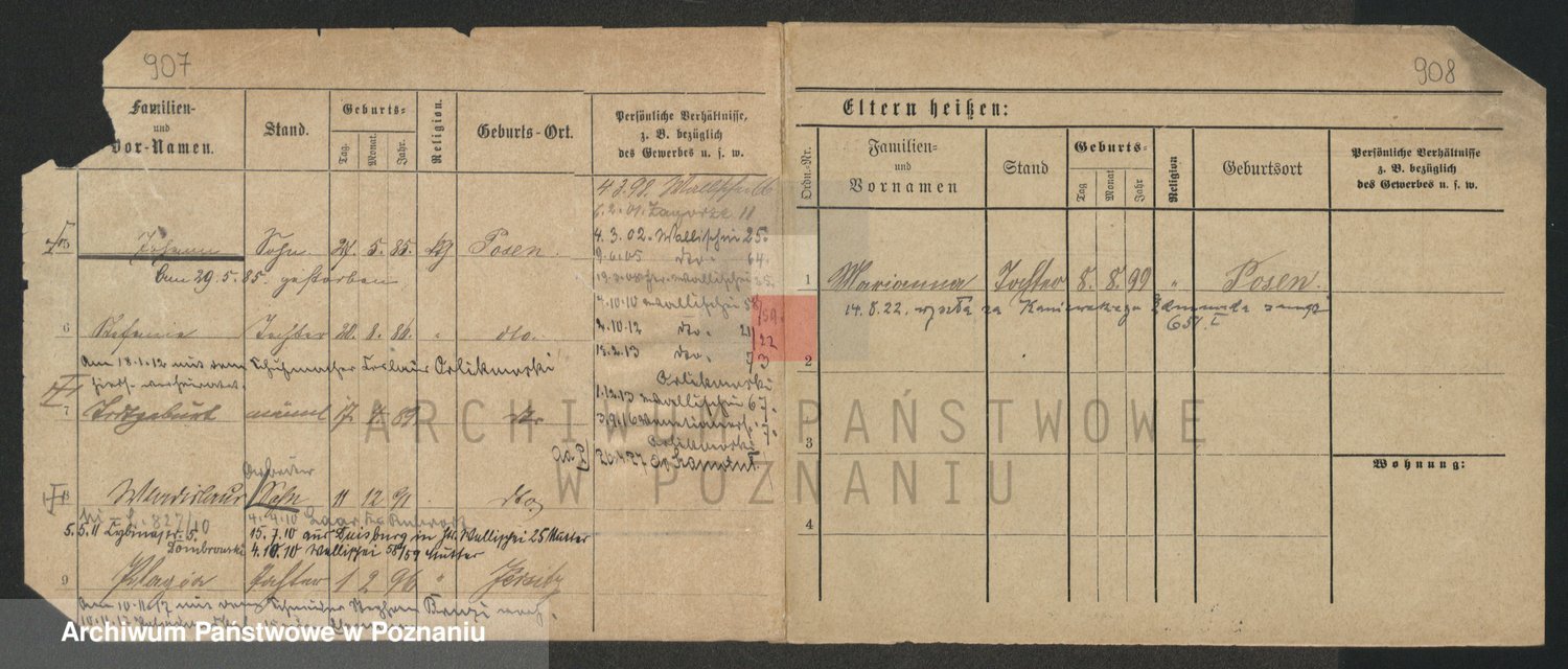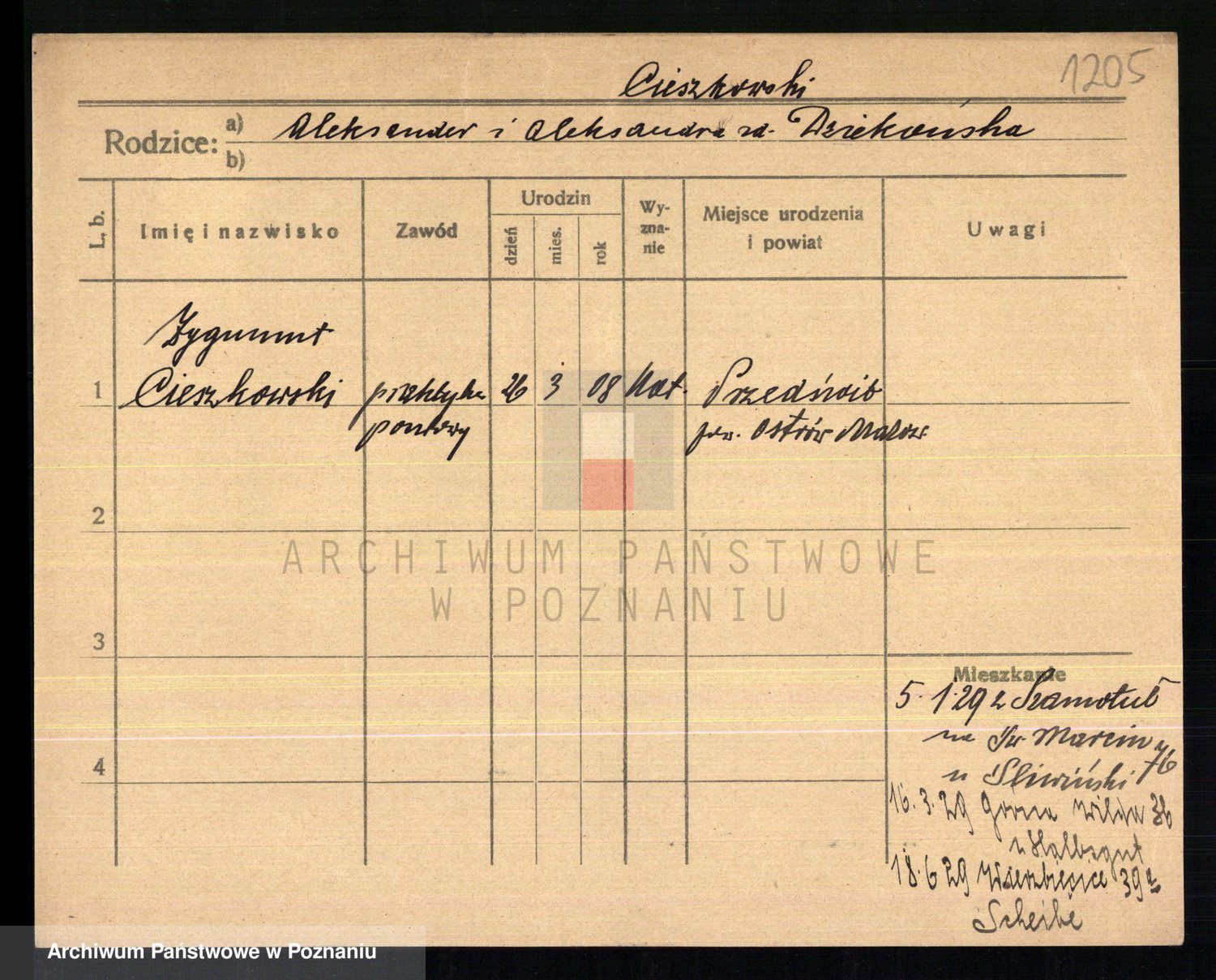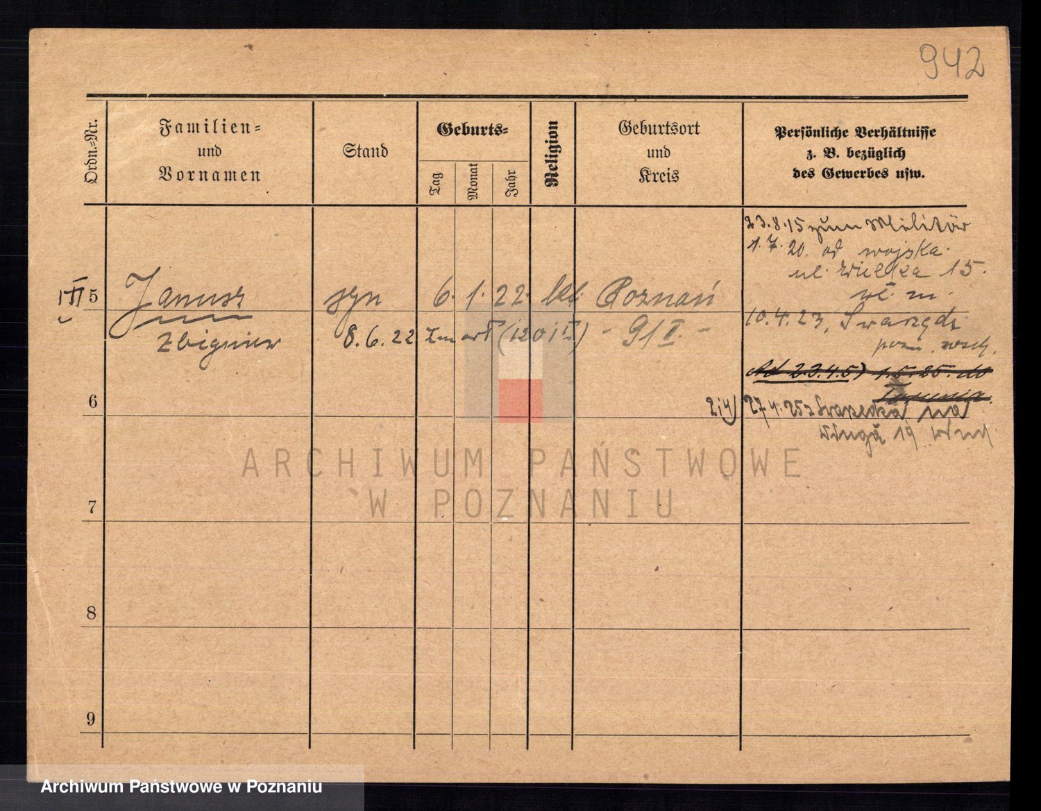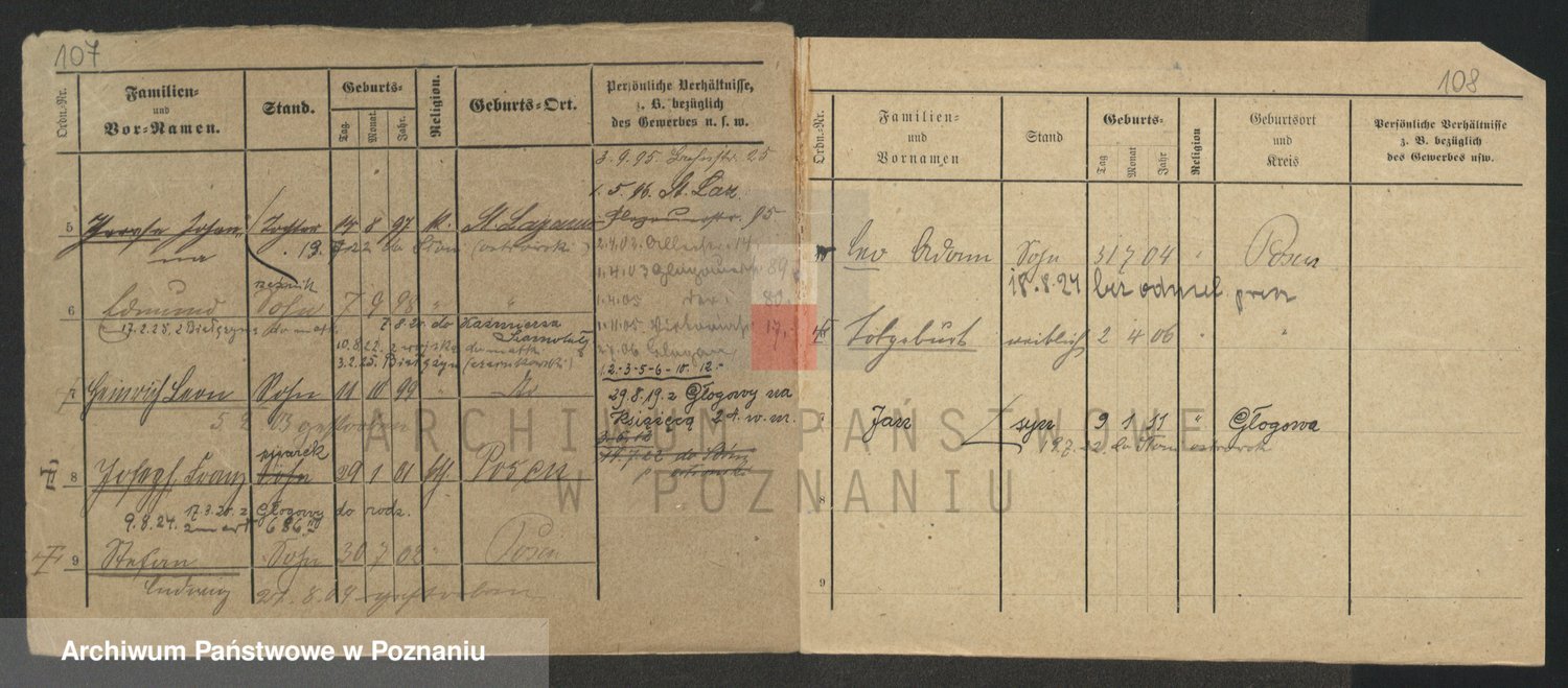 Podgląd karty osobowej dostępny jest po kliknięciu na nazwisko lub ikonkę karty. Można dokonywać powiększenia (ikony na górze) lub przechodzić między kolejnymi skanami (strzałki po bokach).