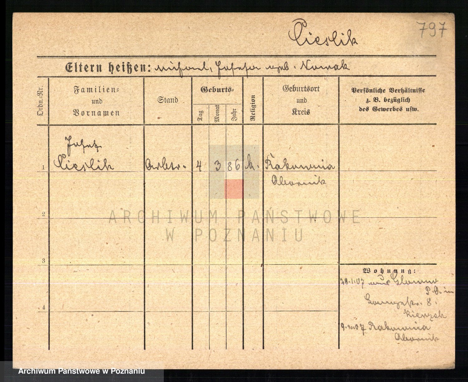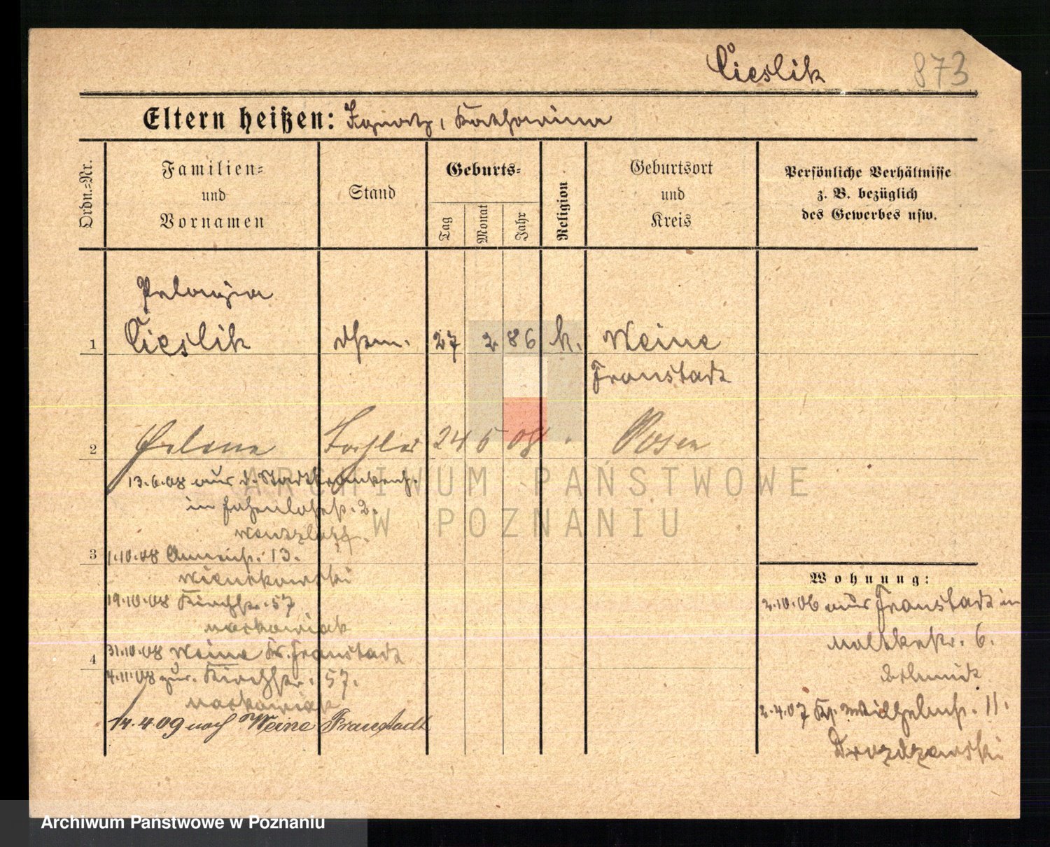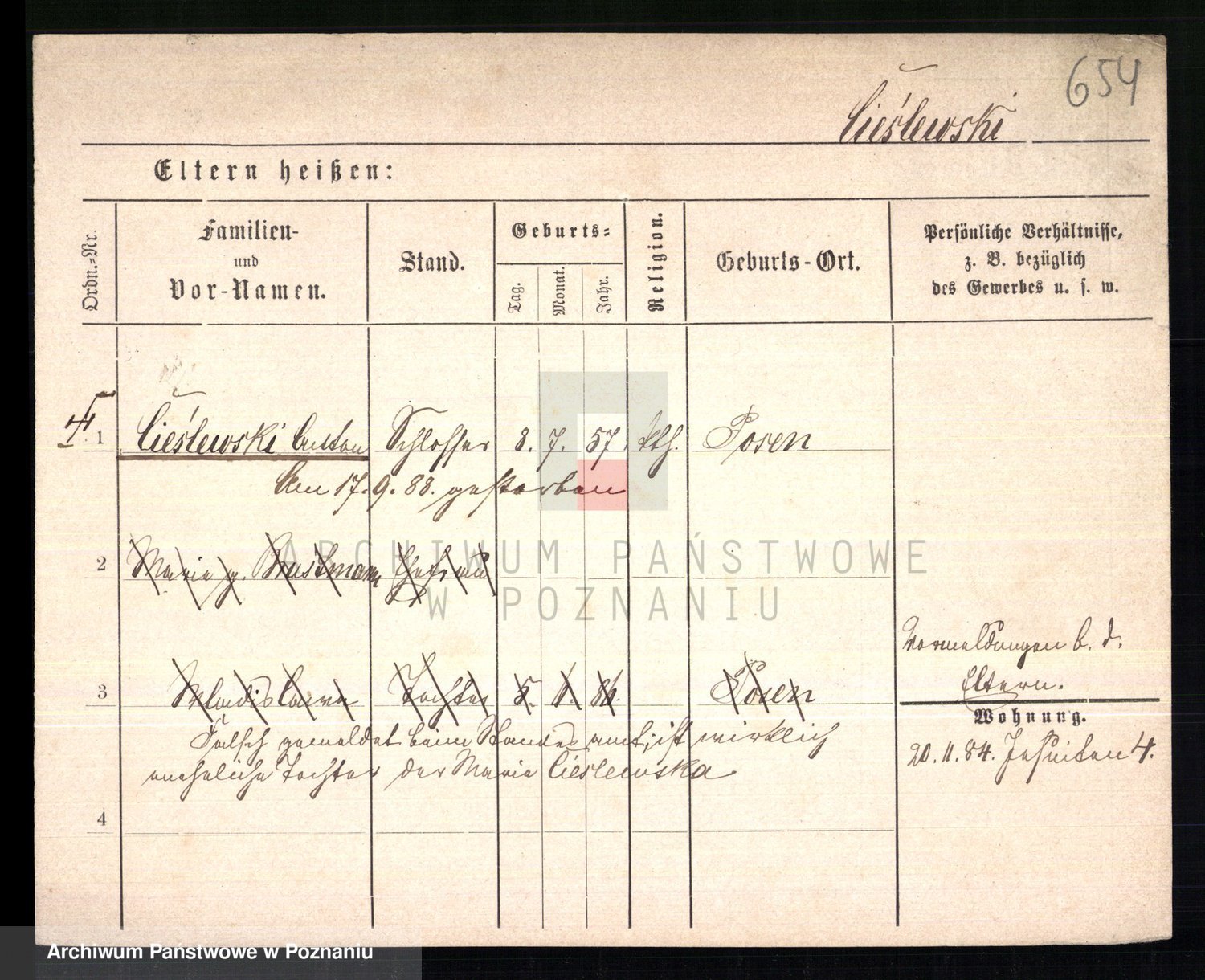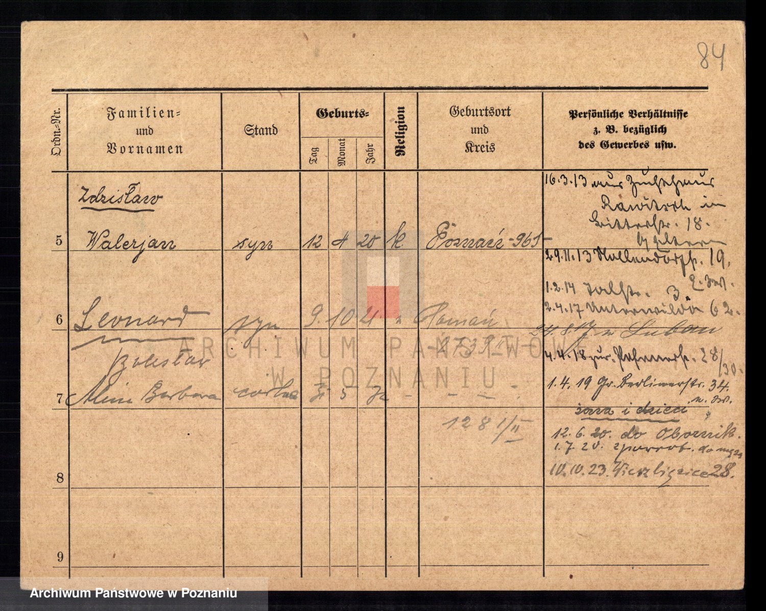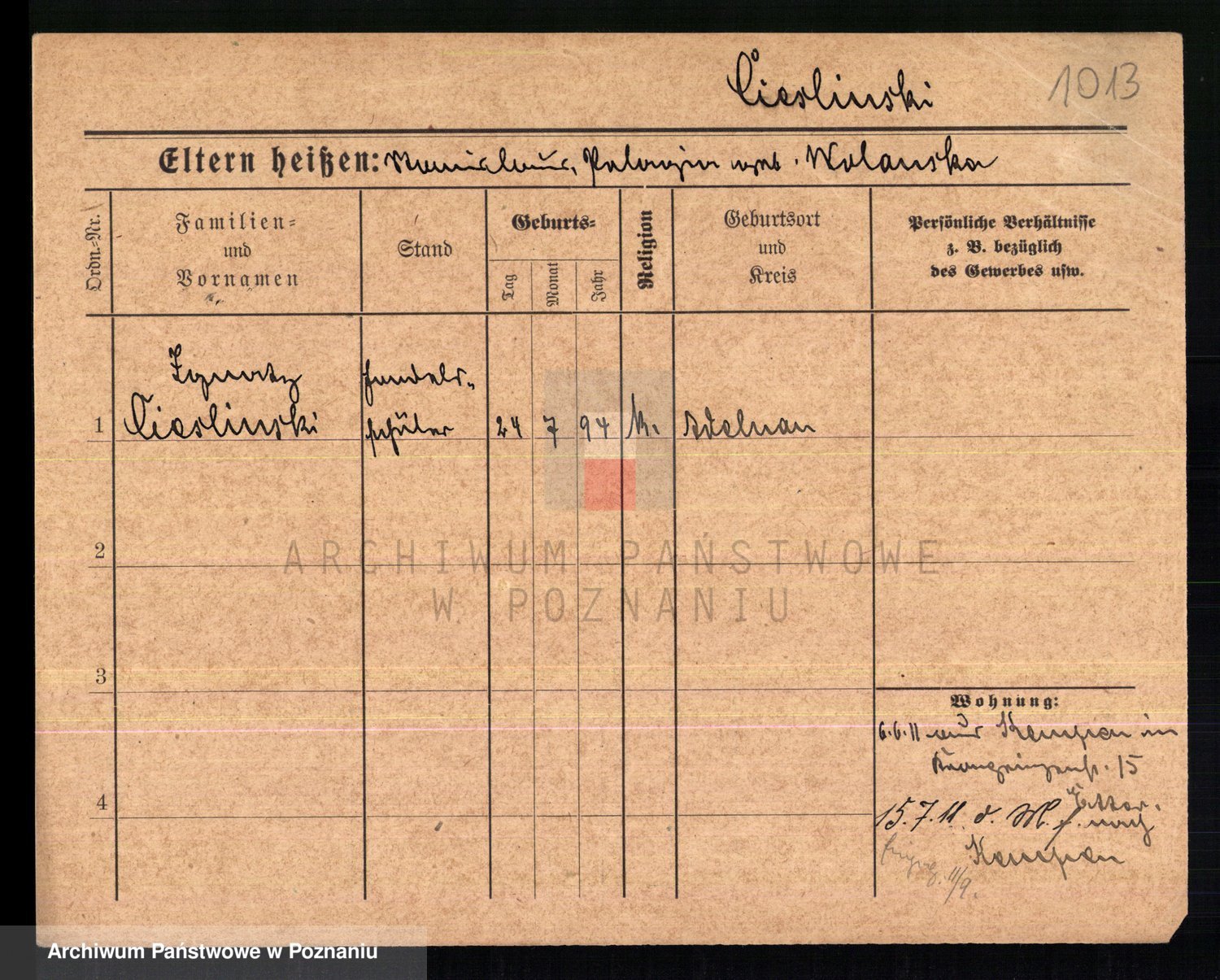 Podgląd karty osobowej dostępny jest po kliknięciu na nazwisko lub ikonkę karty. Można dokonywać powiększenia (ikony na górze) lub przechodzić między kolejnymi skanami (strzałki po bokach).