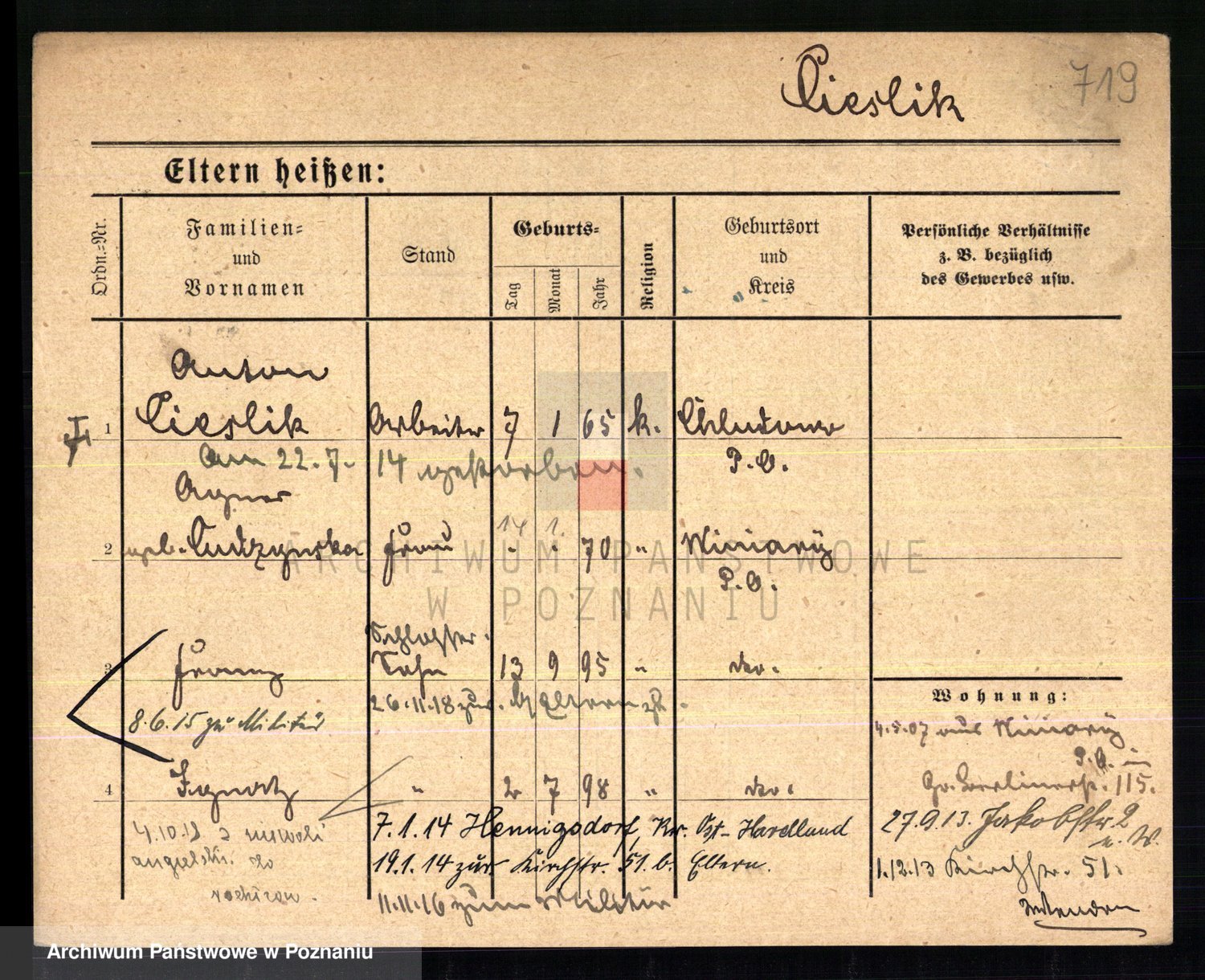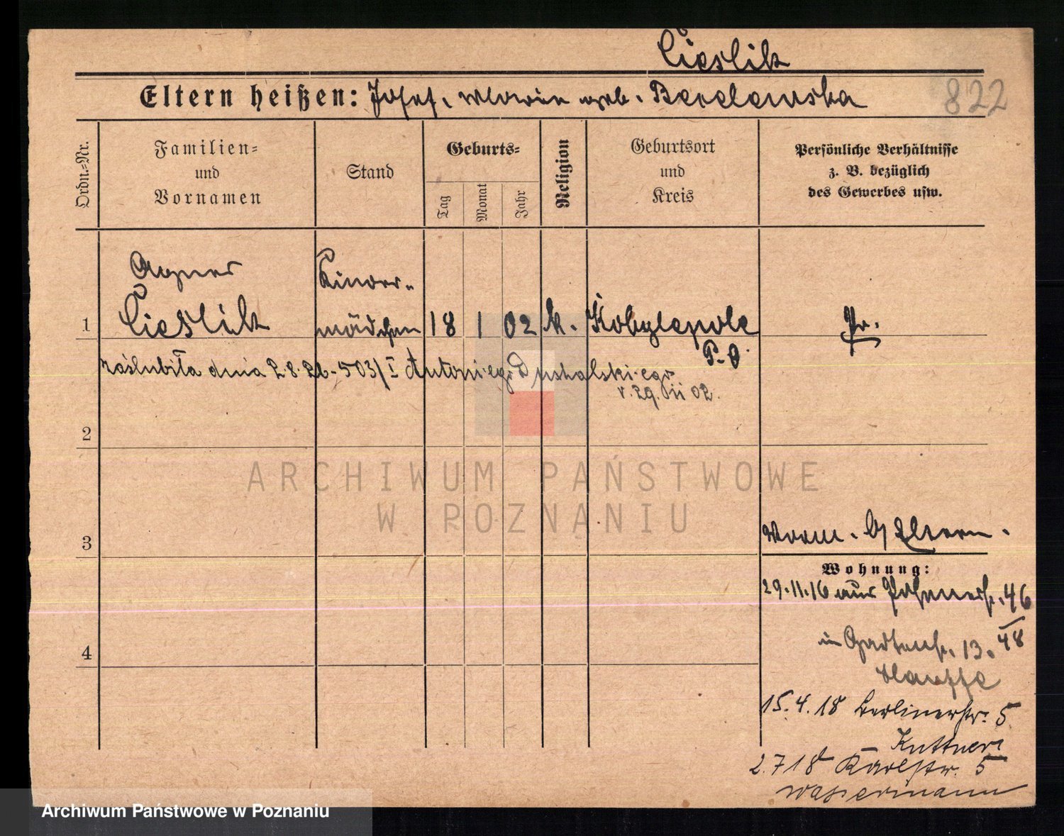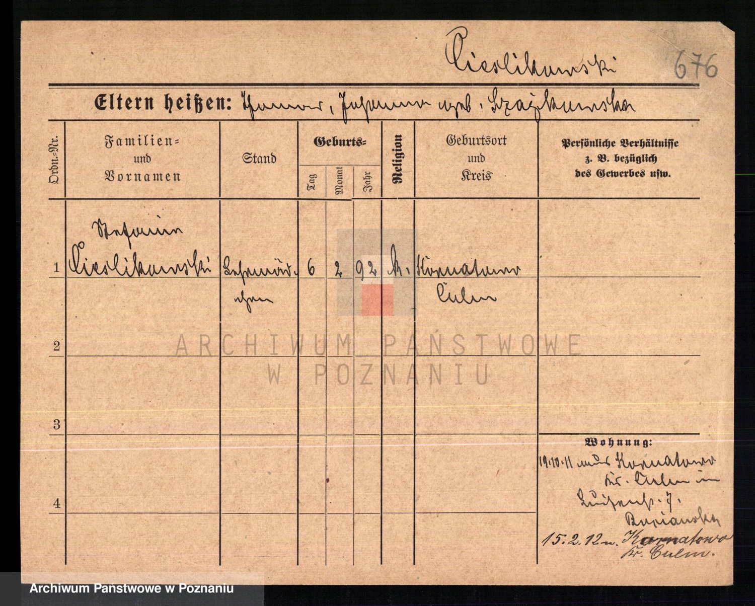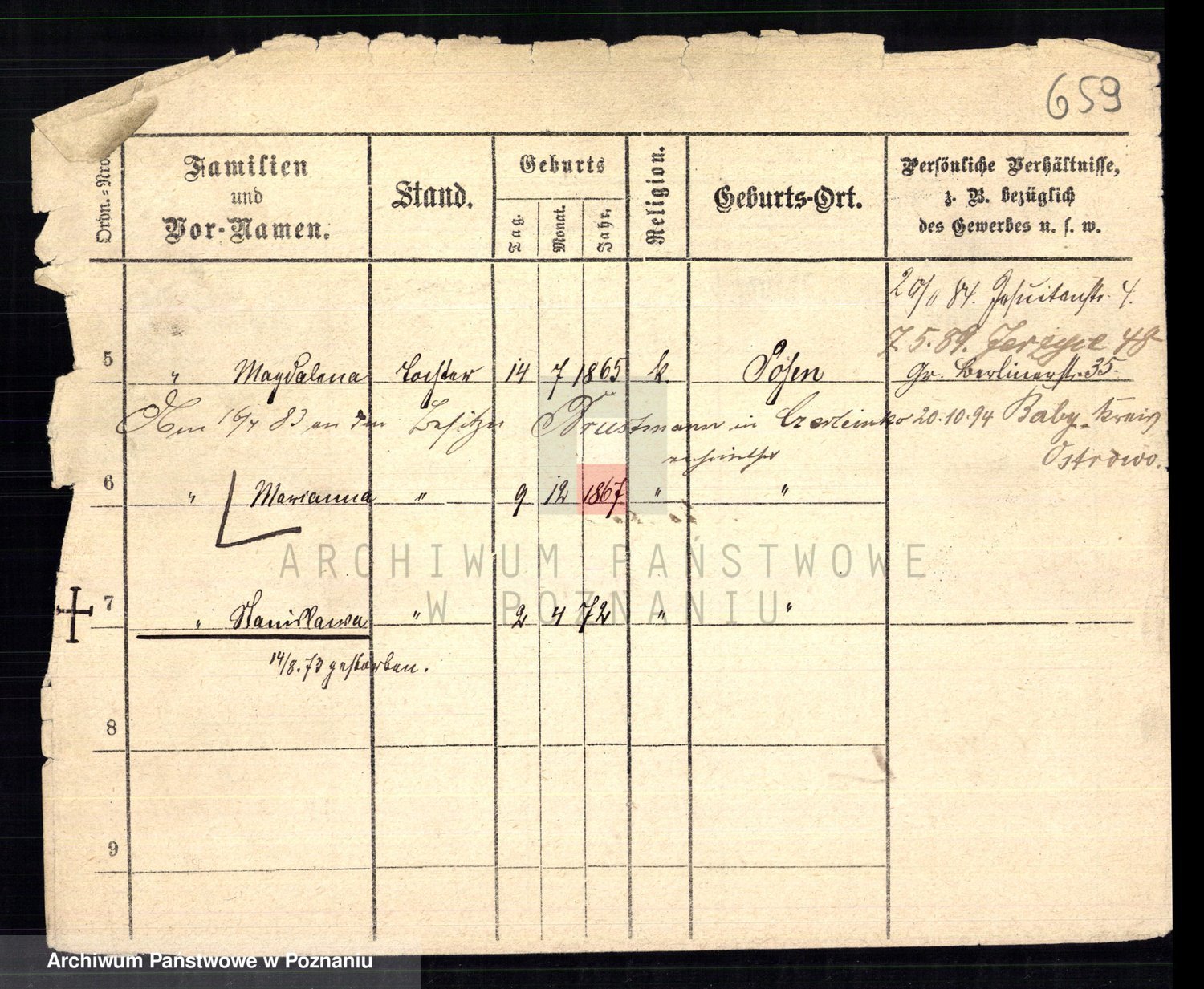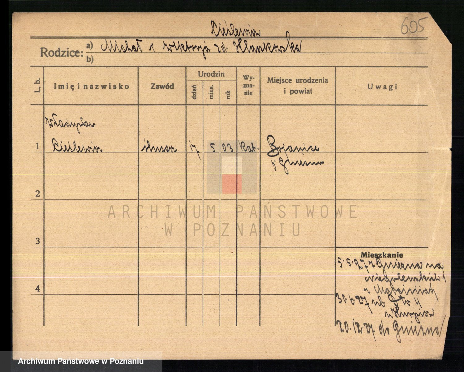 Podgląd karty osobowej dostępny jest po kliknięciu na nazwisko lub ikonkę karty. Można dokonywać powiększenia (ikony na górze) lub przechodzić między kolejnymi skanami (strzałki po bokach).