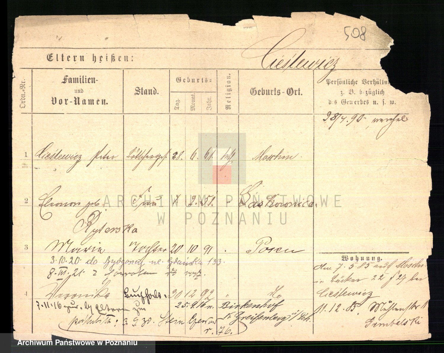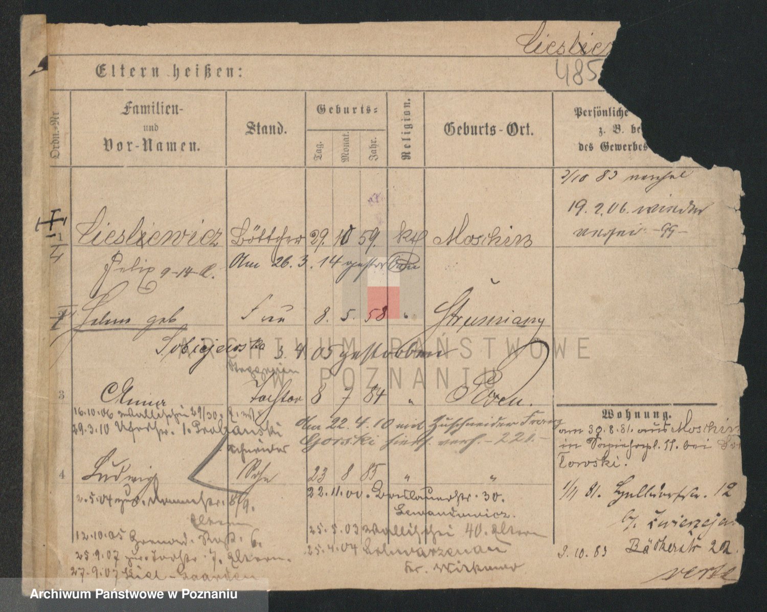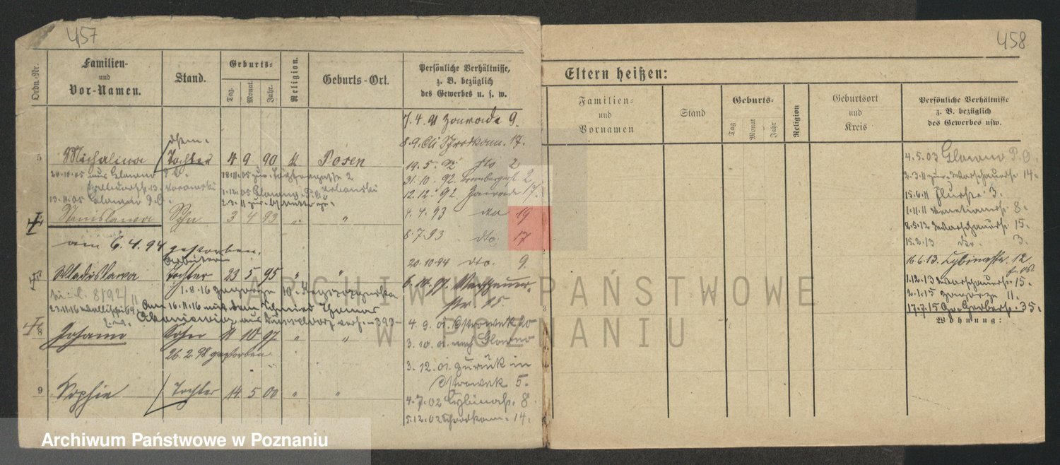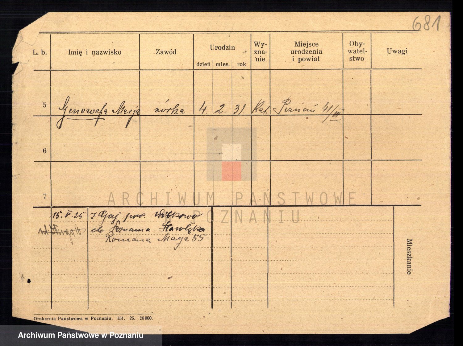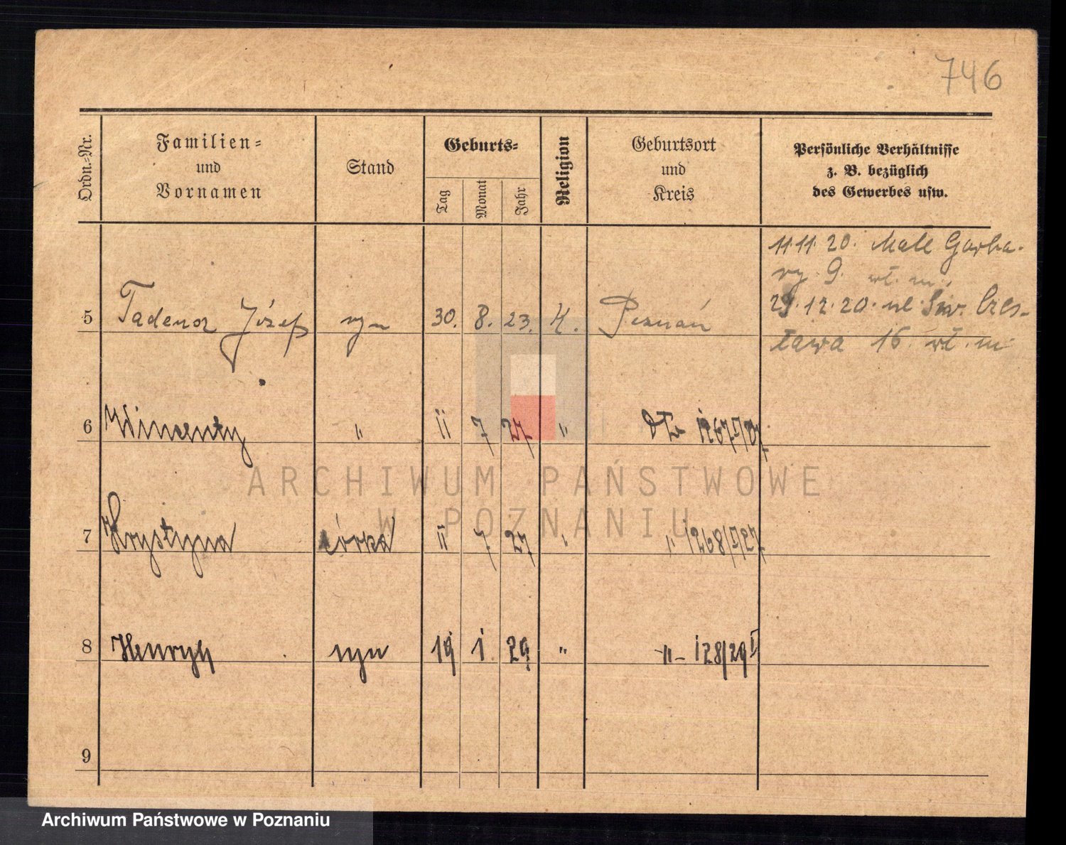 Podgląd karty osobowej dostępny jest po kliknięciu na nazwisko lub ikonkę karty. Można dokonywać powiększenia (ikony na górze) lub przechodzić między kolejnymi skanami (strzałki po bokach).