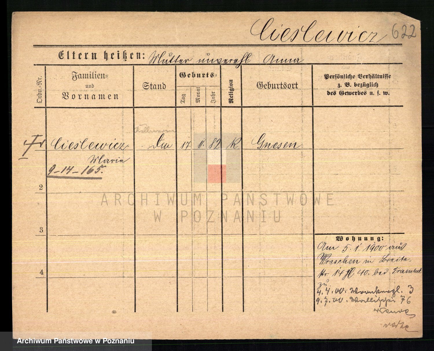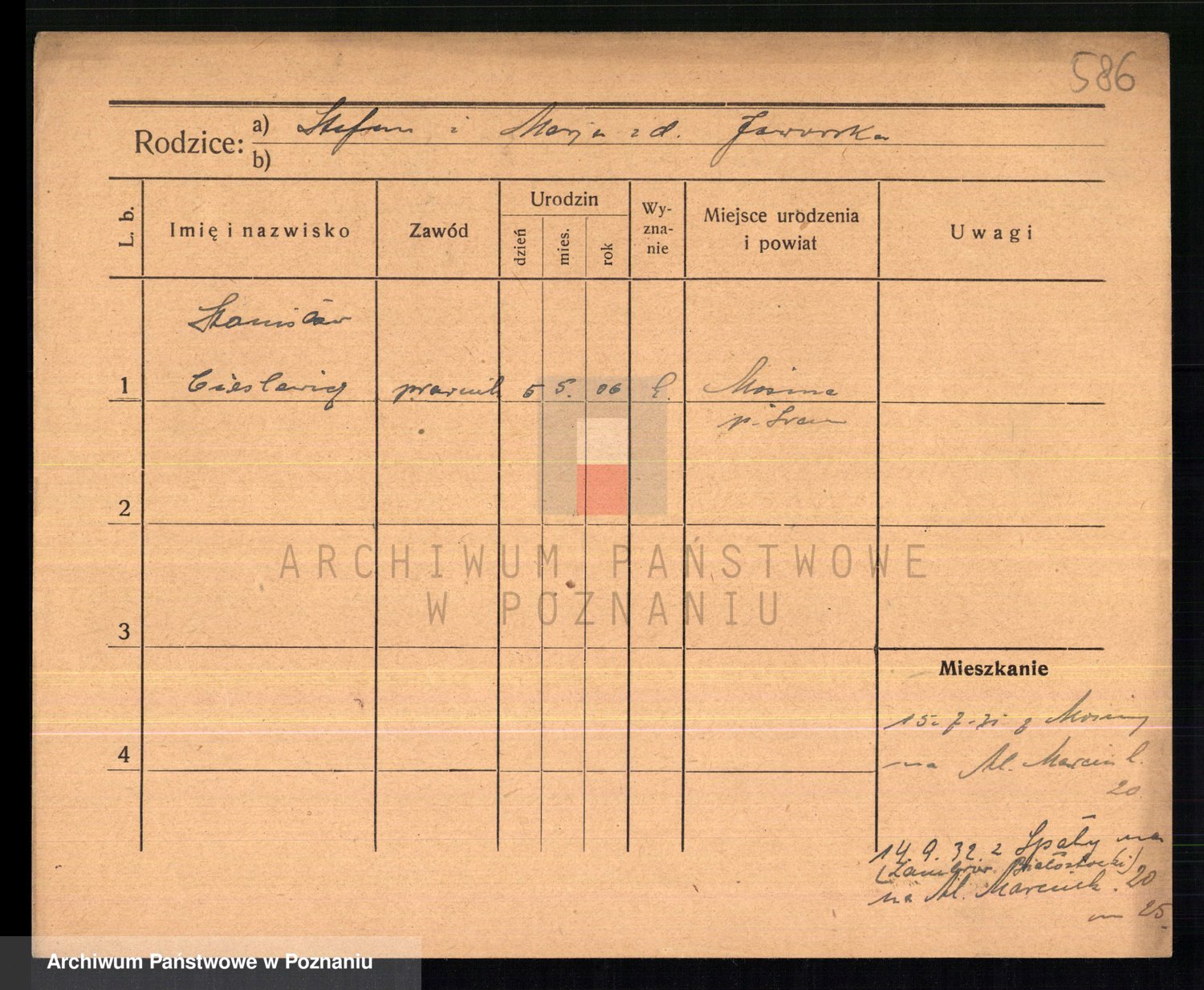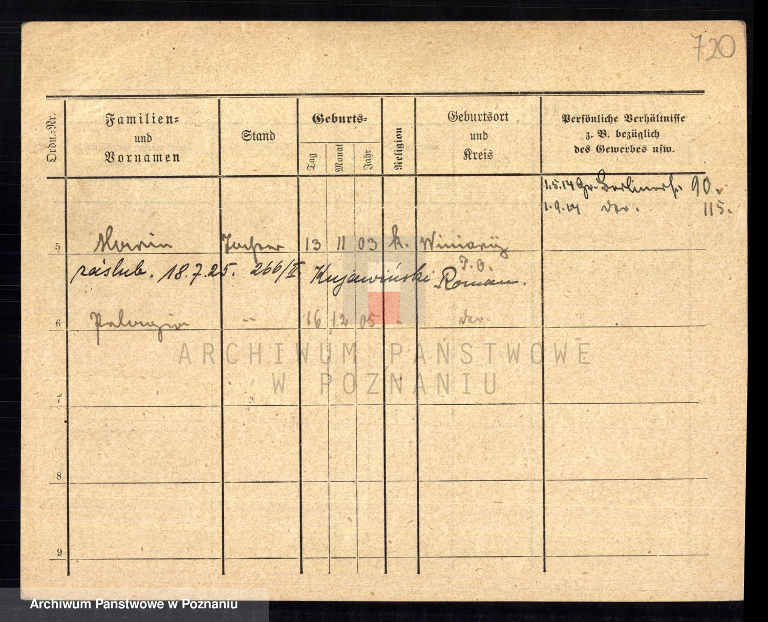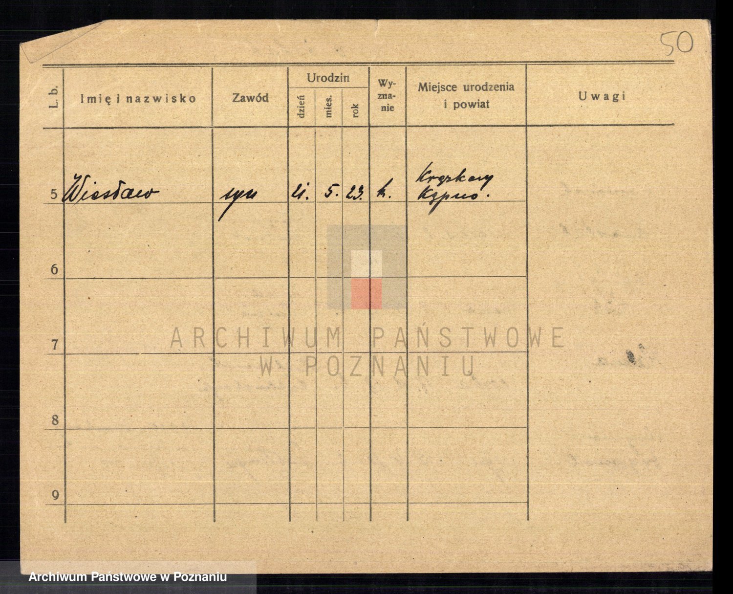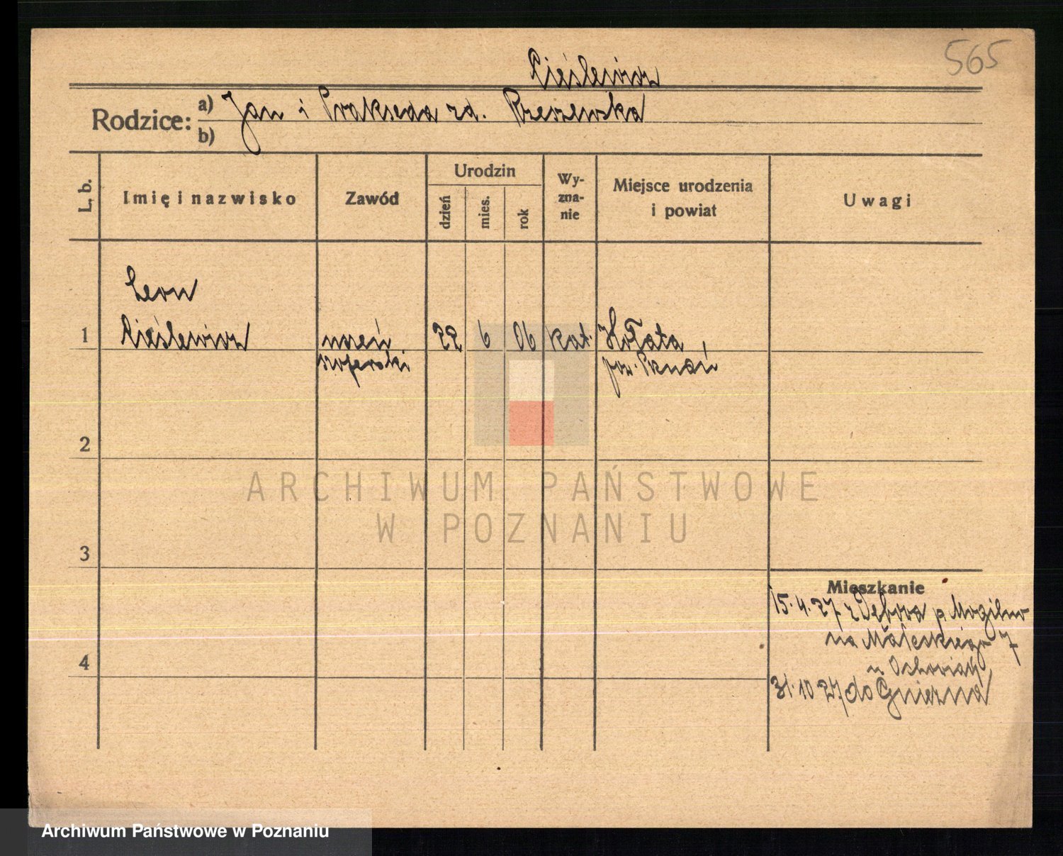 Podgląd karty osobowej dostępny jest po kliknięciu na nazwisko lub ikonkę karty. Można dokonywać powiększenia (ikony na górze) lub przechodzić między kolejnymi skanami (strzałki po bokach).