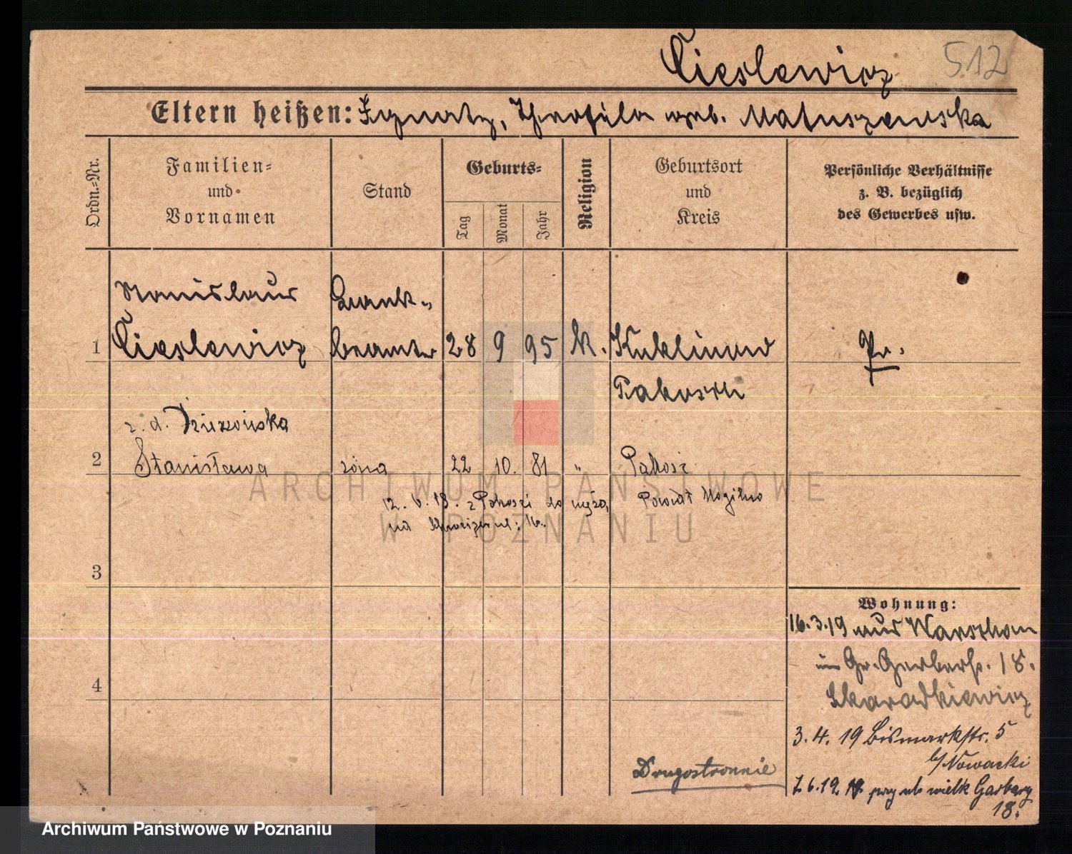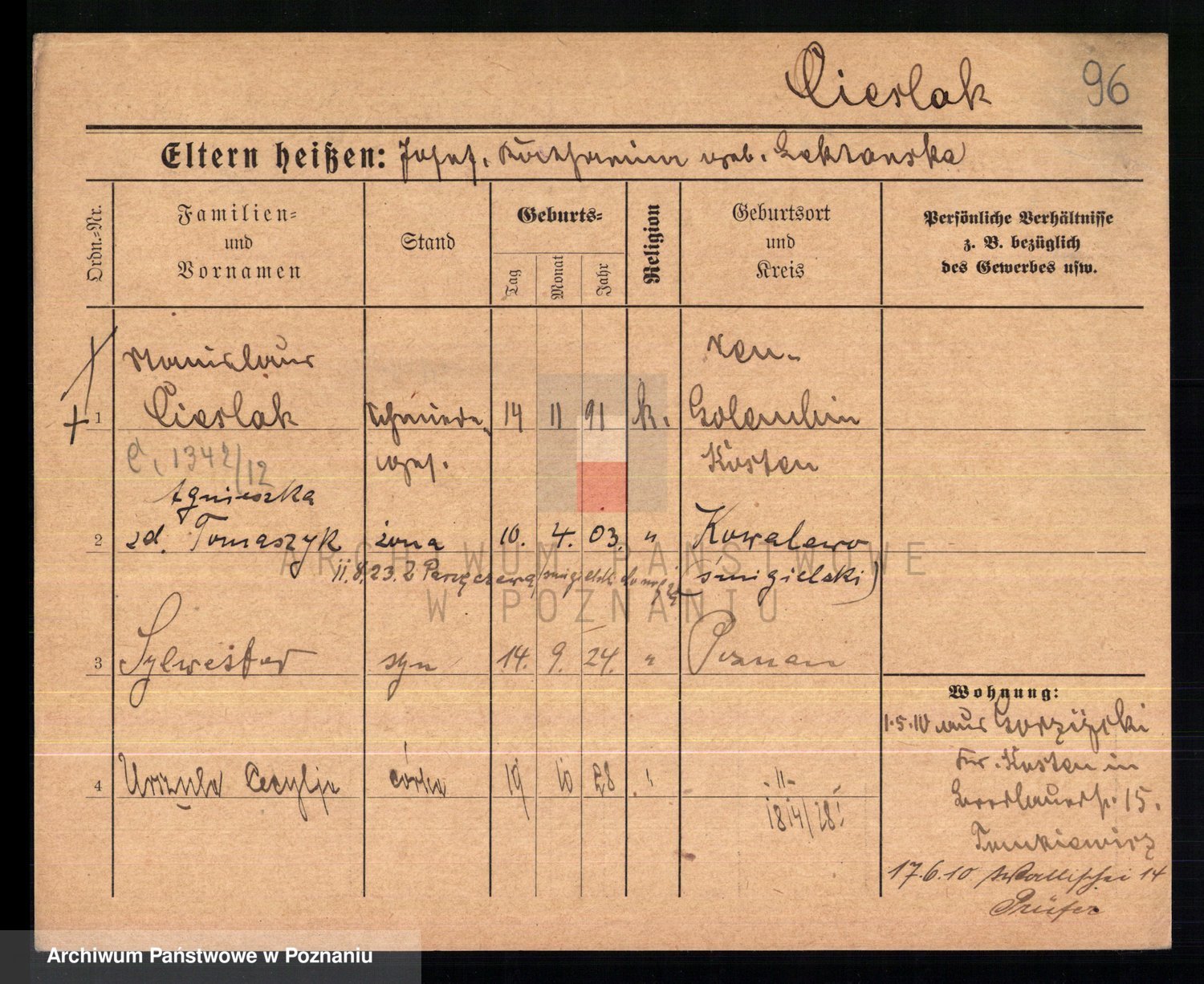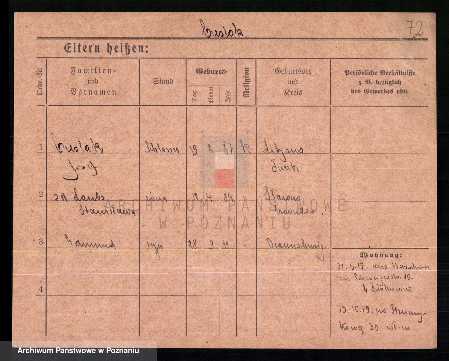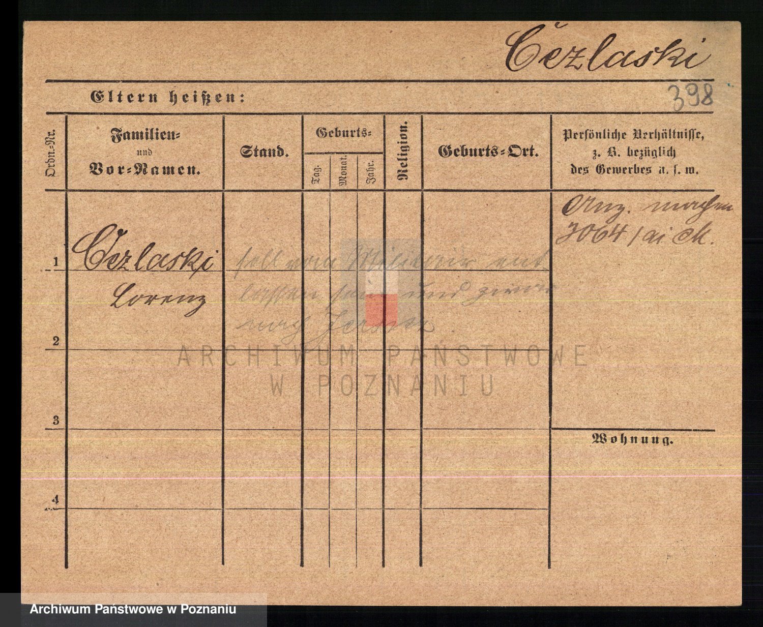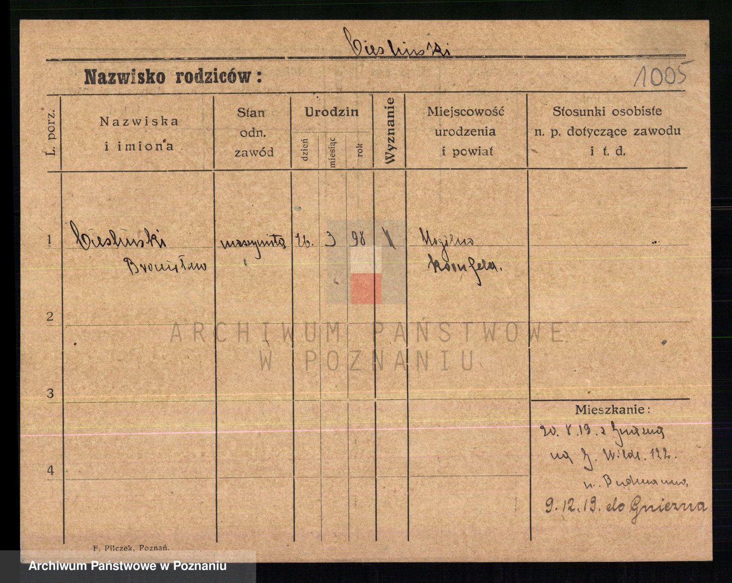 Podgląd karty osobowej dostępny jest po kliknięciu na nazwisko lub ikonkę karty. Można dokonywać powiększenia (ikony na górze) lub przechodzić między kolejnymi skanami (strzałki po bokach).
