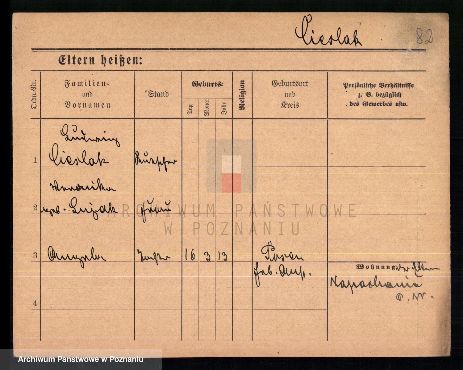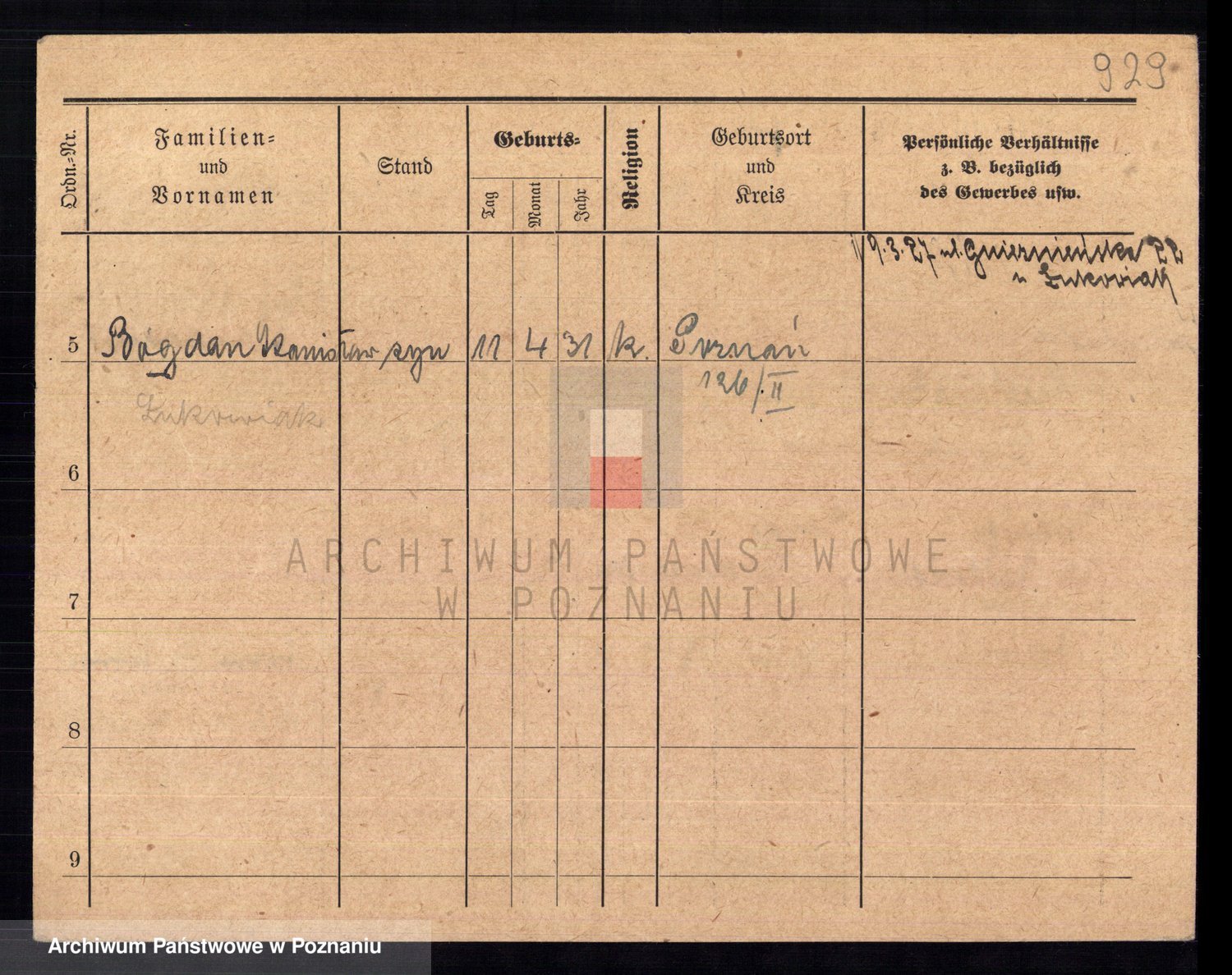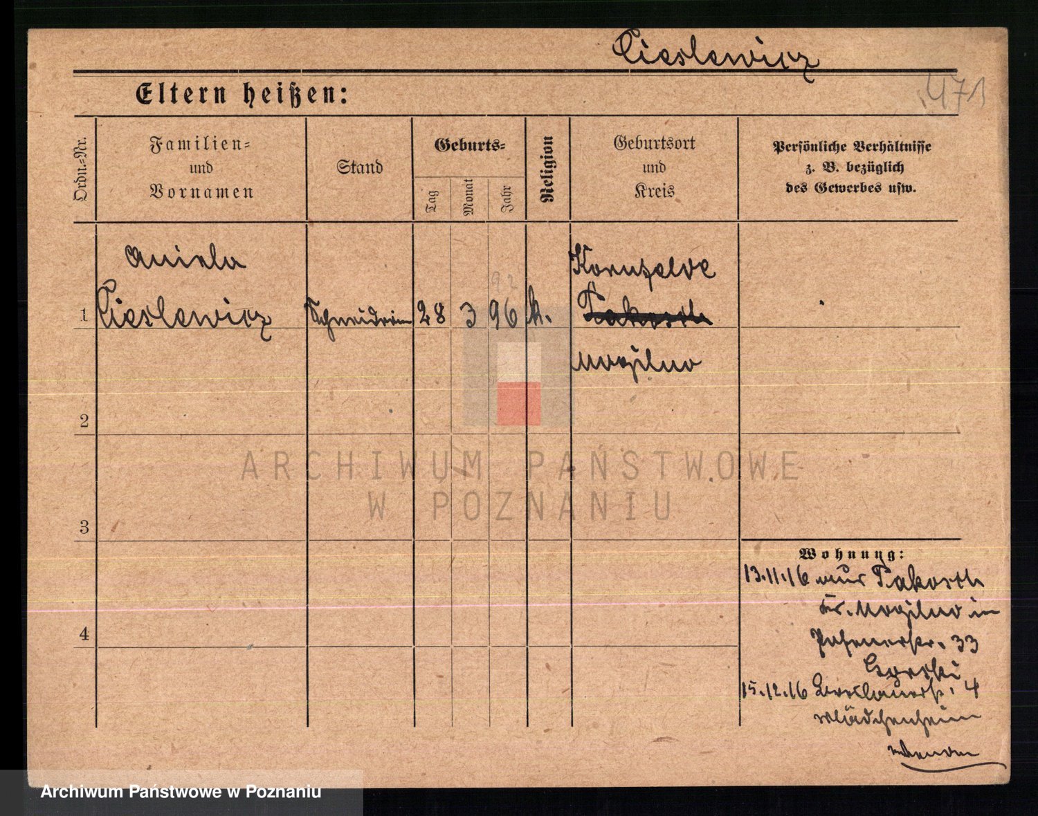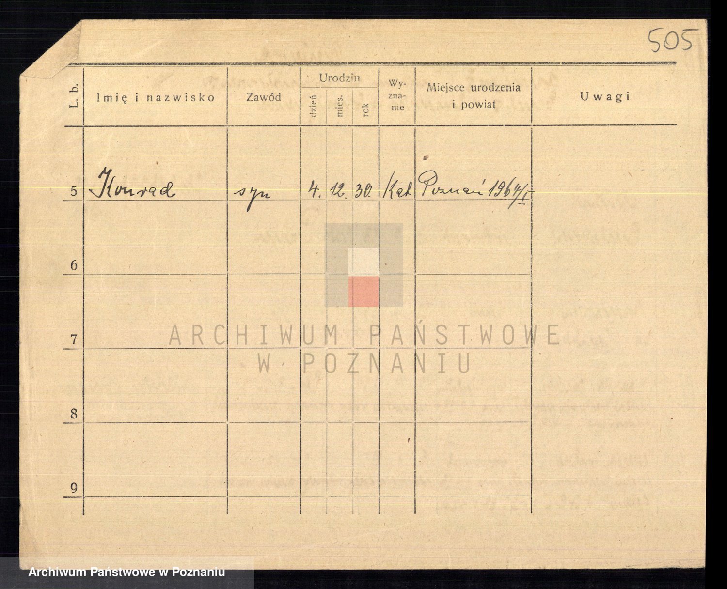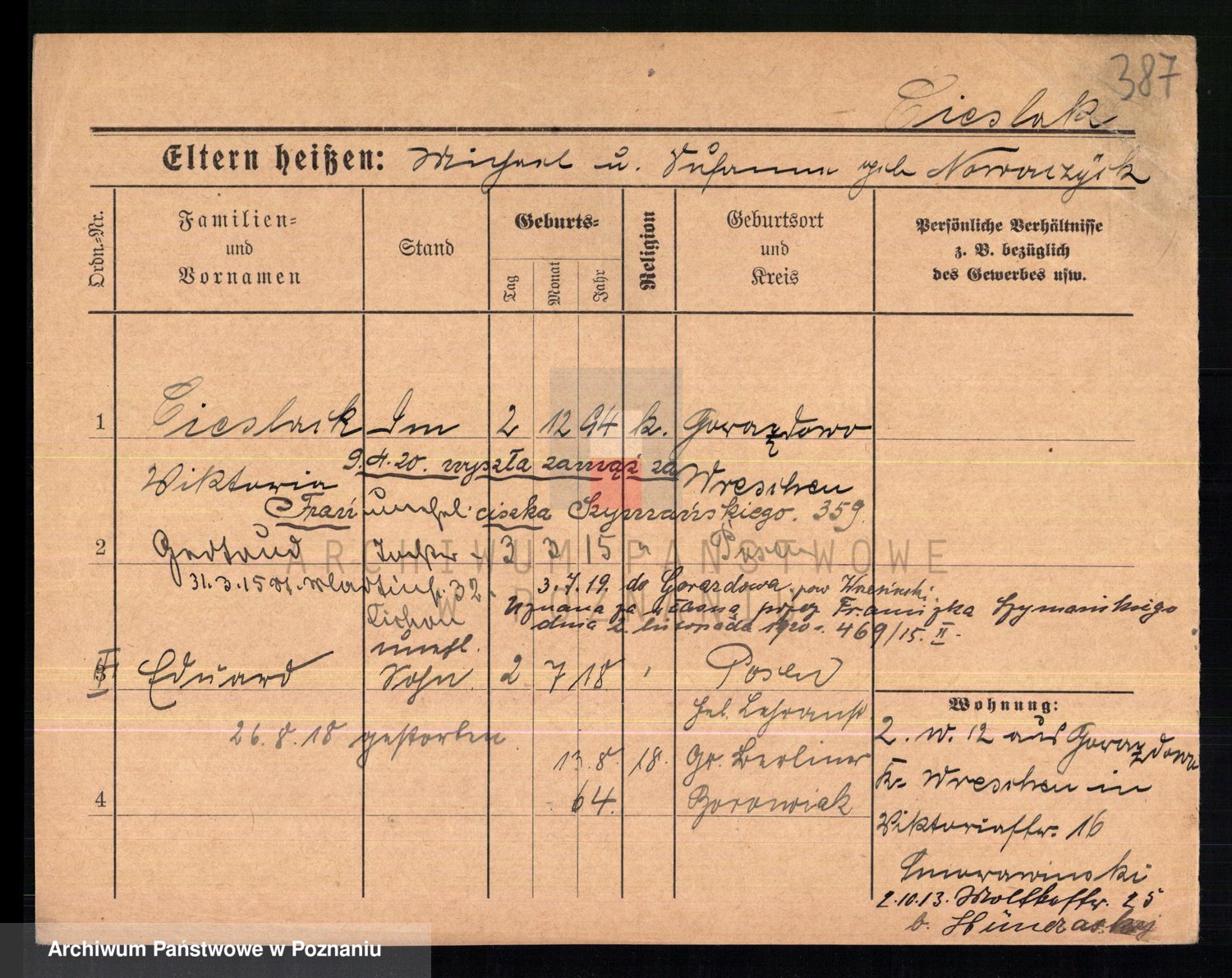 Podgląd karty osobowej dostępny jest po kliknięciu na nazwisko lub ikonkę karty. Można dokonywać powiększenia (ikony na górze) lub przechodzić między kolejnymi skanami (strzałki po bokach).