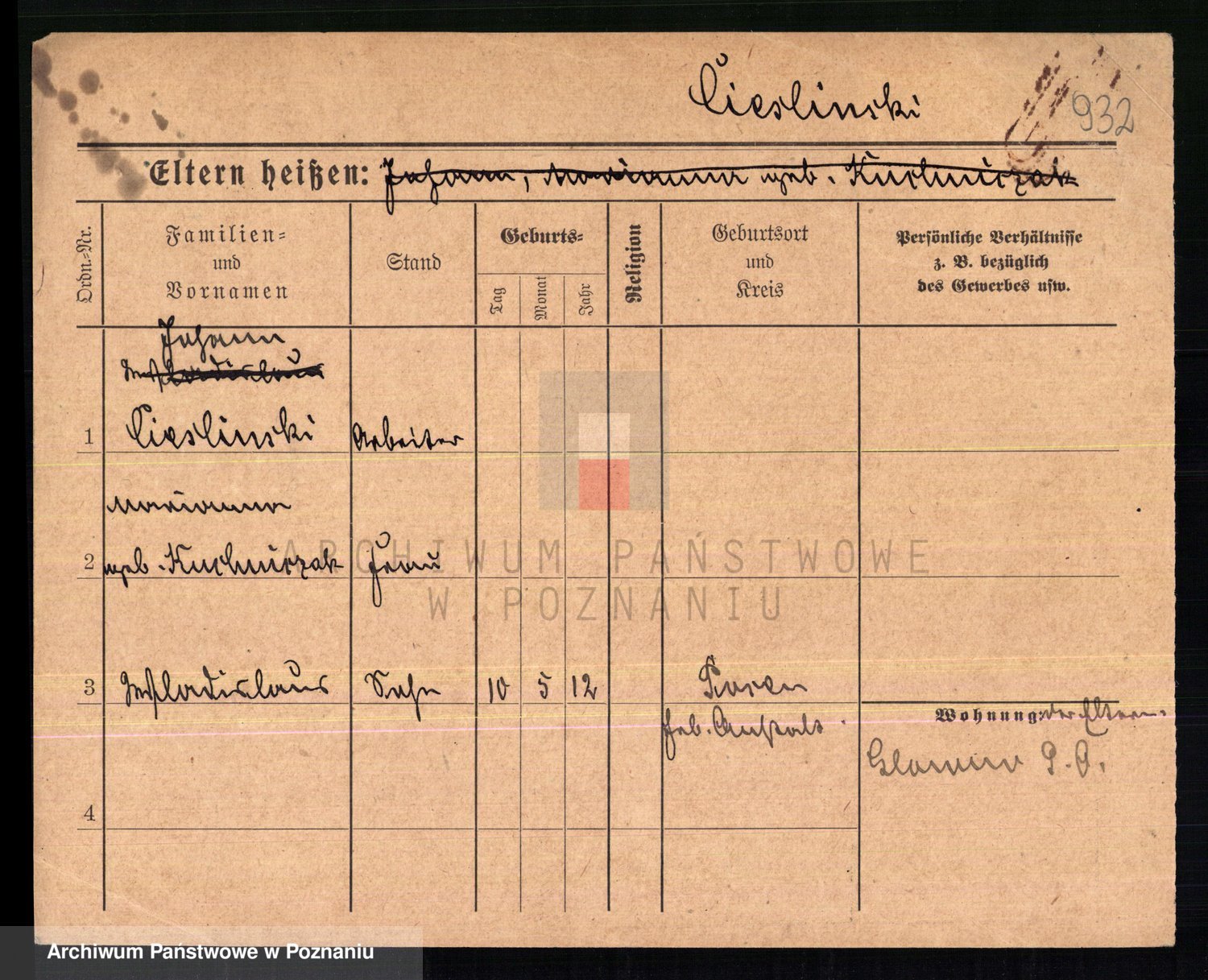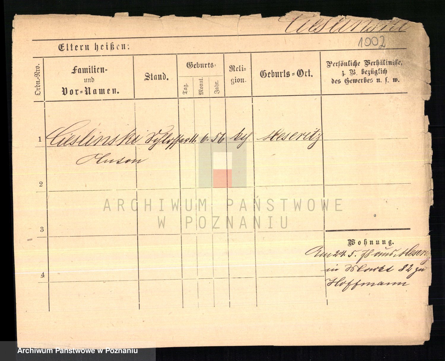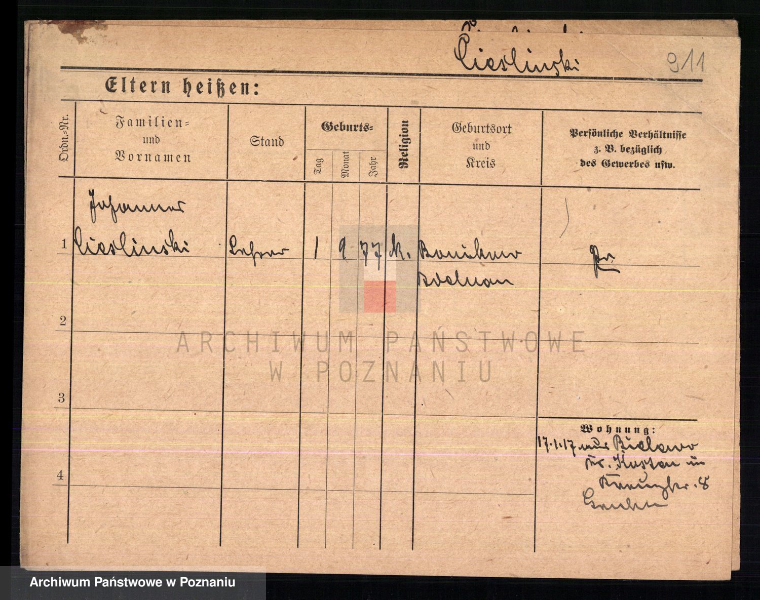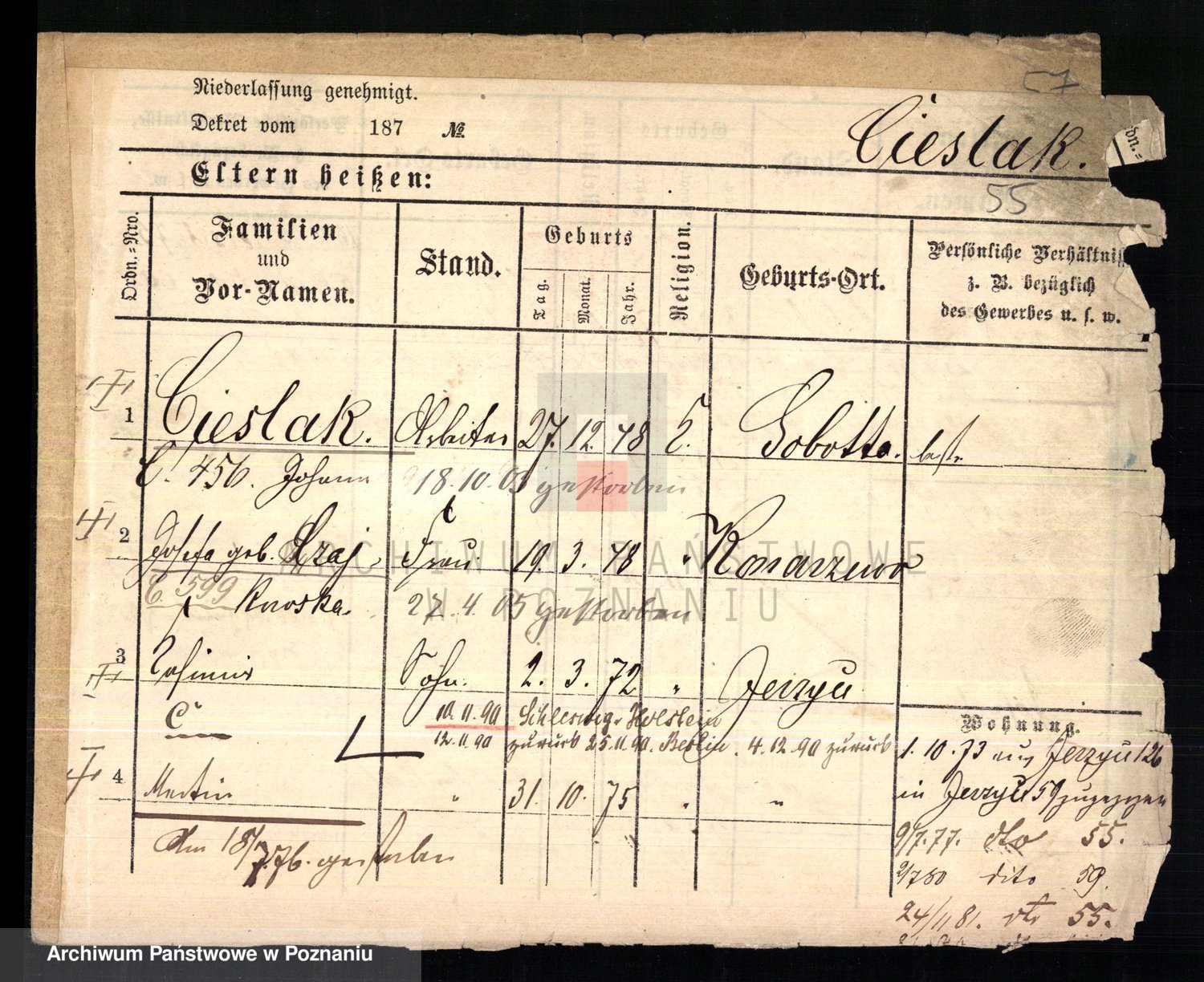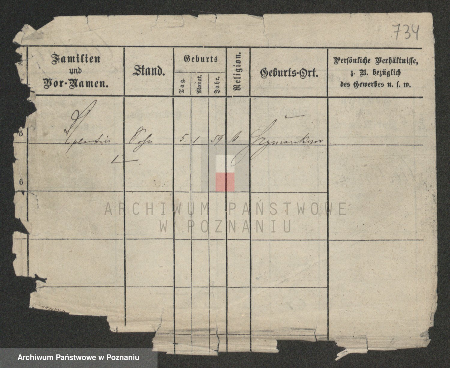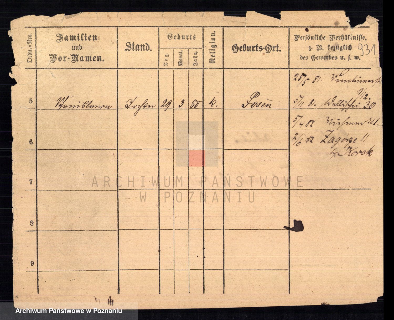 Podgląd karty osobowej dostępny jest po kliknięciu na nazwisko lub ikonkę karty. Można dokonywać powiększenia (ikony na górze) lub przechodzić między kolejnymi skanami (strzałki po bokach).