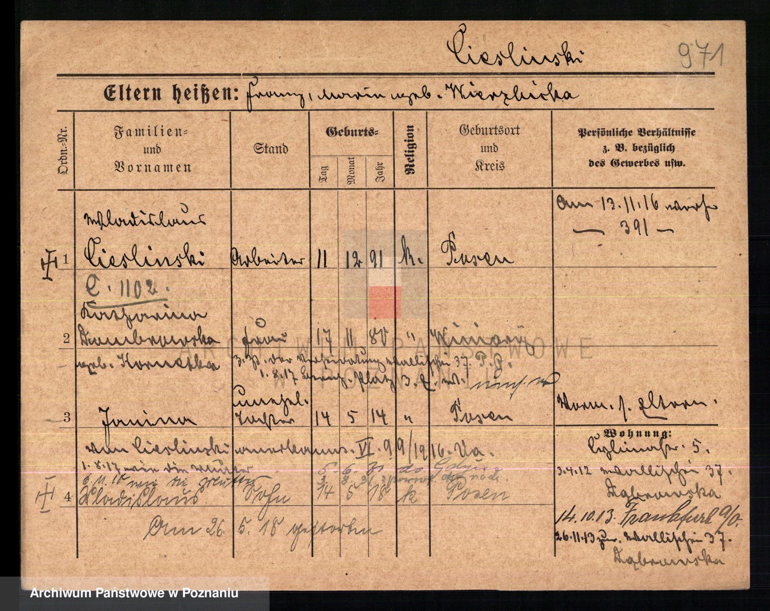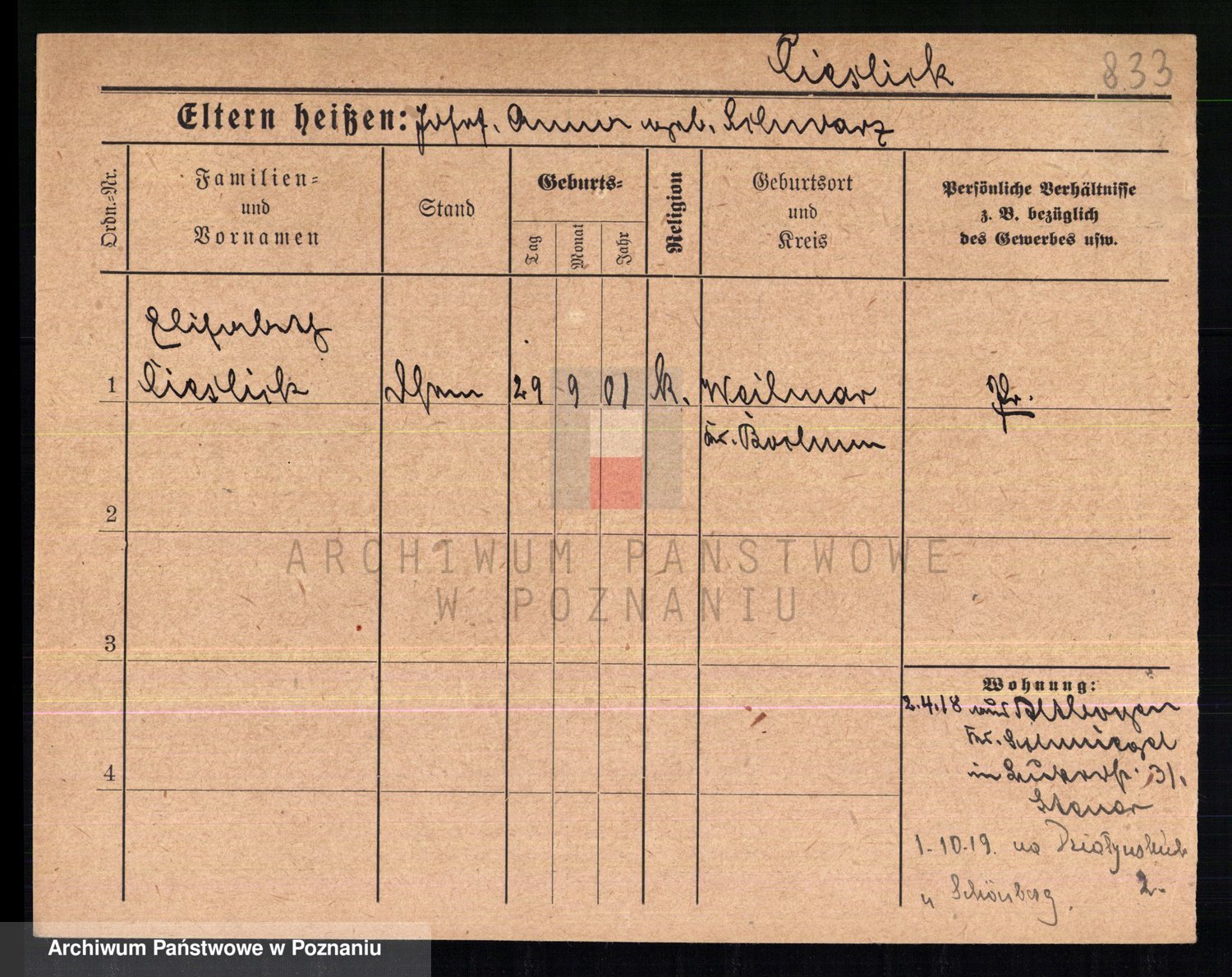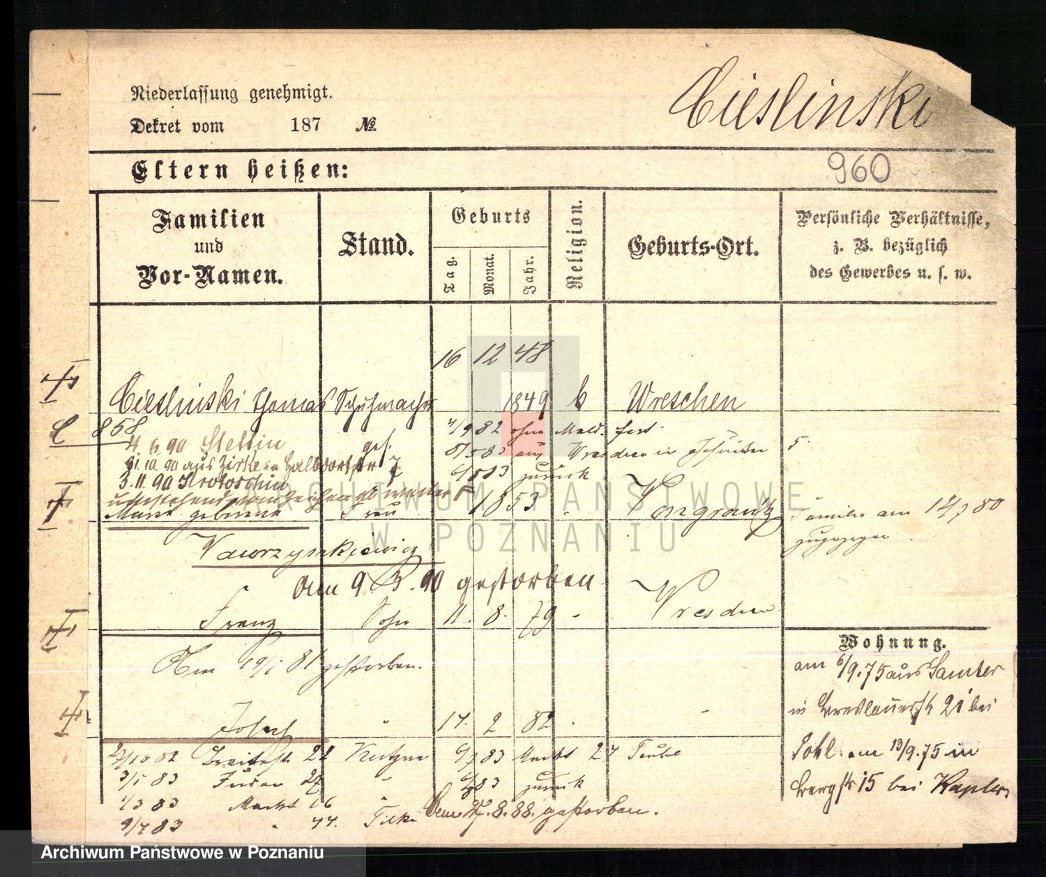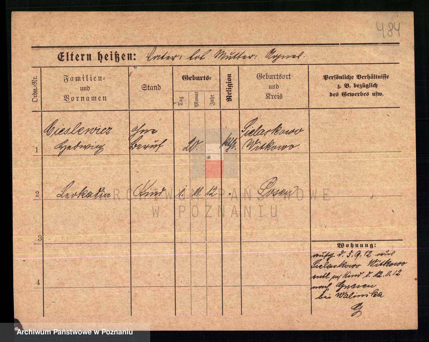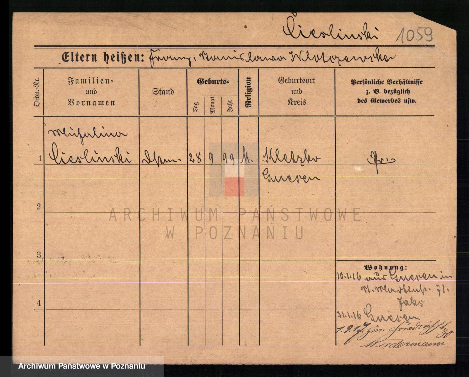 Podgląd karty osobowej dostępny jest po kliknięciu na nazwisko lub ikonkę karty. Można dokonywać powiększenia (ikony na górze) lub przechodzić między kolejnymi skanami (strzałki po bokach).