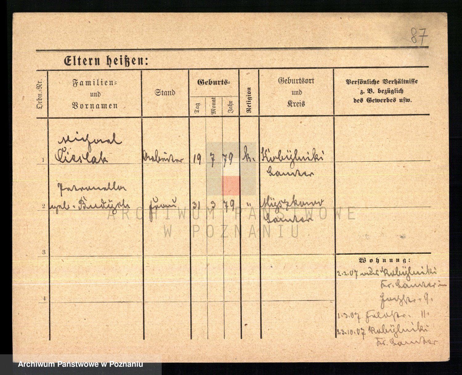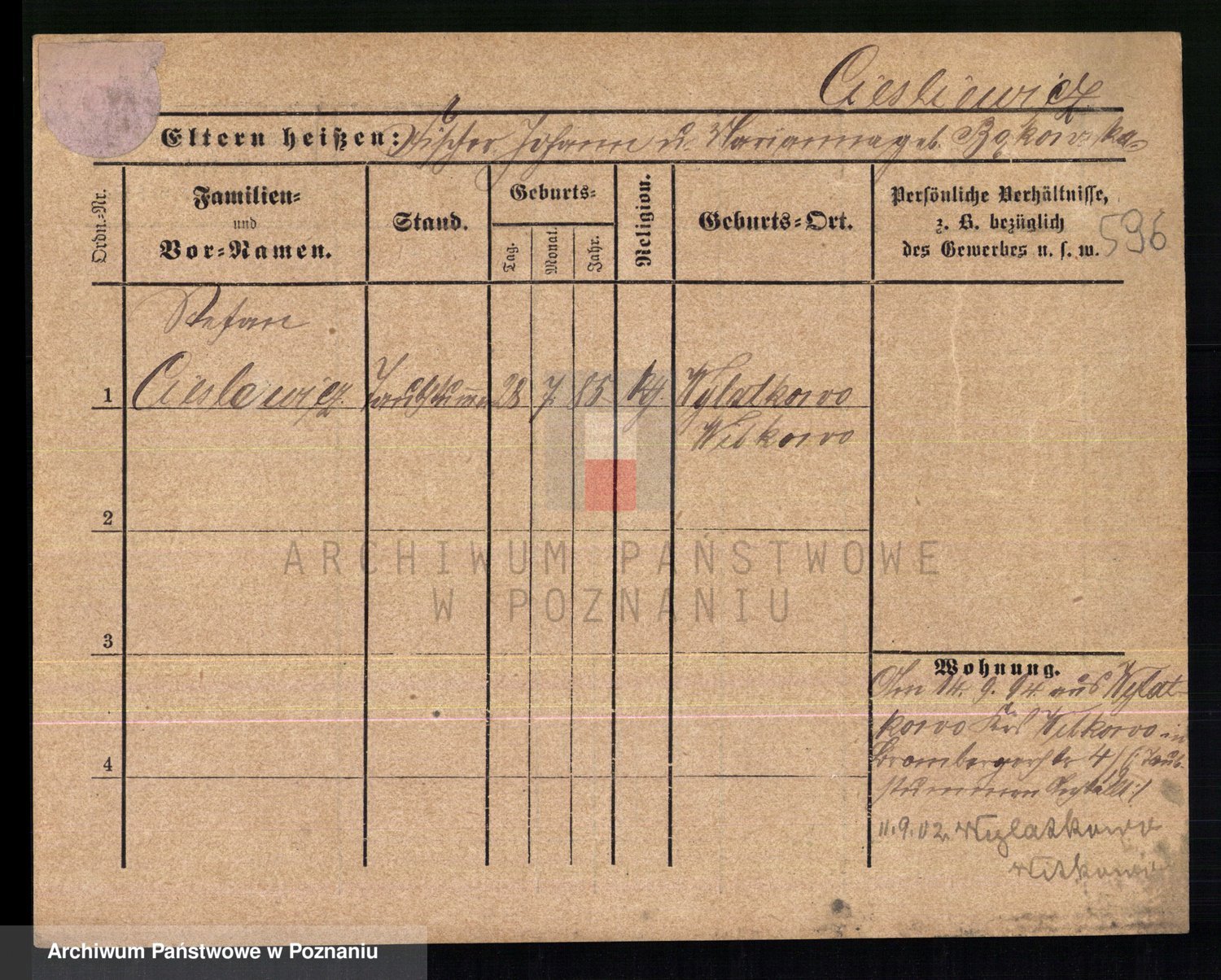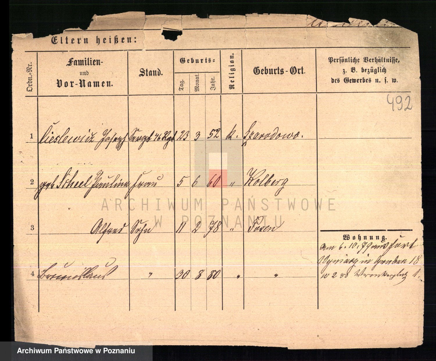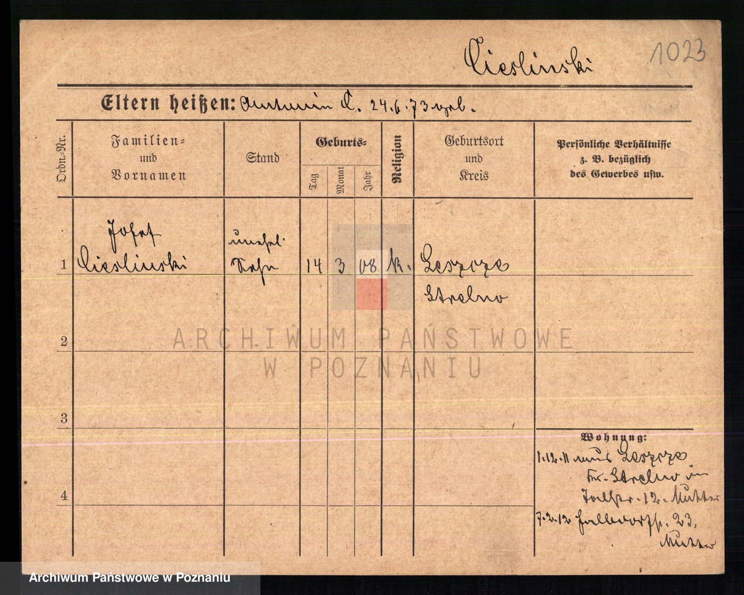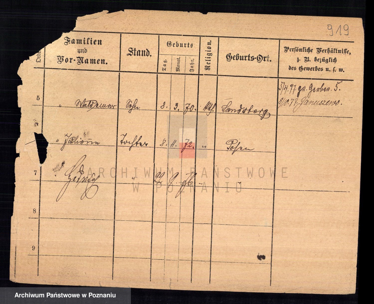 Podgląd karty osobowej dostępny jest po kliknięciu na nazwisko lub ikonkę karty. Można dokonywać powiększenia (ikony na górze) lub przechodzić między kolejnymi skanami (strzałki po bokach).