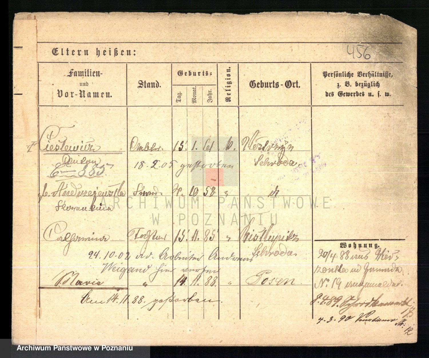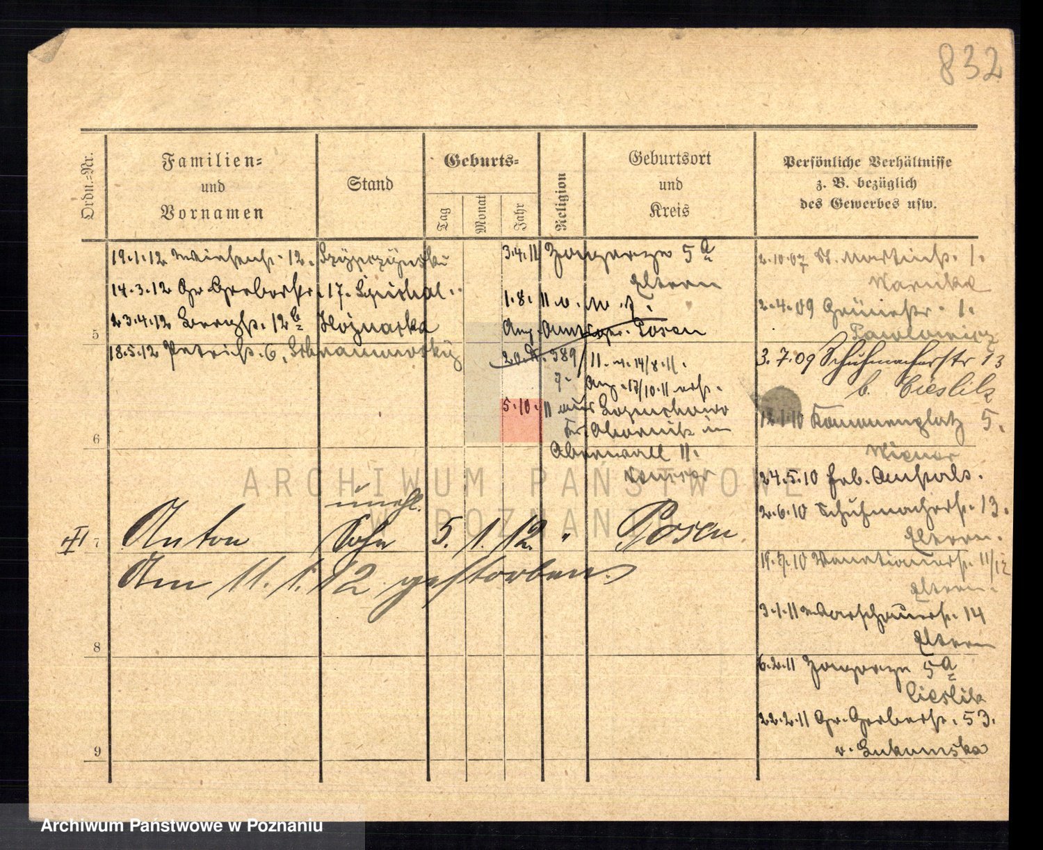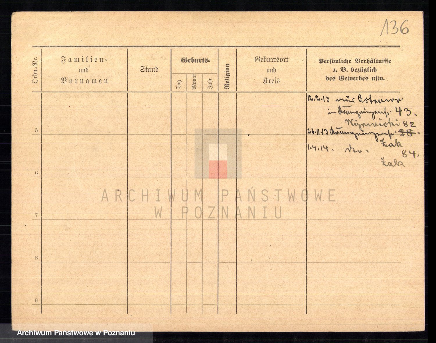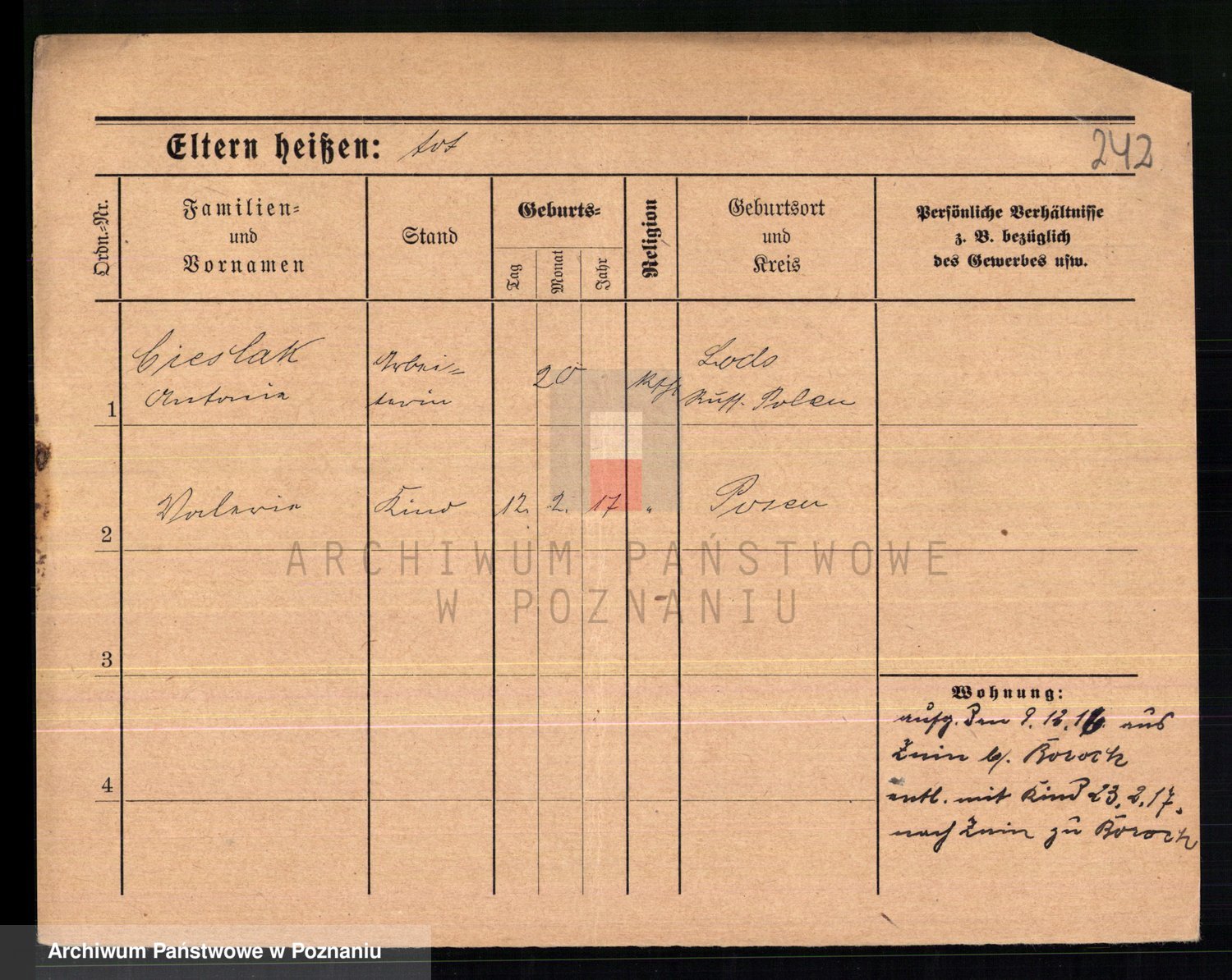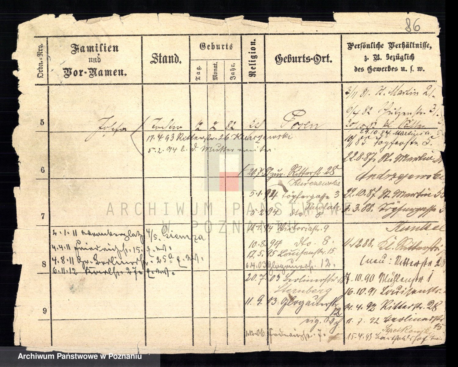 Podgląd karty osobowej dostępny jest po kliknięciu na nazwisko lub ikonkę karty. Można dokonywać powiększenia (ikony na górze) lub przechodzić między kolejnymi skanami (strzałki po bokach).