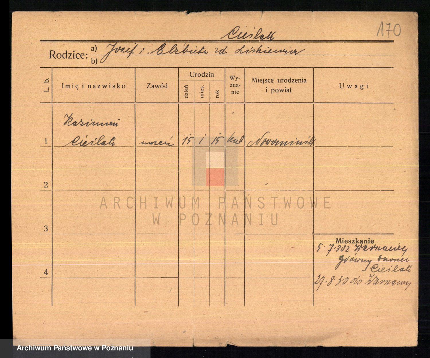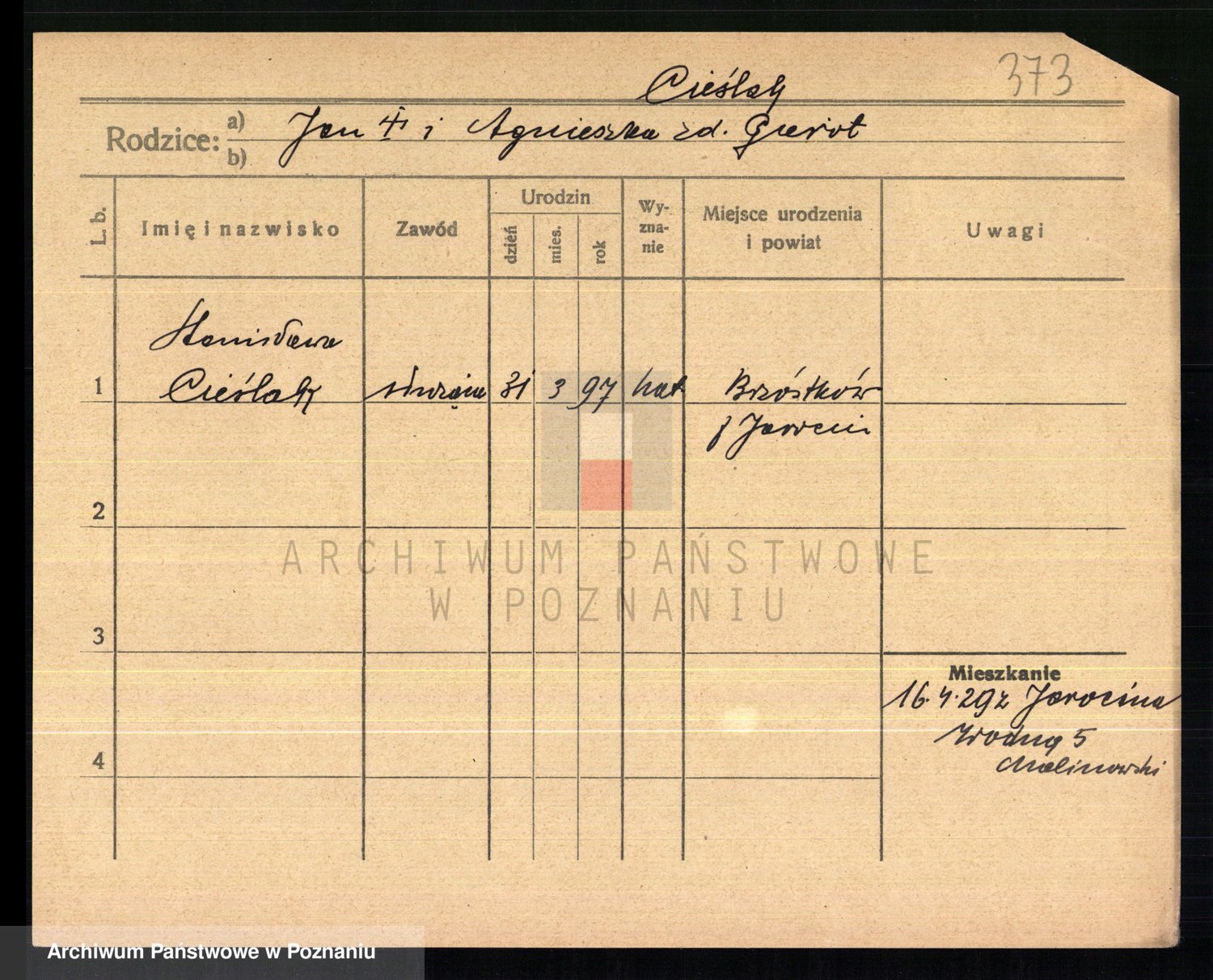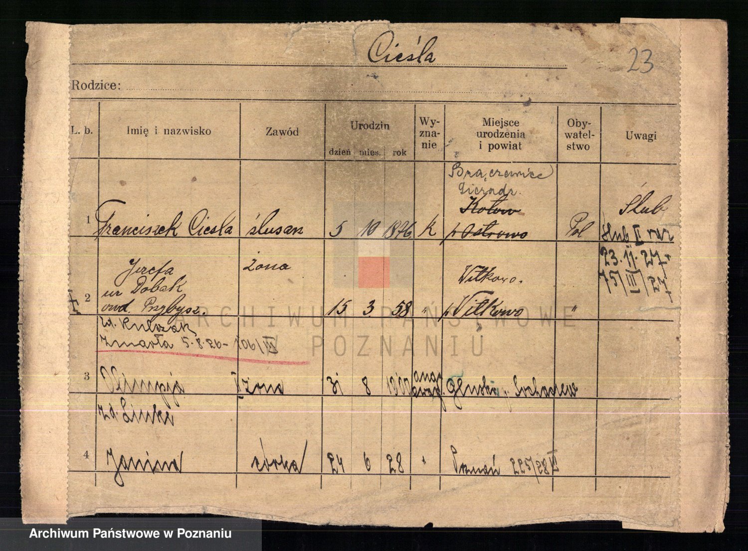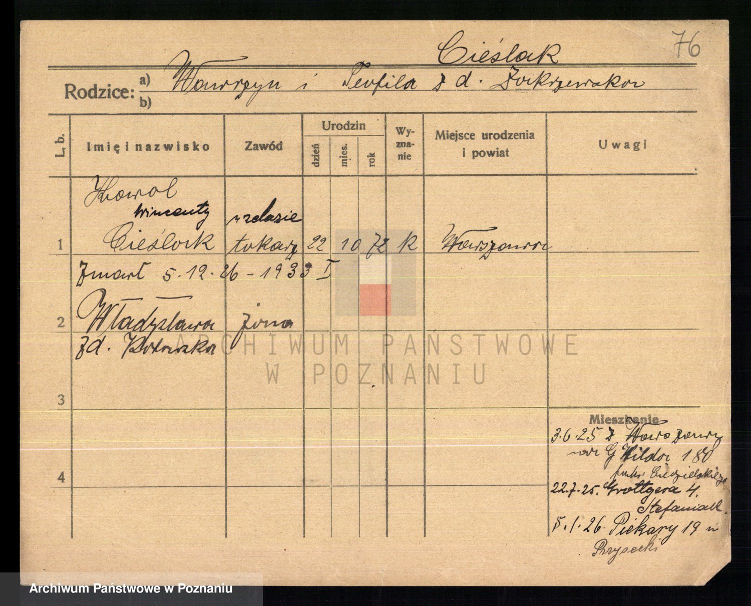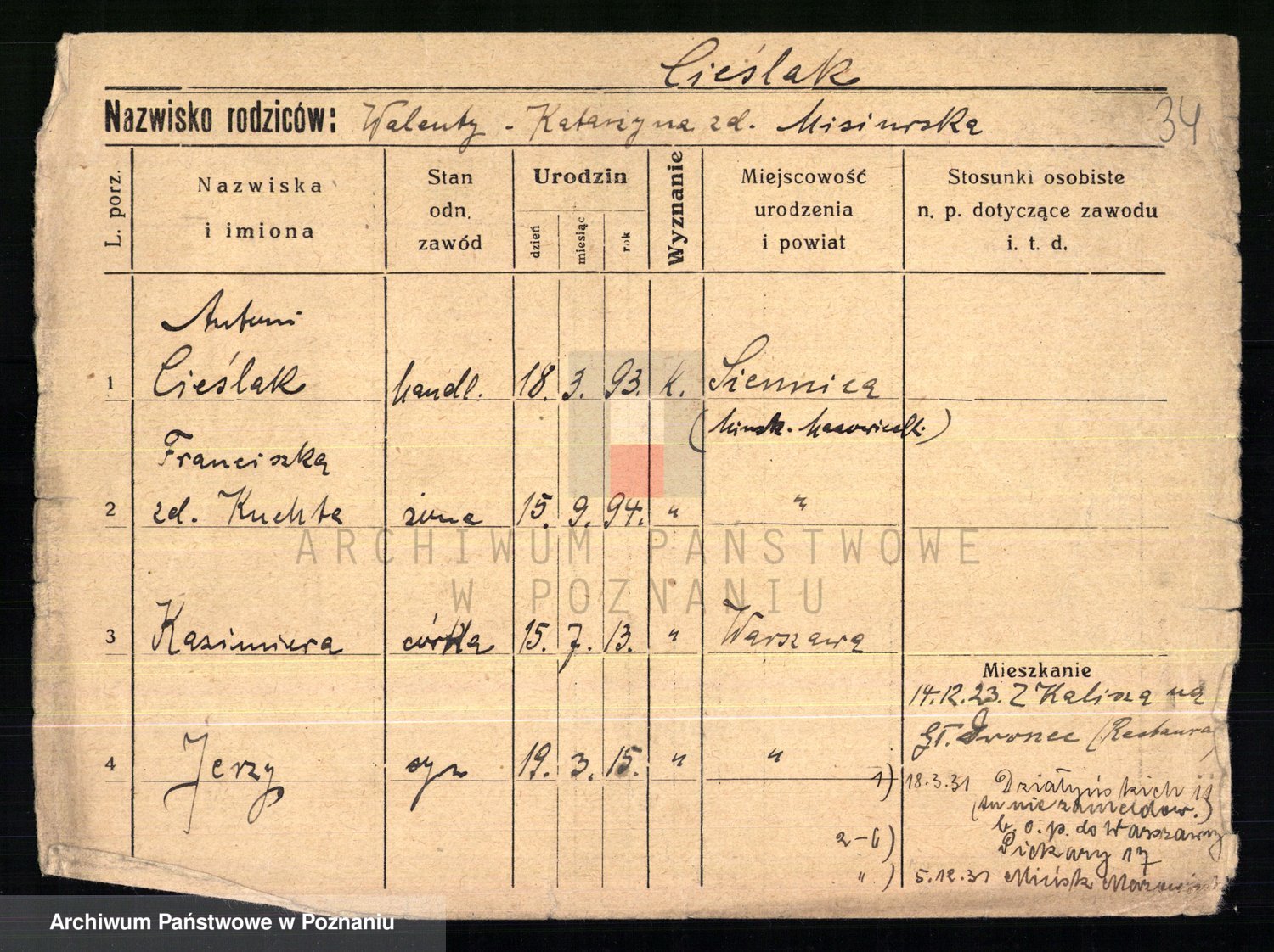 Cieśla, Winzentÿ