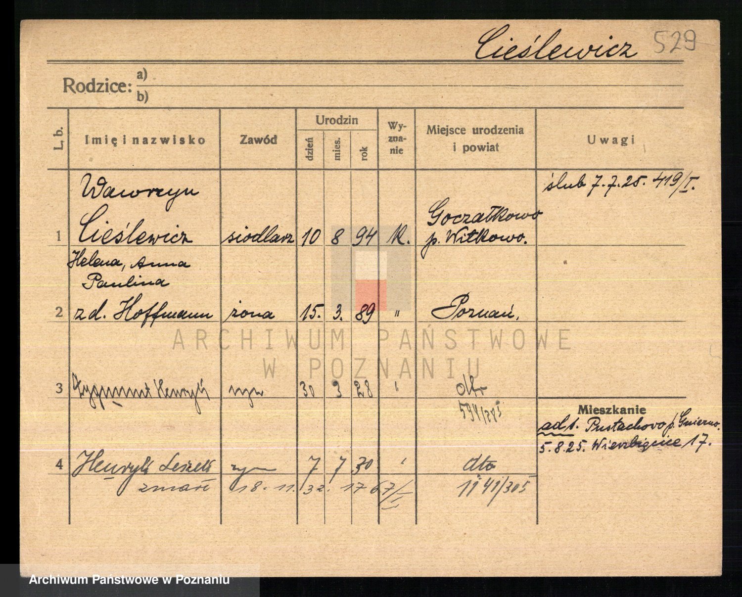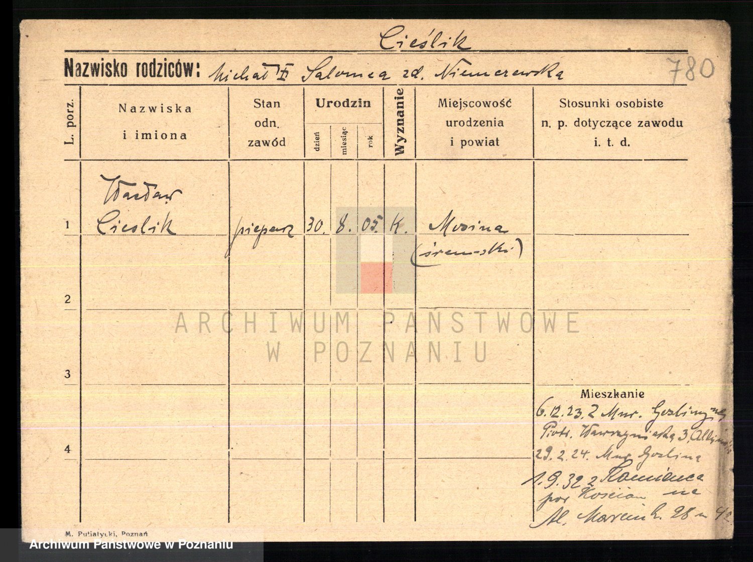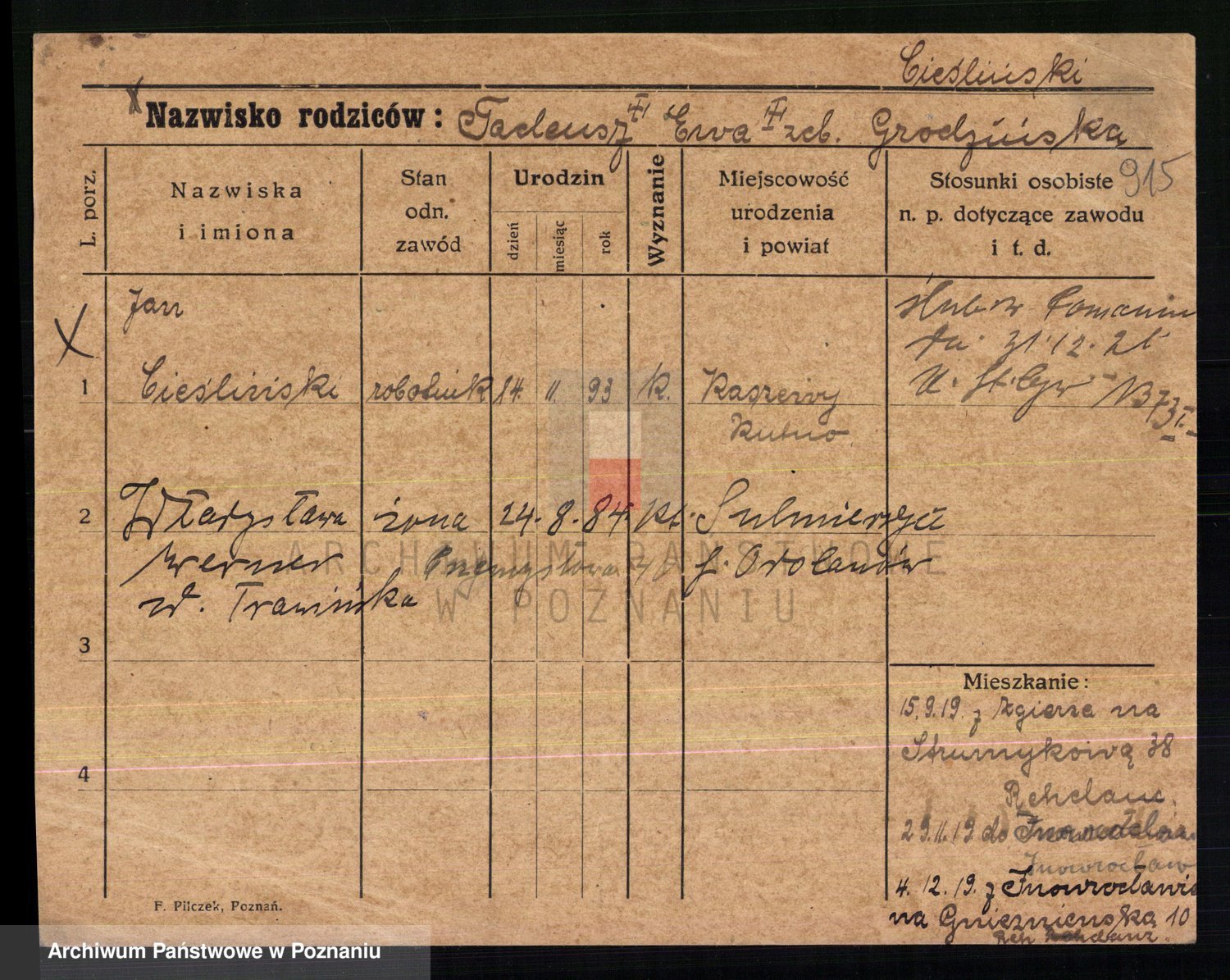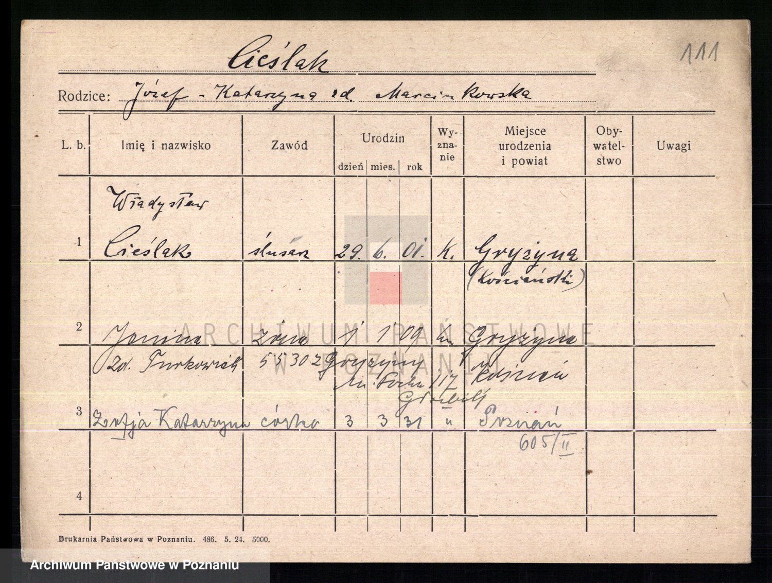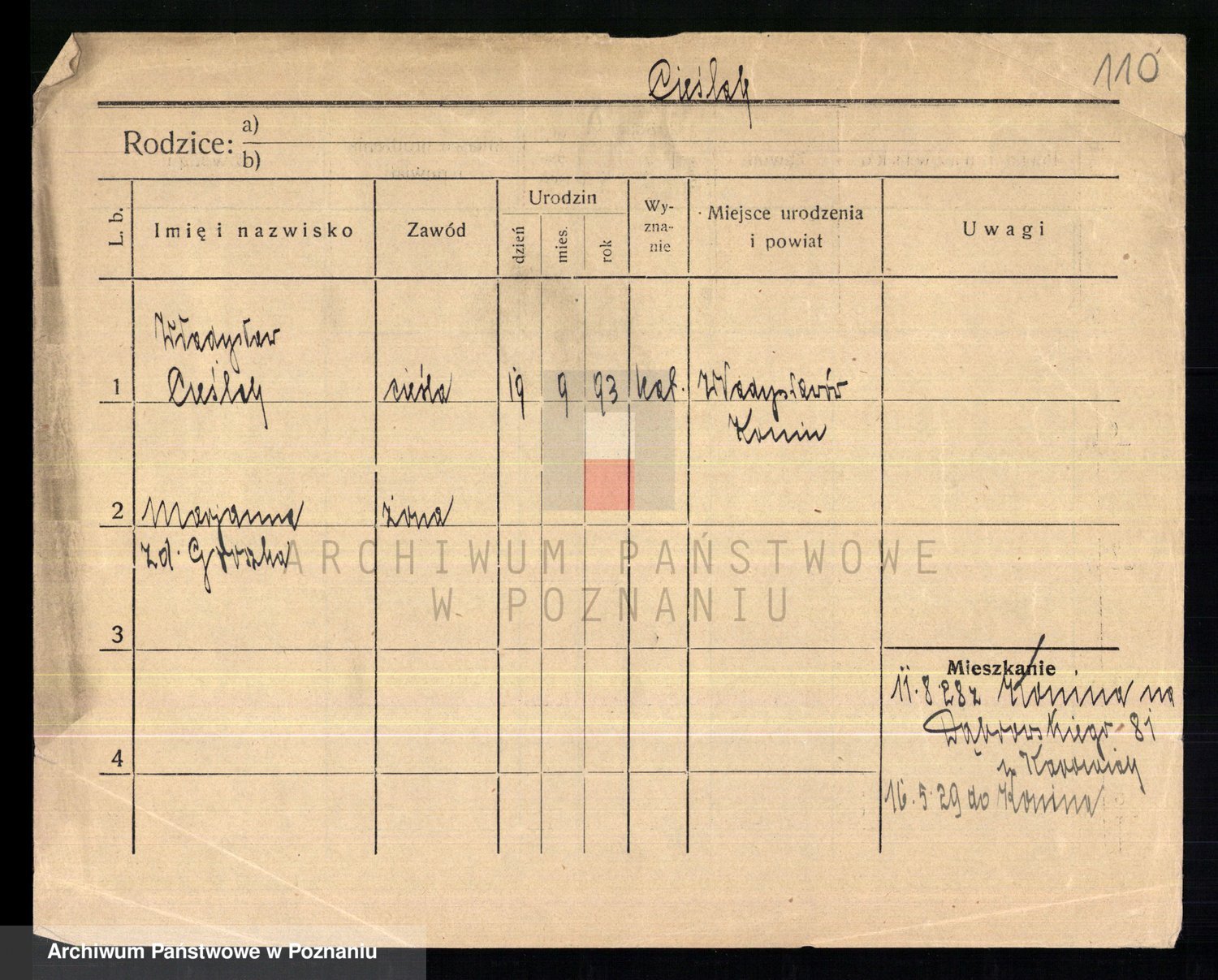 Cieśla, Winzentÿ