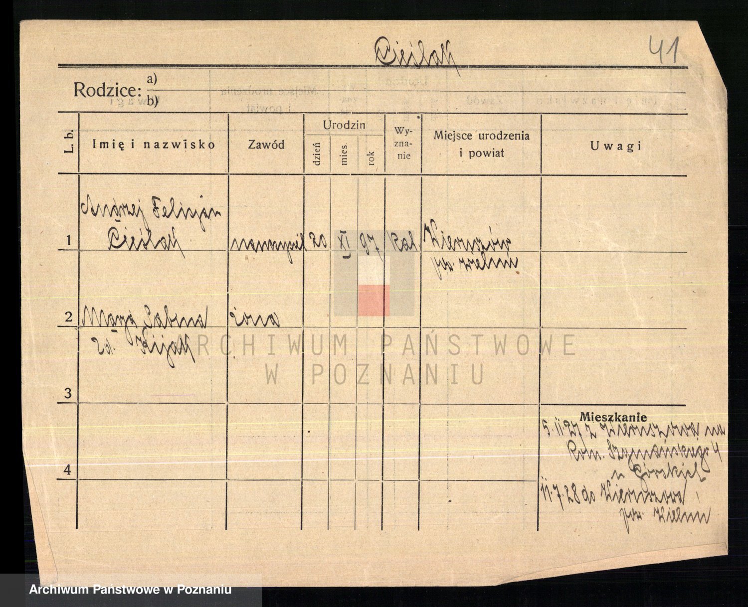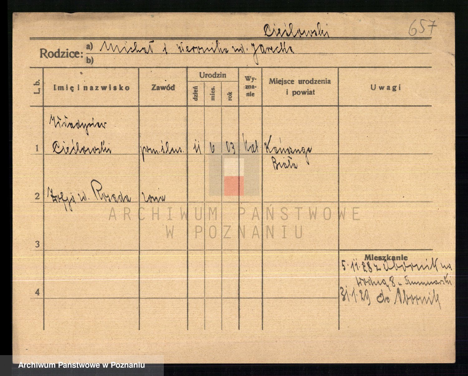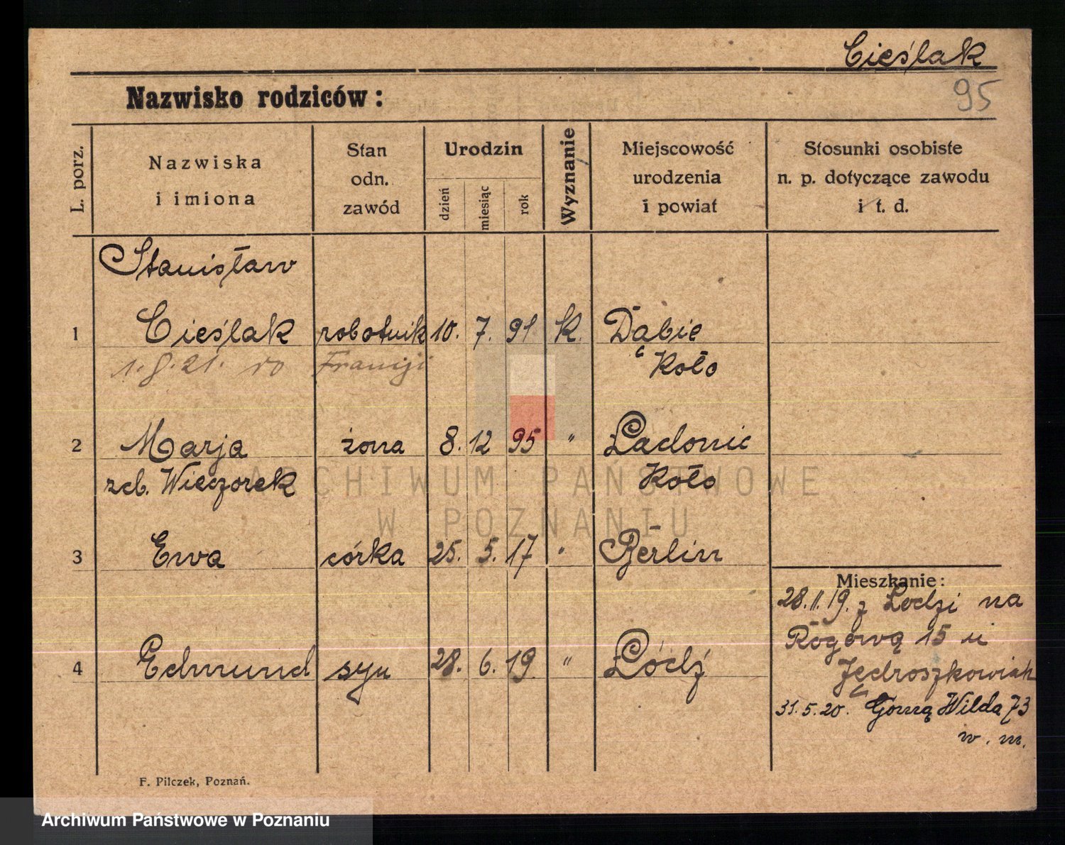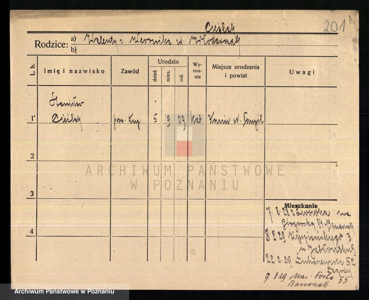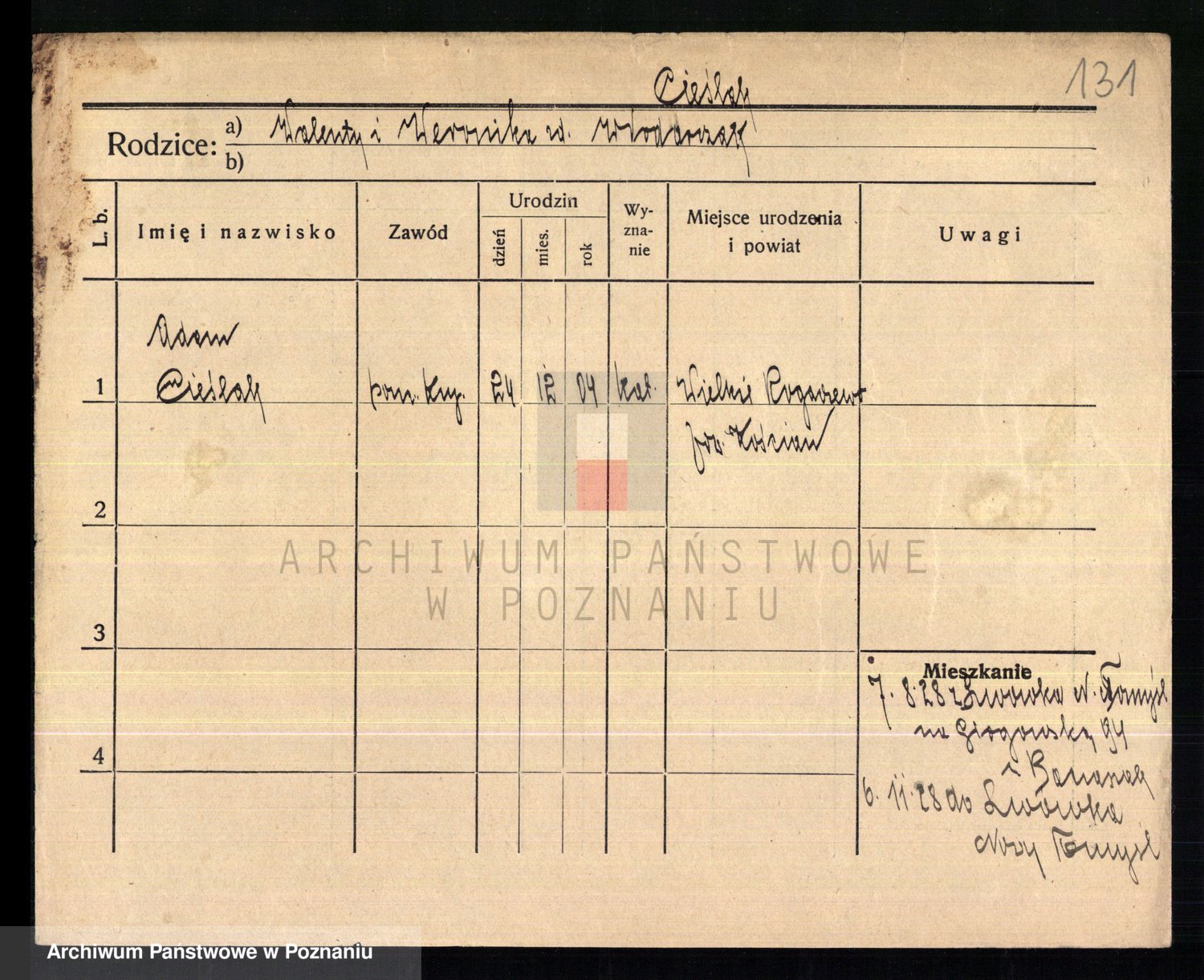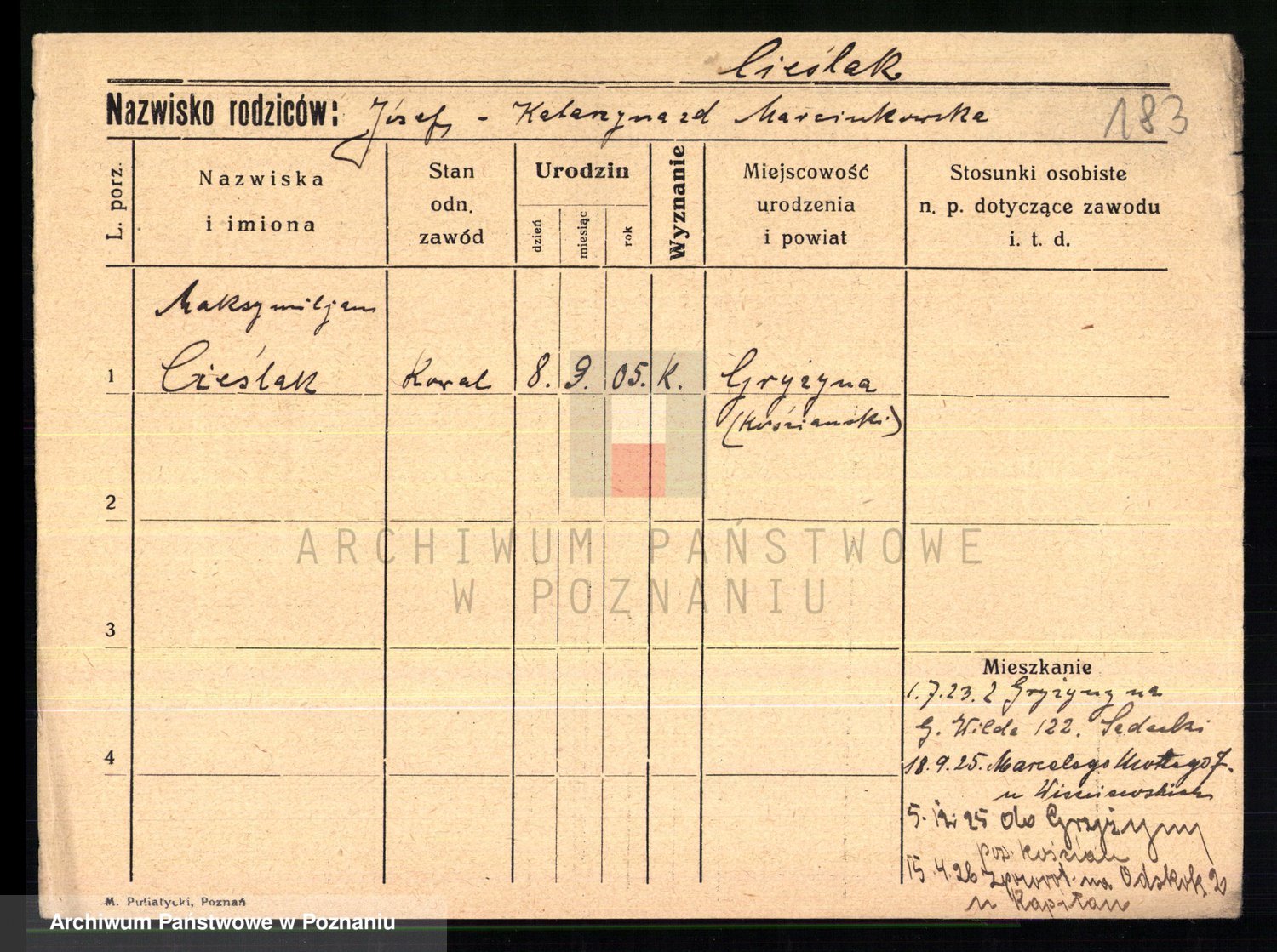 Cieśla, Winzentÿ