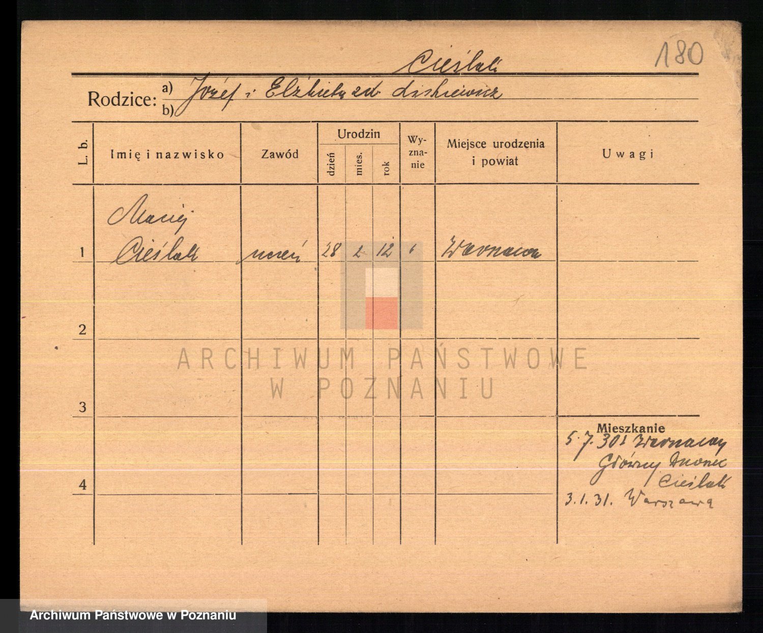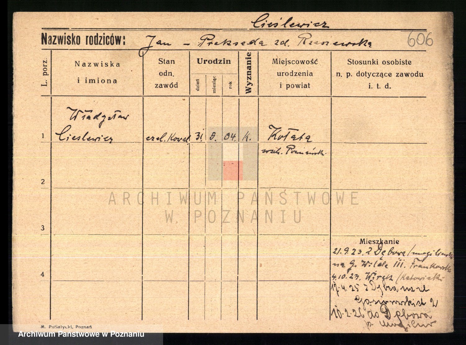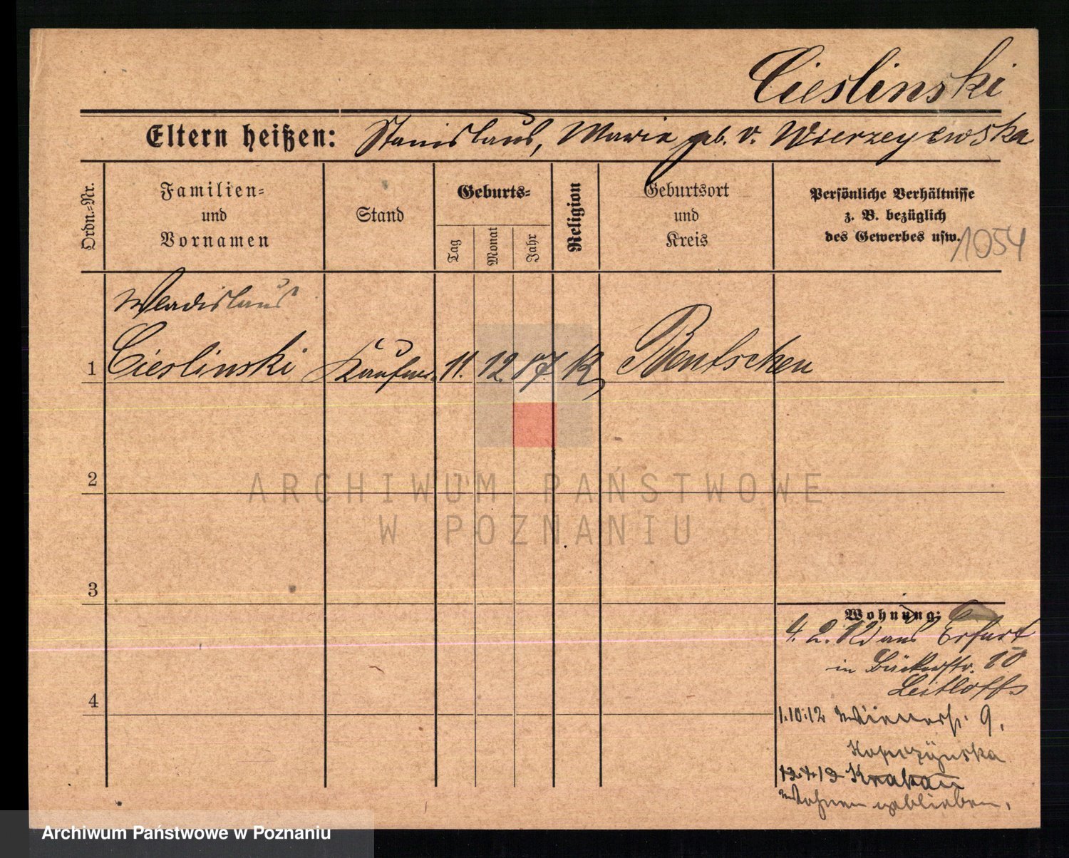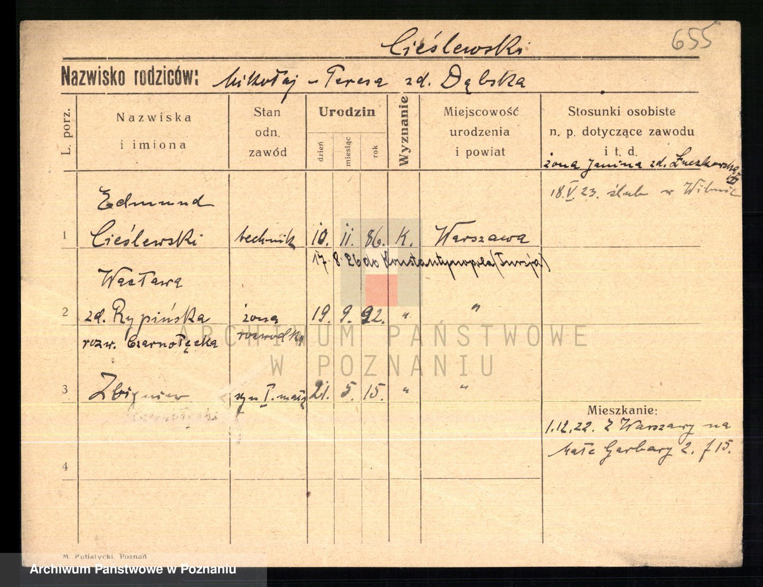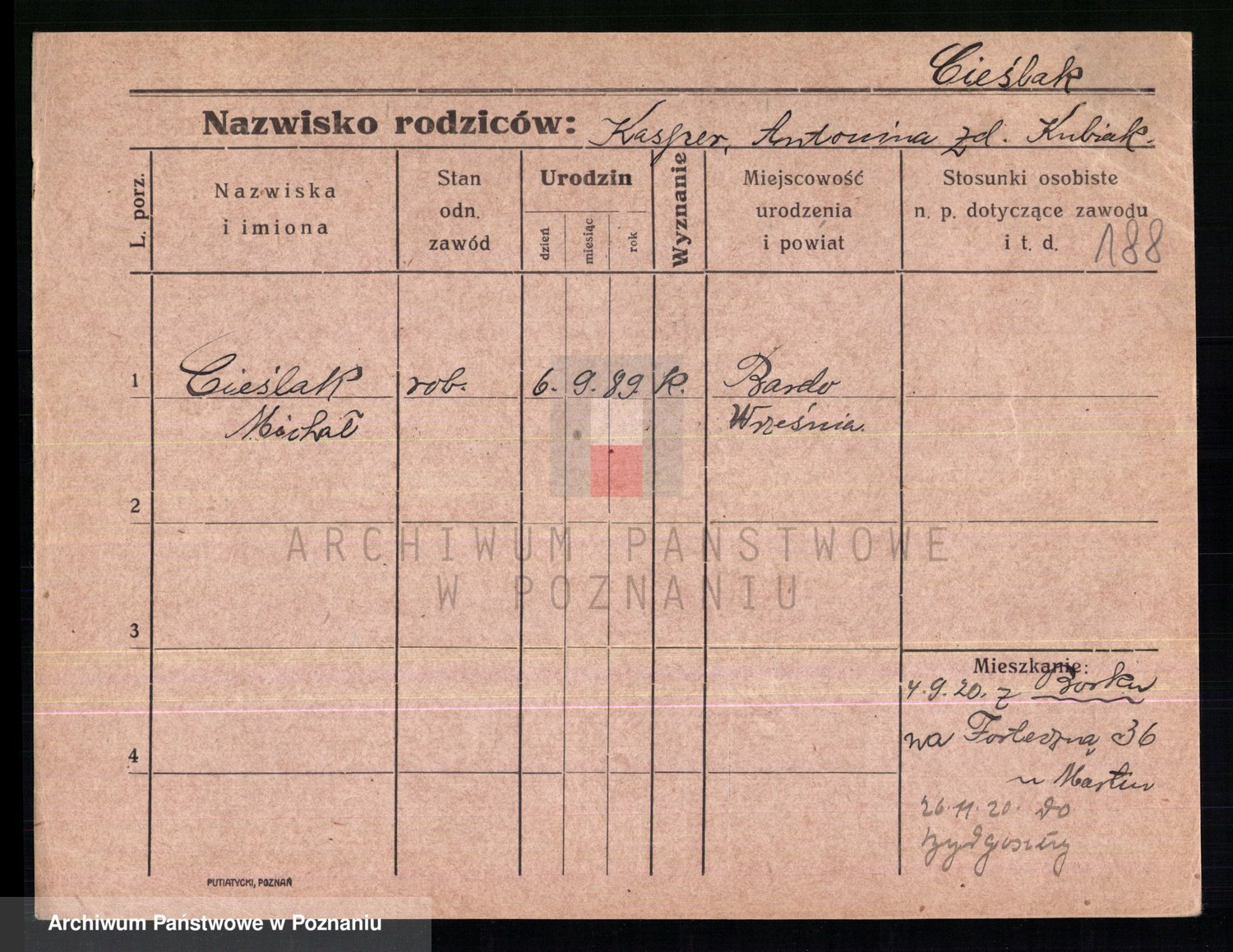 Cieśla, Winzentÿ