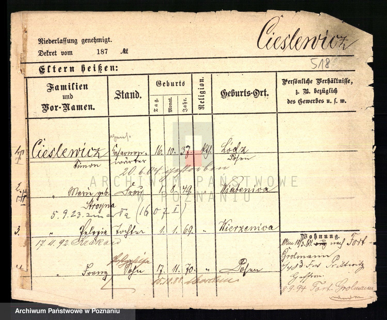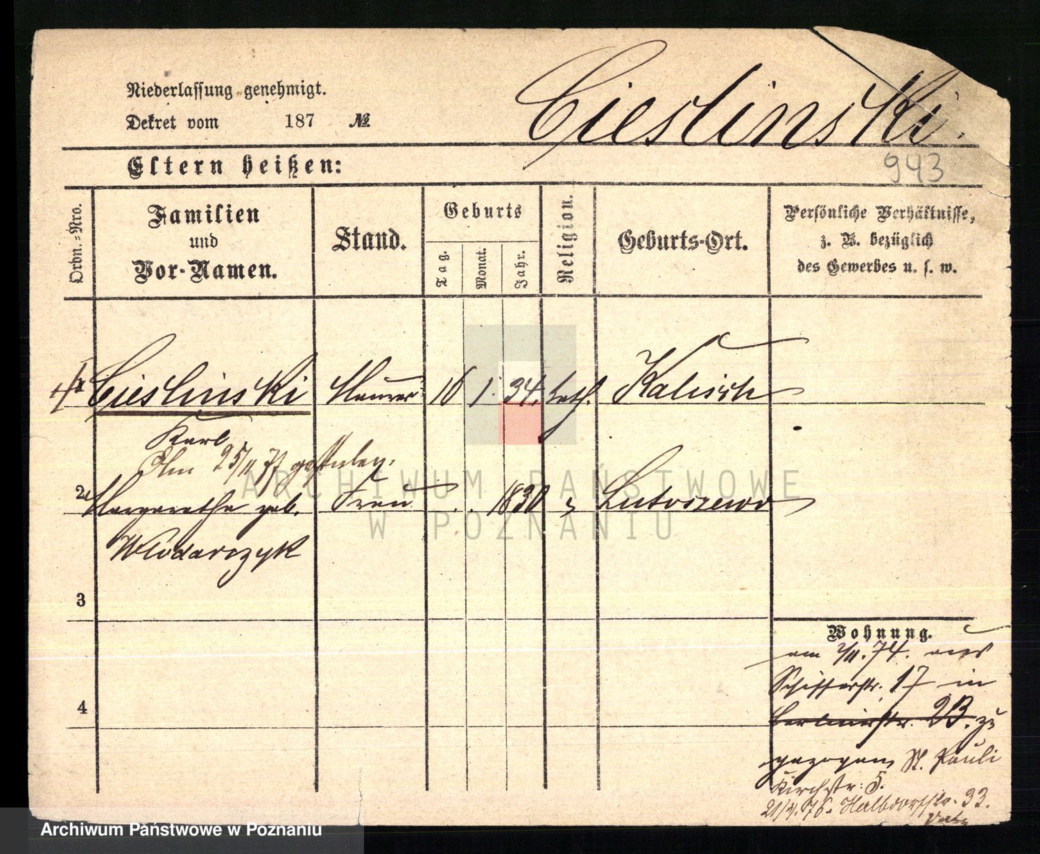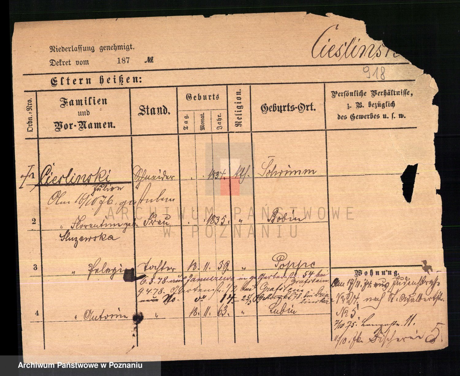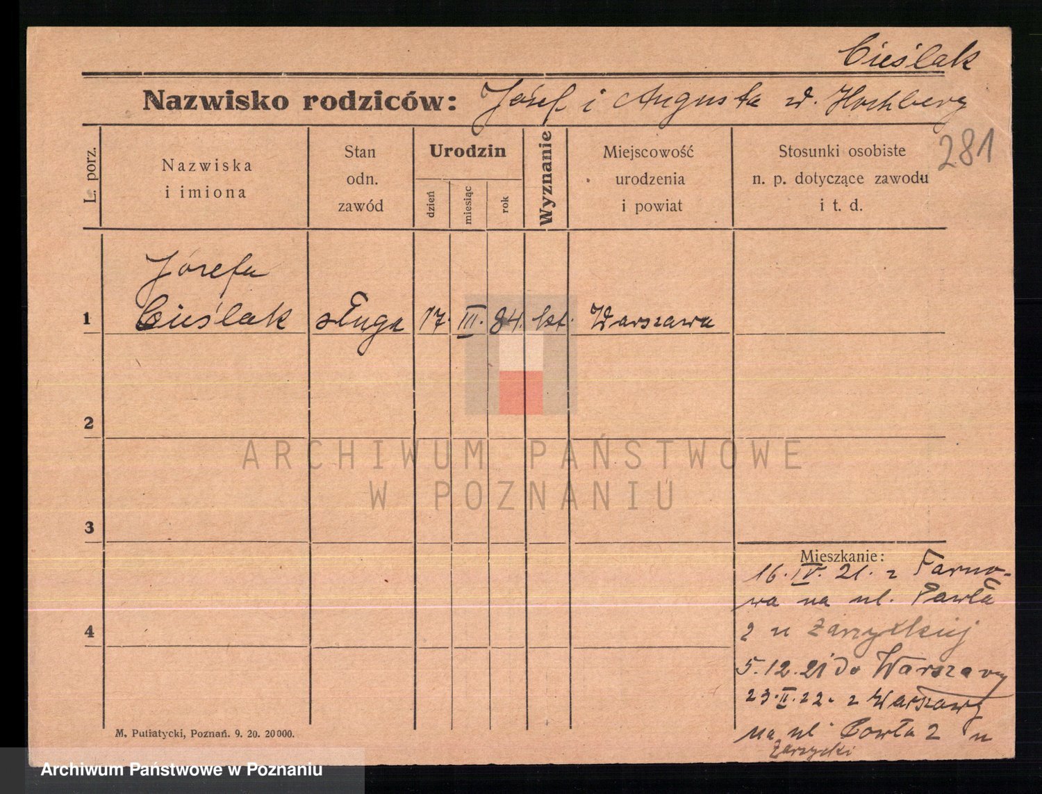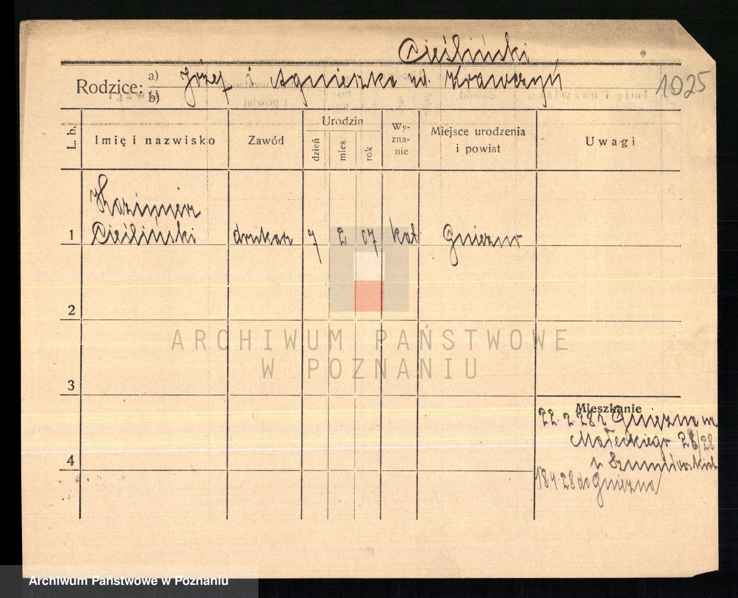 Cieśla, Winzentÿ