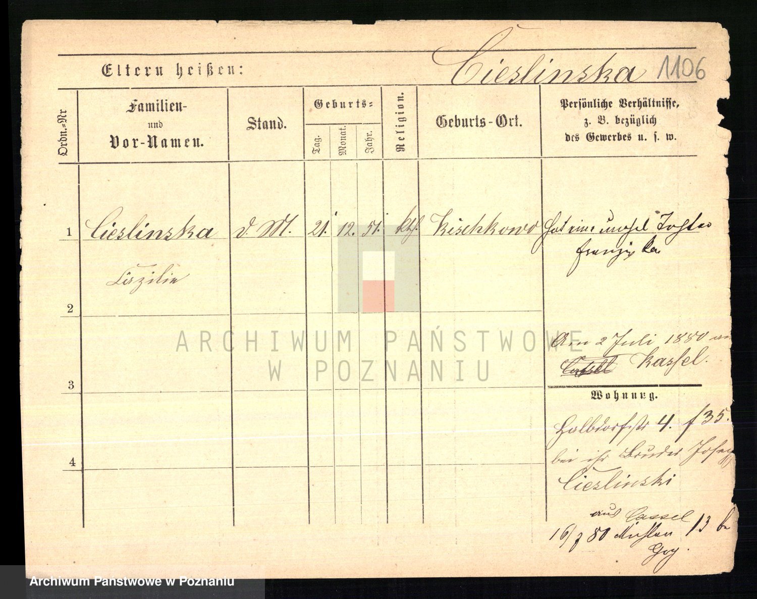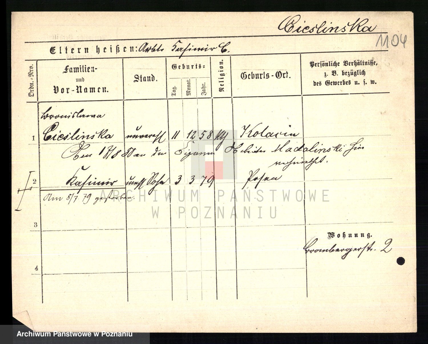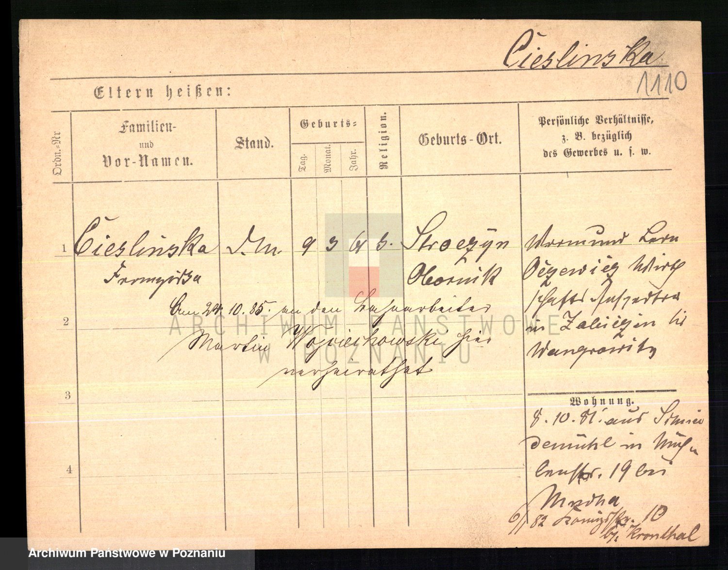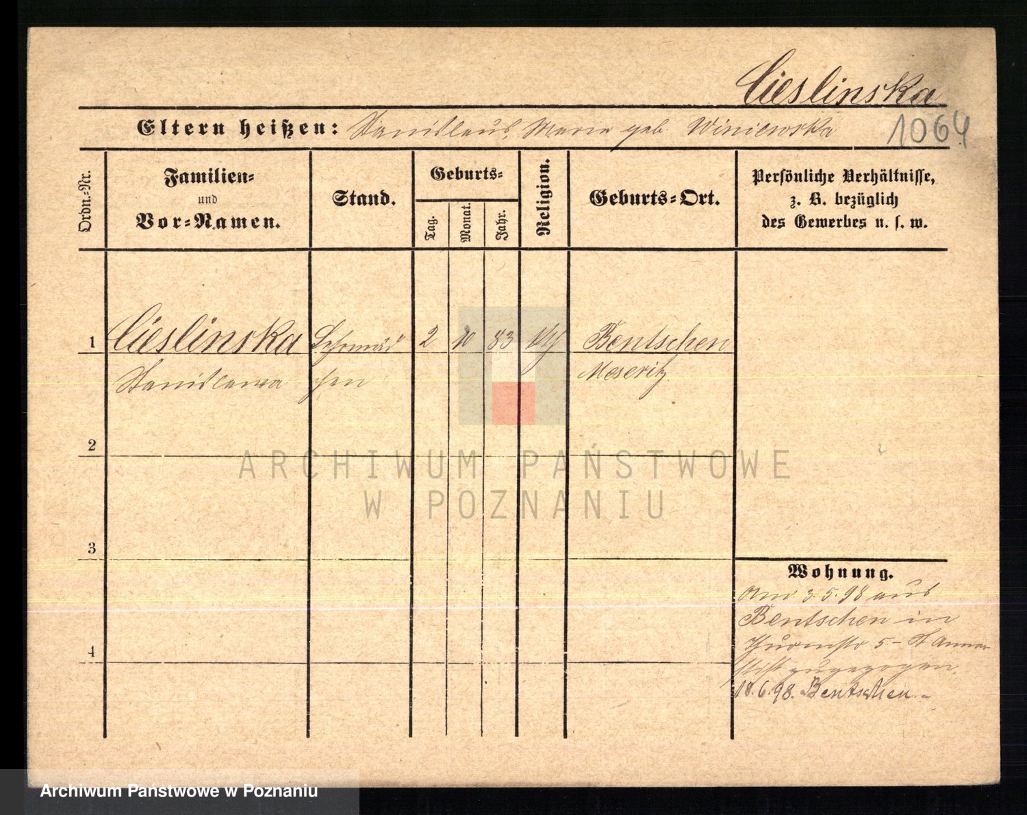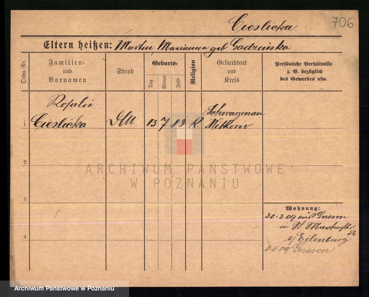Ciesnik z.d. Maternowski, Cäcilie