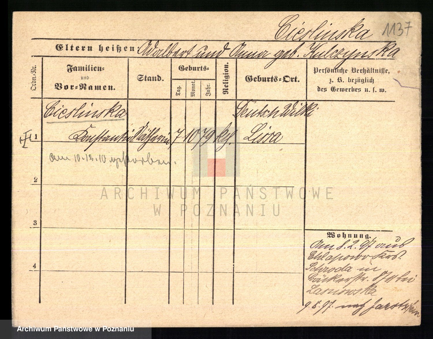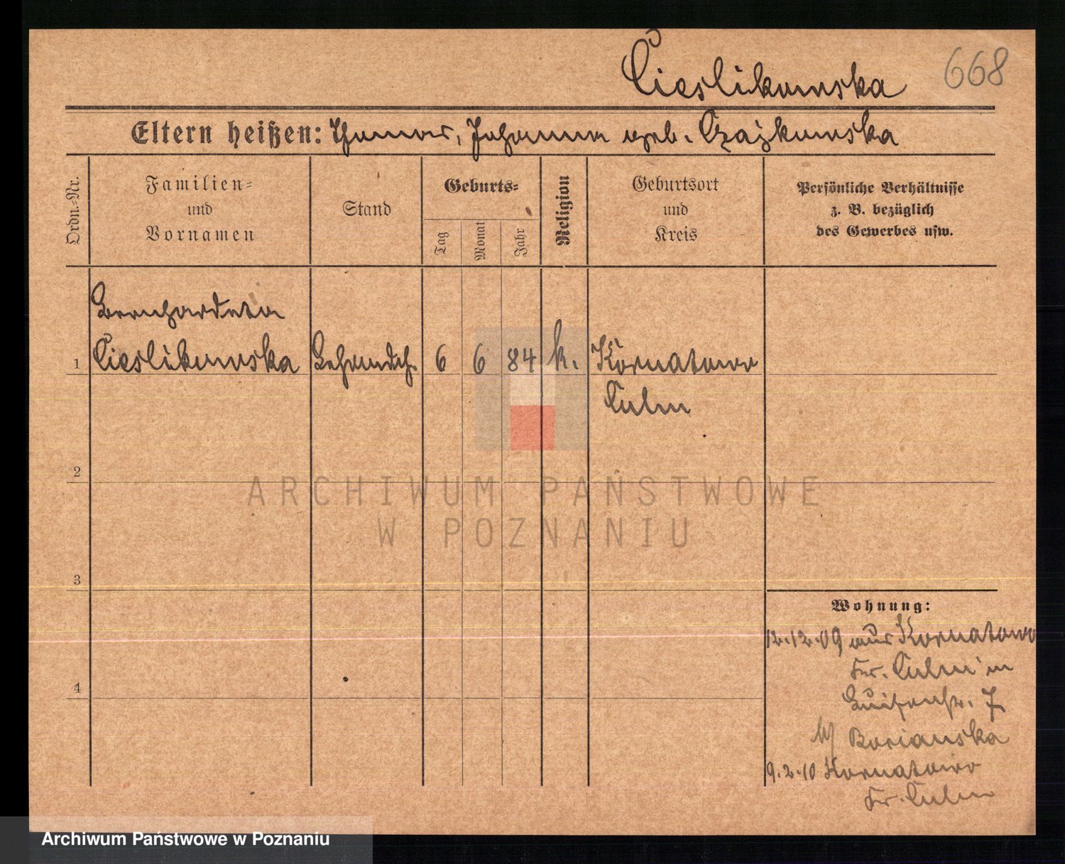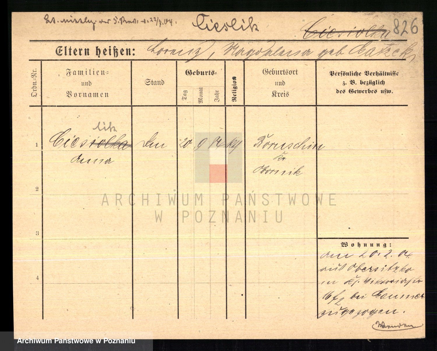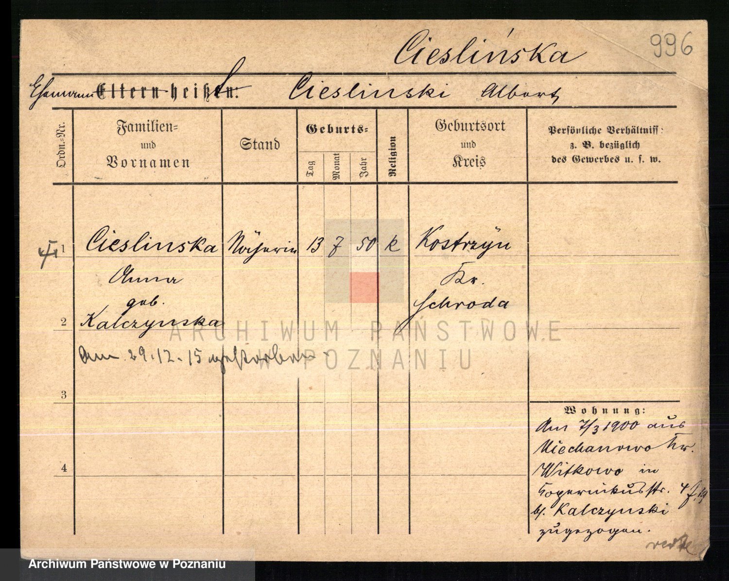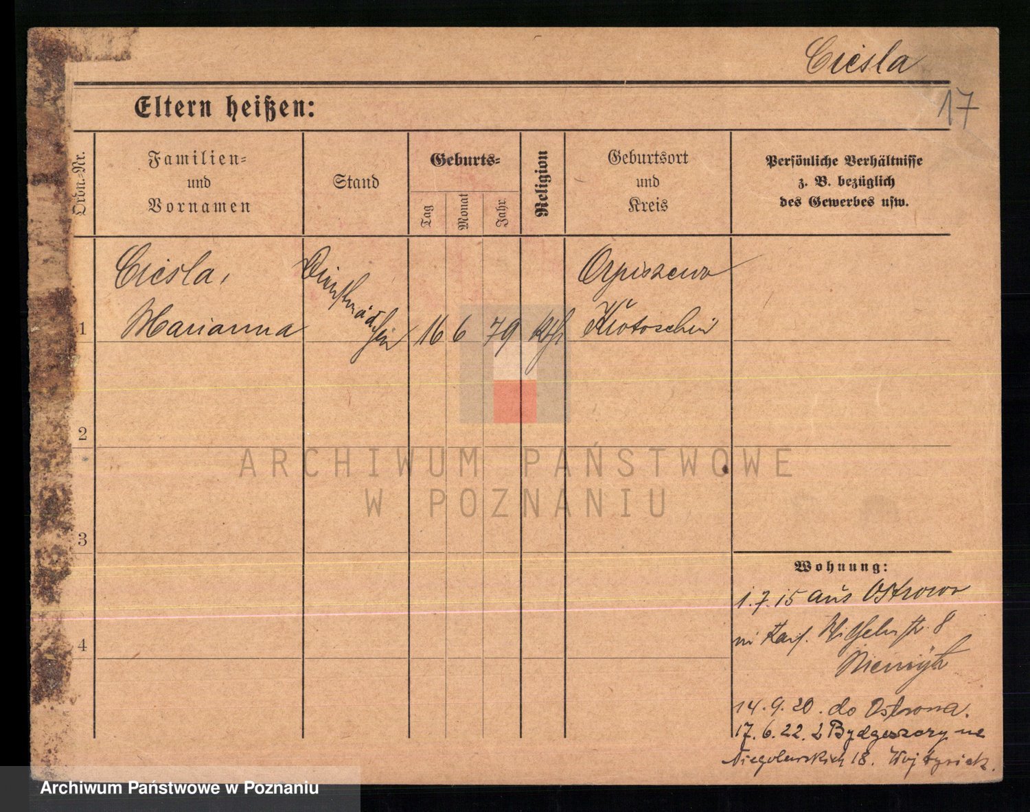 Ciesnik z.d. Maternowski, Cäcilie