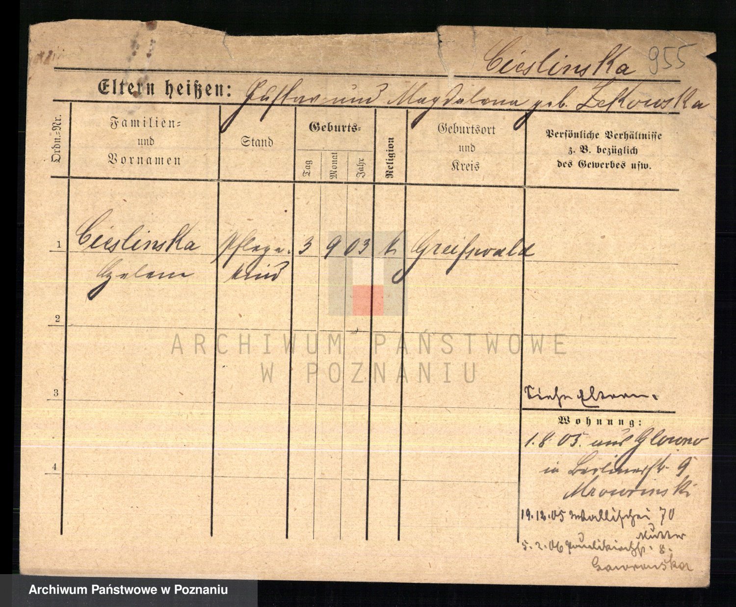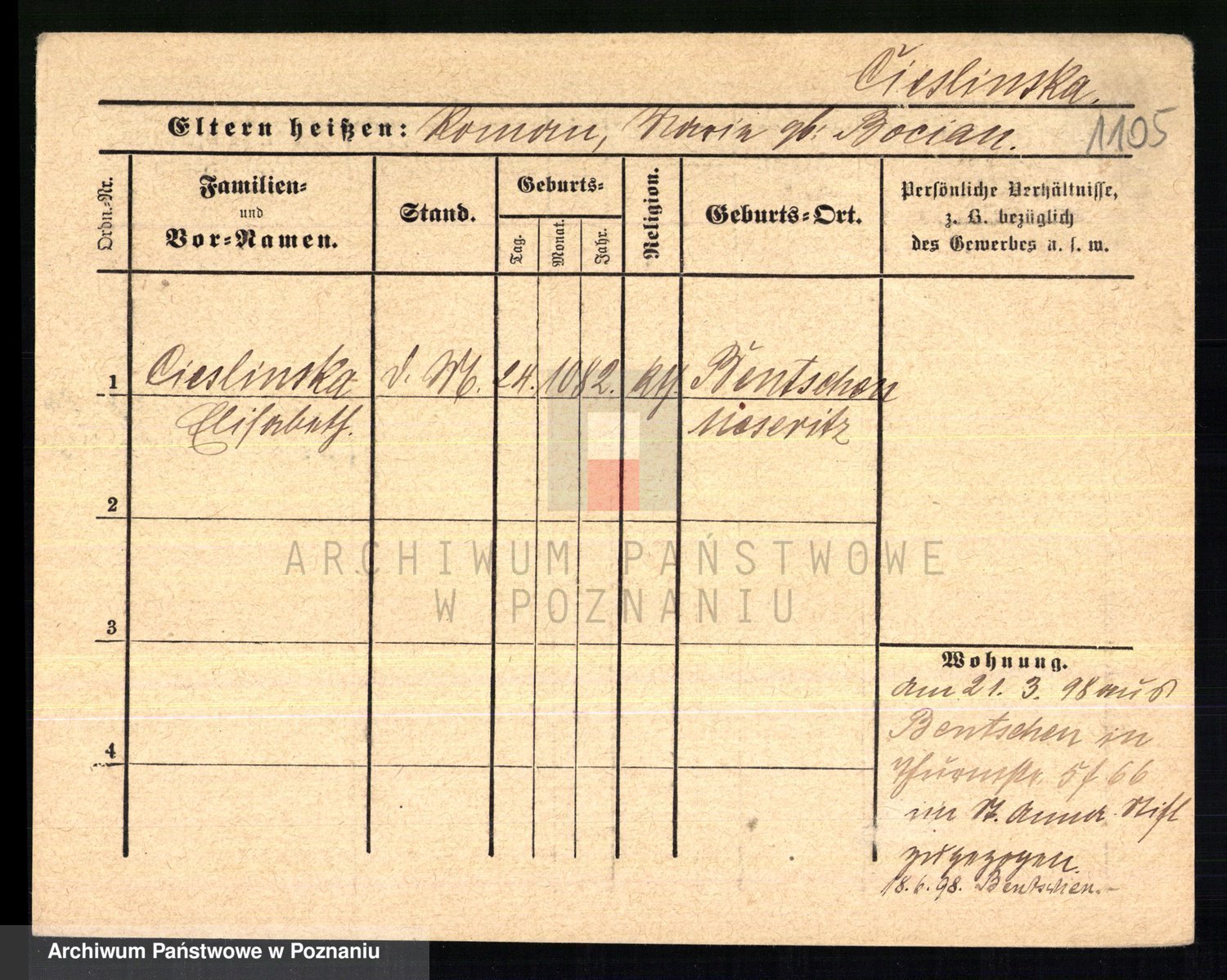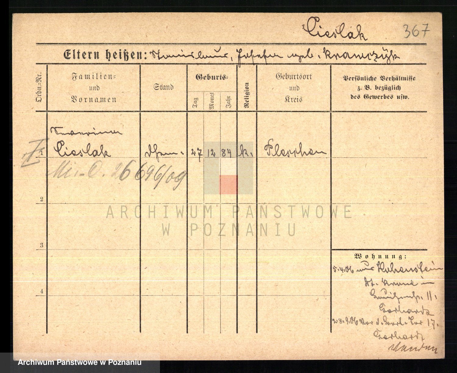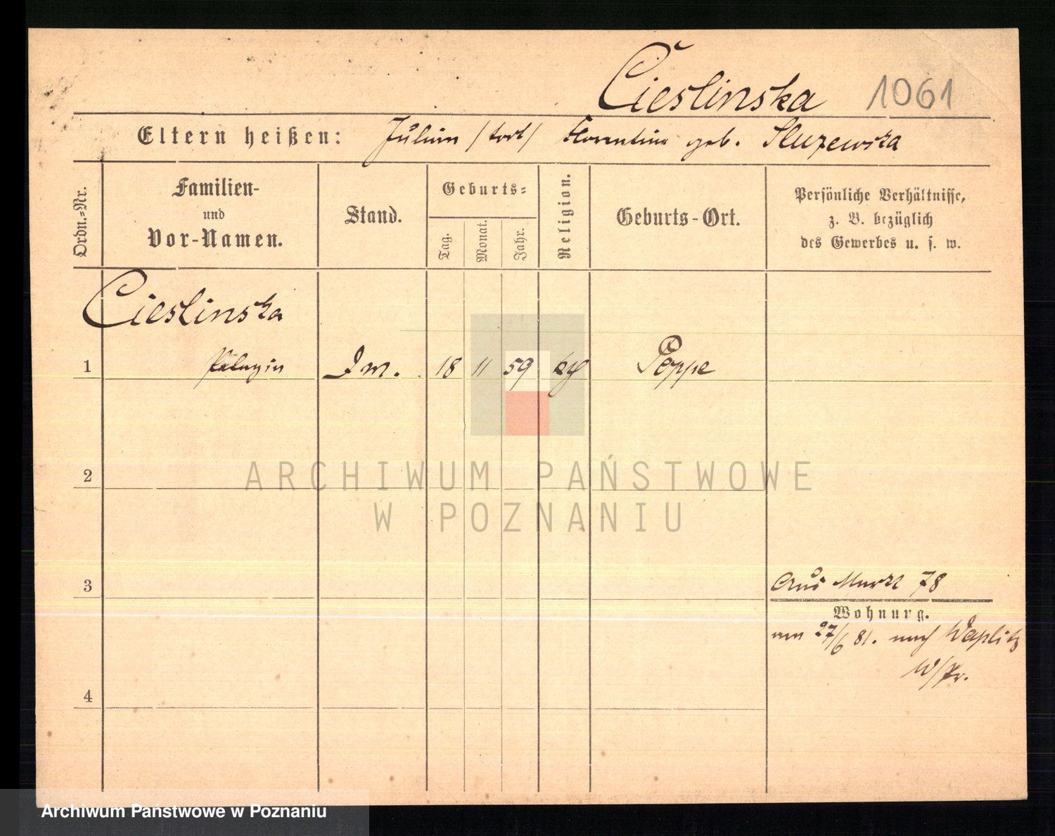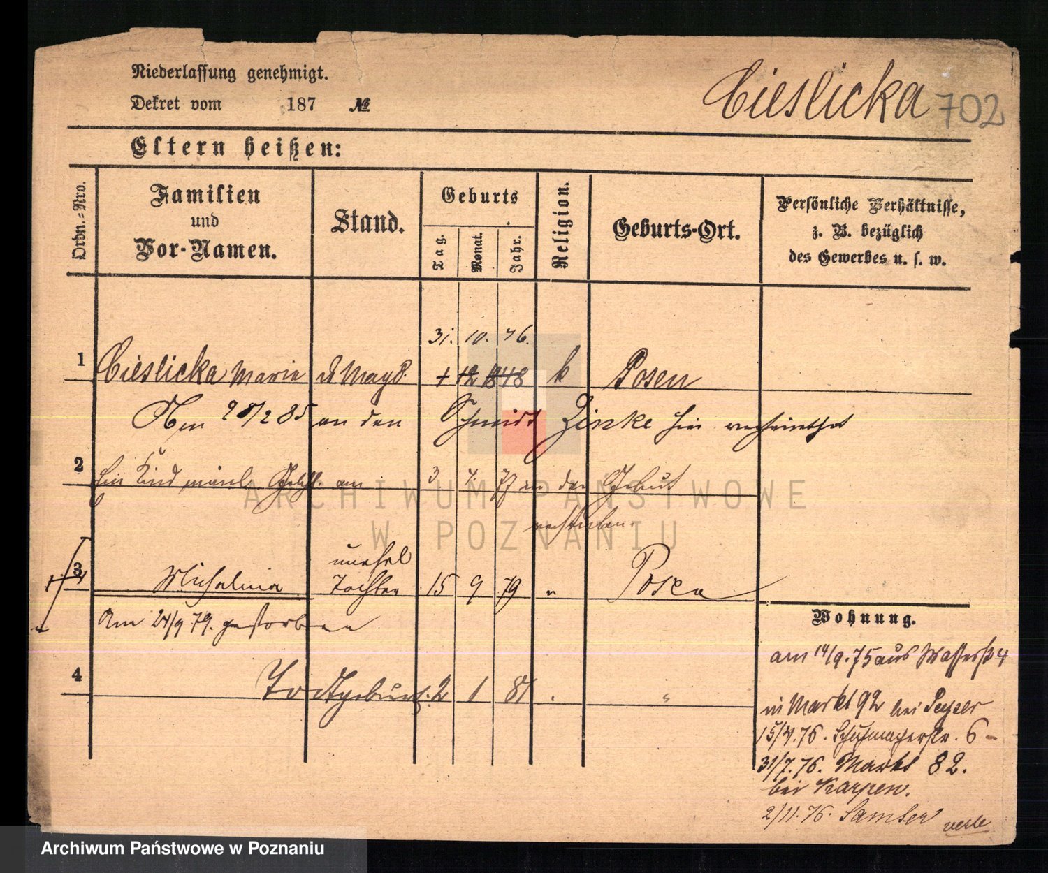 Ciesnik z.d. Maternowski, Cäcilie