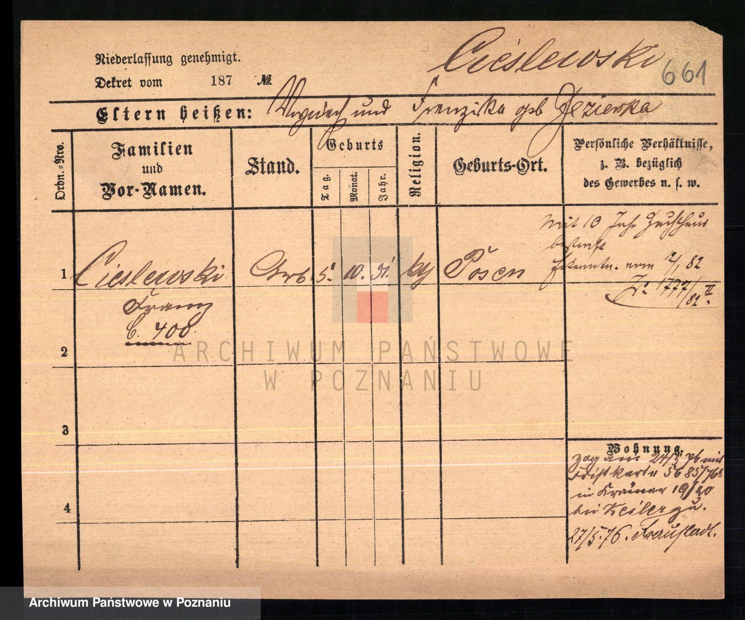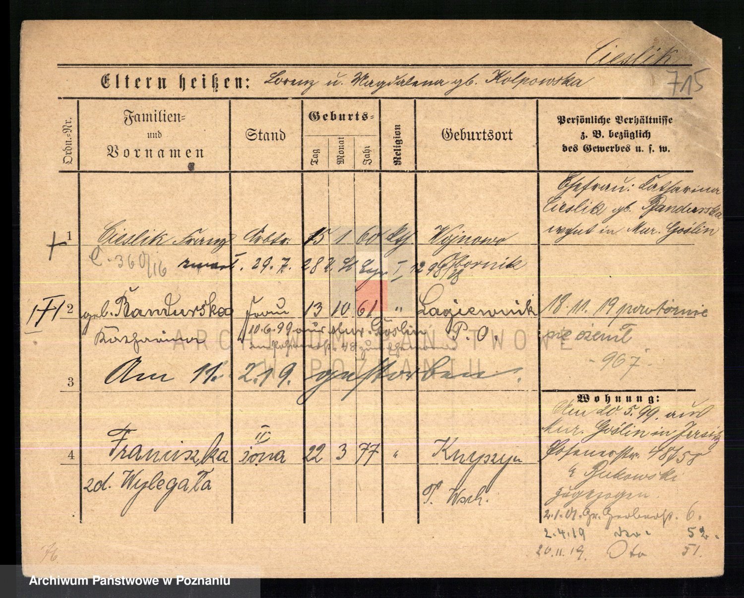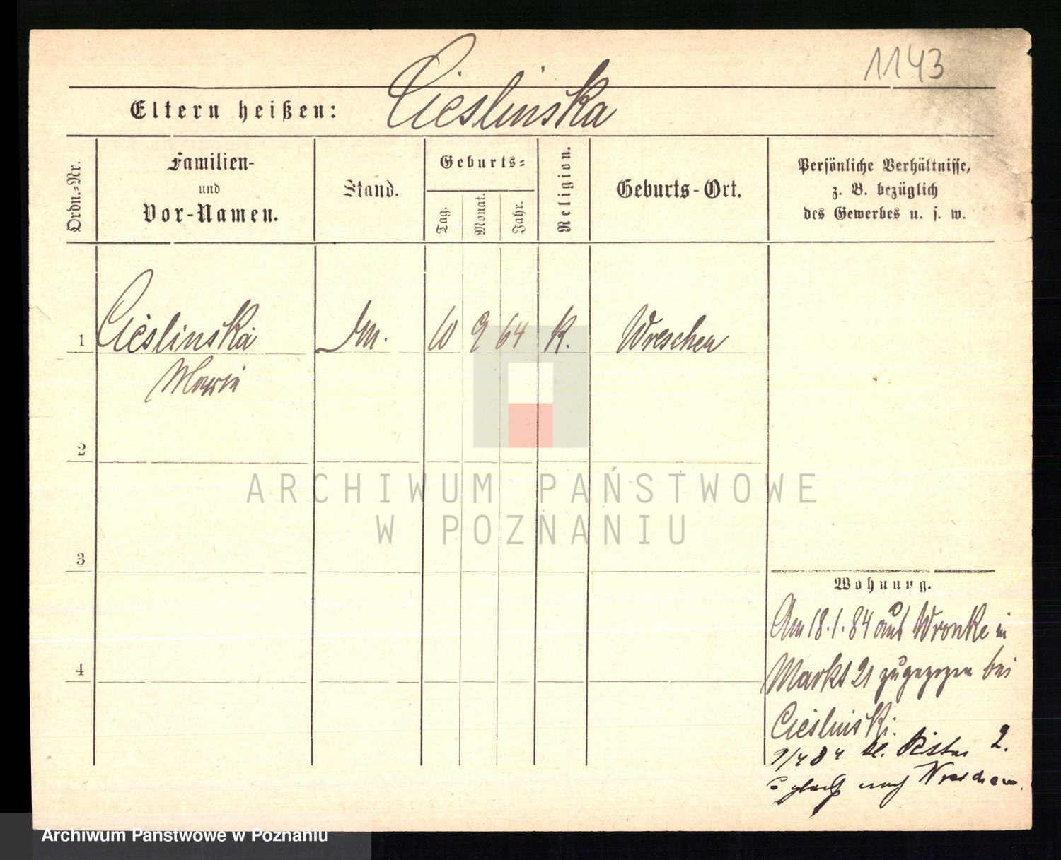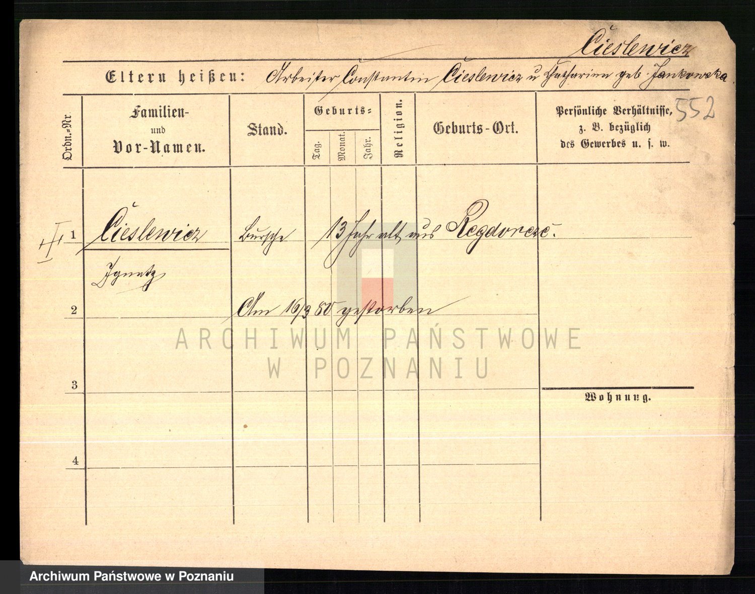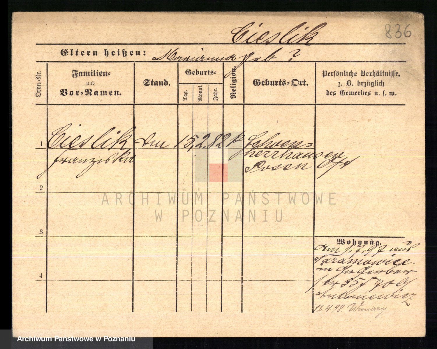 Ciesnik z.d. Maternowski, Cäcilie