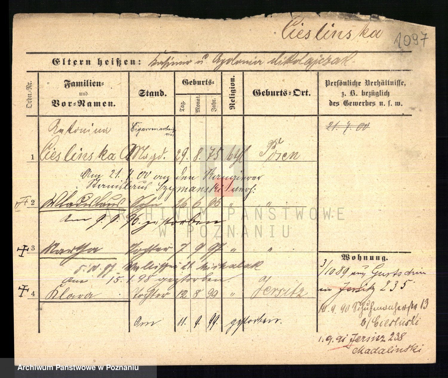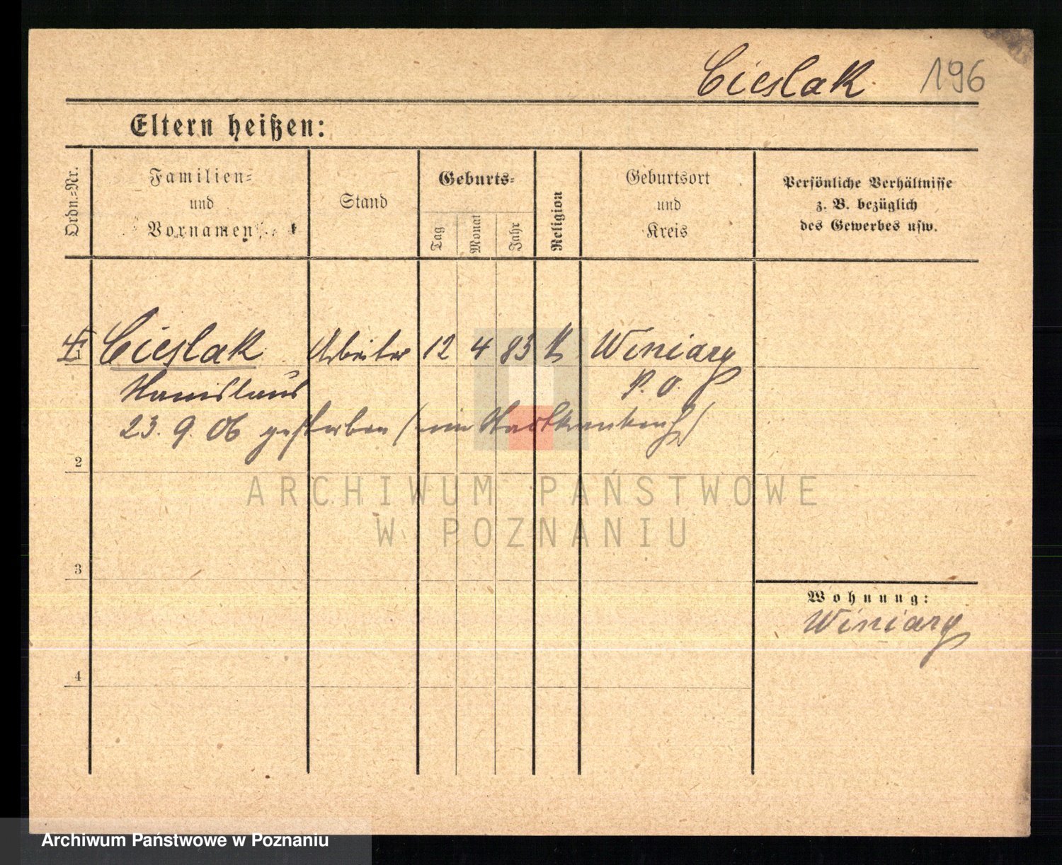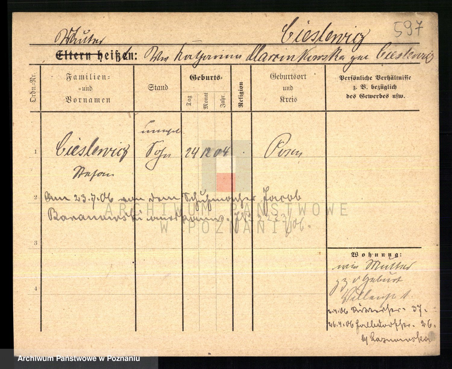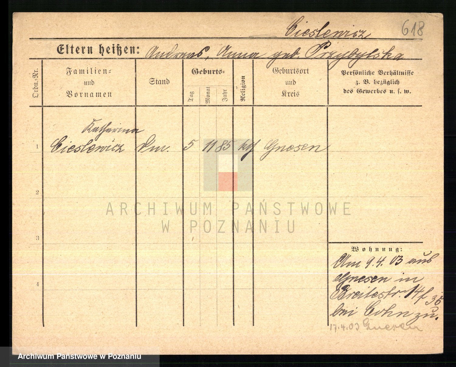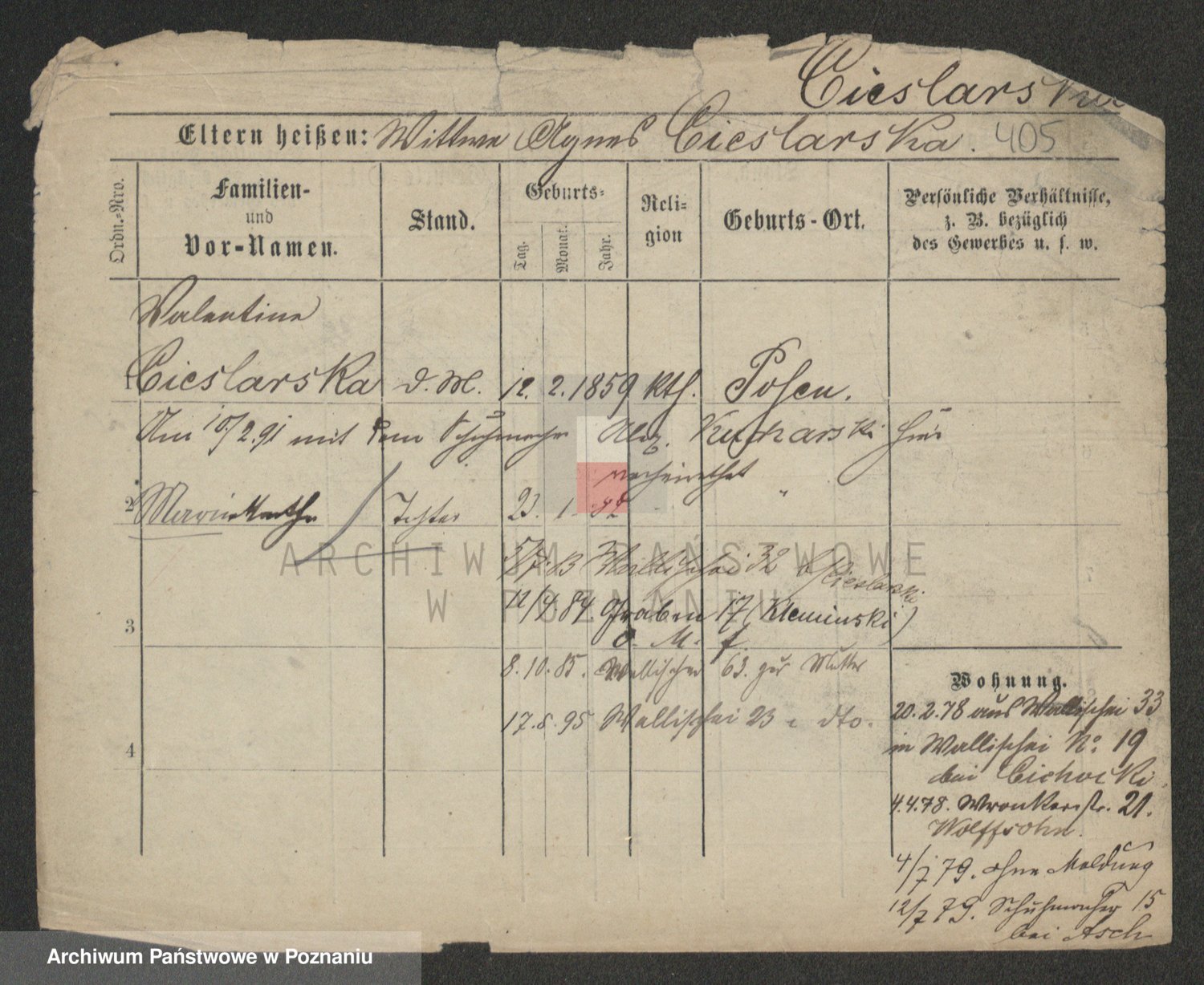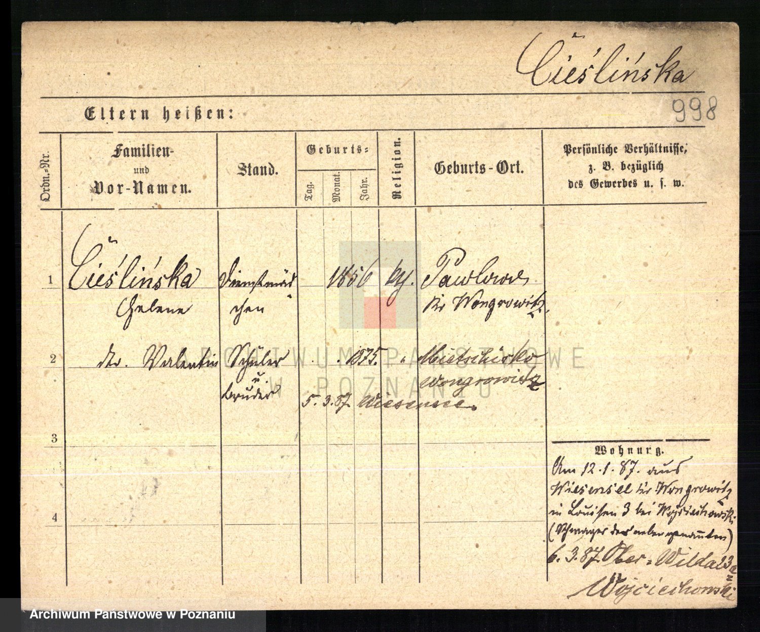 Ciesnik z.d. Maternowski, Cäcilie