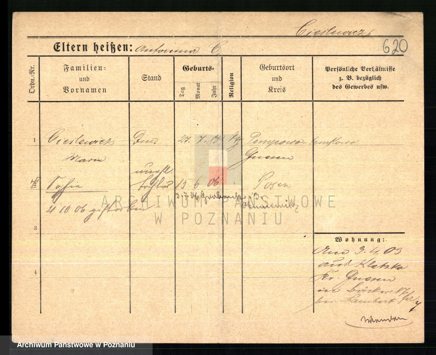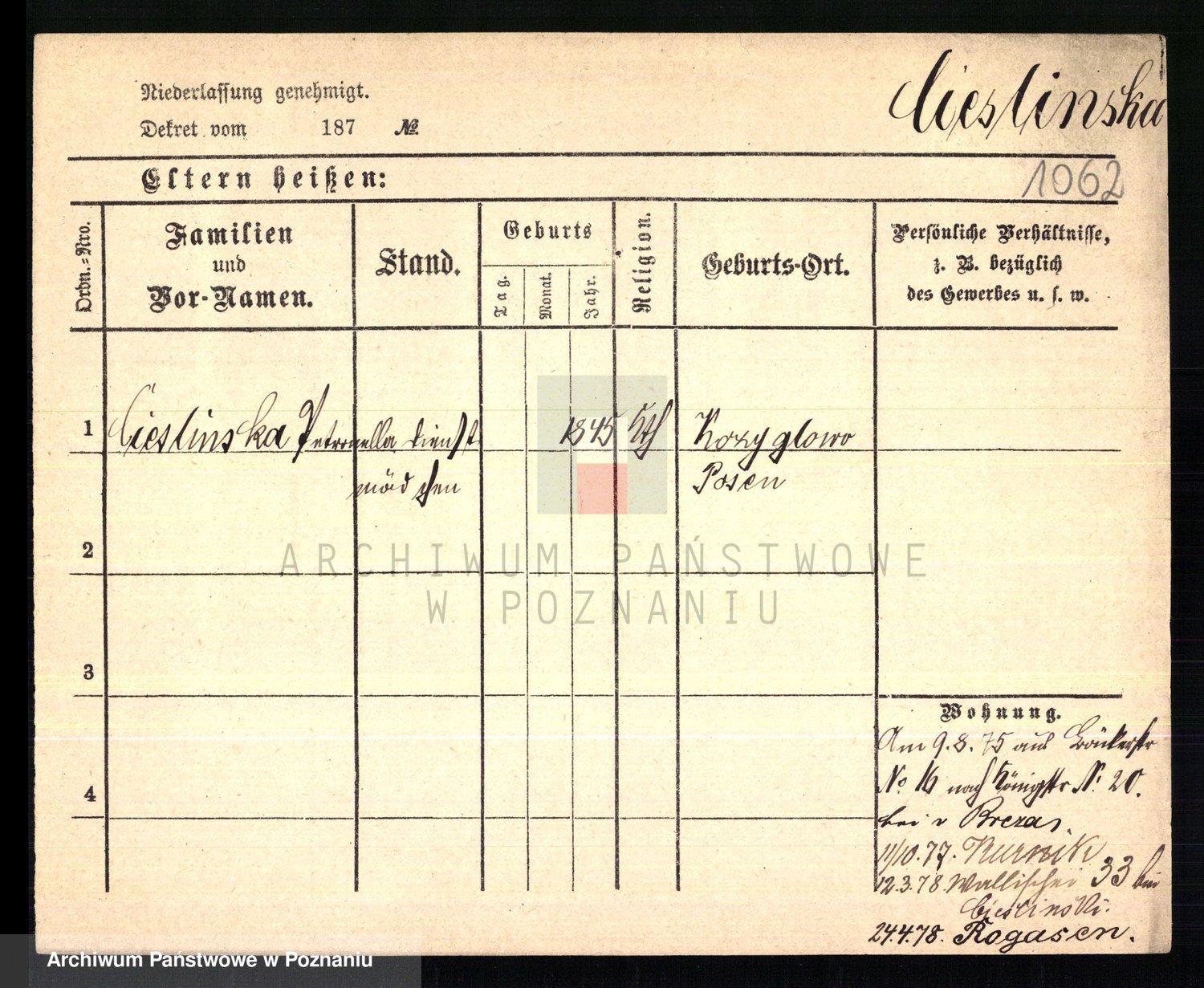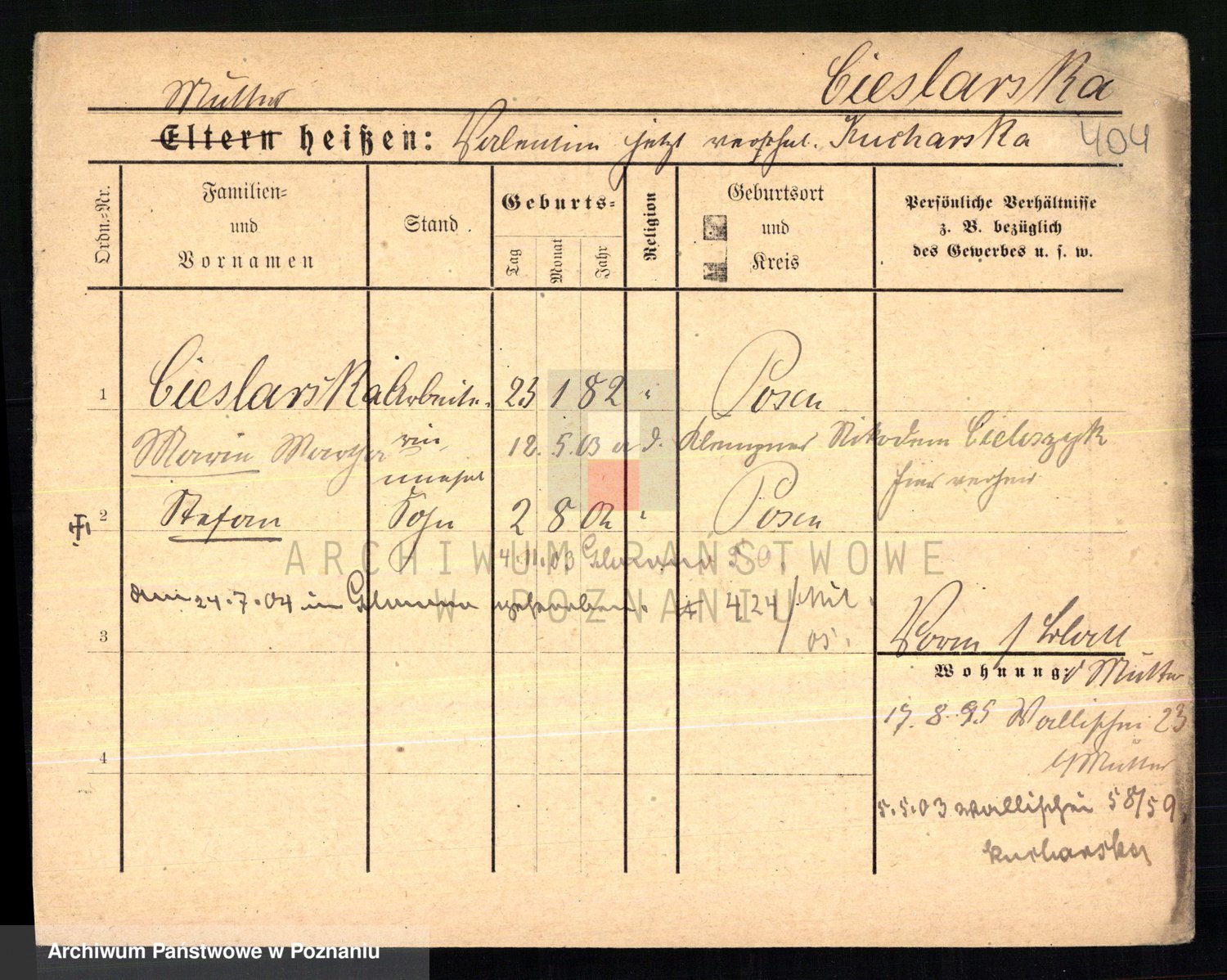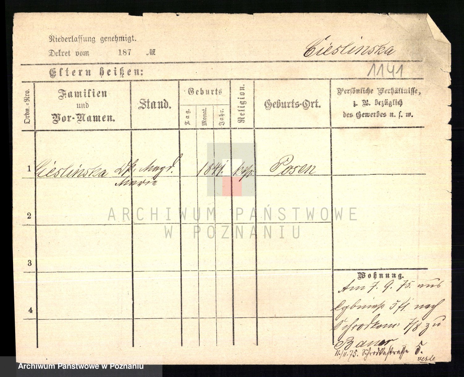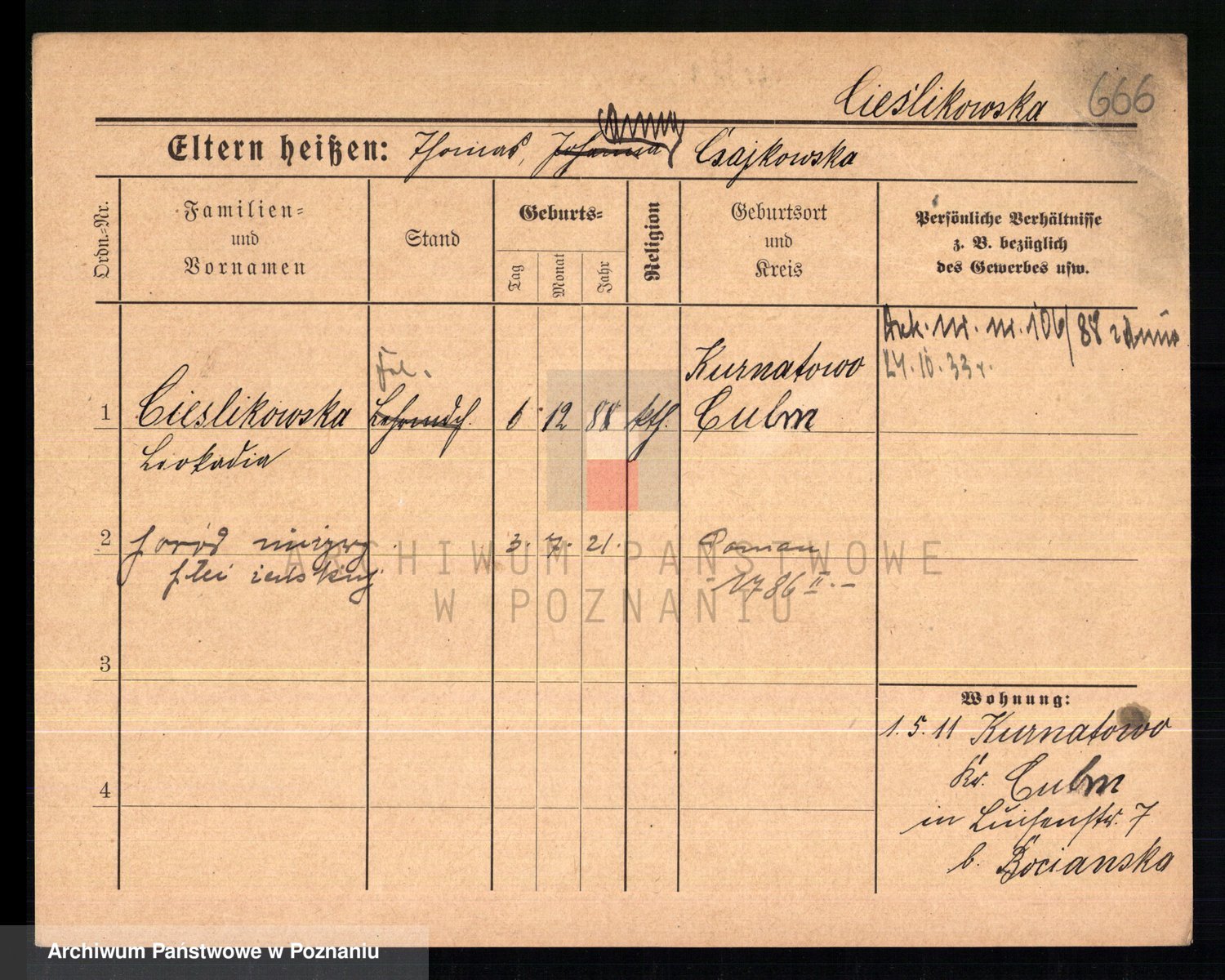 Ciesnik z.d. Maternowski, Cäcilie