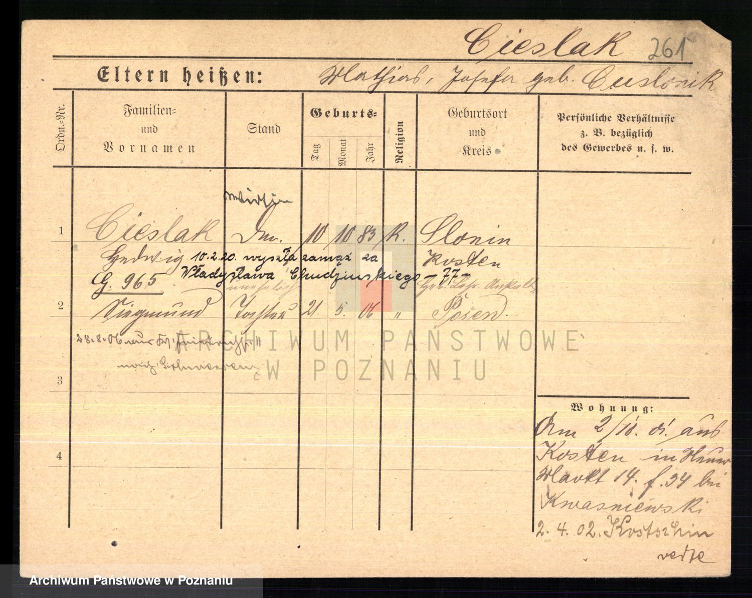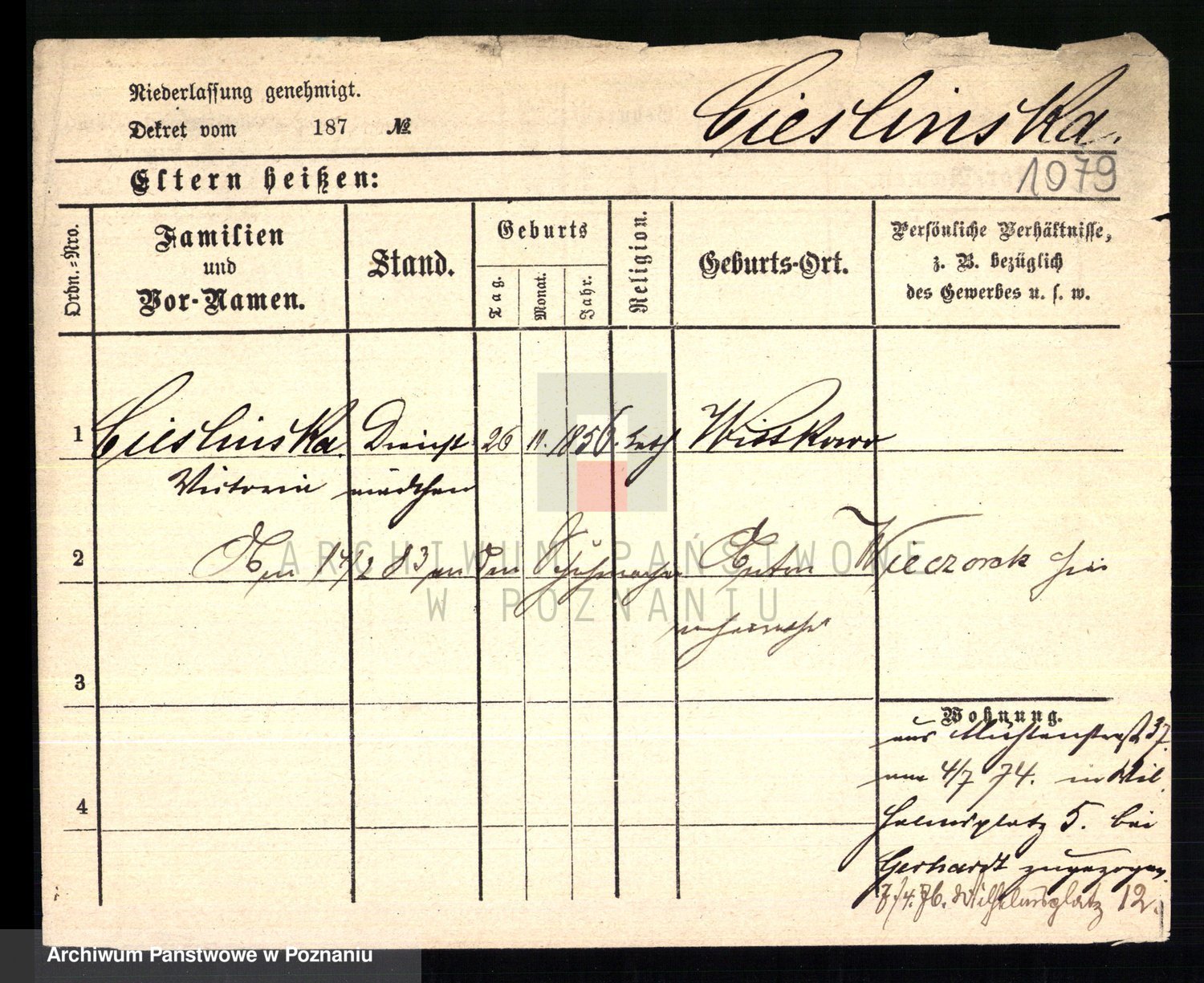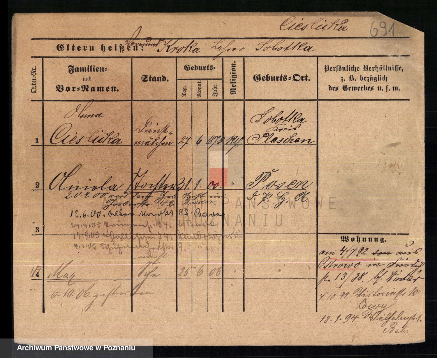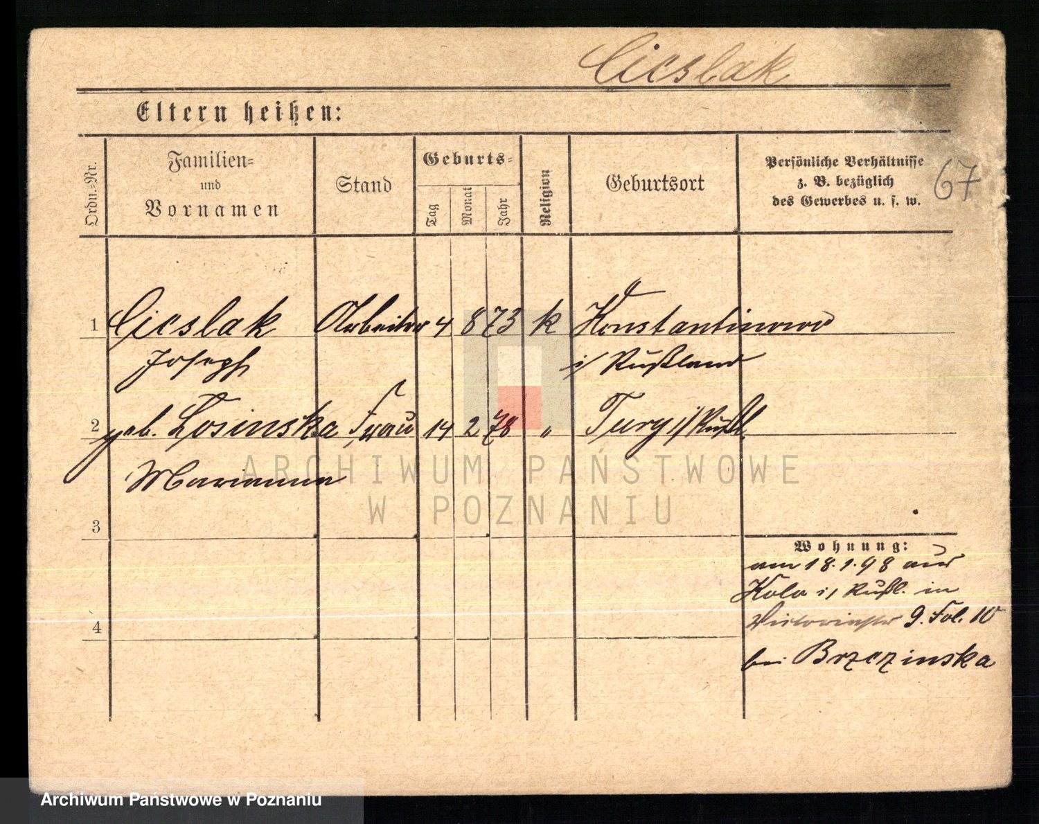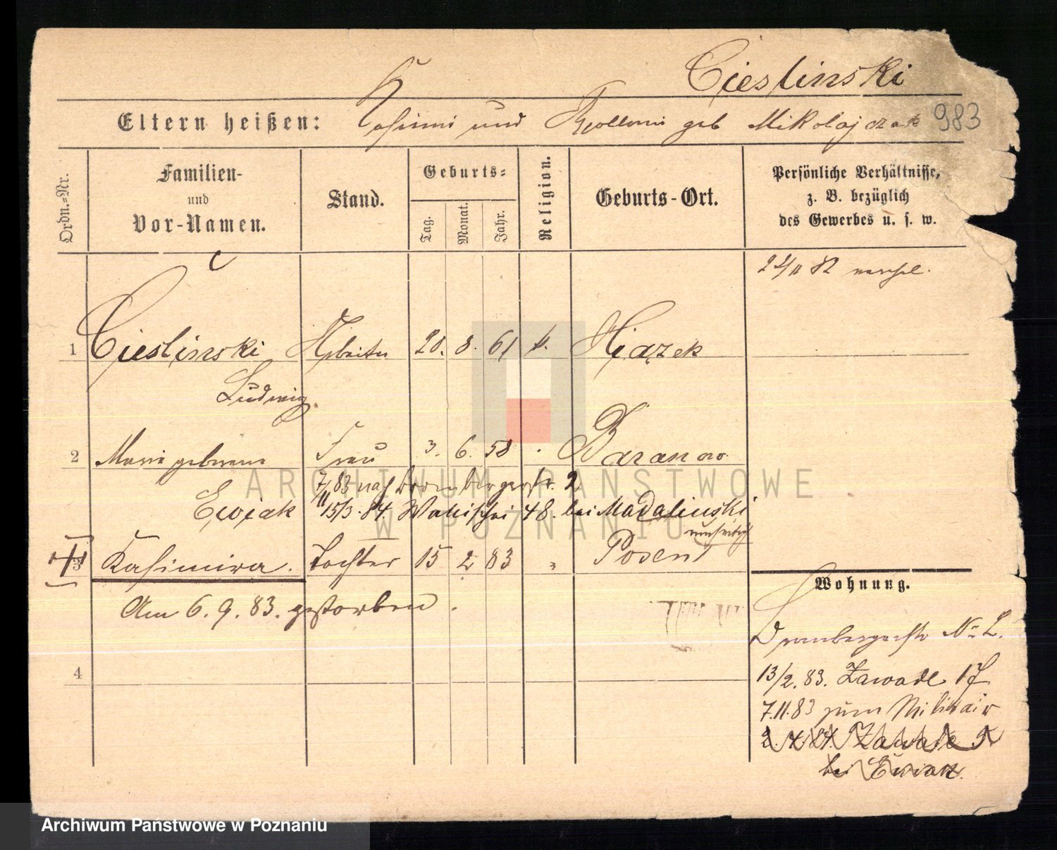 Ciesnik z.d. Maternowski, Cäcilie