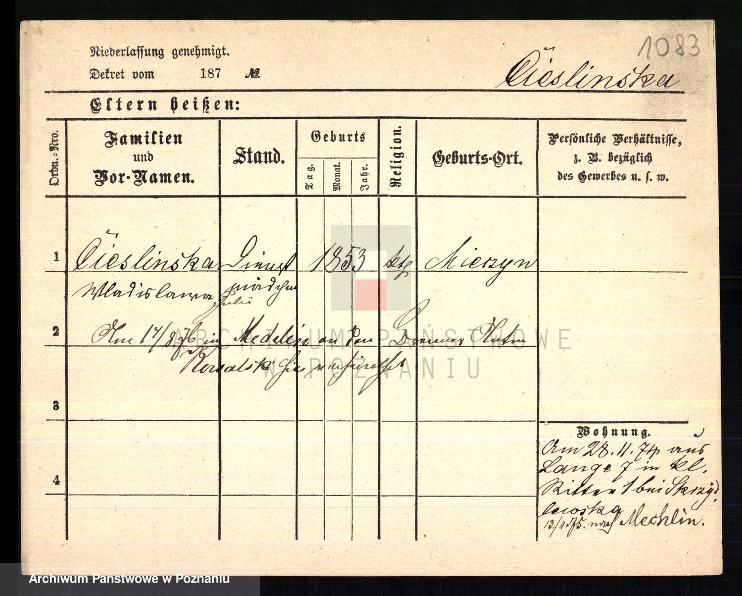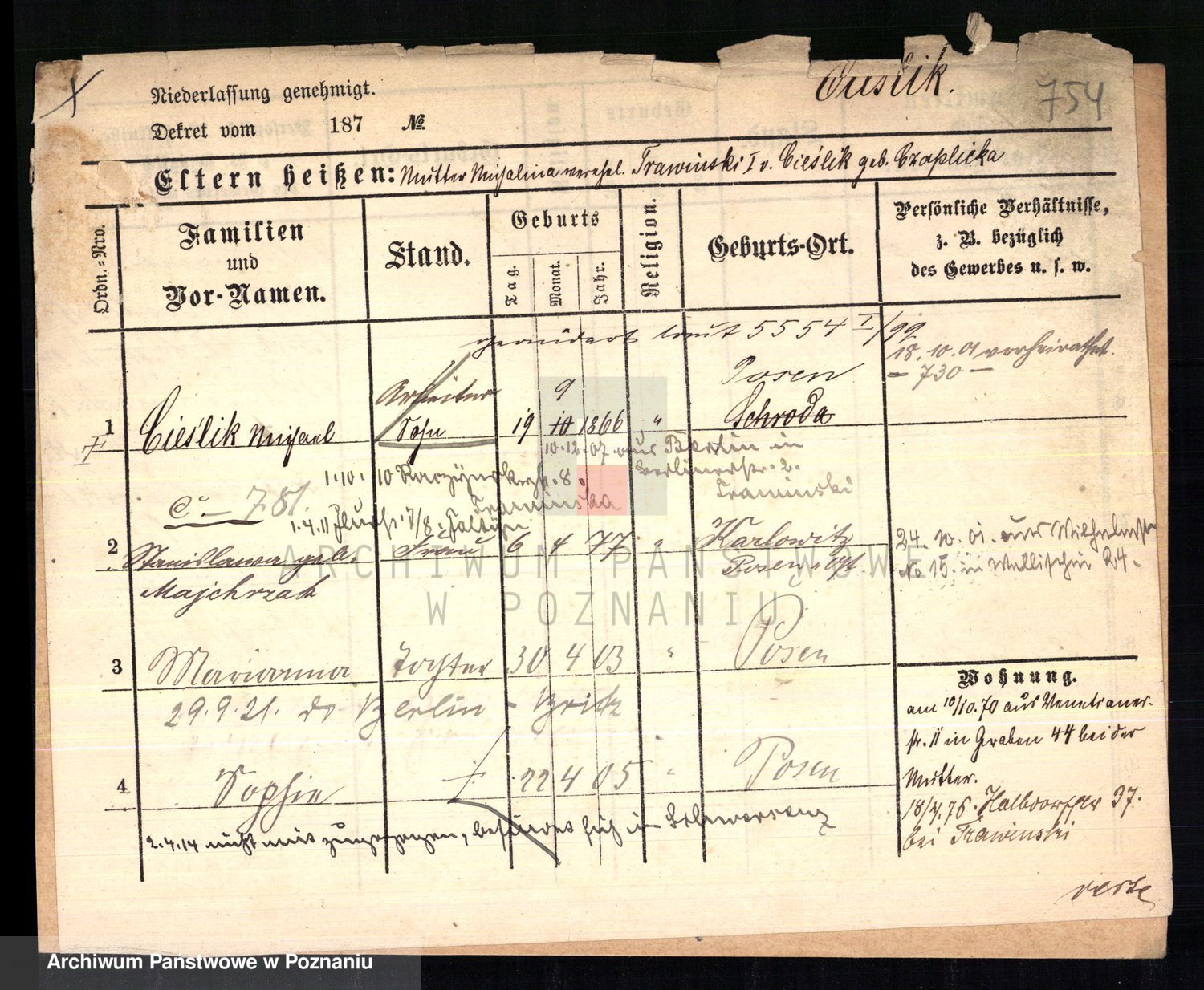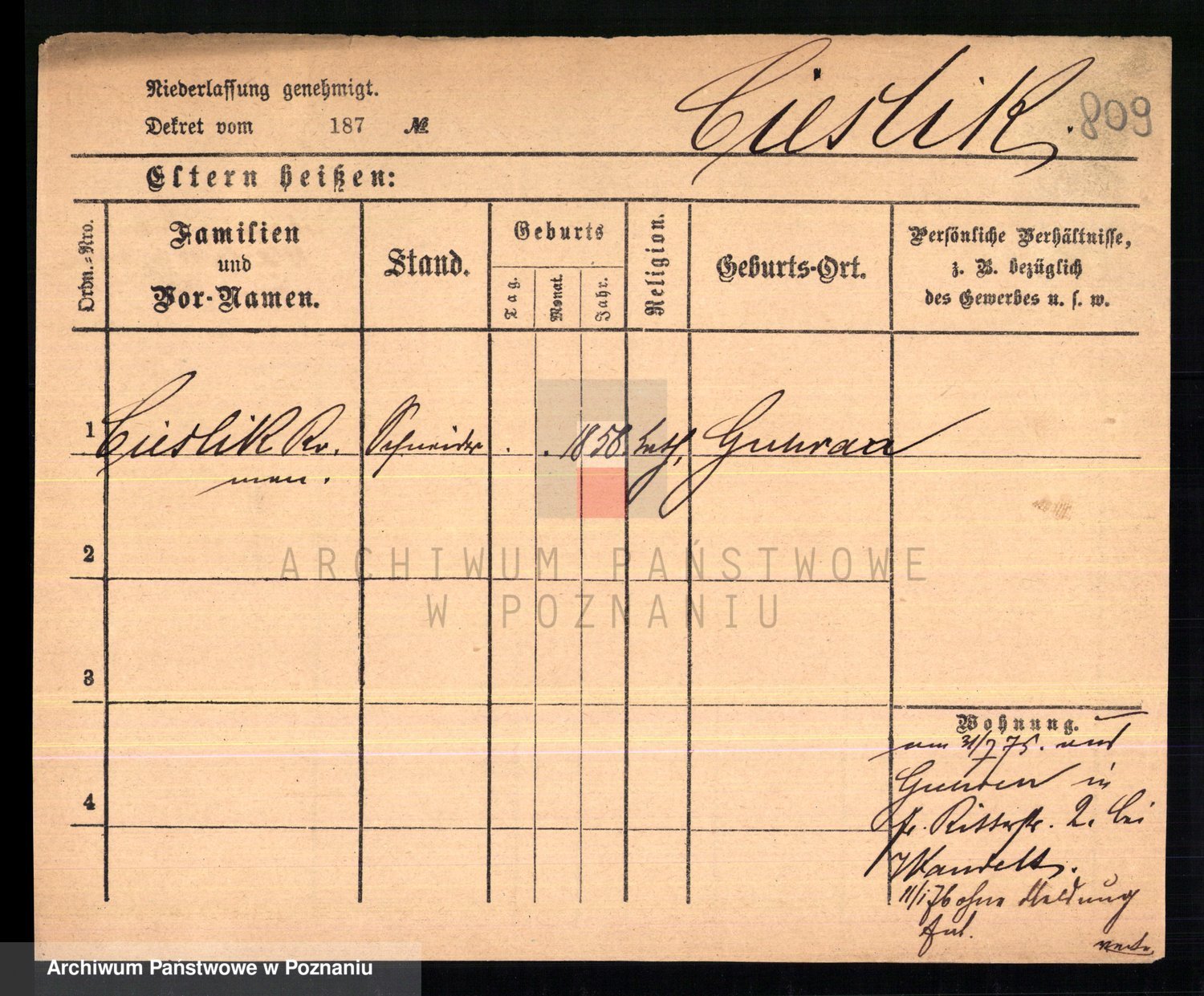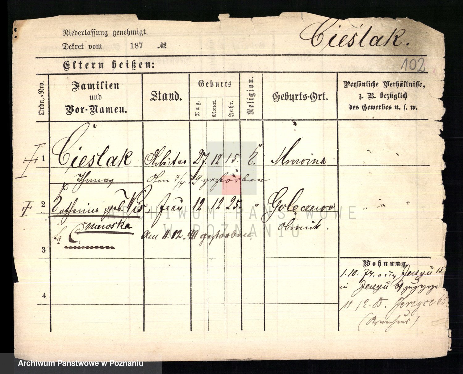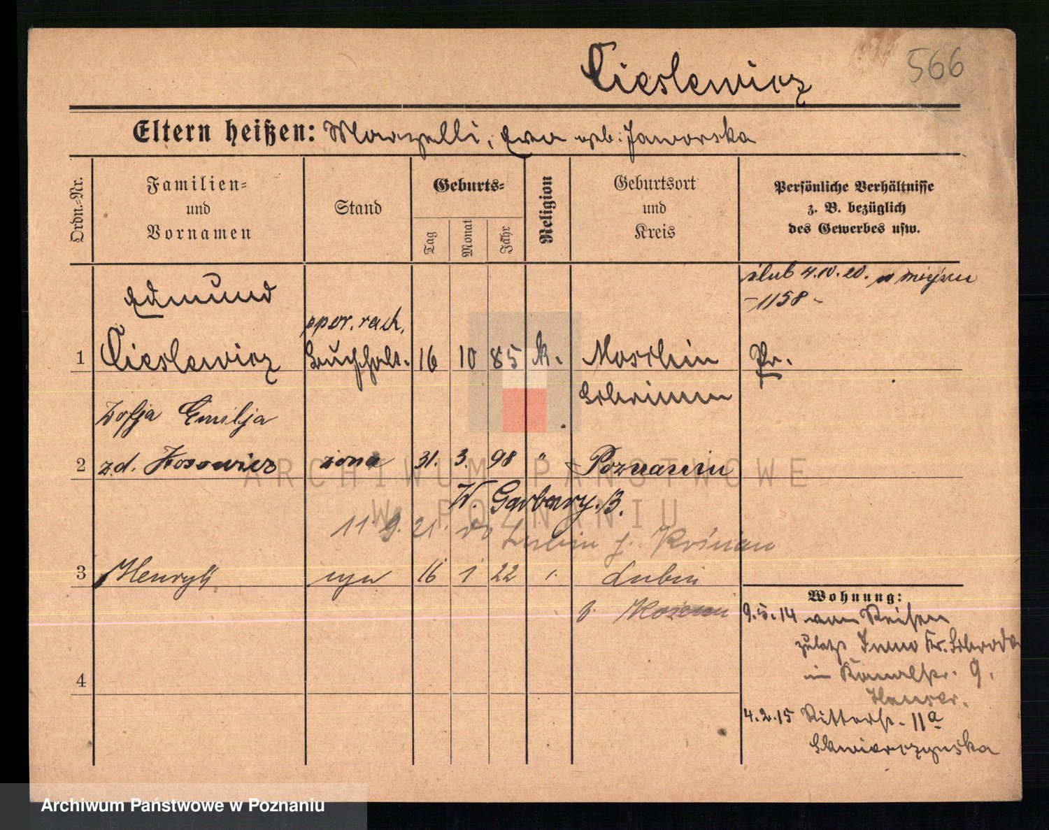 Ciesnik z.d. Maternowski, Cäcilie