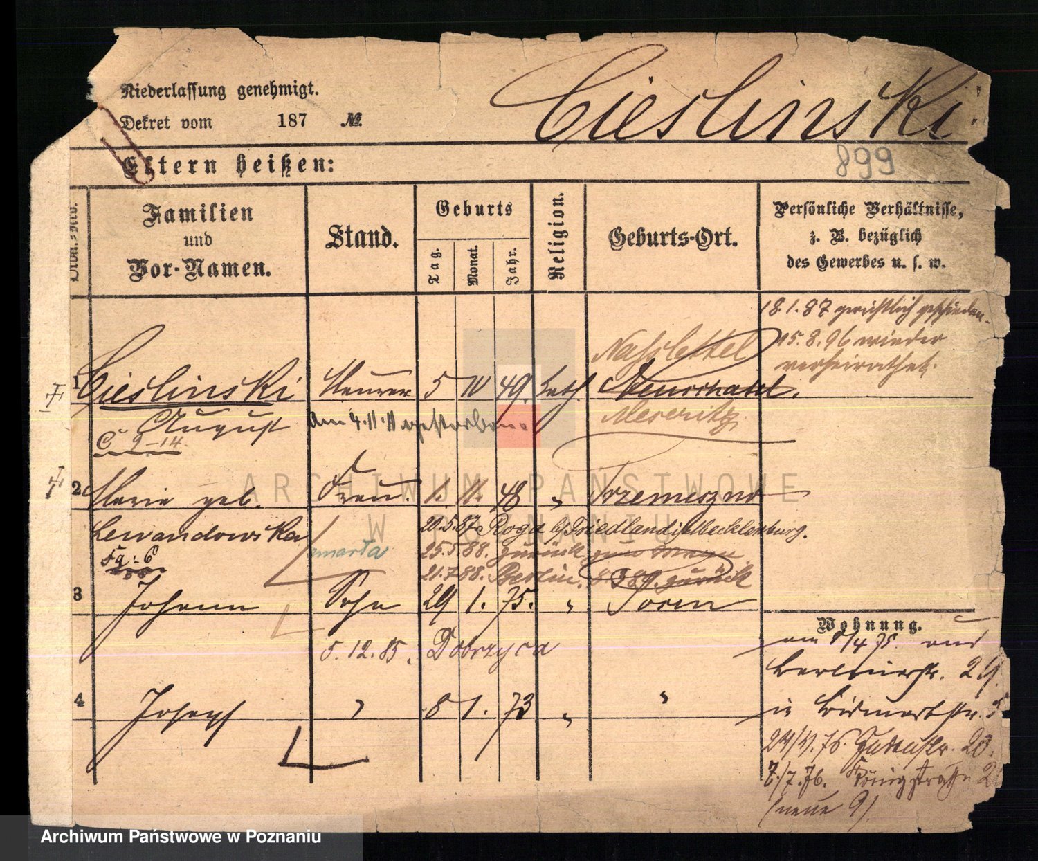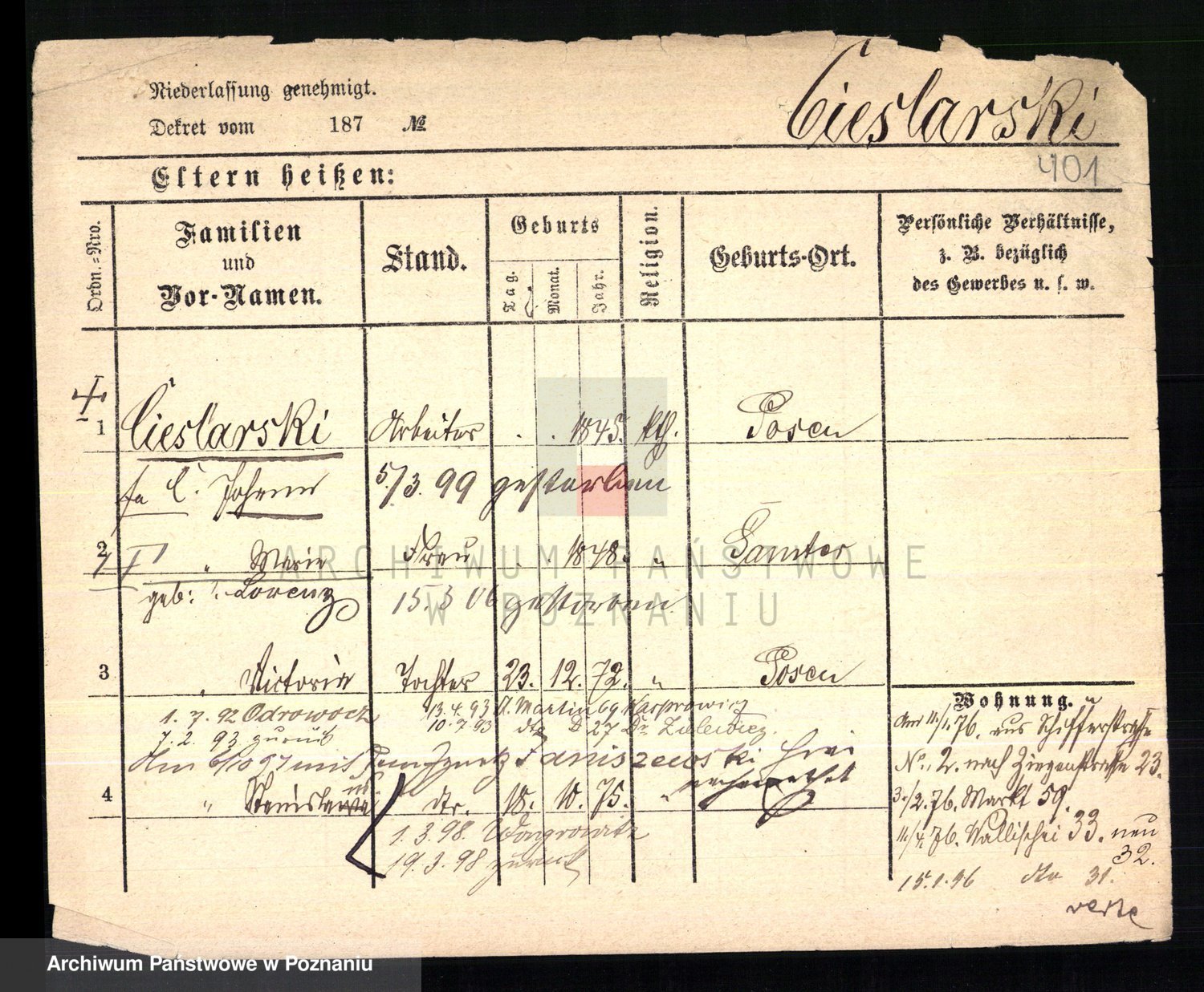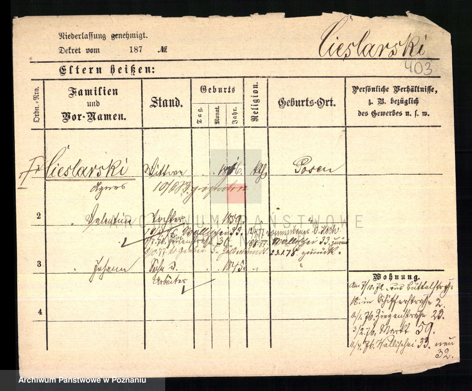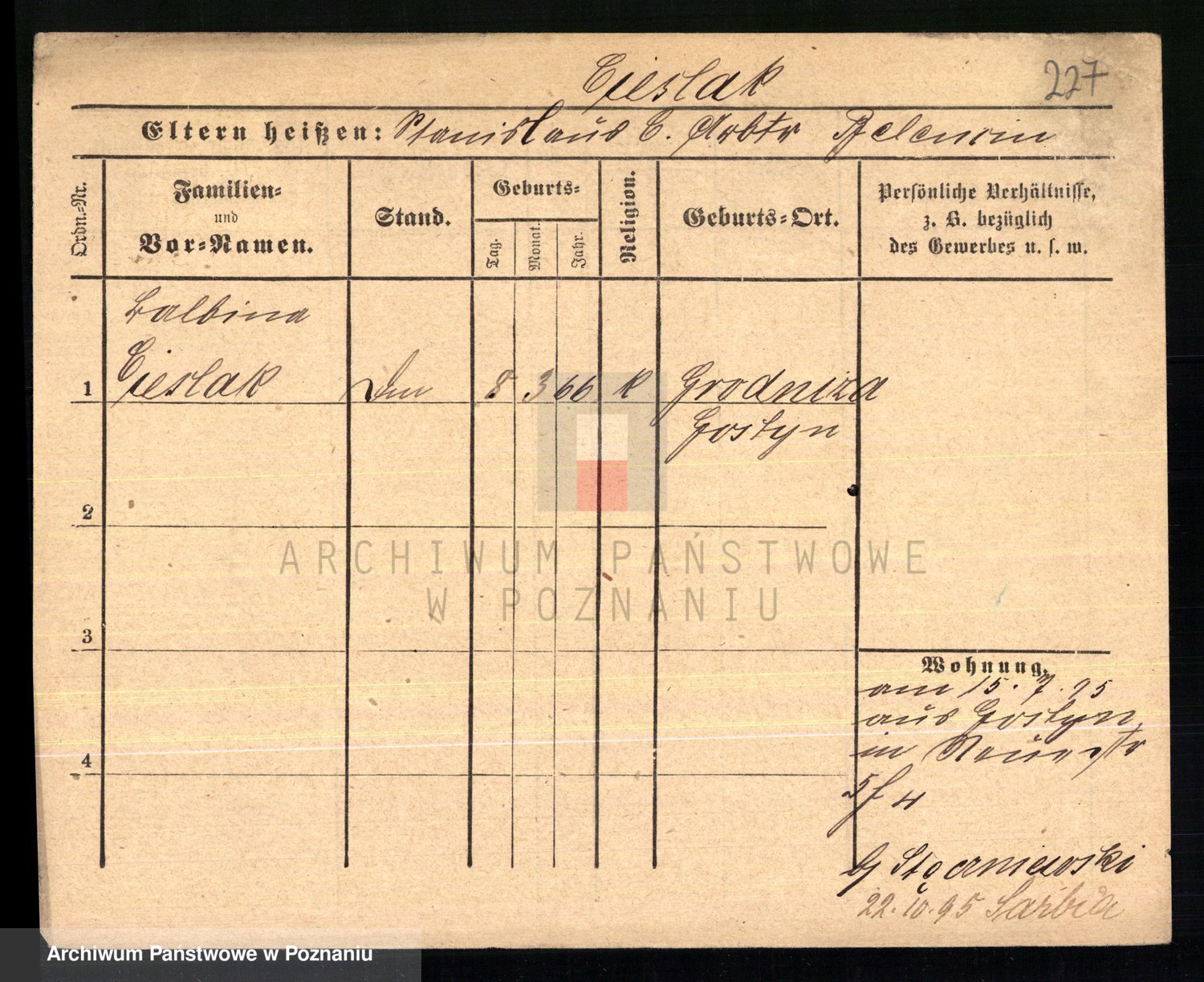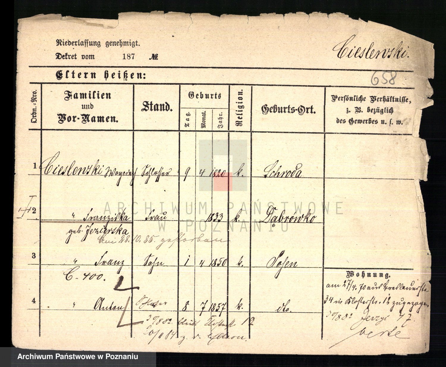 Ciesnik z.d. Maternowski, Cäcilie