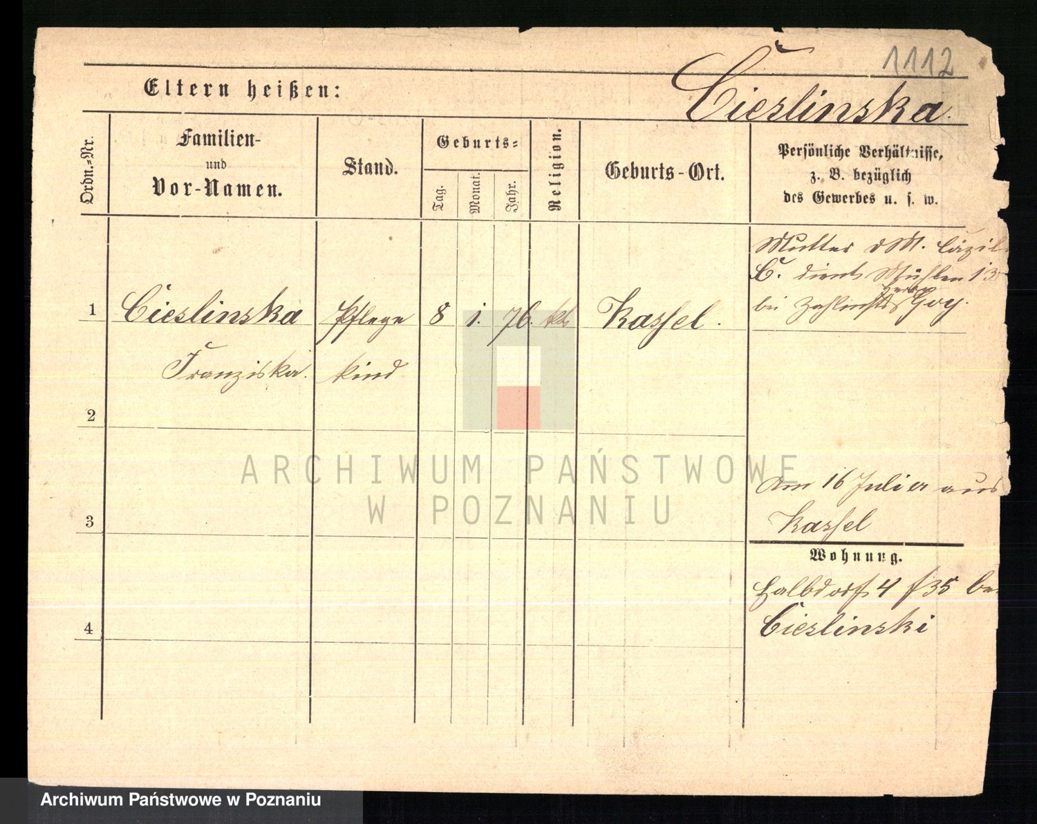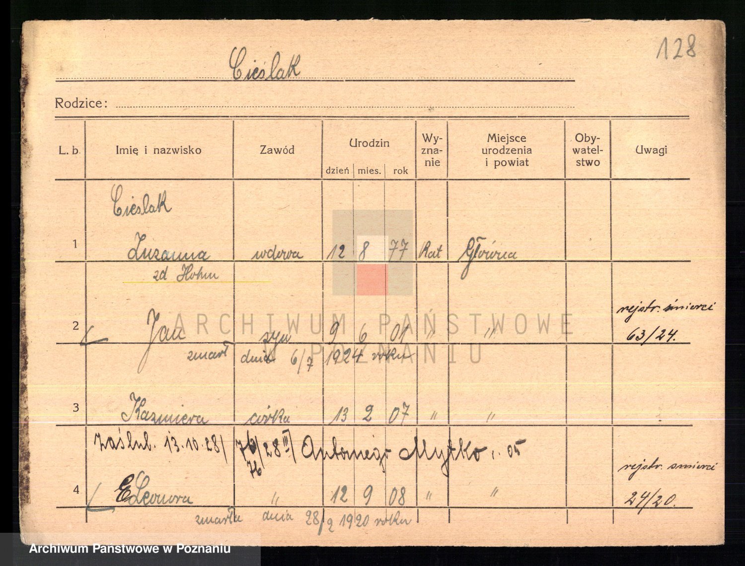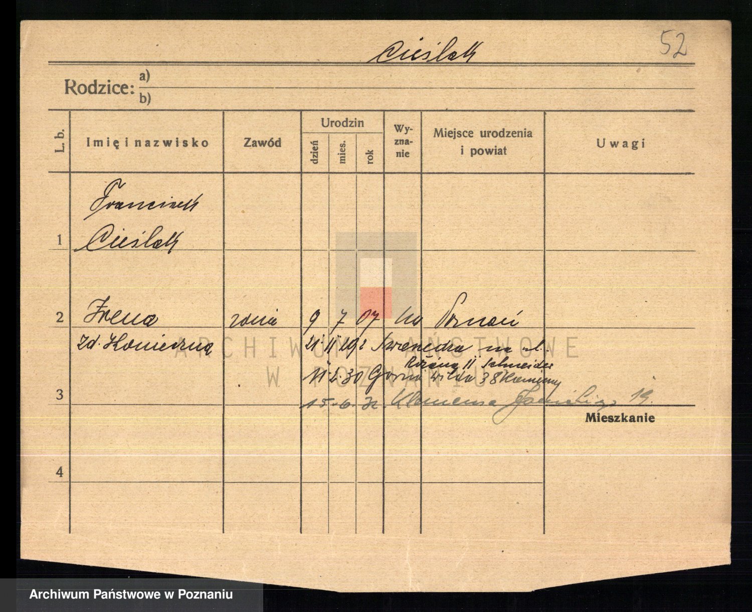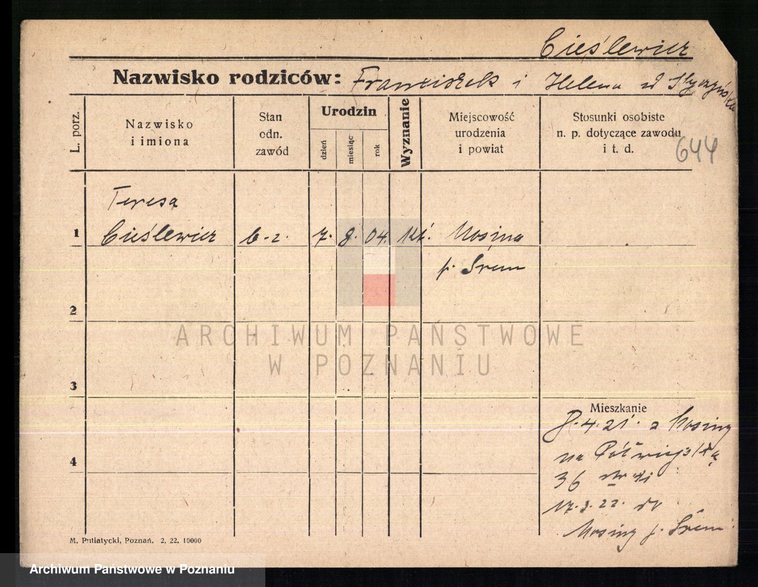 Cieślak z.d. Kuchta, Franciszka
