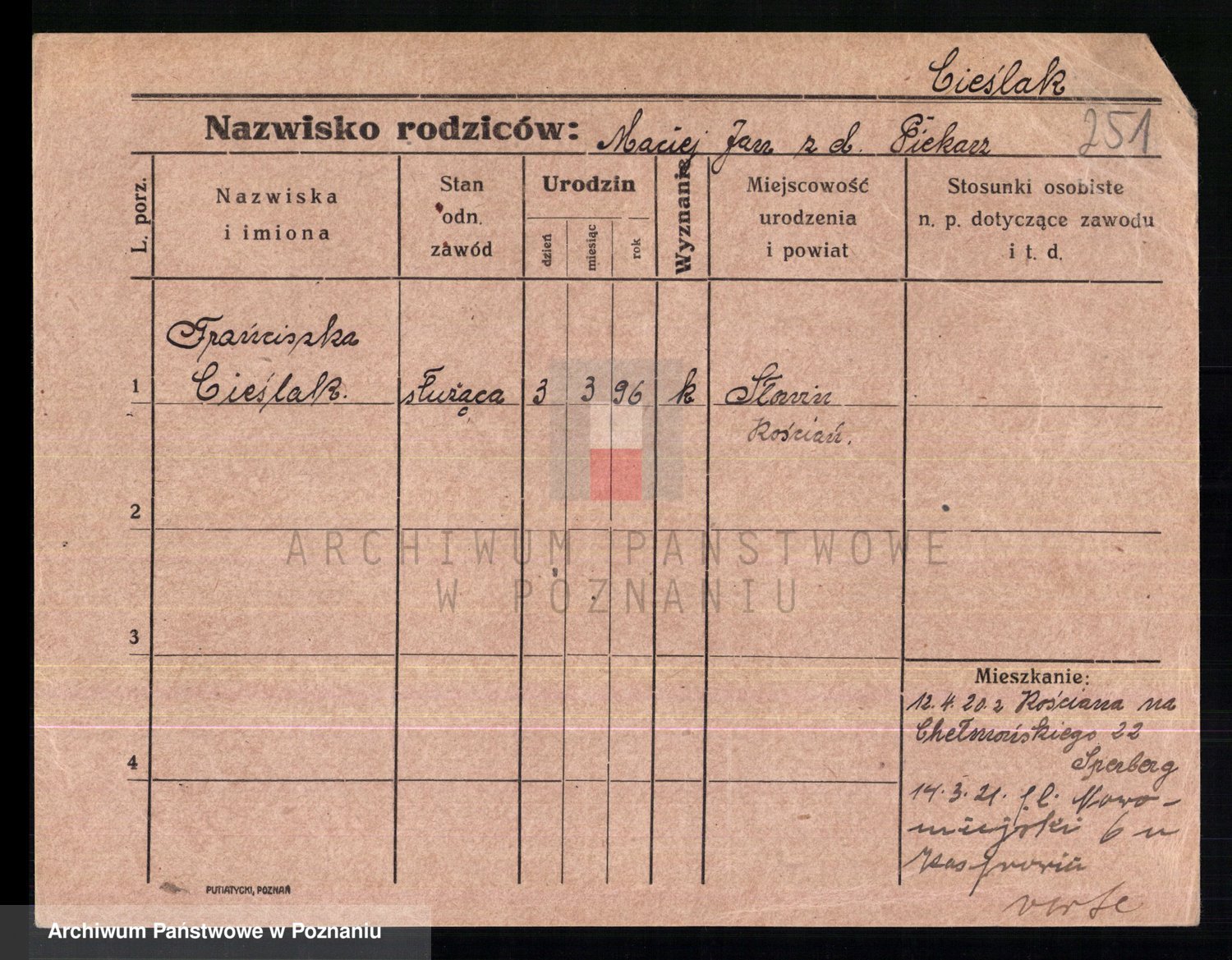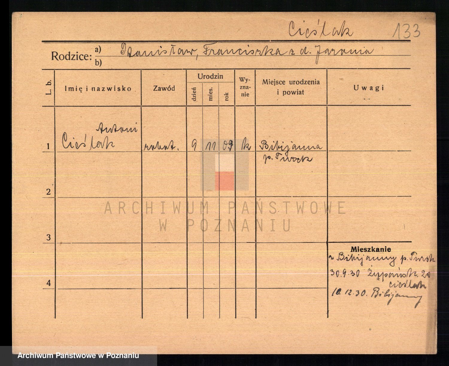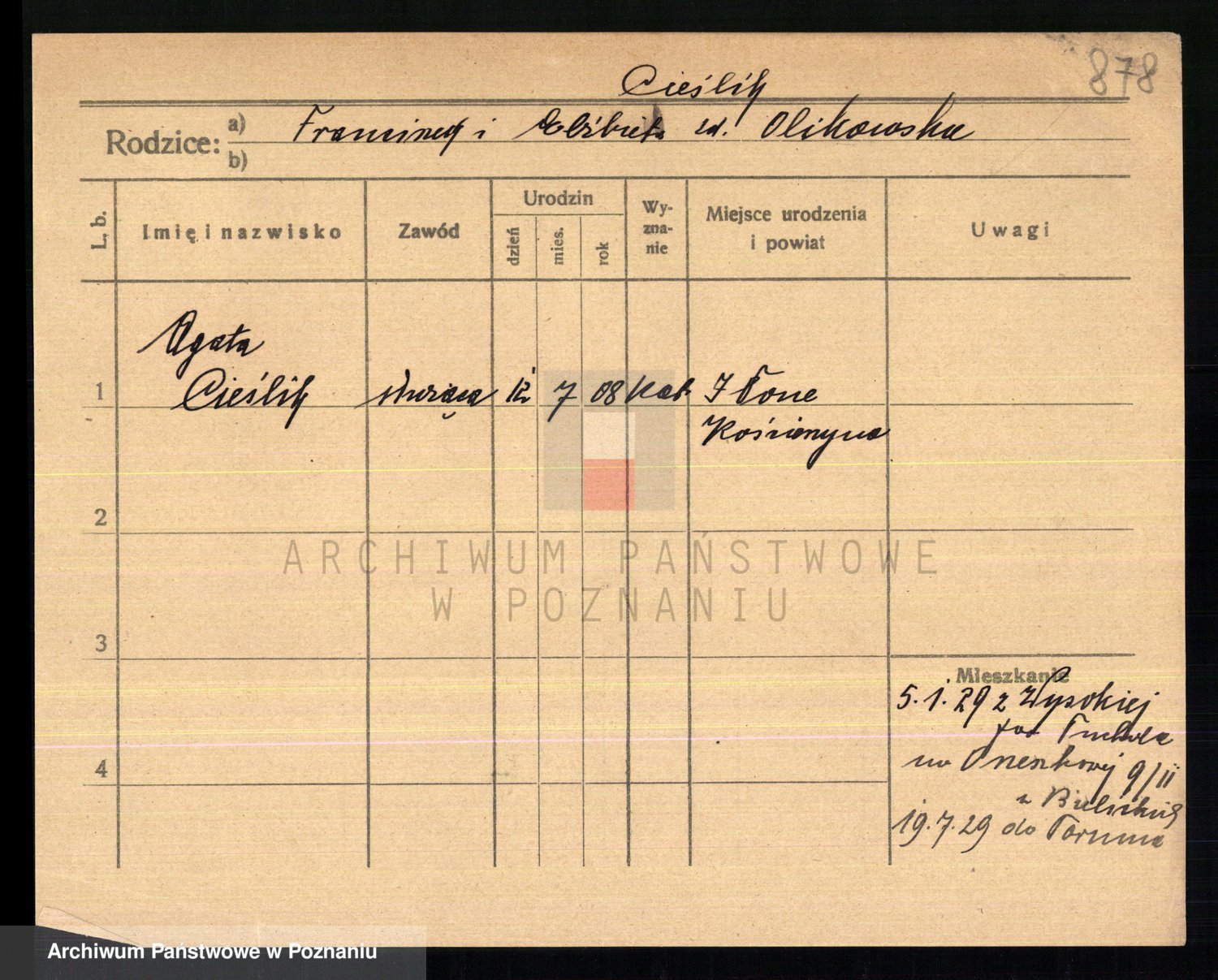Cieślak z.d. Kuchta, Franciszka