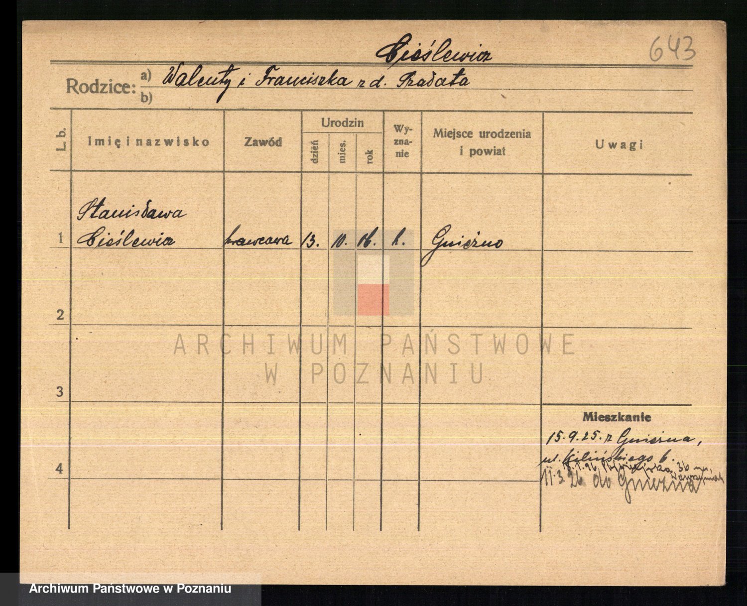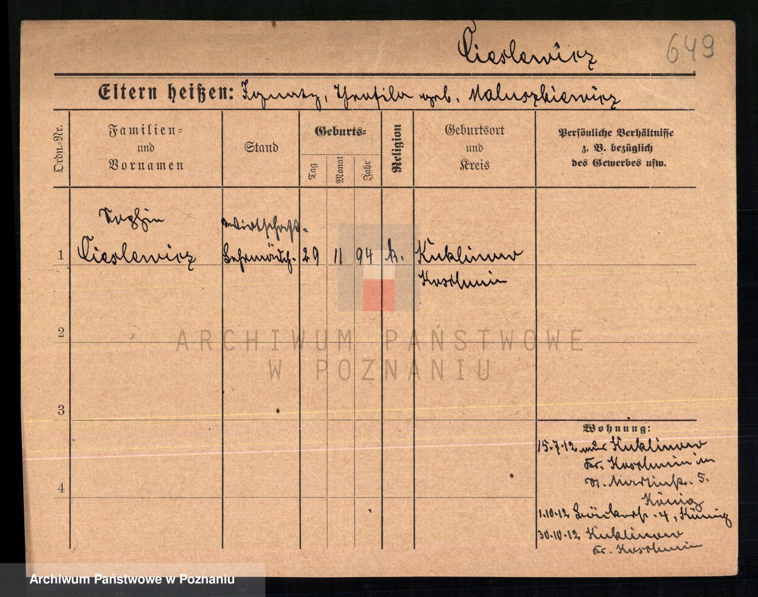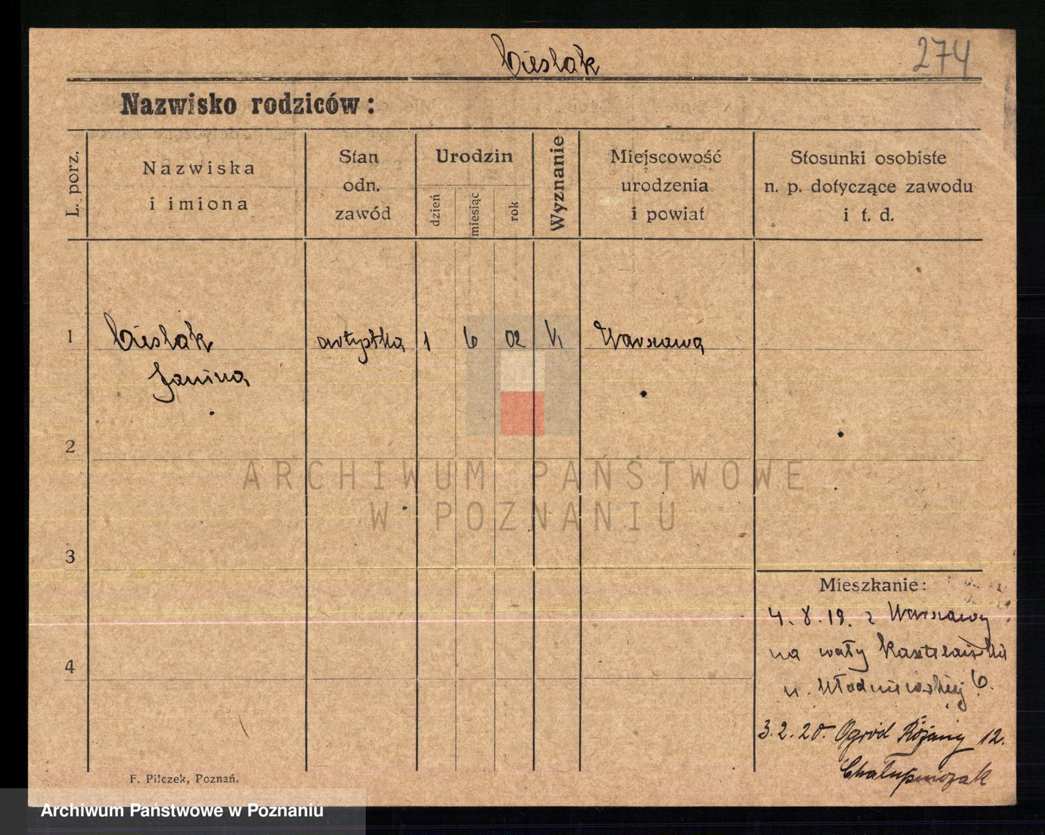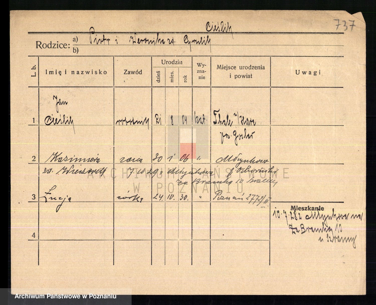 Cieślak z.d. Kuchta, Franciszka